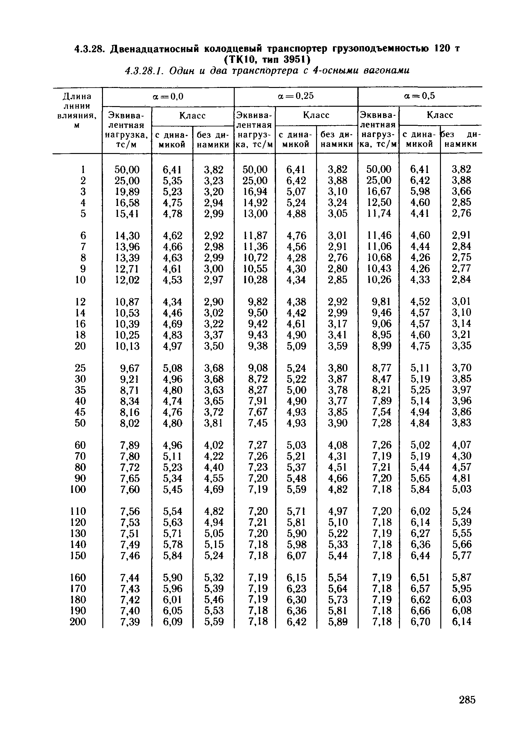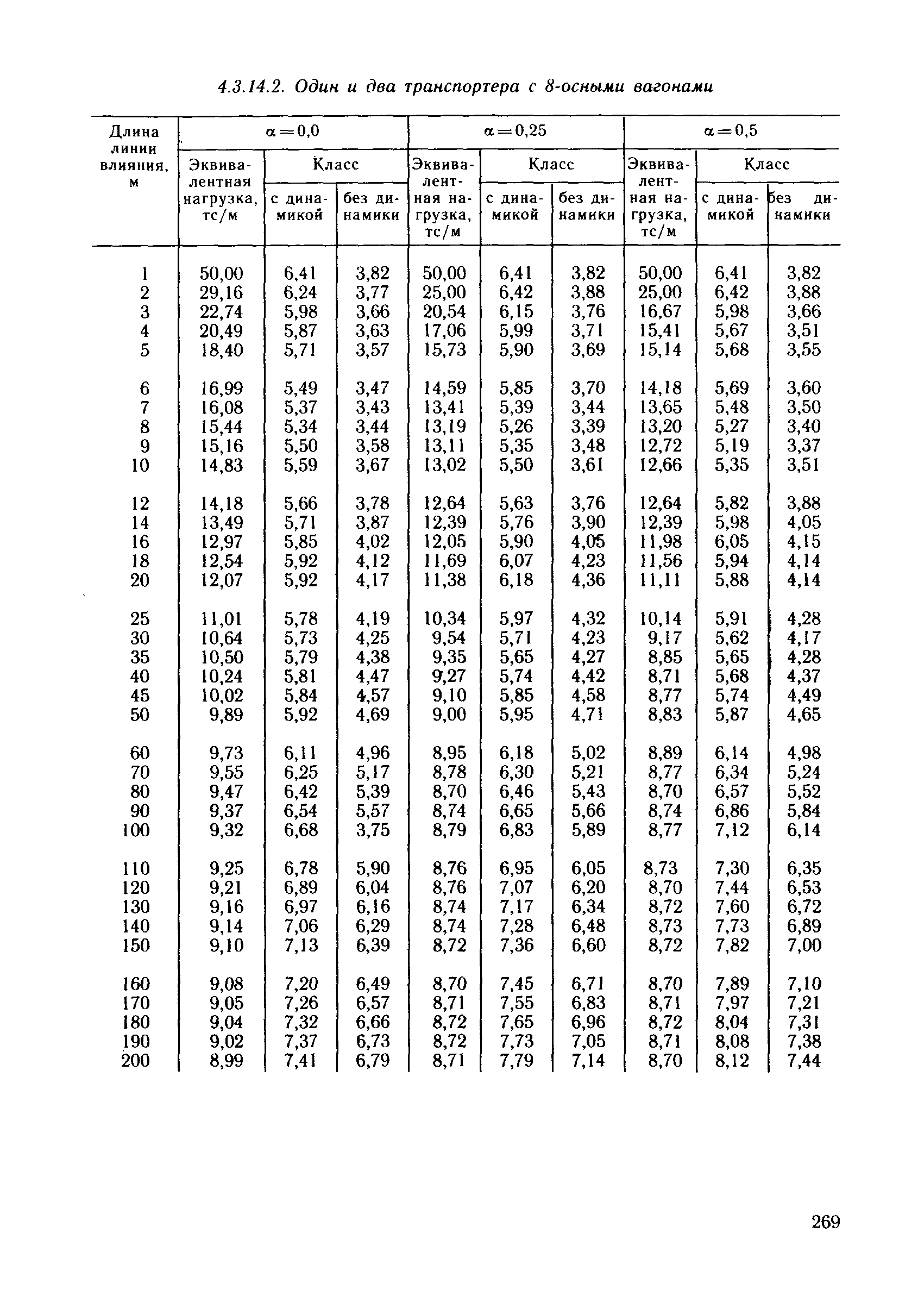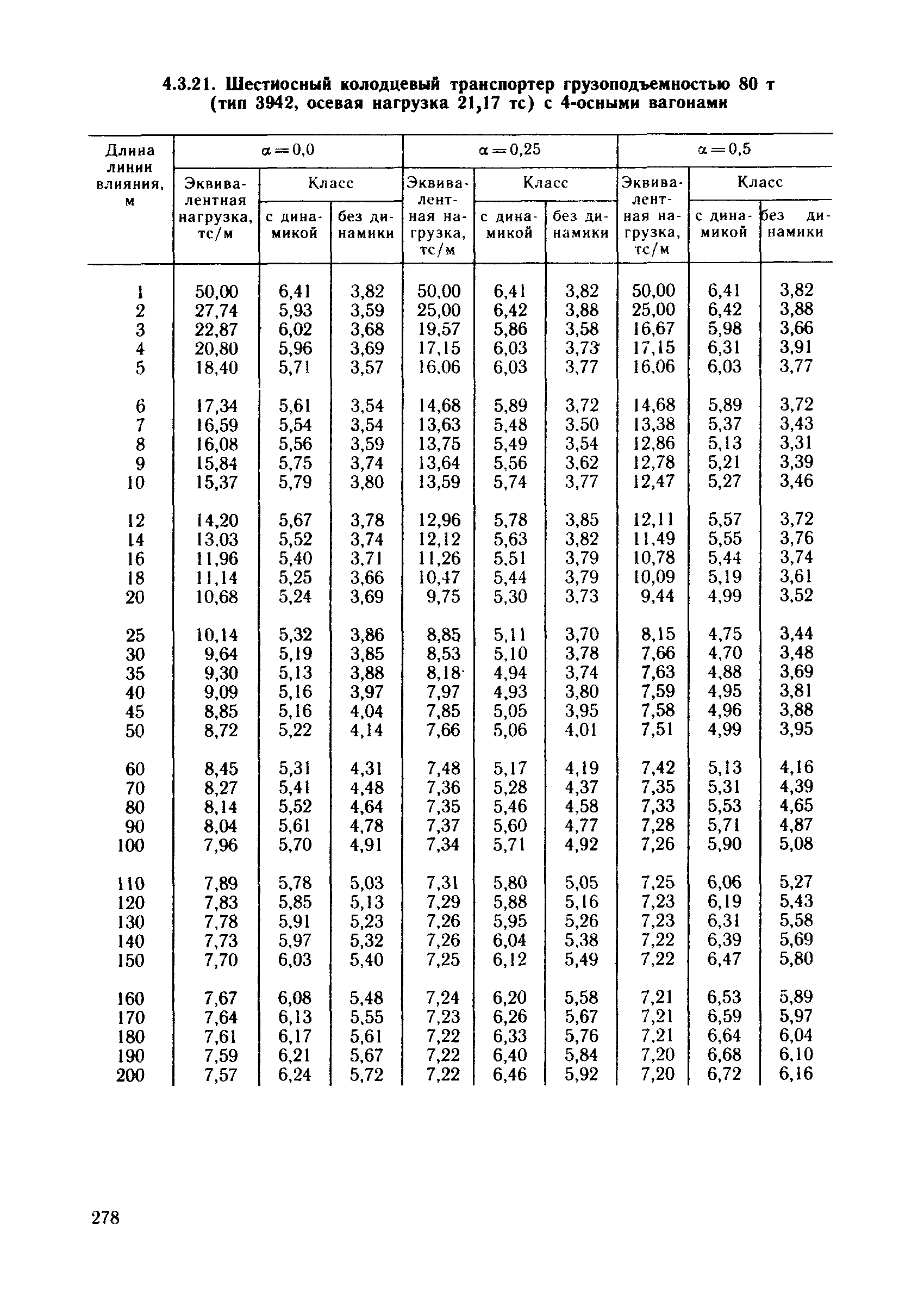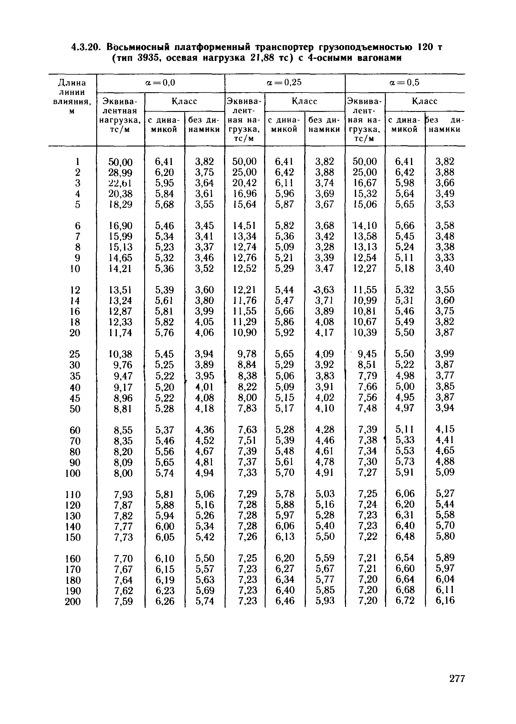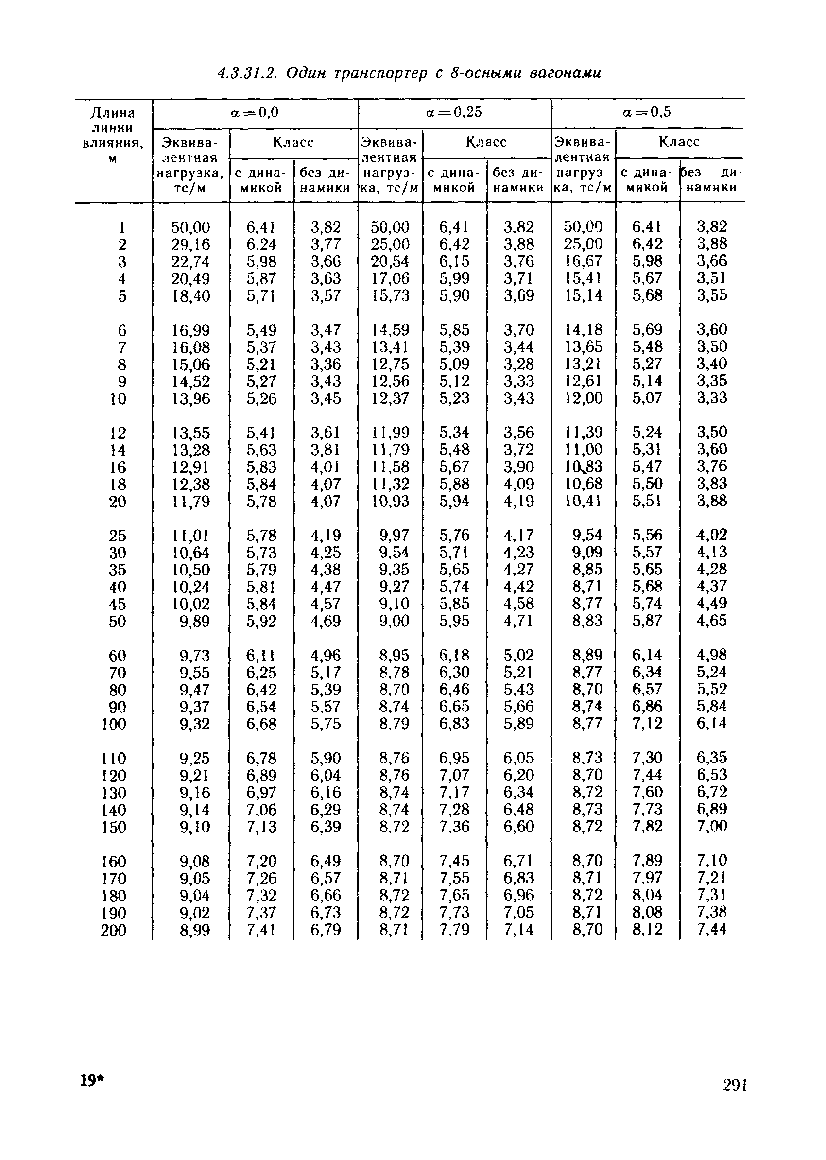 Руководство по пропуску подвижного состава по железнодорожным мостам| Статус: | не подлежит применению | | Название рус.: | Руководство по пропуску подвижного состава по железнодорожным мостам | | Дата добавления в базу: | 01.09.2013 | | Дата актуализации: | 01.01.2021 | | Дата окончания срока действия: | 26.08.2019 | | Область применения: | Приведены основные характеристики и результаты классификации (классы) обращающихся и перспективных локомотивов, вагонов, транспортеров, железнодорожных кранов и, кроме того, категории грузоподъемности мостов, обеспечивающих их пропуск. | | Оглавление: | 1. Общие положения 2. Определение условий пропуска поездных нагрузок 3. Характеристики подвижного состава сети железных дорог нашей страны 3.1. Локомотивы 3.2. Вагоны 3.3. Транспортеры 3.4. Консольные железнодорожные краны 4. Классификация нагрузок 4.1. Эквивалентные нагрузки и классы сплоток электровозов, тепловозов, паровозов 4.2. Эквивалентные нагрузки и классы обращающихся и перспективных вагонов 4.3. Эквивалентные нагрузки и классы транспортеров 4.4. Эквивалентные нагрузки и классы железнодорожных консольных кранов Приложение 1. Примеры классификации подвижного состава и определения условий пропуска его по металлическим пролетным строениям железнодорожных мостов Приложение 2. Определение эквивалентной нагрузки от классифицируемого подвижного состава Приложение 3. Динамические коэффициенты, их отношения и эталонная нагрузка от HI 364 Приложение 4. Вагоны «прикрытия» транспортеров Приложение 5. Эквивалентные нагрузки и классы эталонной нагрузки, соответствующие грузоподъемности мостов II-IV категорий Приложение 6. Пример определения допускаемой временной нагрузки на элементы про¬летных строений, имеющих многозначную линию влияния, разделенную одним участком другого знака длиной более 15 м | | Разработан: | Научно-исследовательский институт мостов