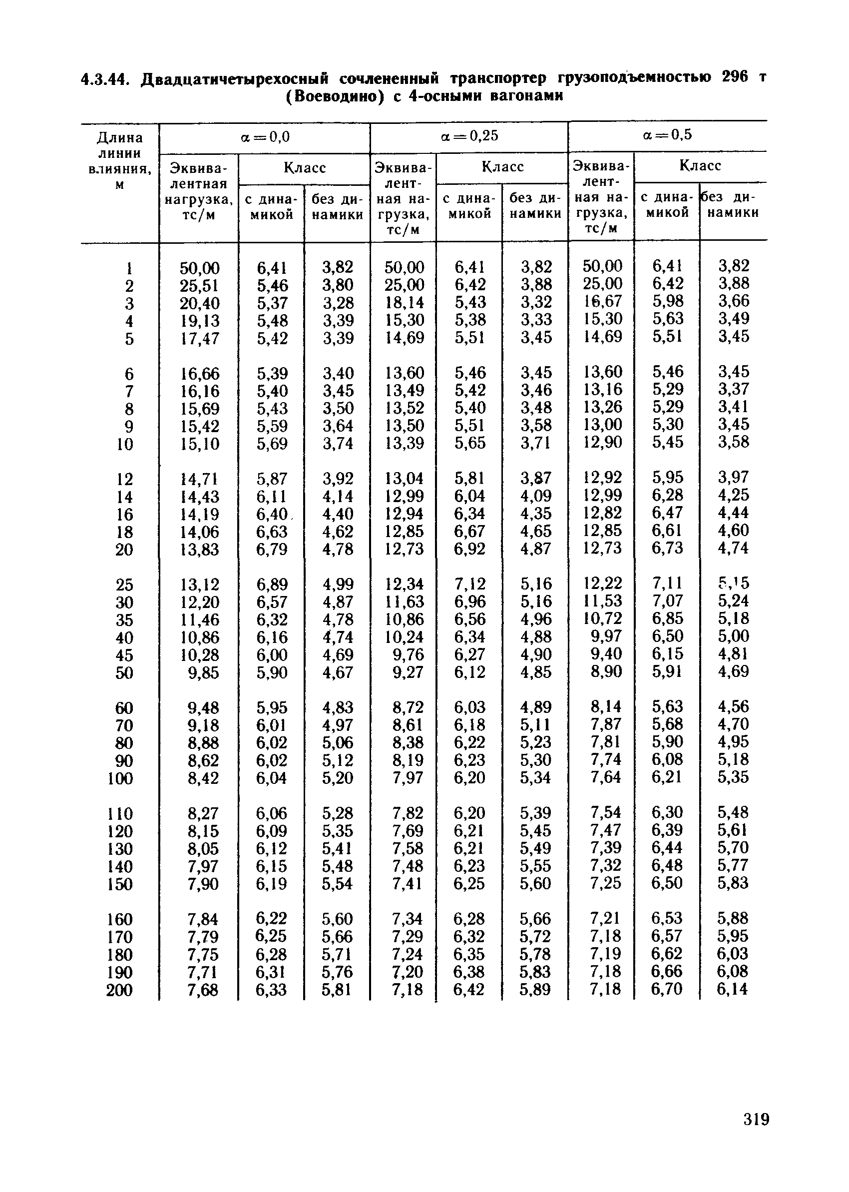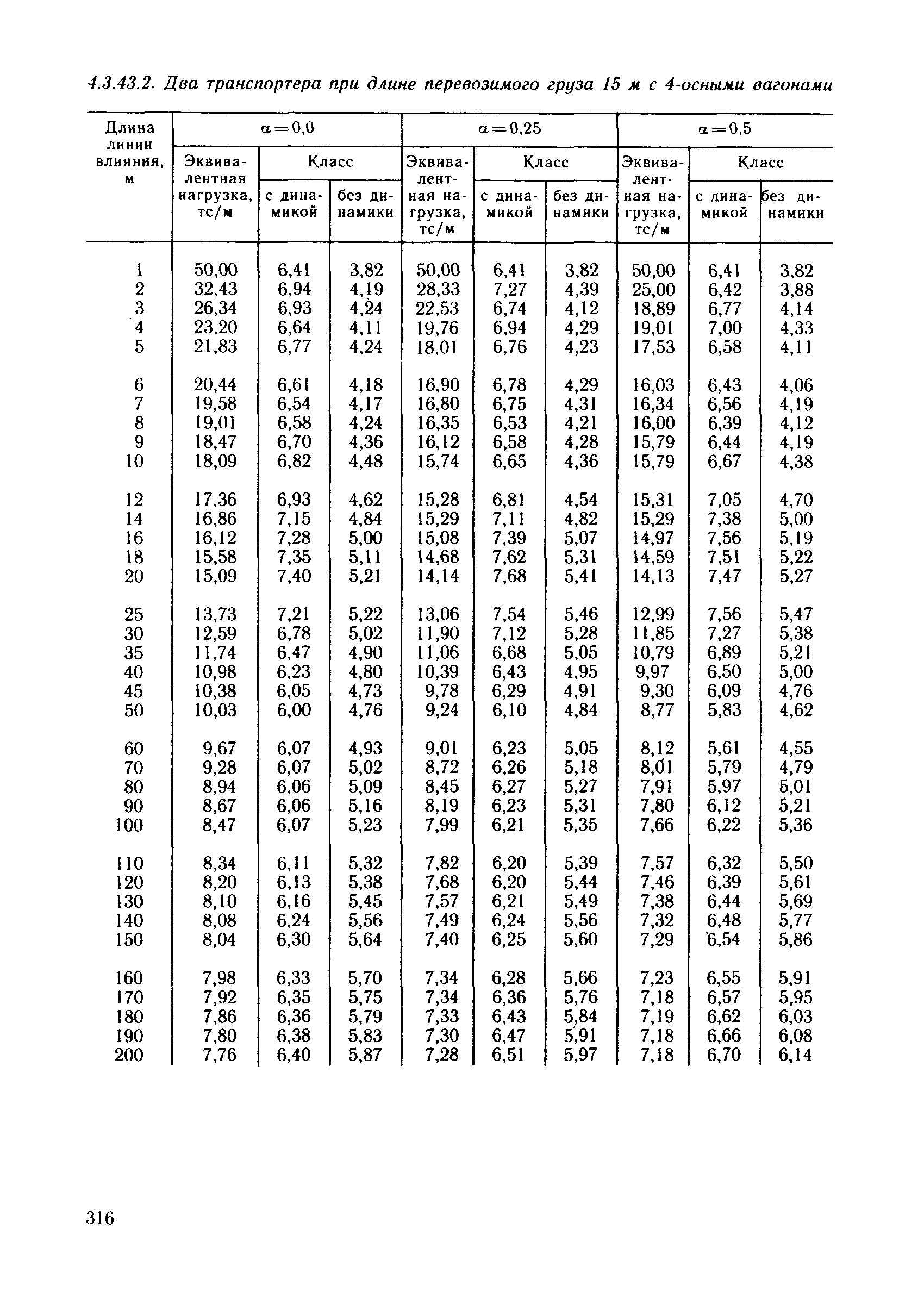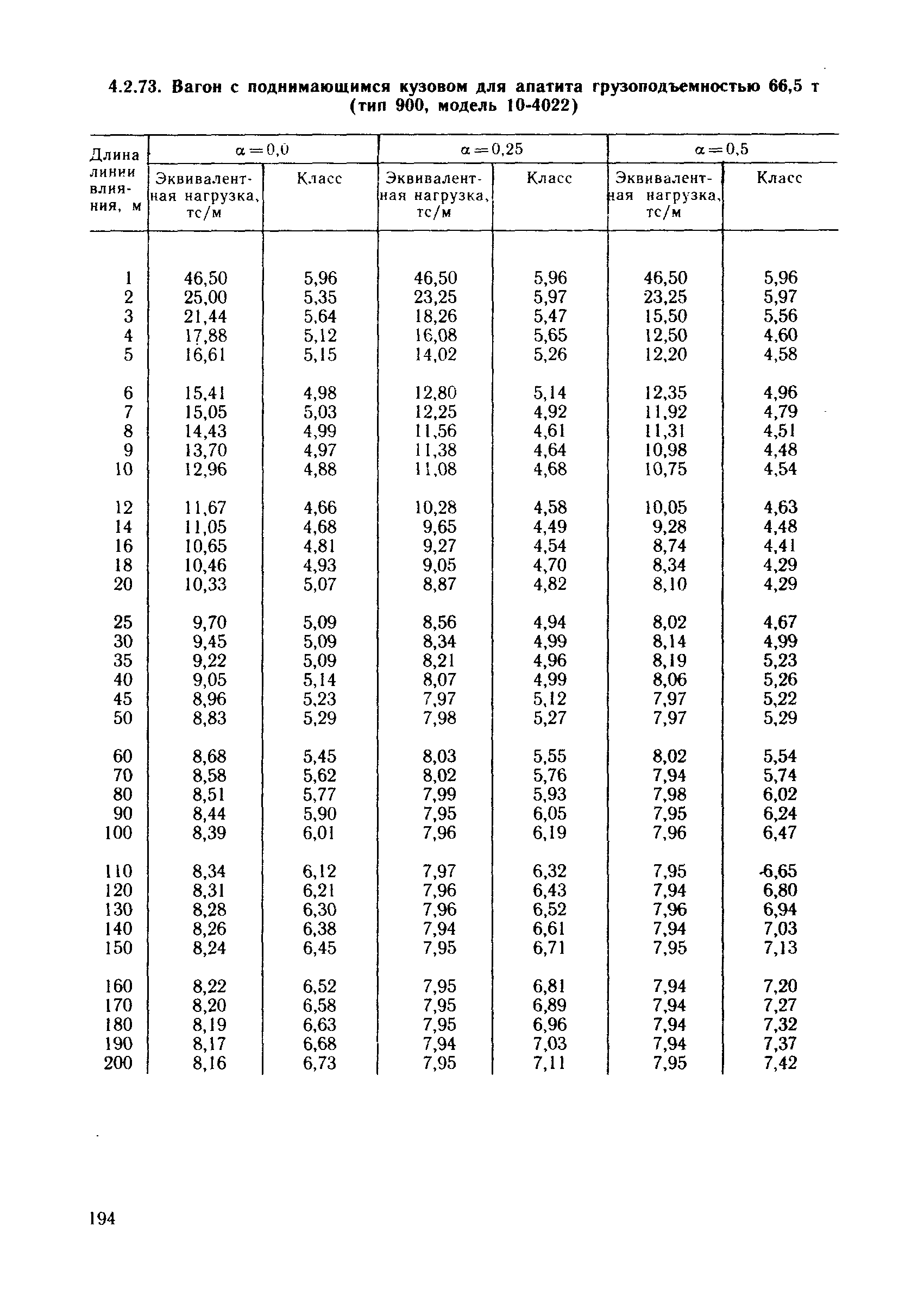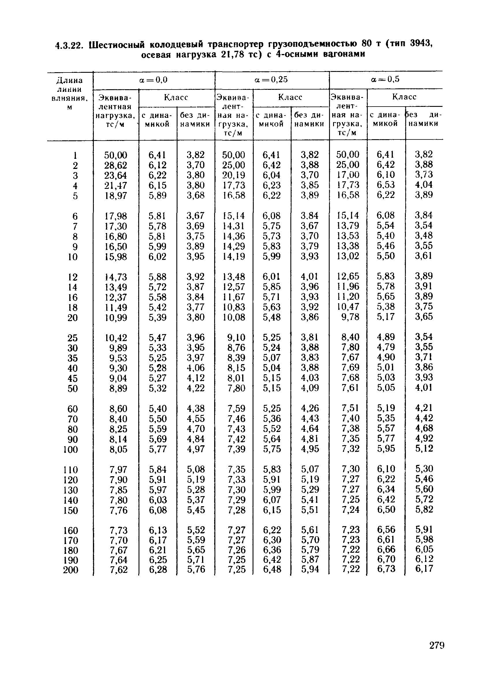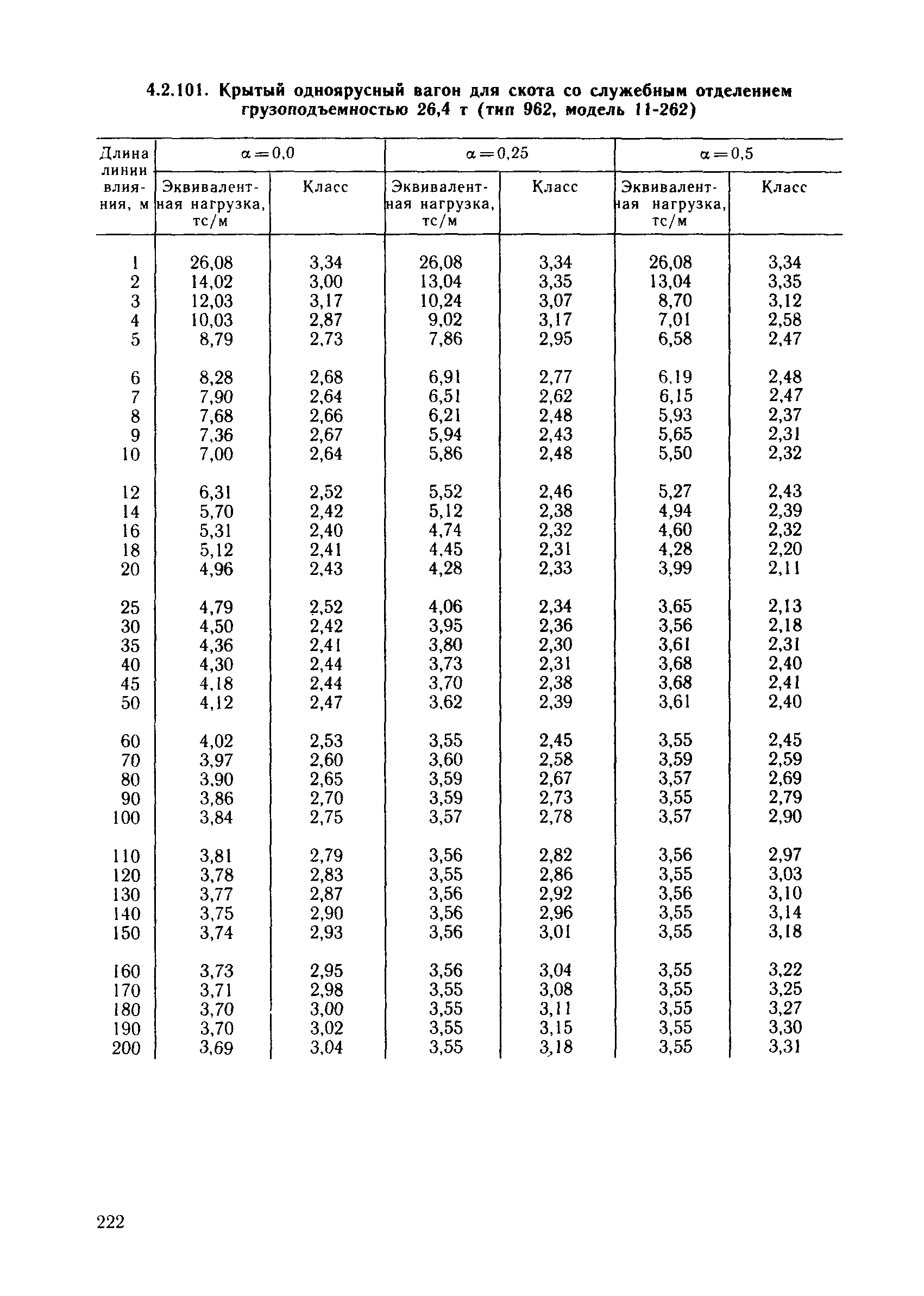 Руководство по пропуску подвижного состава по железнодорожным мостам| Статус: | не подлежит применению | | Название рус.: | Руководство по пропуску подвижного состава по железнодорожным мостам | | Дата добавления в базу: | 01.09.2013 | | Дата актуализации: | 01.01.2021 | | Дата окончания срока действия: | 26.08.2019 | | Область применения: | Приведены основные характеристики и результаты классификации (классы) обращающихся и перспективных локомотивов, вагонов, транспортеров, железнодорожных кранов и, кроме того, категории грузоподъемности мостов, обеспечивающих их пропуск. | | Оглавление: | 1. Общие положения 2. Определение условий пропуска поездных нагрузок 3. Характеристики подвижного состава сети железных дорог нашей страны 3.1. Локомотивы 3.2. Вагоны 3.3. Транспортеры 3.4. Консольные железнодорожные краны 4. Классификация нагрузок 4.1. Эквивалентные нагрузки и классы сплоток электровозов, тепловозов, паровозов 4.2. Эквивалентные нагрузки и классы обращающихся и перспективных вагонов 4.3. Эквивалентные нагрузки и классы транспортеров 4.4. Эквивалентные нагрузки и классы железнодорожных консольных кранов Приложение 1. Примеры классификации подвижного состава и определения условий пропуска его по металлическим пролетным строениям железнодорожных мостов Приложение 2. Определение эквивалентной нагрузки от классифицируемого подвижного состава Приложение 3. Динамические коэффициенты, их отношения и эталонная нагрузка от HI 364 Приложение 4. Вагоны «прикрытия» транспортеров Приложение 5. Эквивалентные нагрузки и классы эталонной нагрузки, соответствующие грузоподъемности мостов II-IV категорий Приложение 6. Пример определения допускаемой временной нагрузки на элементы про¬летных строений, имеющих многозначную линию влияния, разделенную одним участком другого знака длиной более 15 м | | Разработан: | Научно-исследовательский институт мостов
