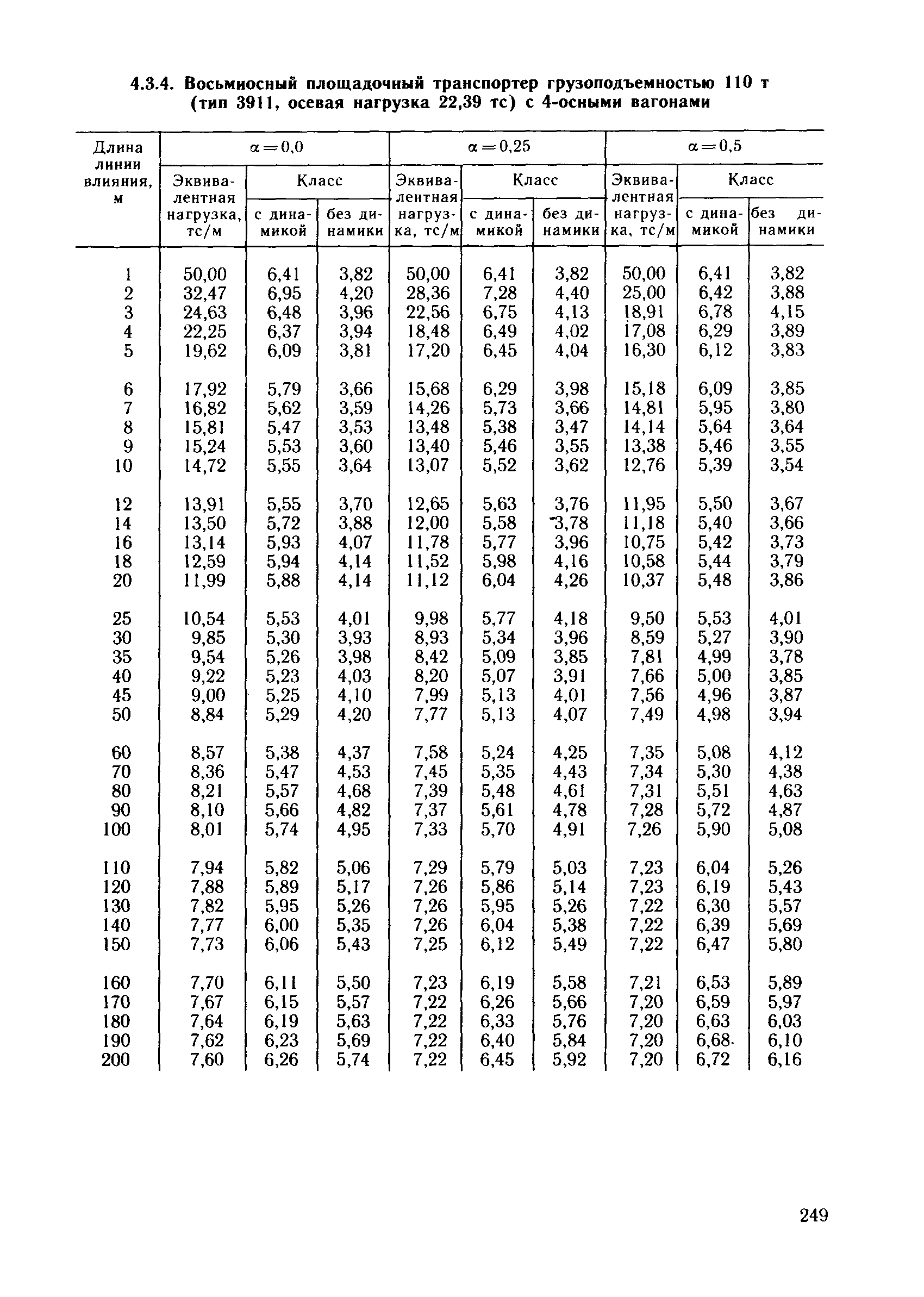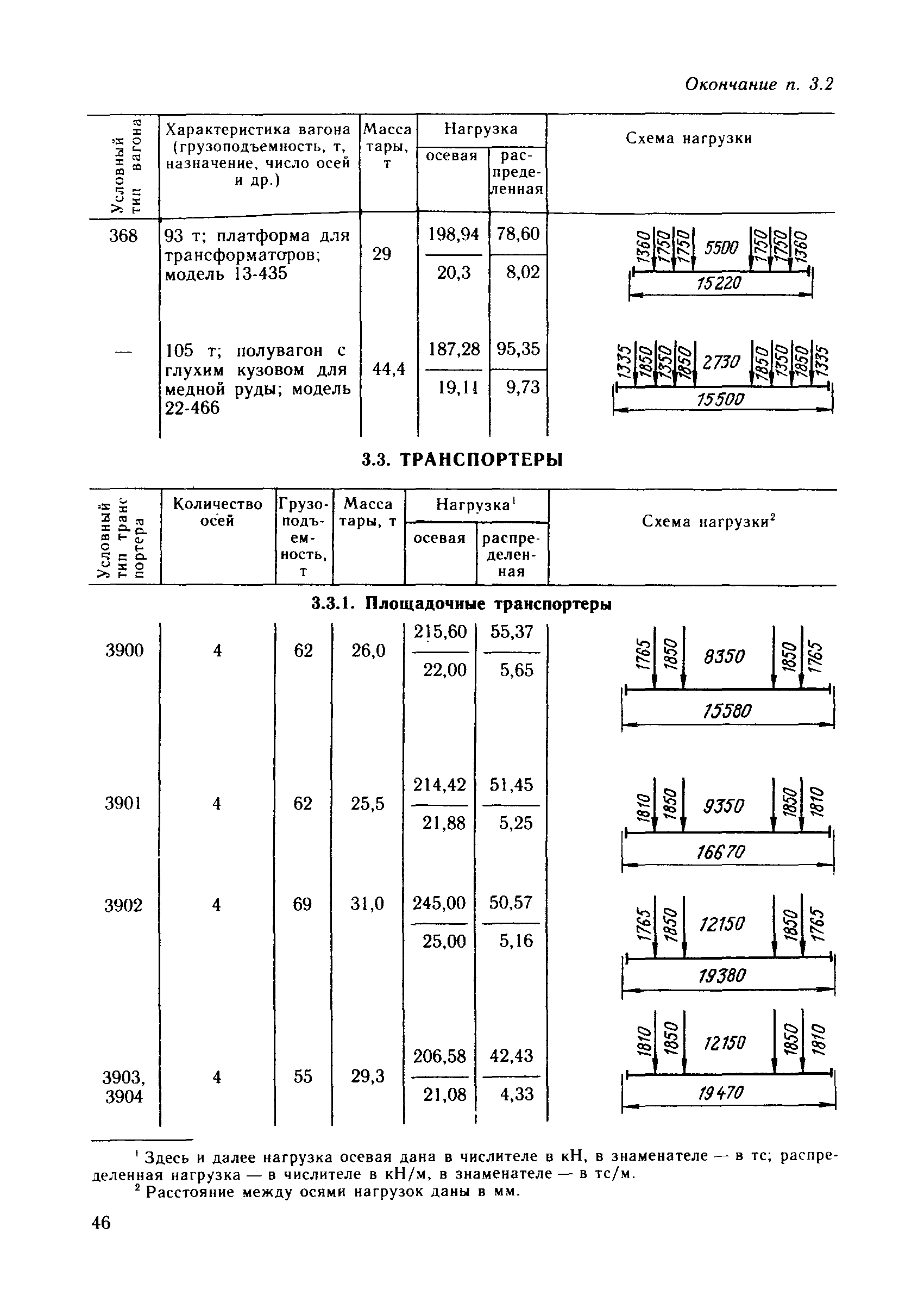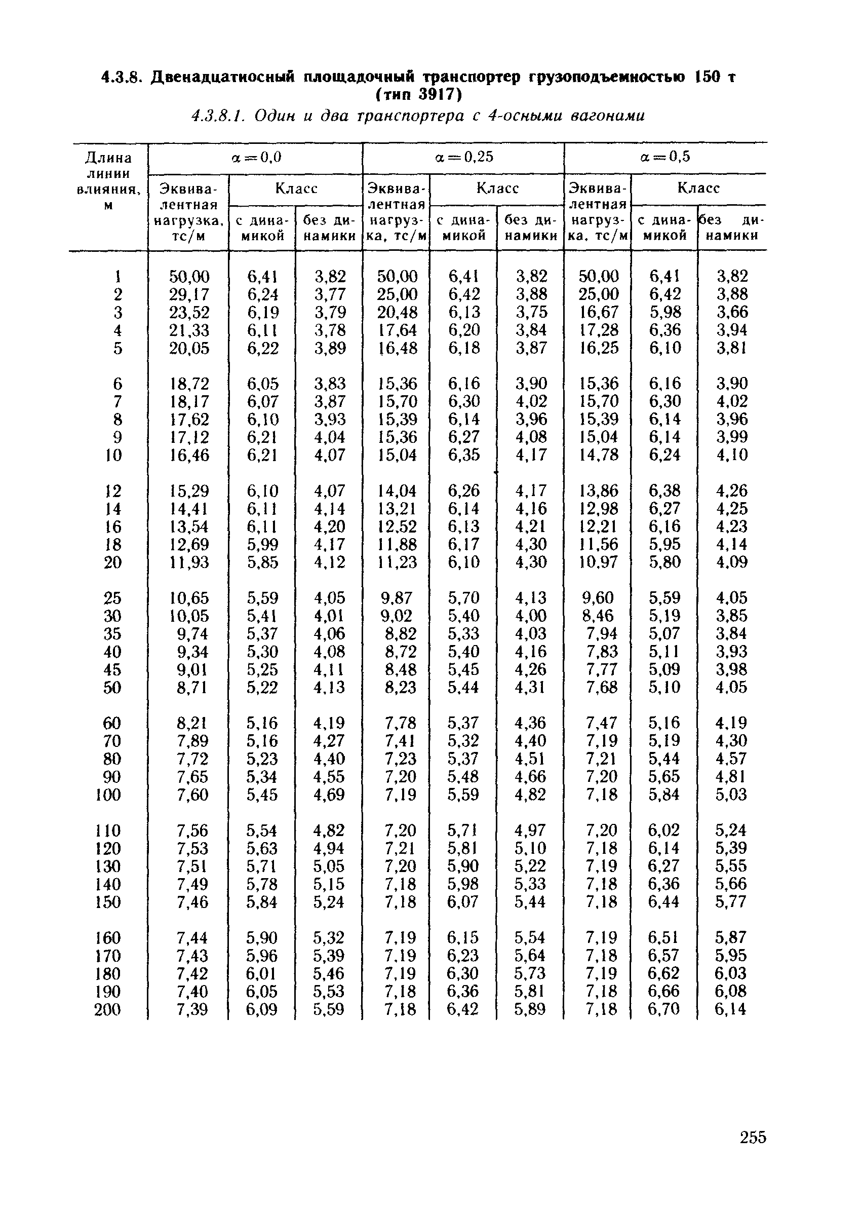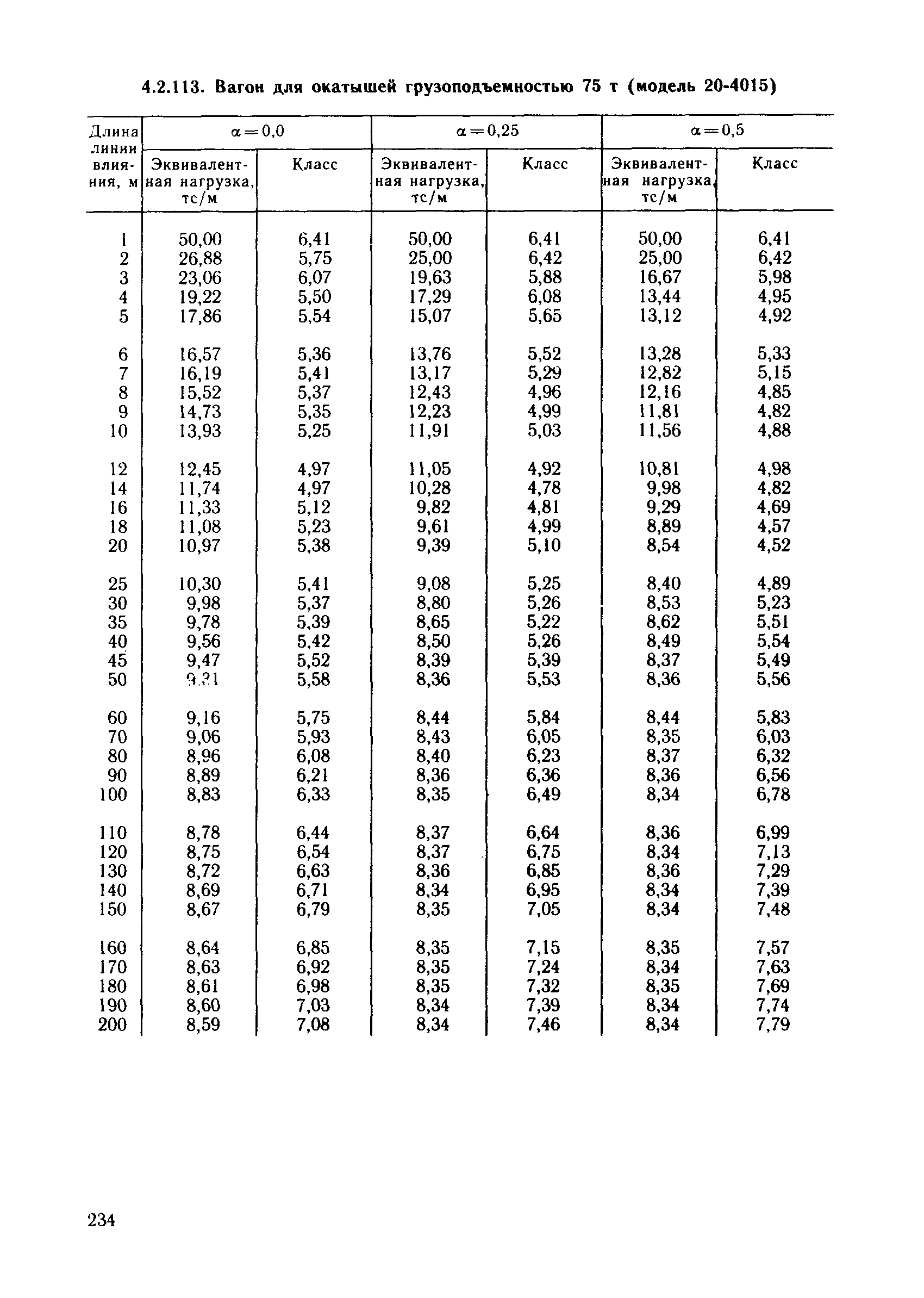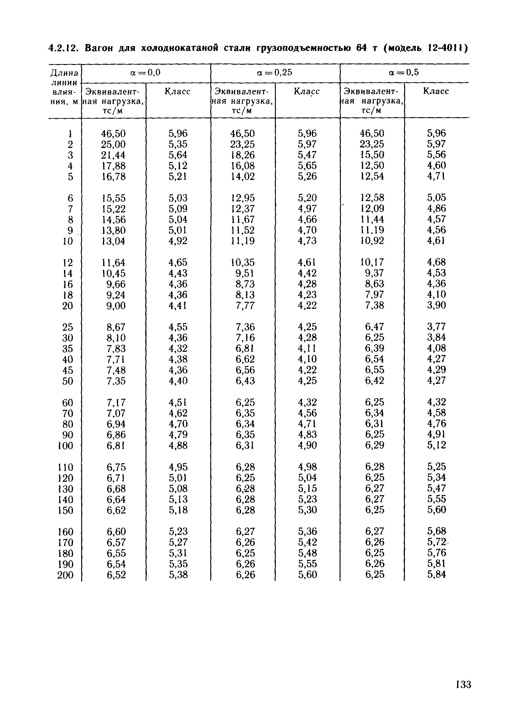 Руководство по пропуску подвижного состава по железнодорожным мостам| Статус: | не подлежит применению | | Название рус.: | Руководство по пропуску подвижного состава по железнодорожным мостам | | Дата добавления в базу: | 01.09.2013 | | Дата актуализации: | 01.01.2021 | | Дата окончания срока действия: | 26.08.2019 | | Область применения: | Приведены основные характеристики и результаты классификации (классы) обращающихся и перспективных локомотивов, вагонов, транспортеров, железнодорожных кранов и, кроме того, категории грузоподъемности мостов, обеспечивающих их пропуск. | | Оглавление: | 1. Общие положения 2. Определение условий пропуска поездных нагрузок 3. Характеристики подвижного состава сети железных дорог нашей страны 3.1. Локомотивы 3.2. Вагоны 3.3. Транспортеры 3.4. Консольные железнодорожные краны 4. Классификация нагрузок 4.1. Эквивалентные нагрузки и классы сплоток электровозов, тепловозов, паровозов 4.2. Эквивалентные нагрузки и классы обращающихся и перспективных вагонов 4.3. Эквивалентные нагрузки и классы транспортеров 4.4. Эквивалентные нагрузки и классы железнодорожных консольных кранов Приложение 1. Примеры классификации подвижного состава и определения условий пропуска его по металлическим пролетным строениям железнодорожных мостов Приложение 2. Определение эквивалентной нагрузки от классифицируемого подвижного состава Приложение 3. Динамические коэффициенты, их отношения и эталонная нагрузка от HI 364 Приложение 4. Вагоны «прикрытия» транспортеров Приложение 5. Эквивалентные нагрузки и классы эталонной нагрузки, соответствующие грузоподъемности мостов II-IV категорий Приложение 6. Пример определения допускаемой временной нагрузки на элементы про¬летных строений, имеющих многозначную линию влияния, разделенную одним участком другого знака длиной более 15 м | | Разработан: | Научно-исследовательский институт мостов
