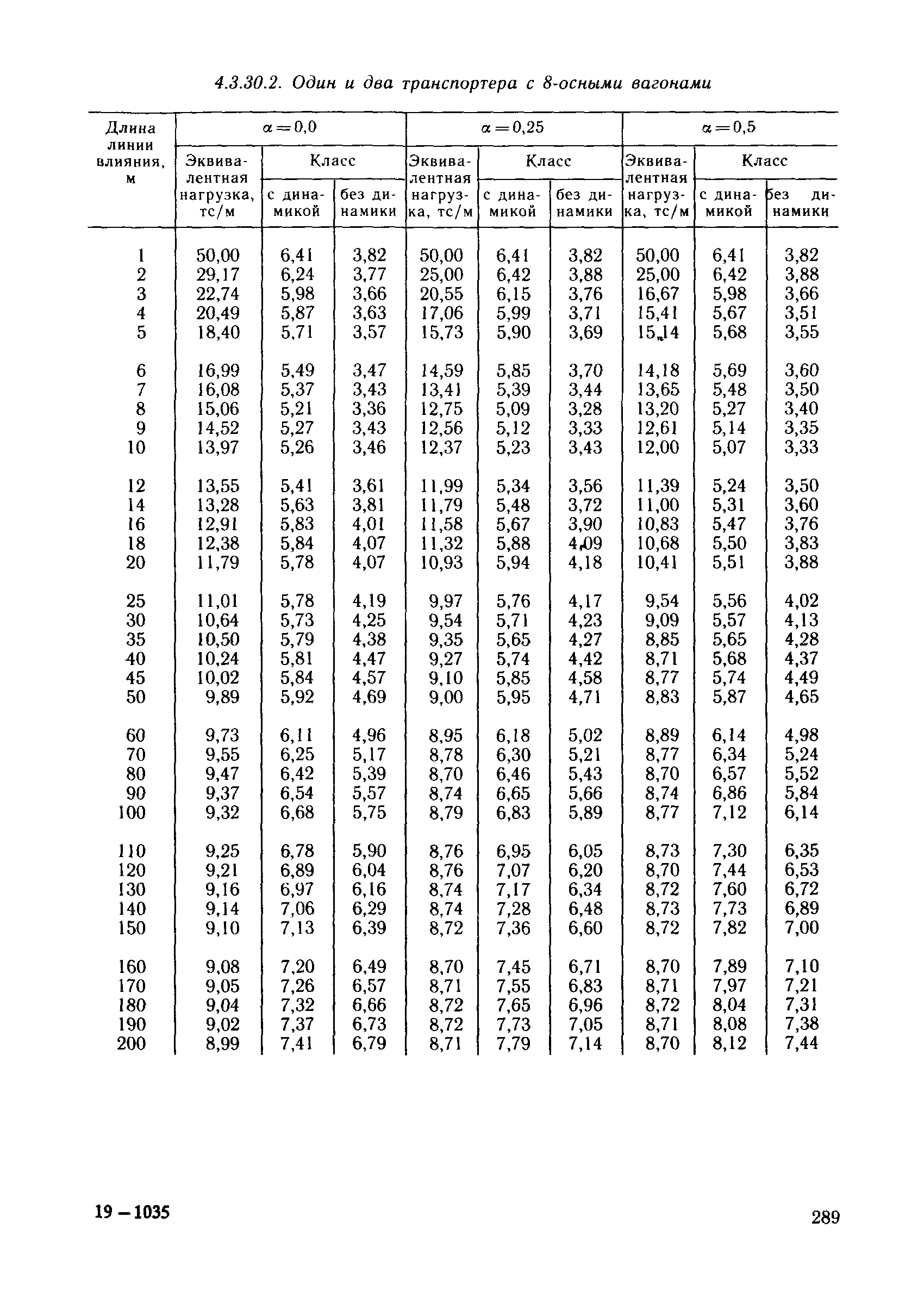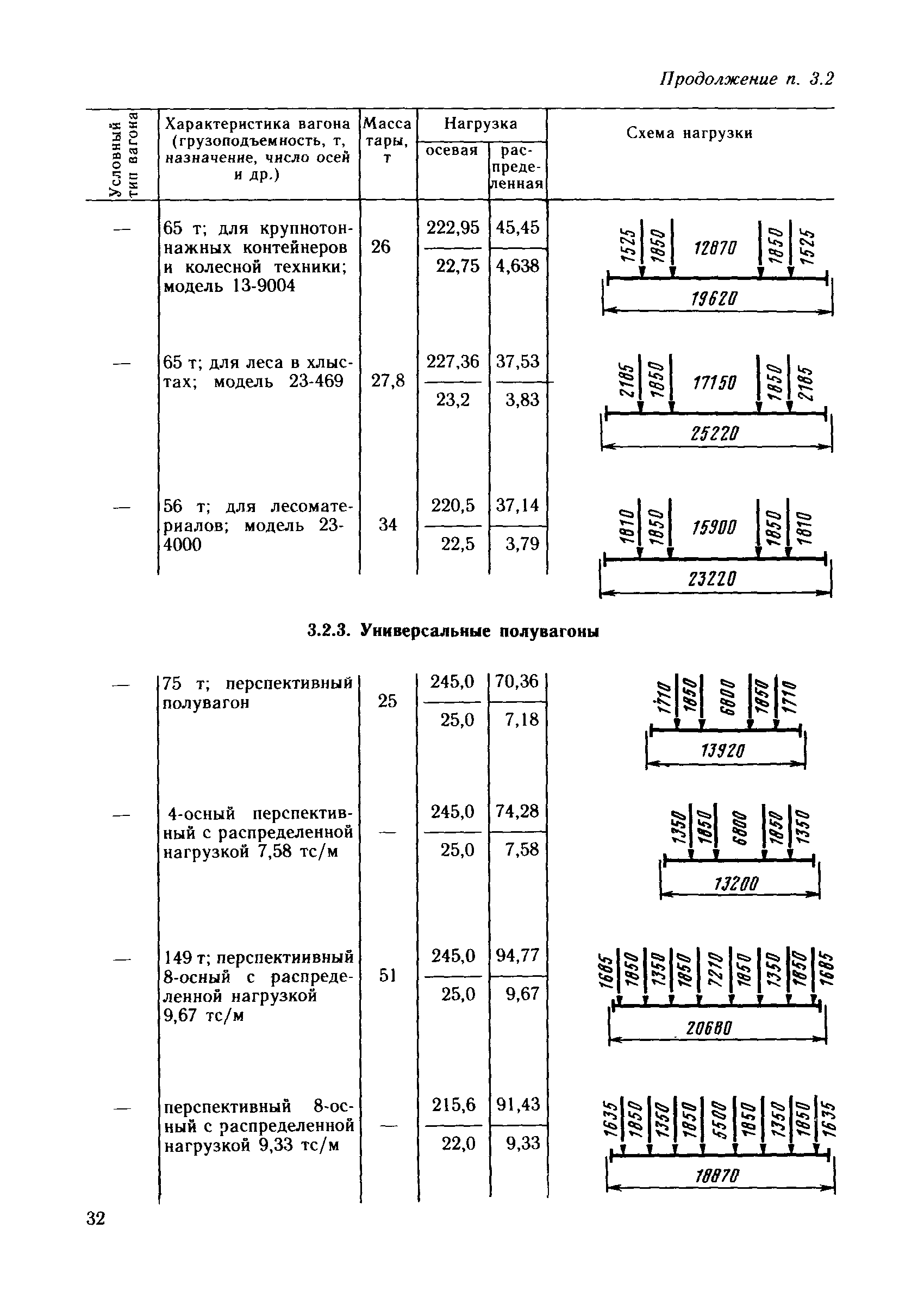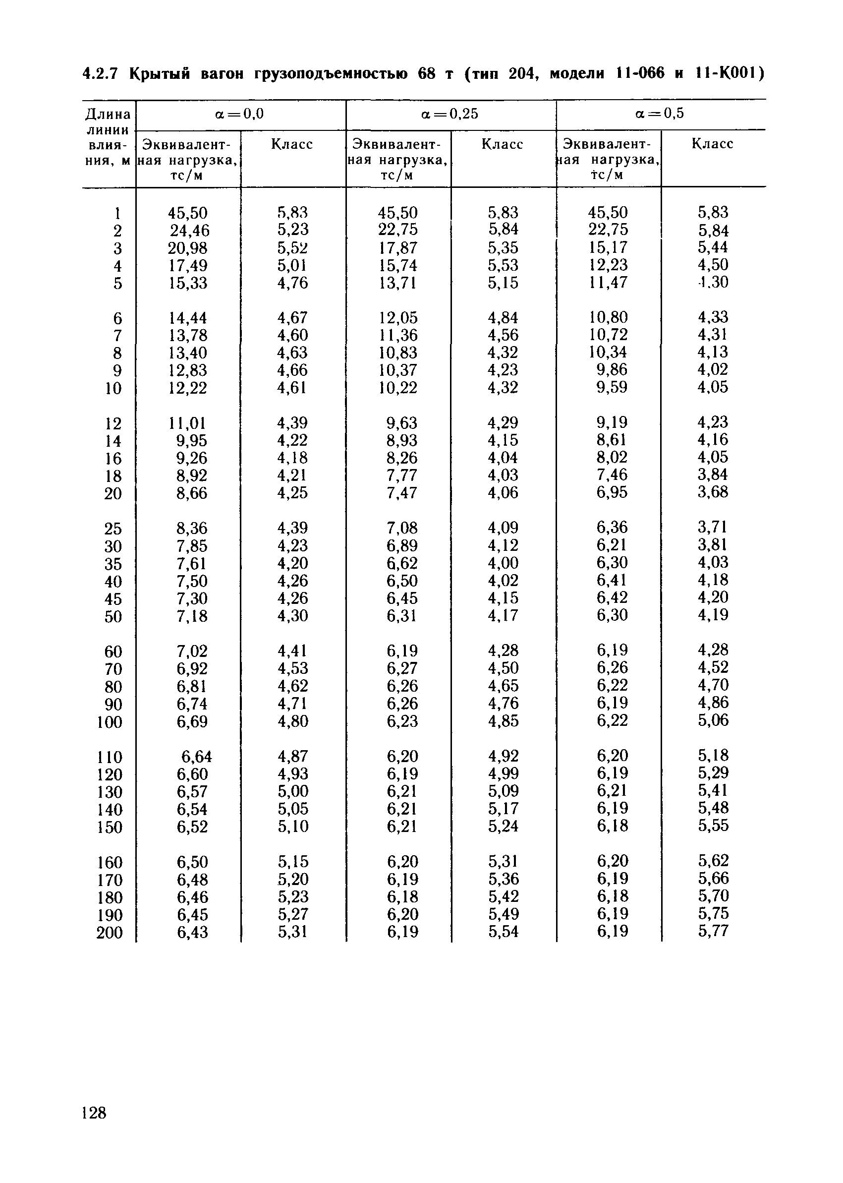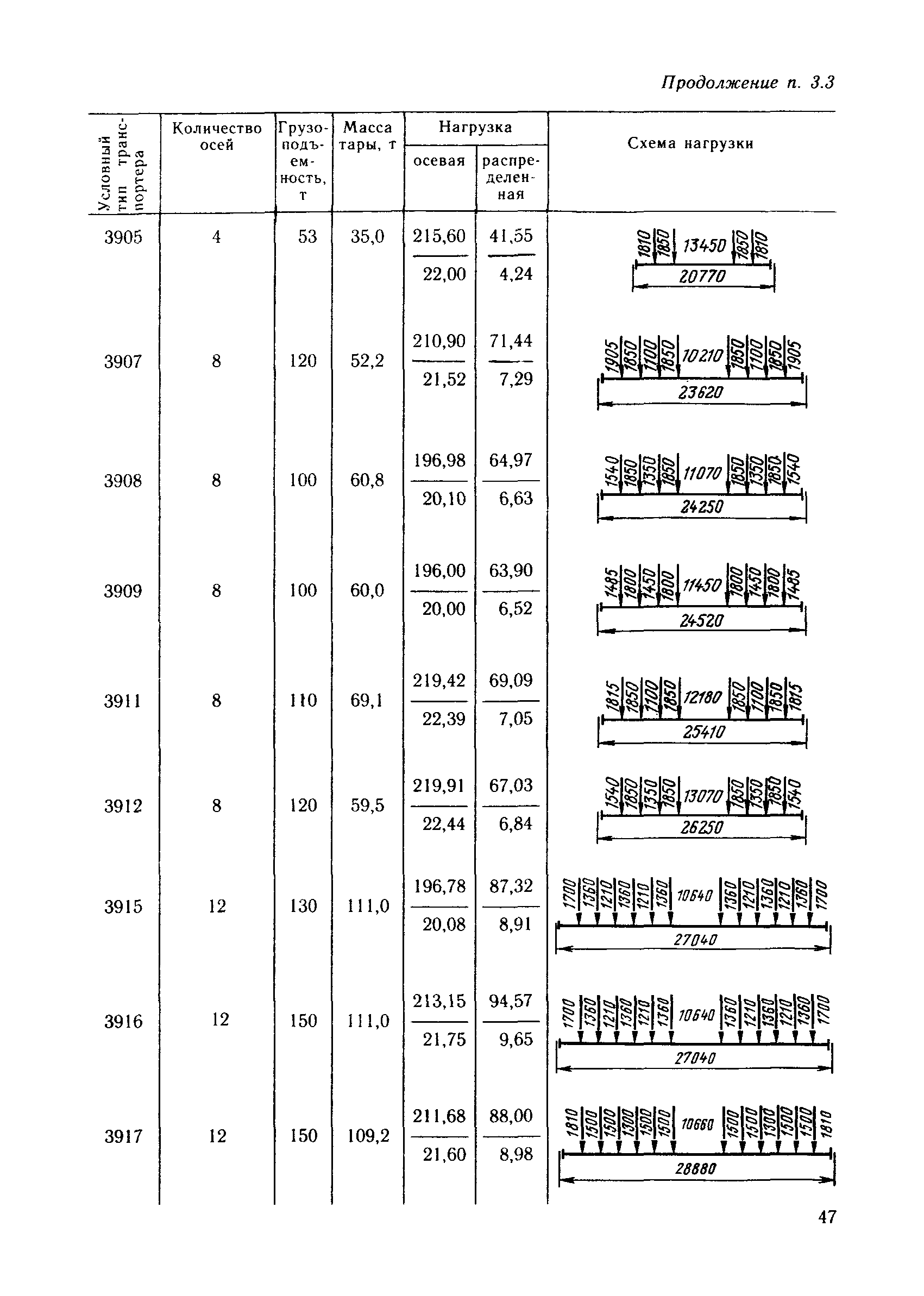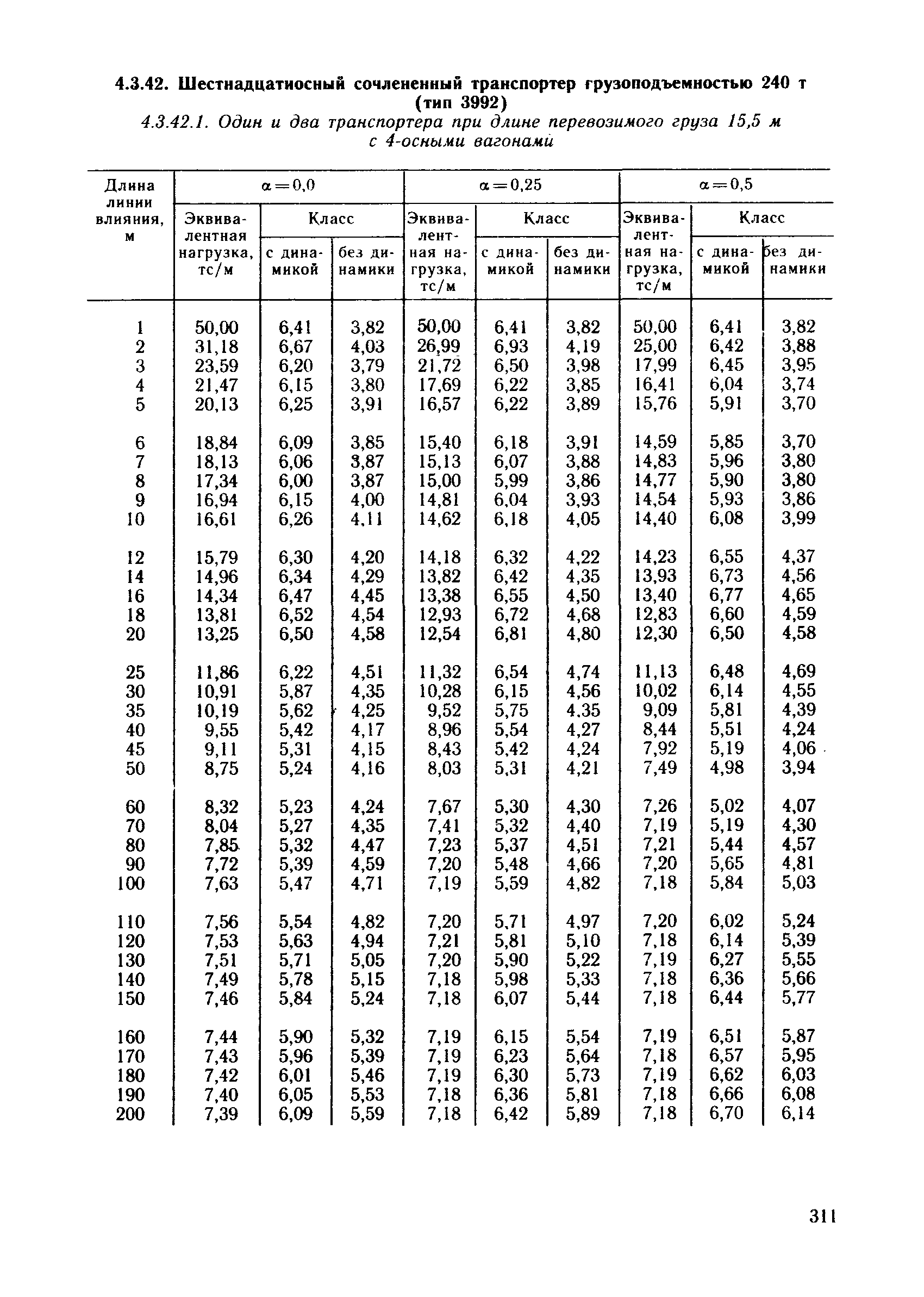 Руководство по пропуску подвижного состава по железнодорожным мостам| Статус: | не подлежит применению | | Название рус.: | Руководство по пропуску подвижного состава по железнодорожным мостам | | Дата добавления в базу: | 01.09.2013 | | Дата актуализации: | 01.01.2021 | | Дата окончания срока действия: | 26.08.2019 | | Область применения: | Приведены основные характеристики и результаты классификации (классы) обращающихся и перспективных локомотивов, вагонов, транспортеров, железнодорожных кранов и, кроме того, категории грузоподъемности мостов, обеспечивающих их пропуск. | | Оглавление: | 1. Общие положения 2. Определение условий пропуска поездных нагрузок 3. Характеристики подвижного состава сети железных дорог нашей страны 3.1. Локомотивы 3.2. Вагоны 3.3. Транспортеры 3.4. Консольные железнодорожные краны 4. Классификация нагрузок 4.1. Эквивалентные нагрузки и классы сплоток электровозов, тепловозов, паровозов 4.2. Эквивалентные нагрузки и классы обращающихся и перспективных вагонов 4.3. Эквивалентные нагрузки и классы транспортеров 4.4. Эквивалентные нагрузки и классы железнодорожных консольных кранов Приложение 1. Примеры классификации подвижного состава и определения условий пропуска его по металлическим пролетным строениям железнодорожных мостов Приложение 2. Определение эквивалентной нагрузки от классифицируемого подвижного состава Приложение 3. Динамические коэффициенты, их отношения и эталонная нагрузка от HI 364 Приложение 4. Вагоны «прикрытия» транспортеров Приложение 5. Эквивалентные нагрузки и классы эталонной нагрузки, соответствующие грузоподъемности мостов II-IV категорий Приложение 6. Пример определения допускаемой временной нагрузки на элементы про¬летных строений, имеющих многозначную линию влияния, разделенную одним участком другого знака длиной более 15 м | | Разработан: | Научно-исследовательский институт мостов