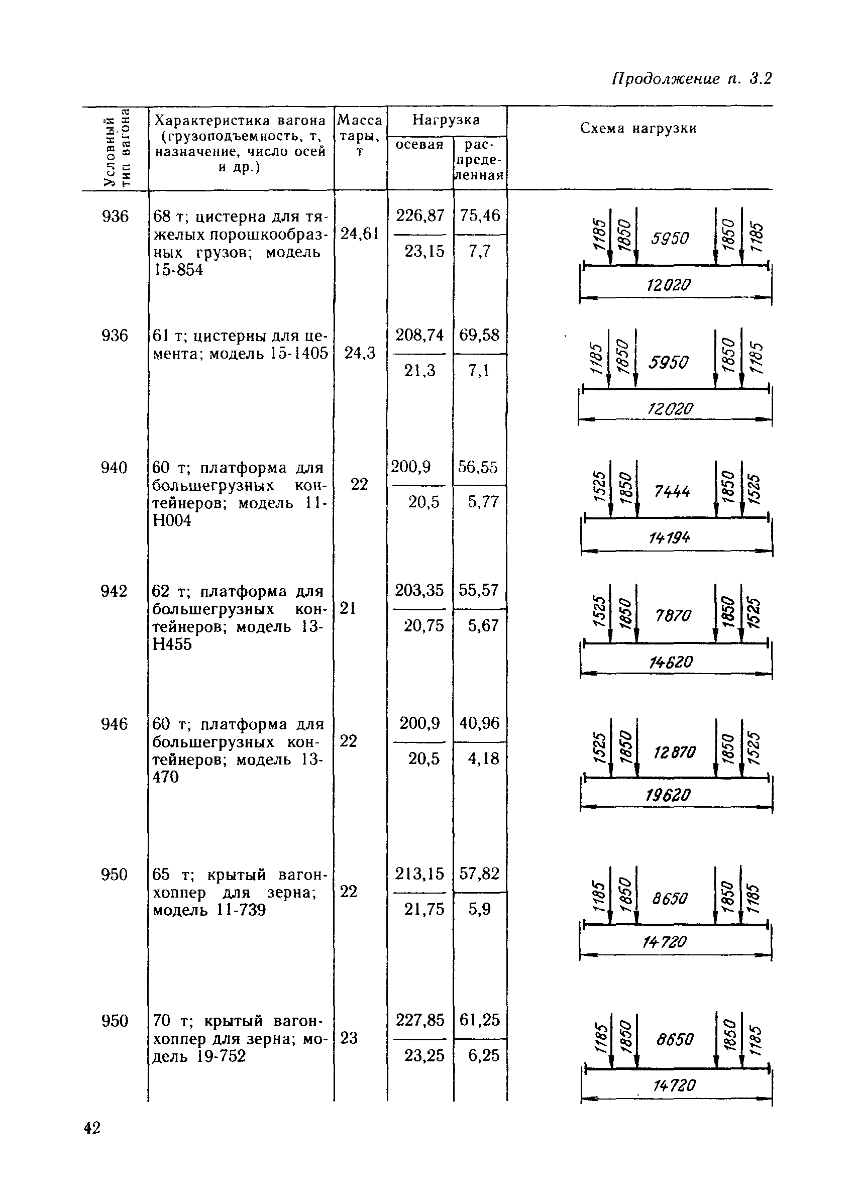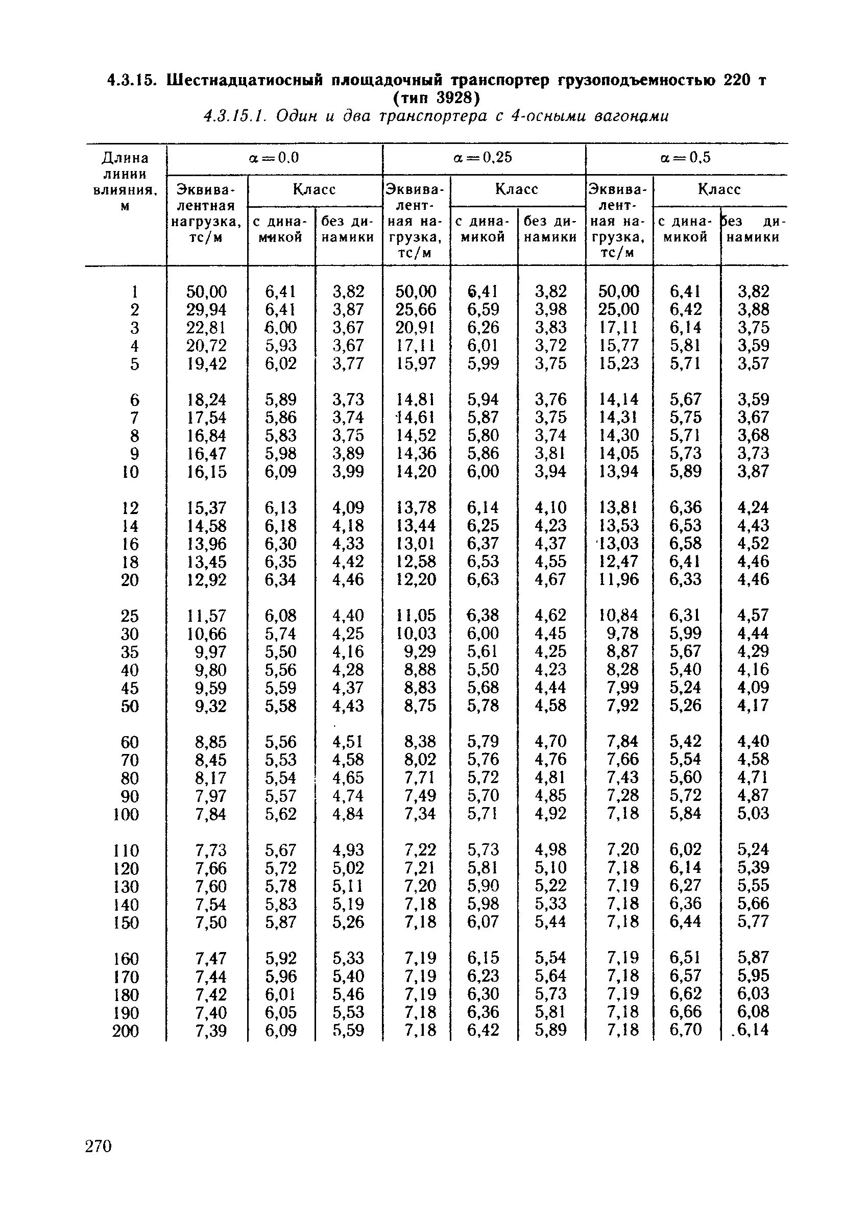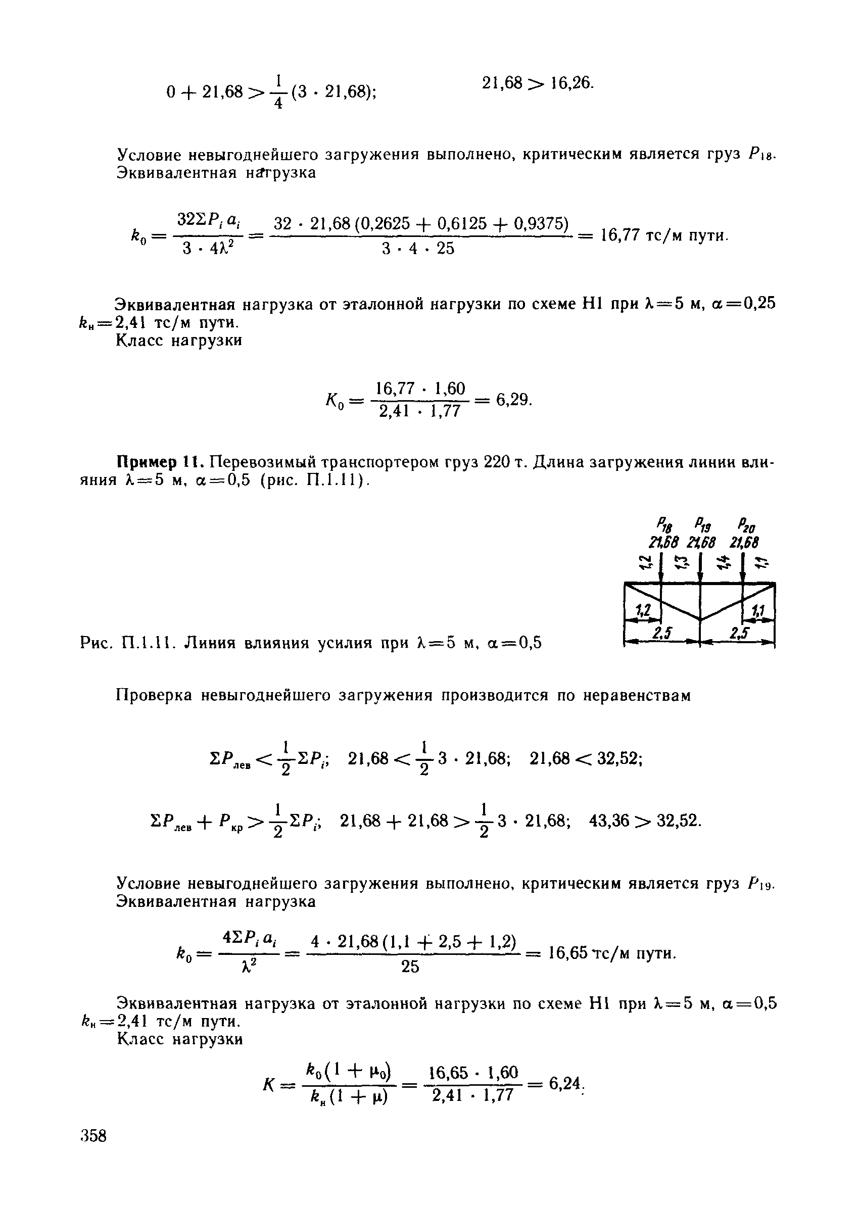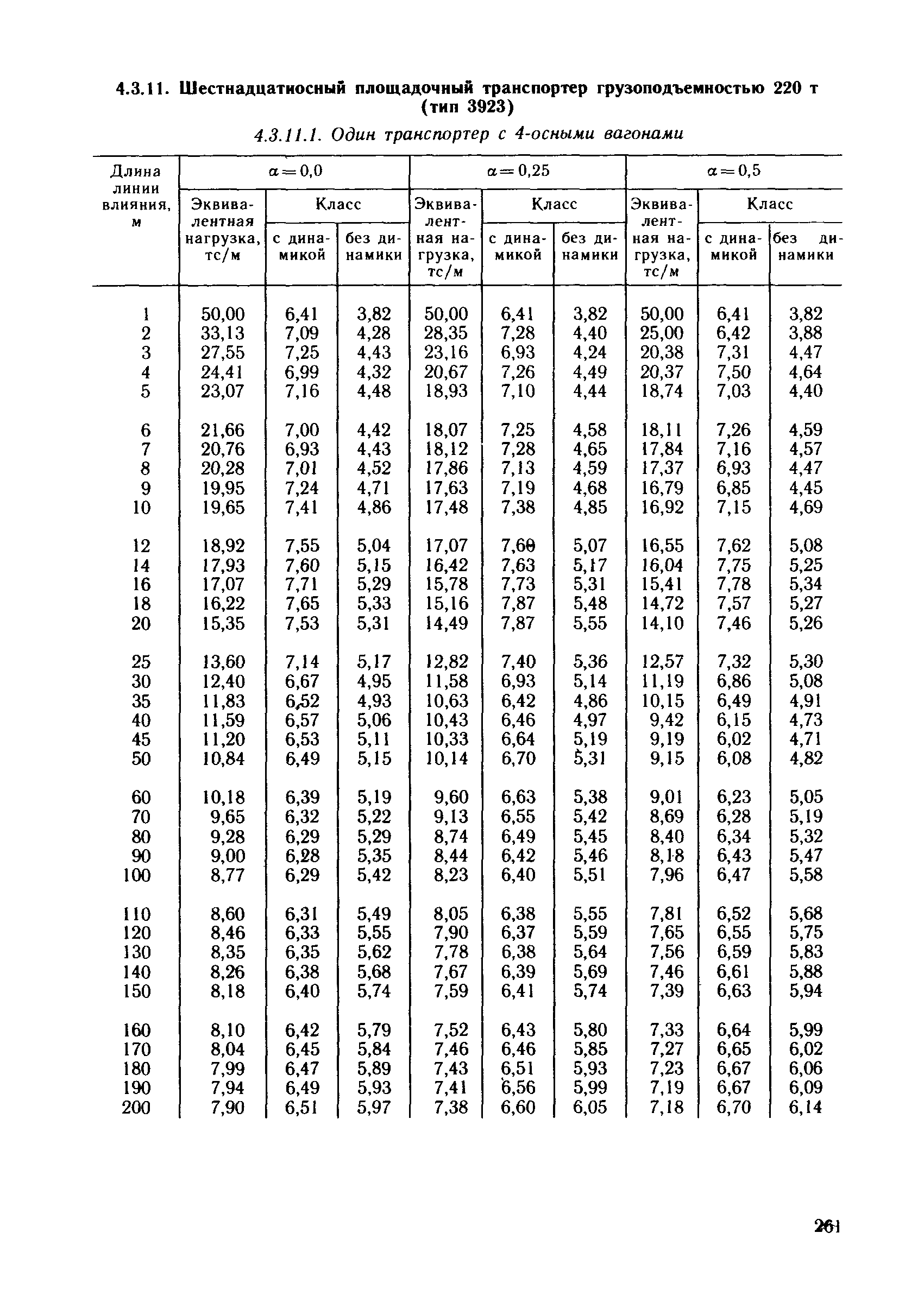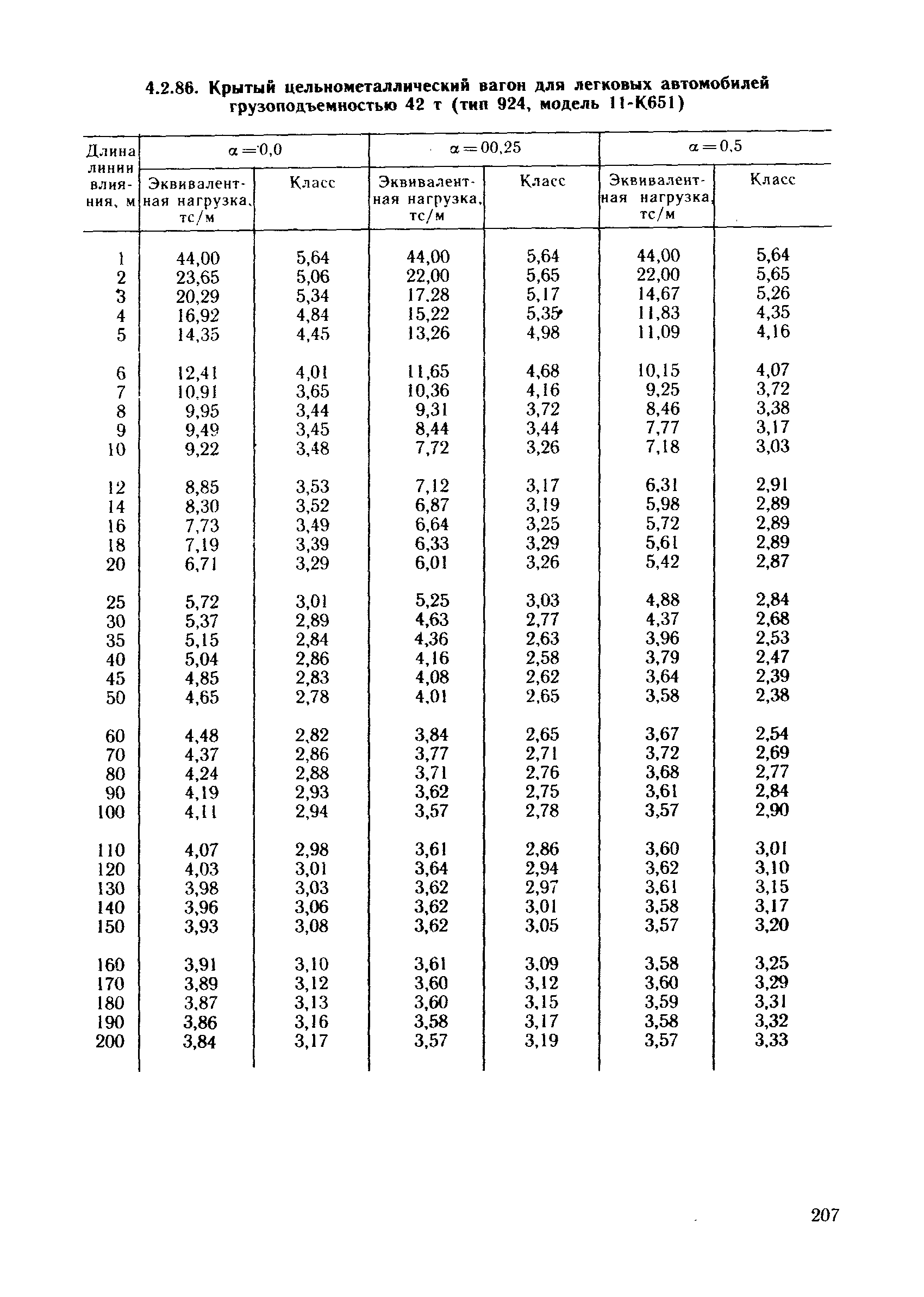 Руководство по пропуску подвижного состава по железнодорожным мостам| Статус: | не подлежит применению | | Название рус.: | Руководство по пропуску подвижного состава по железнодорожным мостам | | Дата добавления в базу: | 01.09.2013 | | Дата актуализации: | 01.01.2021 | | Дата окончания срока действия: | 26.08.2019 | | Область применения: | Приведены основные характеристики и результаты классификации (классы) обращающихся и перспективных локомотивов, вагонов, транспортеров, железнодорожных кранов и, кроме того, категории грузоподъемности мостов, обеспечивающих их пропуск. | | Оглавление: | 1. Общие положения 2. Определение условий пропуска поездных нагрузок 3. Характеристики подвижного состава сети железных дорог нашей страны 3.1. Локомотивы 3.2. Вагоны 3.3. Транспортеры 3.4. Консольные железнодорожные краны 4. Классификация нагрузок 4.1. Эквивалентные нагрузки и классы сплоток электровозов, тепловозов, паровозов 4.2. Эквивалентные нагрузки и классы обращающихся и перспективных вагонов 4.3. Эквивалентные нагрузки и классы транспортеров 4.4. Эквивалентные нагрузки и классы железнодорожных консольных кранов Приложение 1. Примеры классификации подвижного состава и определения условий пропуска его по металлическим пролетным строениям железнодорожных мостов Приложение 2. Определение эквивалентной нагрузки от классифицируемого подвижного состава Приложение 3. Динамические коэффициенты, их отношения и эталонная нагрузка от HI 364 Приложение 4. Вагоны «прикрытия» транспортеров Приложение 5. Эквивалентные нагрузки и классы эталонной нагрузки, соответствующие грузоподъемности мостов II-IV категорий Приложение 6. Пример определения допускаемой временной нагрузки на элементы про¬летных строений, имеющих многозначную линию влияния, разделенную одним участком другого знака длиной более 15 м | | Разработан: | Научно-исследовательский институт мостов