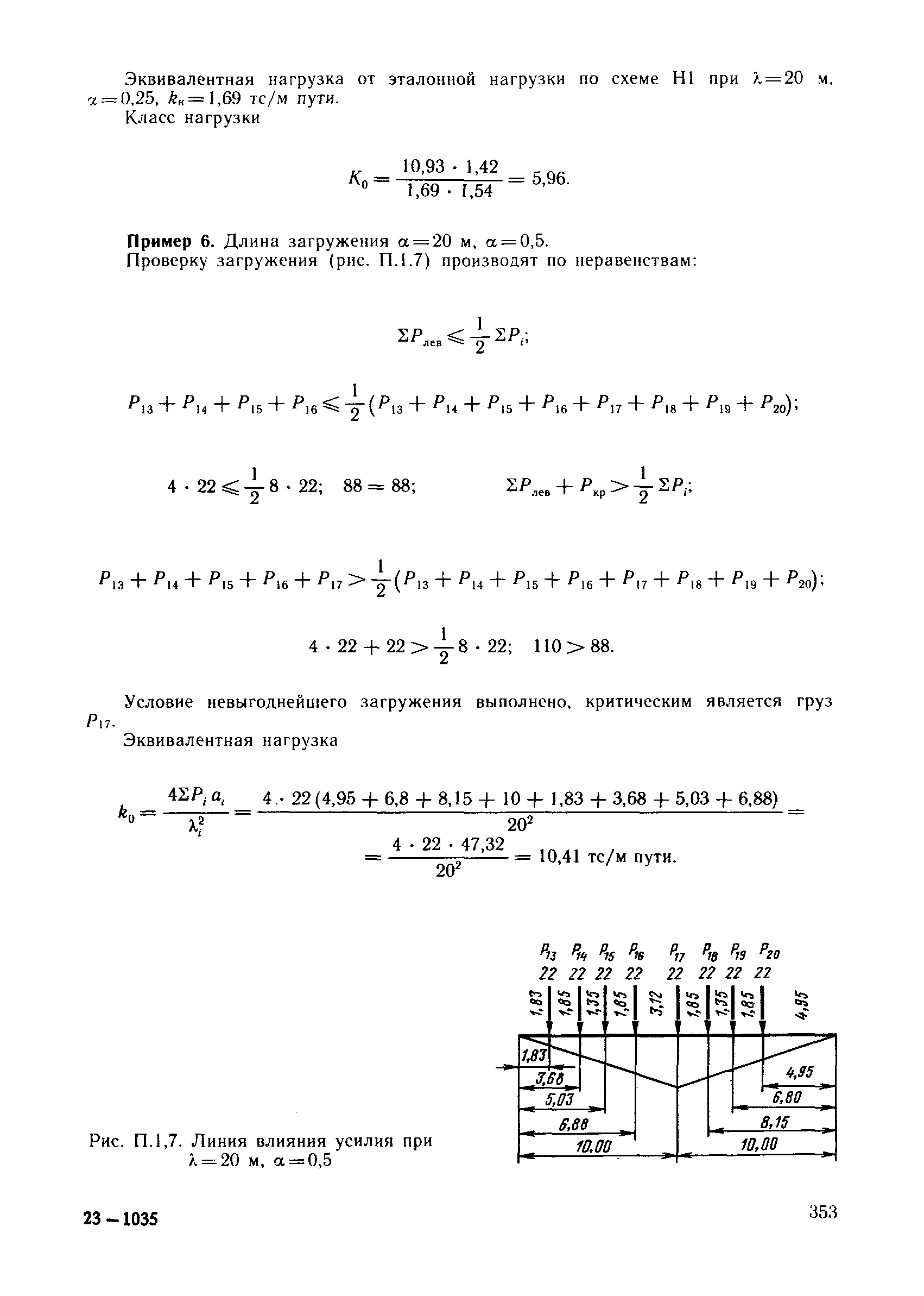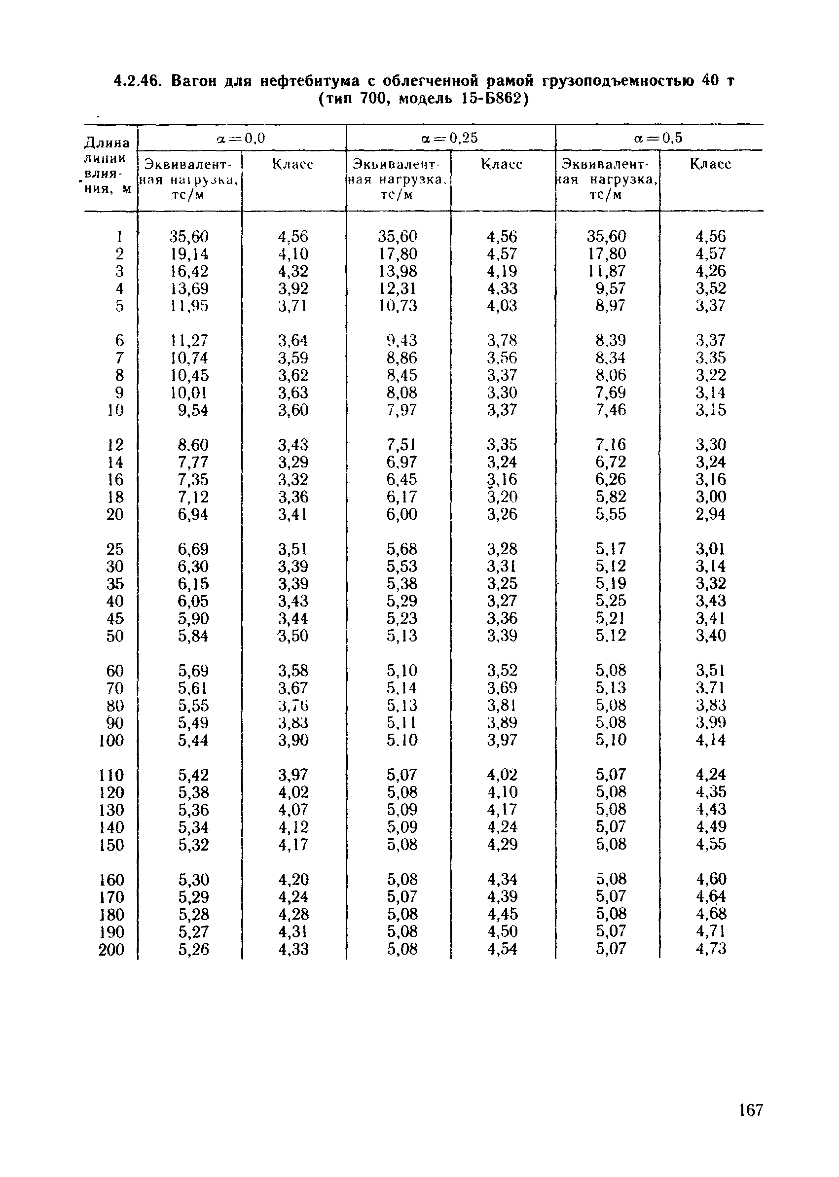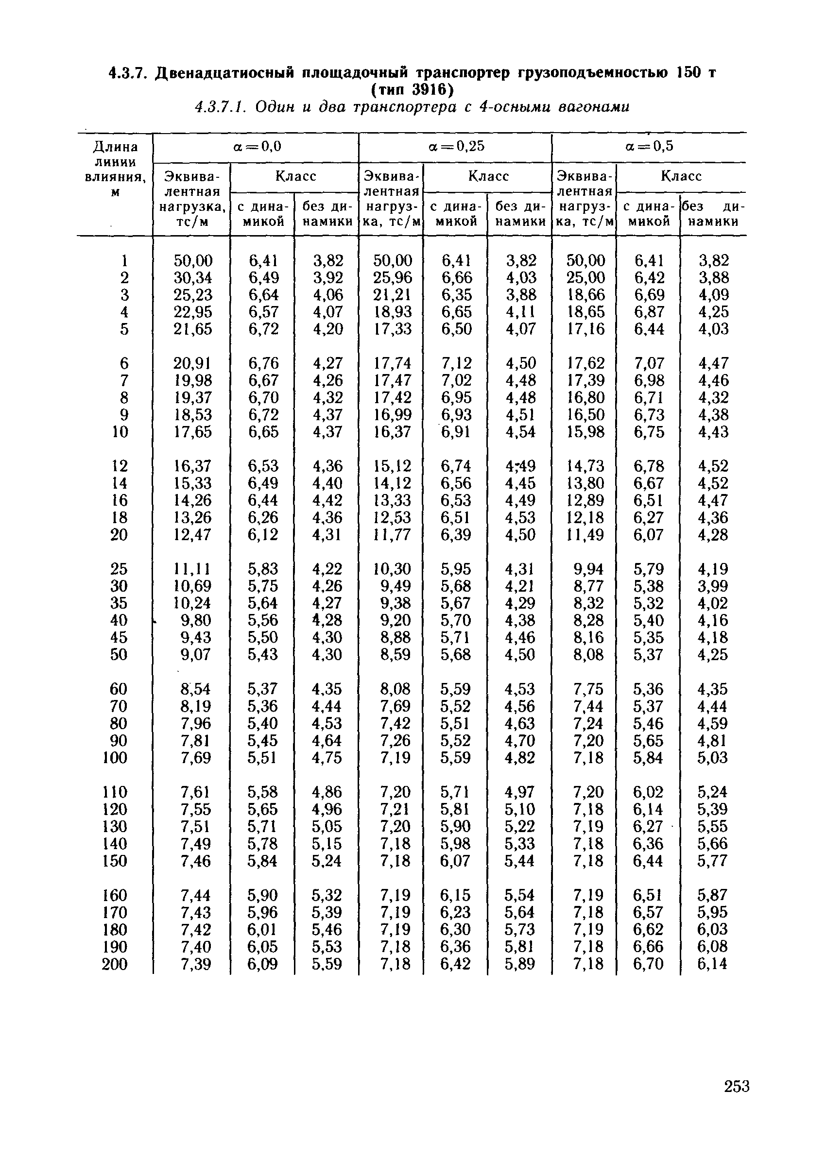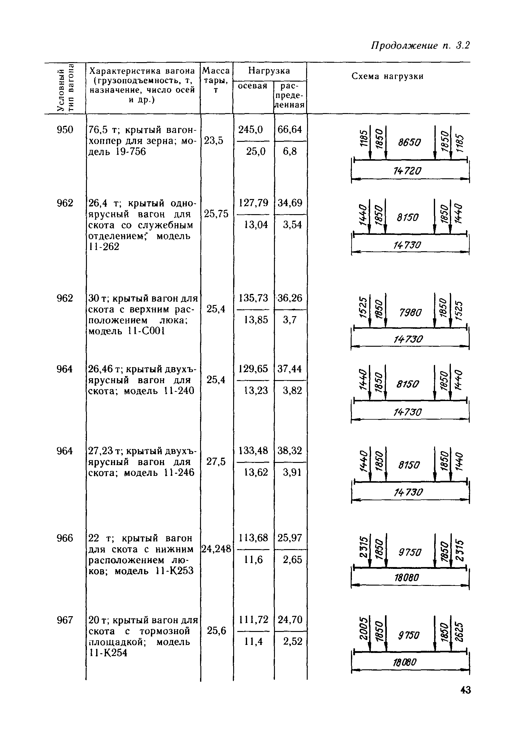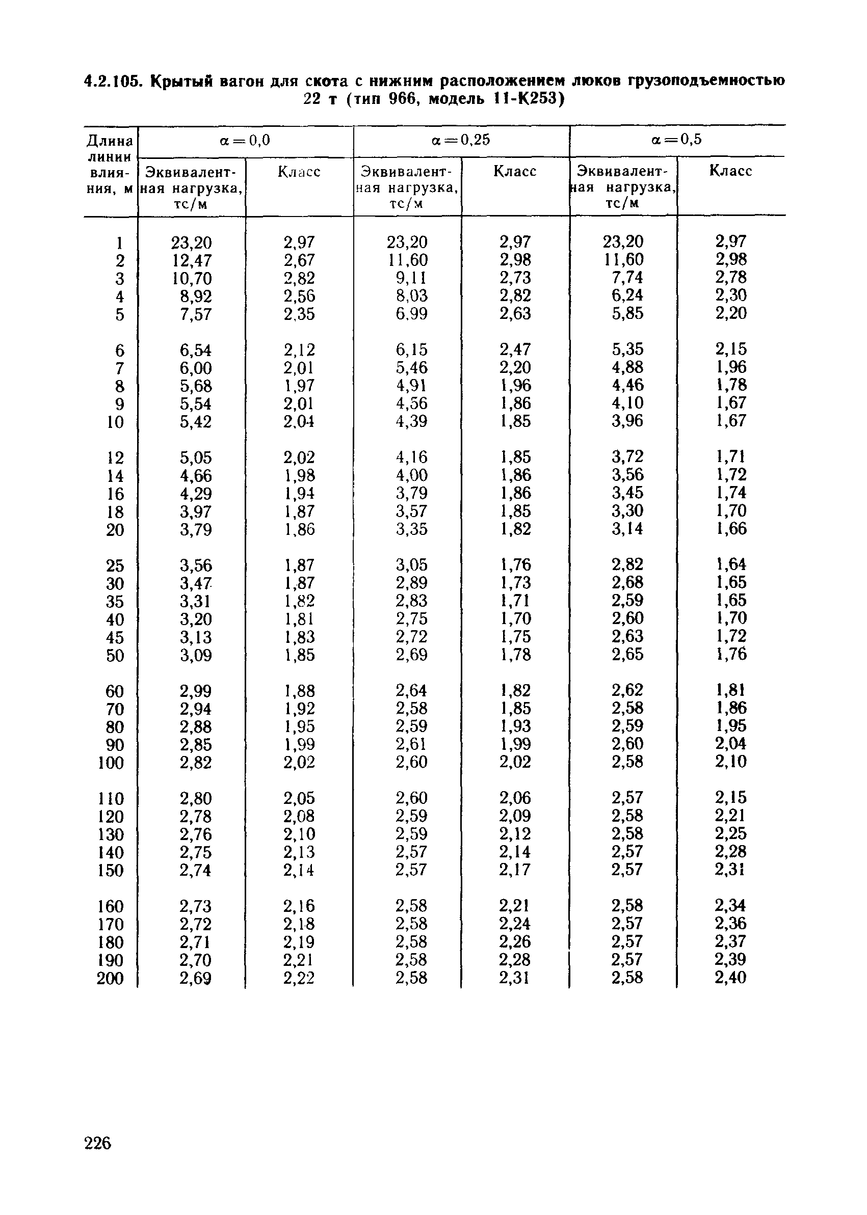 Руководство по пропуску подвижного состава по железнодорожным мостам| Статус: | не подлежит применению | | Название рус.: | Руководство по пропуску подвижного состава по железнодорожным мостам | | Дата добавления в базу: | 01.09.2013 | | Дата актуализации: | 01.01.2021 | | Дата окончания срока действия: | 26.08.2019 | | Область применения: | Приведены основные характеристики и результаты классификации (классы) обращающихся и перспективных локомотивов, вагонов, транспортеров, железнодорожных кранов и, кроме того, категории грузоподъемности мостов, обеспечивающих их пропуск. | | Оглавление: | 1. Общие положения 2. Определение условий пропуска поездных нагрузок 3. Характеристики подвижного состава сети железных дорог нашей страны 3.1. Локомотивы 3.2. Вагоны 3.3. Транспортеры 3.4. Консольные железнодорожные краны 4. Классификация нагрузок 4.1. Эквивалентные нагрузки и классы сплоток электровозов, тепловозов, паровозов 4.2. Эквивалентные нагрузки и классы обращающихся и перспективных вагонов 4.3. Эквивалентные нагрузки и классы транспортеров 4.4. Эквивалентные нагрузки и классы железнодорожных консольных кранов Приложение 1. Примеры классификации подвижного состава и определения условий пропуска его по металлическим пролетным строениям железнодорожных мостов Приложение 2. Определение эквивалентной нагрузки от классифицируемого подвижного состава Приложение 3. Динамические коэффициенты, их отношения и эталонная нагрузка от HI 364 Приложение 4. Вагоны «прикрытия» транспортеров Приложение 5. Эквивалентные нагрузки и классы эталонной нагрузки, соответствующие грузоподъемности мостов II-IV категорий Приложение 6. Пример определения допускаемой временной нагрузки на элементы про¬летных строений, имеющих многозначную линию влияния, разделенную одним участком другого знака длиной более 15 м | | Разработан: | Научно-исследовательский институт мостов