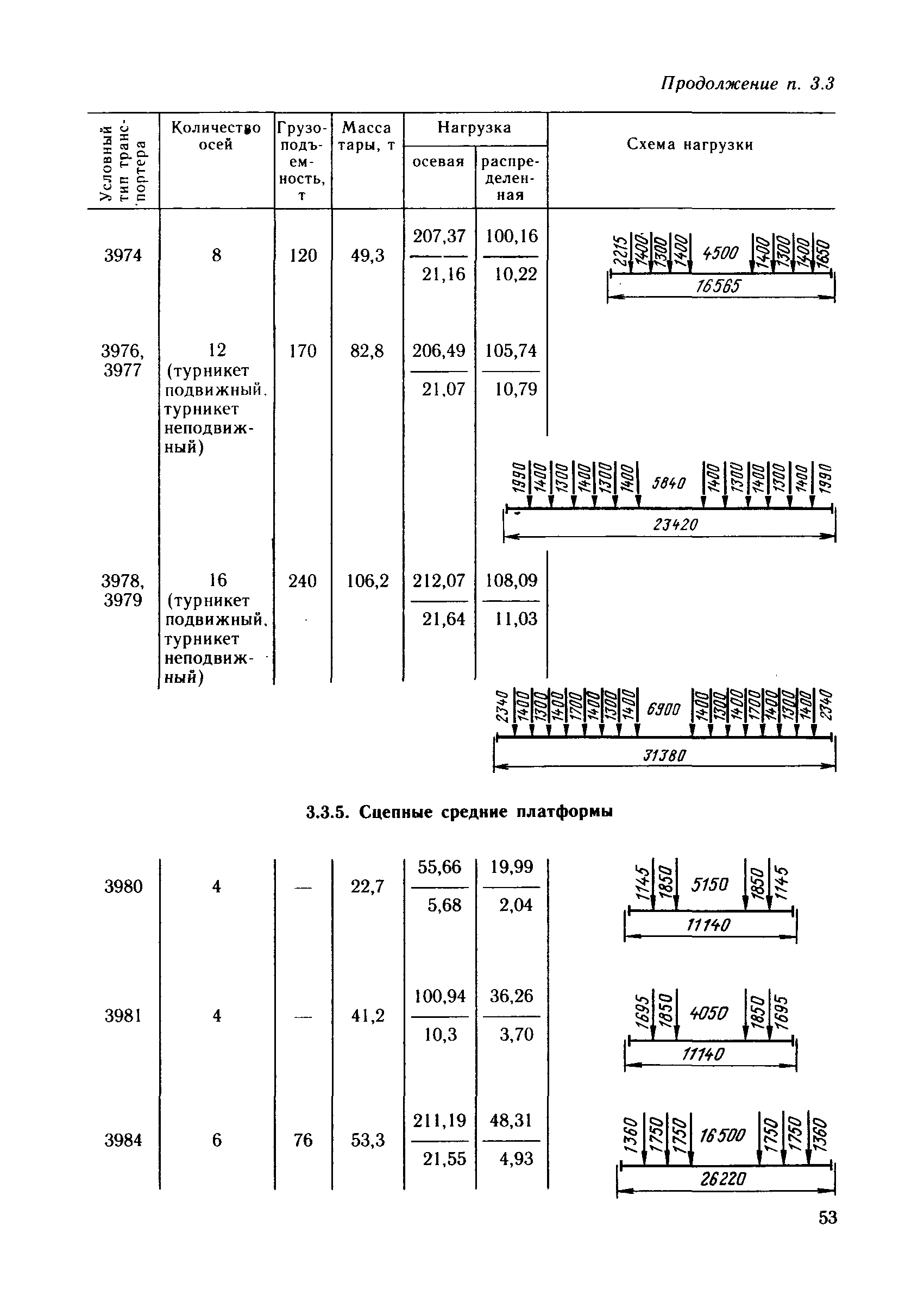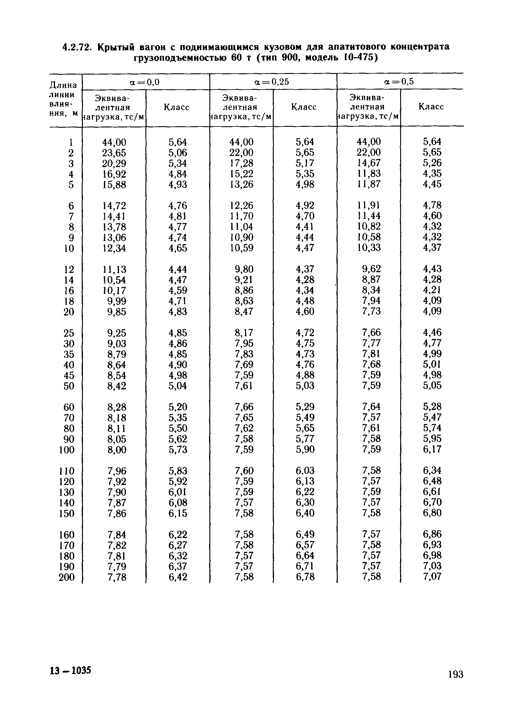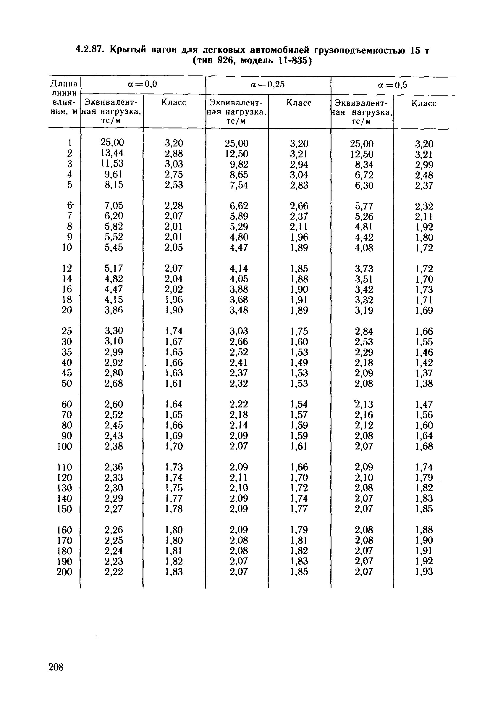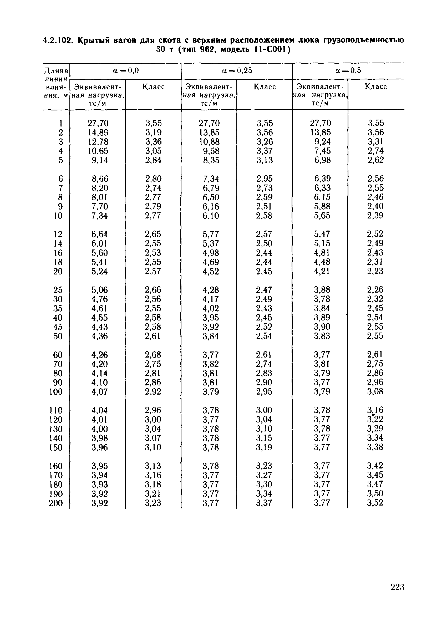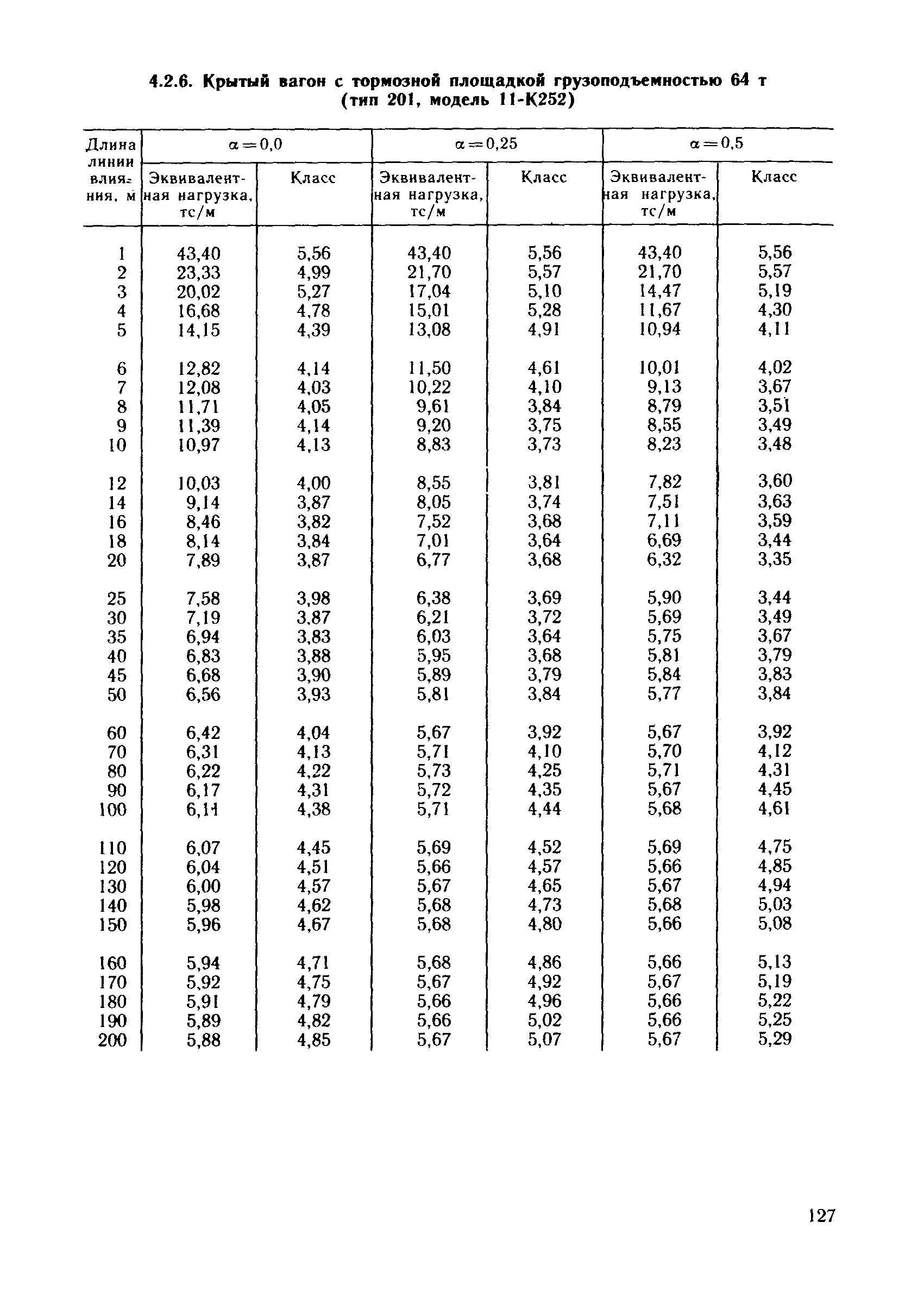 Руководство по пропуску подвижного состава по железнодорожным мостам| Статус: | не подлежит применению | | Название рус.: | Руководство по пропуску подвижного состава по железнодорожным мостам | | Дата добавления в базу: | 01.09.2013 | | Дата актуализации: | 01.01.2021 | | Дата окончания срока действия: | 26.08.2019 | | Область применения: | Приведены основные характеристики и результаты классификации (классы) обращающихся и перспективных локомотивов, вагонов, транспортеров, железнодорожных кранов и, кроме того, категории грузоподъемности мостов, обеспечивающих их пропуск. | | Оглавление: | 1. Общие положения 2. Определение условий пропуска поездных нагрузок 3. Характеристики подвижного состава сети железных дорог нашей страны 3.1. Локомотивы 3.2. Вагоны 3.3. Транспортеры 3.4. Консольные железнодорожные краны 4. Классификация нагрузок 4.1. Эквивалентные нагрузки и классы сплоток электровозов, тепловозов, паровозов 4.2. Эквивалентные нагрузки и классы обращающихся и перспективных вагонов 4.3. Эквивалентные нагрузки и классы транспортеров 4.4. Эквивалентные нагрузки и классы железнодорожных консольных кранов Приложение 1. Примеры классификации подвижного состава и определения условий пропуска его по металлическим пролетным строениям железнодорожных мостов Приложение 2. Определение эквивалентной нагрузки от классифицируемого подвижного состава Приложение 3. Динамические коэффициенты, их отношения и эталонная нагрузка от HI 364 Приложение 4. Вагоны «прикрытия» транспортеров Приложение 5. Эквивалентные нагрузки и классы эталонной нагрузки, соответствующие грузоподъемности мостов II-IV категорий Приложение 6. Пример определения допускаемой временной нагрузки на элементы про¬летных строений, имеющих многозначную линию влияния, разделенную одним участком другого знака длиной более 15 м | | Разработан: | Научно-исследовательский институт мостов