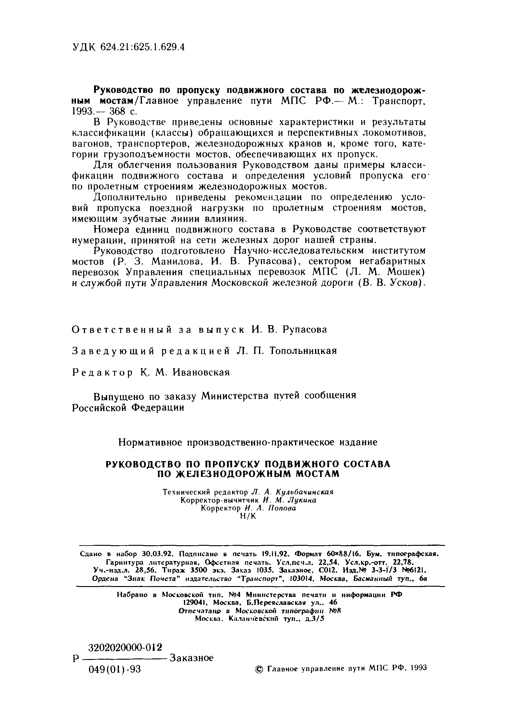 | | Утверждён: | 04.07.1991 Главное управление пути МПС (National Railroad Administration, Ministry of Railroads )