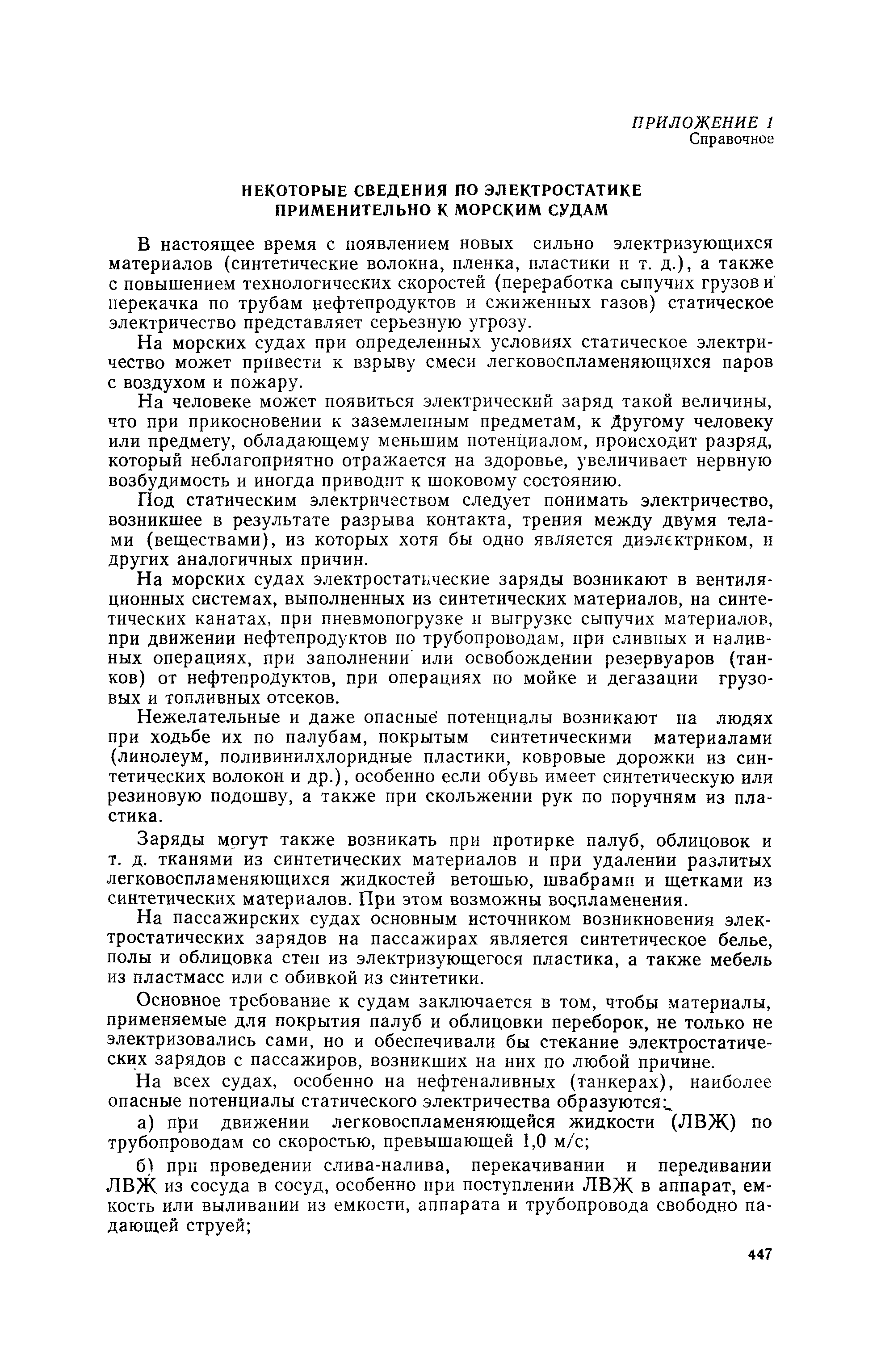 | Оглавление: | 1. Общая часть 2. Определения 3. Требования к конструкции судов всех типов 4. Особые требования к конструкции танкеров 5. Требования к судам, находящимся в эксплуатации и ремонте Приложение 1 (справочное). Некоторые сведения по электростатике применительно к морским судам Приложение 2 (справочное). Методические указания по определению электризуемости покрытий из полимерных материалов на судах Приложение 3 (справочное). Удельное объемное электрическое сопротивление некоторых веществ |
