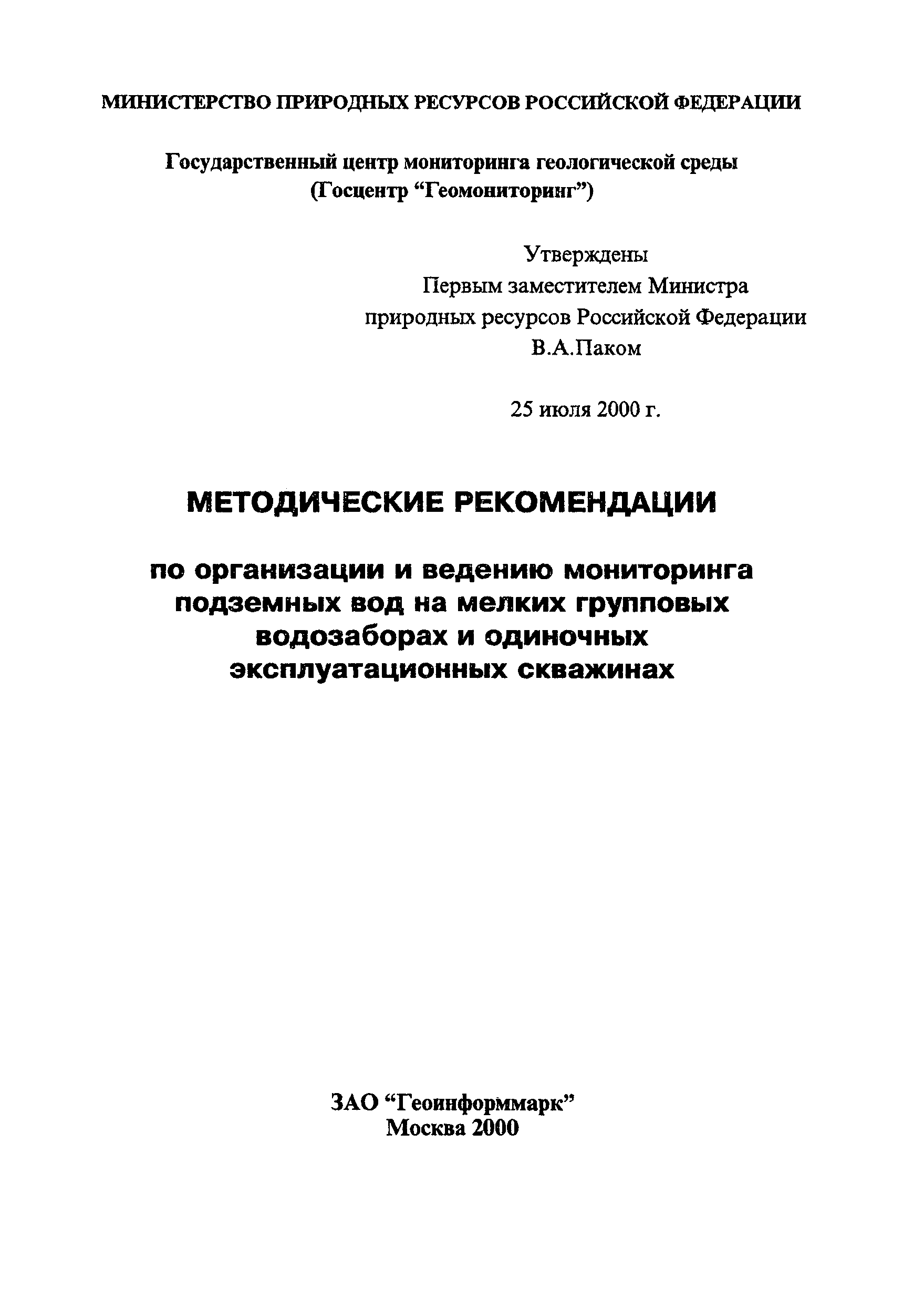 | Утверждён: | 25.07.2000 Министерство природных ресурсов Российской Федерации |