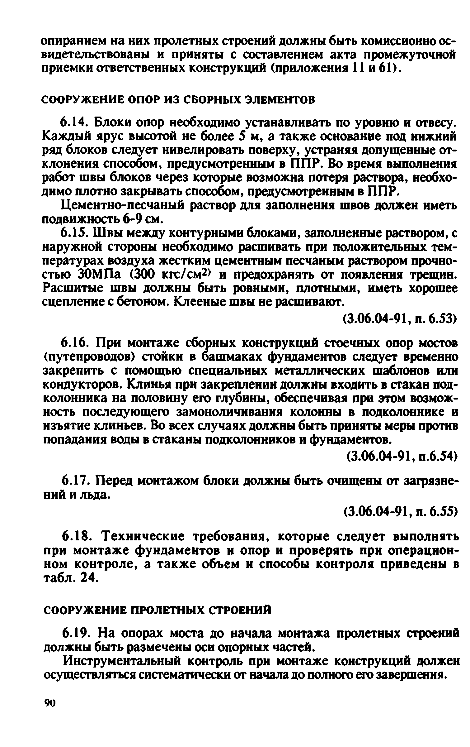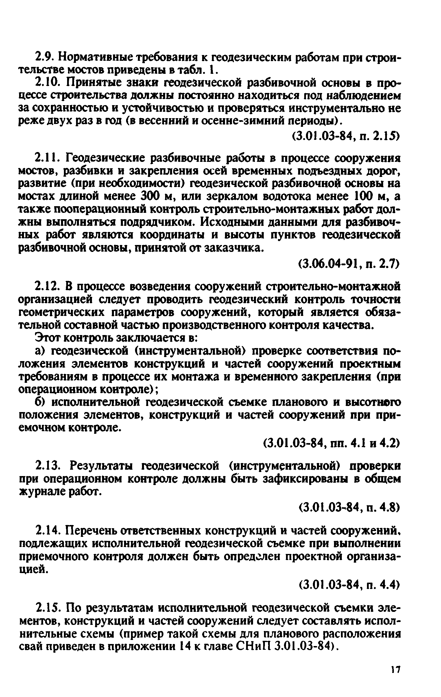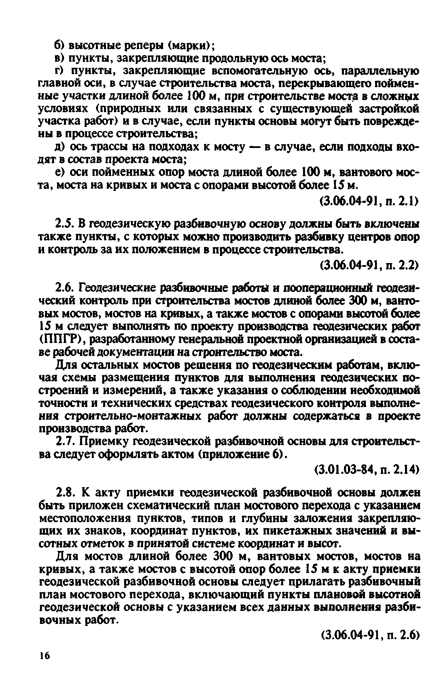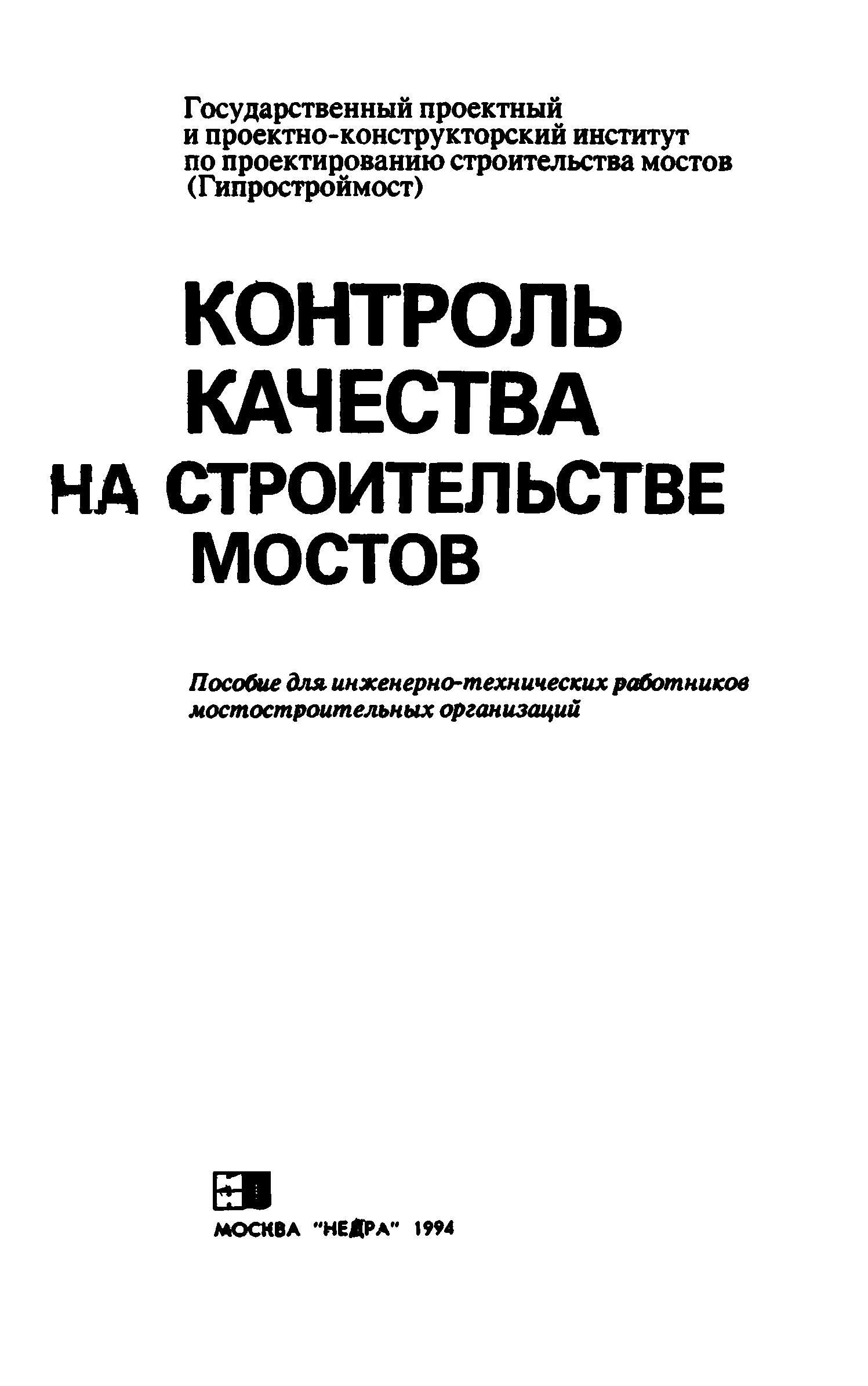 Контроль качества на строительстве мостов. Пособие для инженерно-технических работников мостостроительных организаций| Статус: | не действует | | Название рус.: | Контроль качества на строительстве мостов. Пособие для инженерно-технических работников мостостроительных организаций | | Дата добавления в базу: | 01.09.2013 | | Дата актуализации: | 01.01.2021 | | Оглавление: | Предисловие Глава 1. Общие указания Глава 2. Геодезические работы Глава 3. Специальные вспомогательные сооружения и устройства для строительства мостов Глава 4. Основания и фундаменты Глава 5. Устройство монолитных, сборно-монолитных, бетонных и железобетонных конструкций Глава 6. Монтаж сборных железобетонных и бетонных конструкций мостов Глава 7. Монтаж стальных и сталежелезобетонных пролетных строений мостов Глава 8. Сварные монтажные соединения Глава 9. Сооружение деревянных мостов Глава 10. Засыпка устоев мостов. Укрепительные работы Глава 11. Гидроизоляция и водоотвод Глава 12. Устройство мостового полотна Глава 13. Приемка законченных сооружений в эксплуатацию Приложения | | Разработан: | Гипростроймост