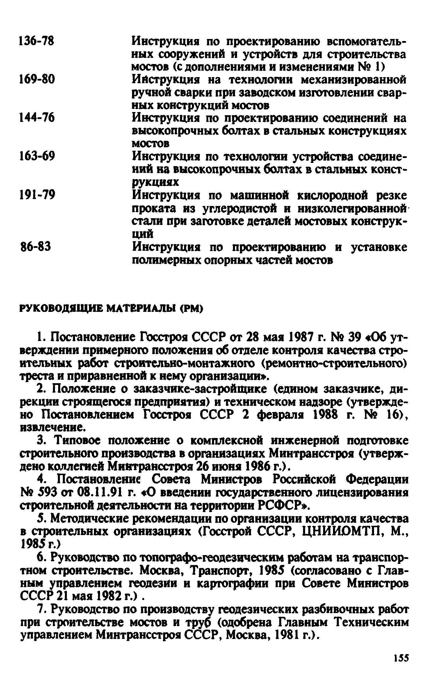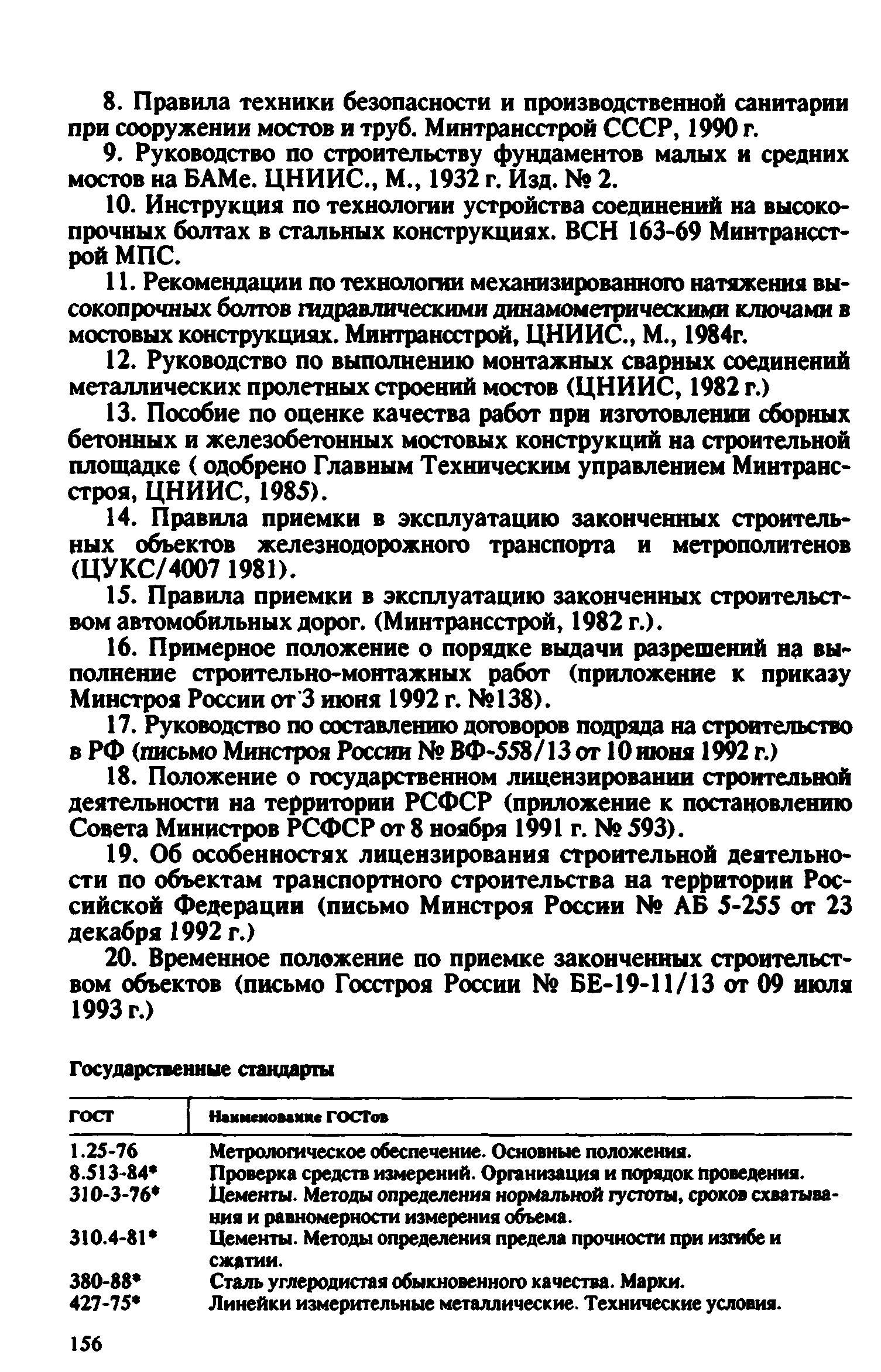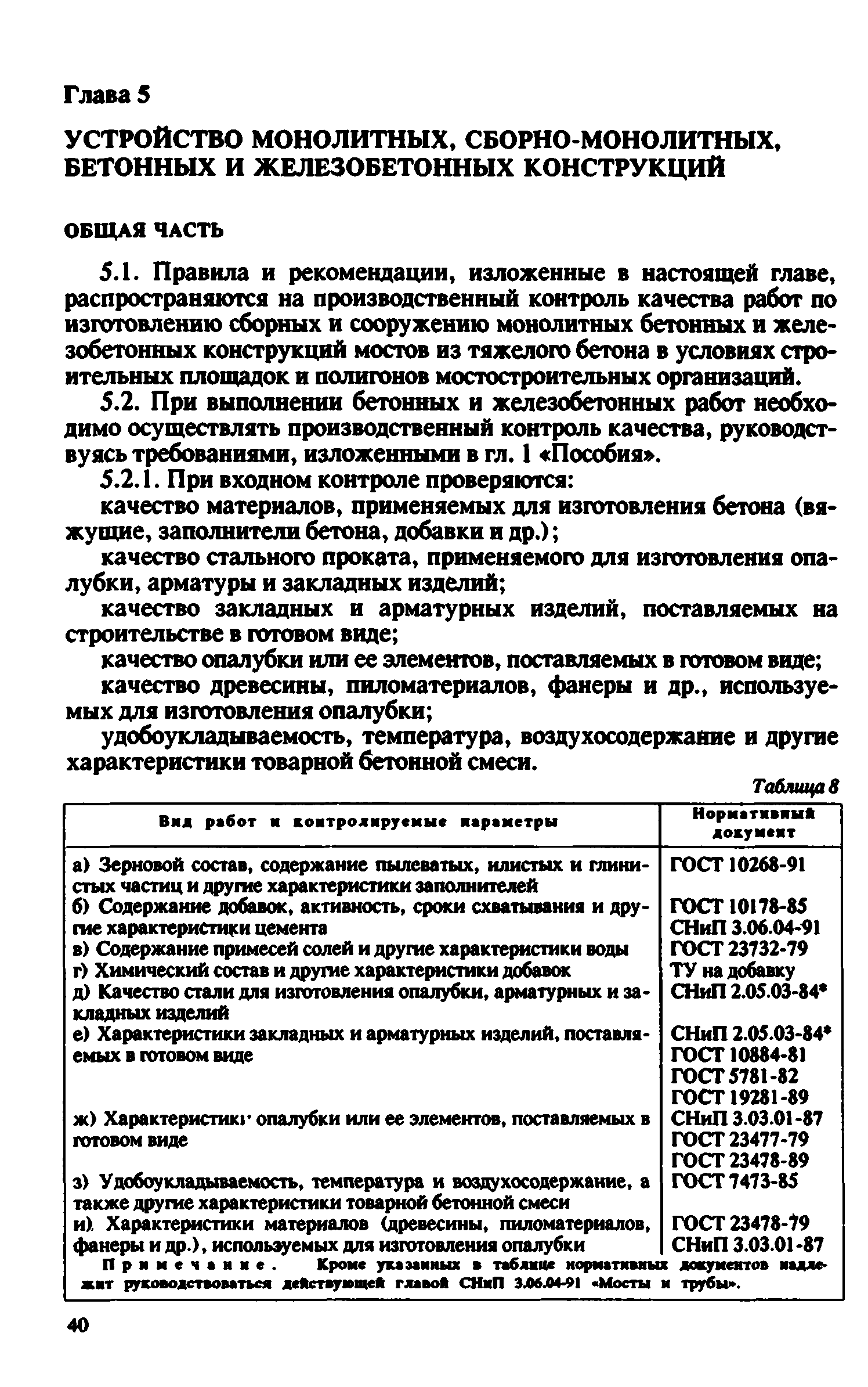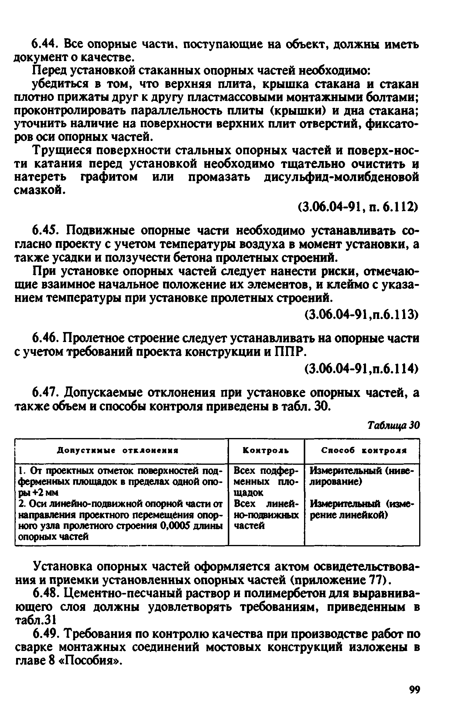 Контроль качества на строительстве мостов. Пособие для инженерно-технических работников мостостроительных организаций| Статус: | не действует | | Название рус.: | Контроль качества на строительстве мостов. Пособие для инженерно-технических работников мостостроительных организаций | | Дата добавления в базу: | 01.09.2013 | | Дата актуализации: | 01.01.2021 | | Оглавление: | Предисловие Глава 1. Общие указания Глава 2. Геодезические работы Глава 3. Специальные вспомогательные сооружения и устройства для строительства мостов Глава 4. Основания и фундаменты Глава 5. Устройство монолитных, сборно-монолитных, бетонных и железобетонных конструкций Глава 6. Монтаж сборных железобетонных и бетонных конструкций мостов Глава 7. Монтаж стальных и сталежелезобетонных пролетных строений мостов Глава 8. Сварные монтажные соединения Глава 9. Сооружение деревянных мостов Глава 10. Засыпка устоев мостов. Укрепительные работы Глава 11. Гидроизоляция и водоотвод Глава 12. Устройство мостового полотна Глава 13. Приемка законченных сооружений в эксплуатацию Приложения | | Разработан: | Гипростроймост