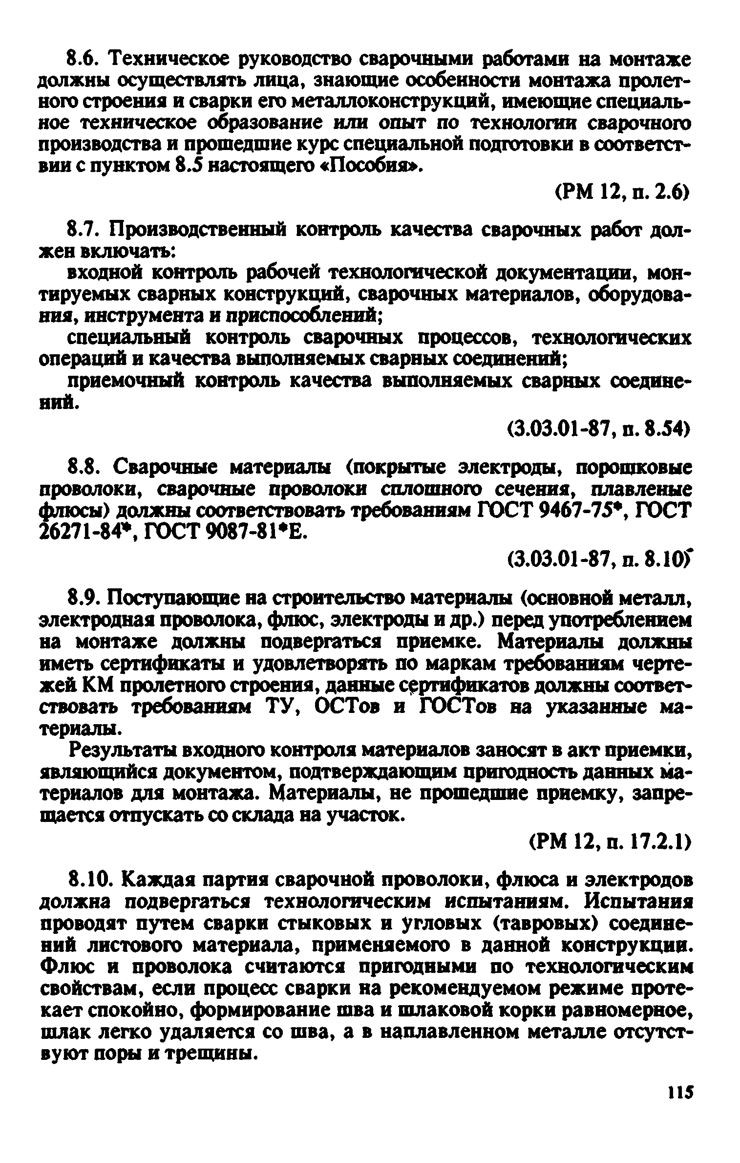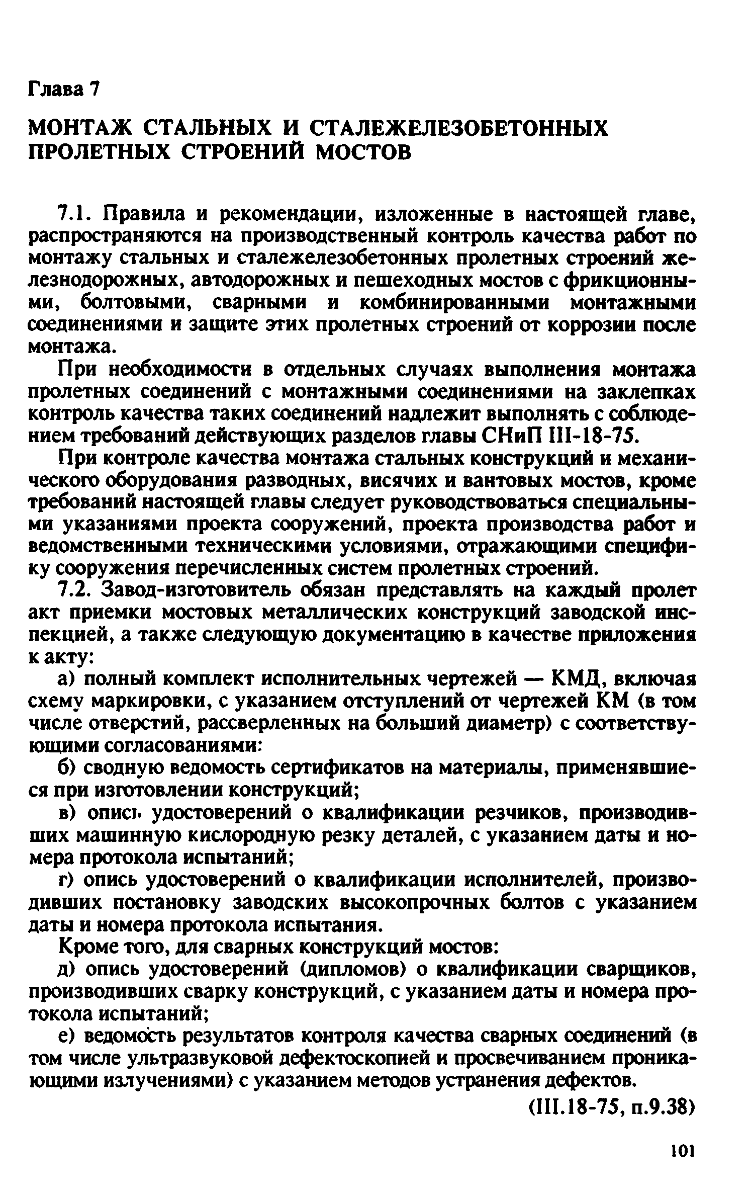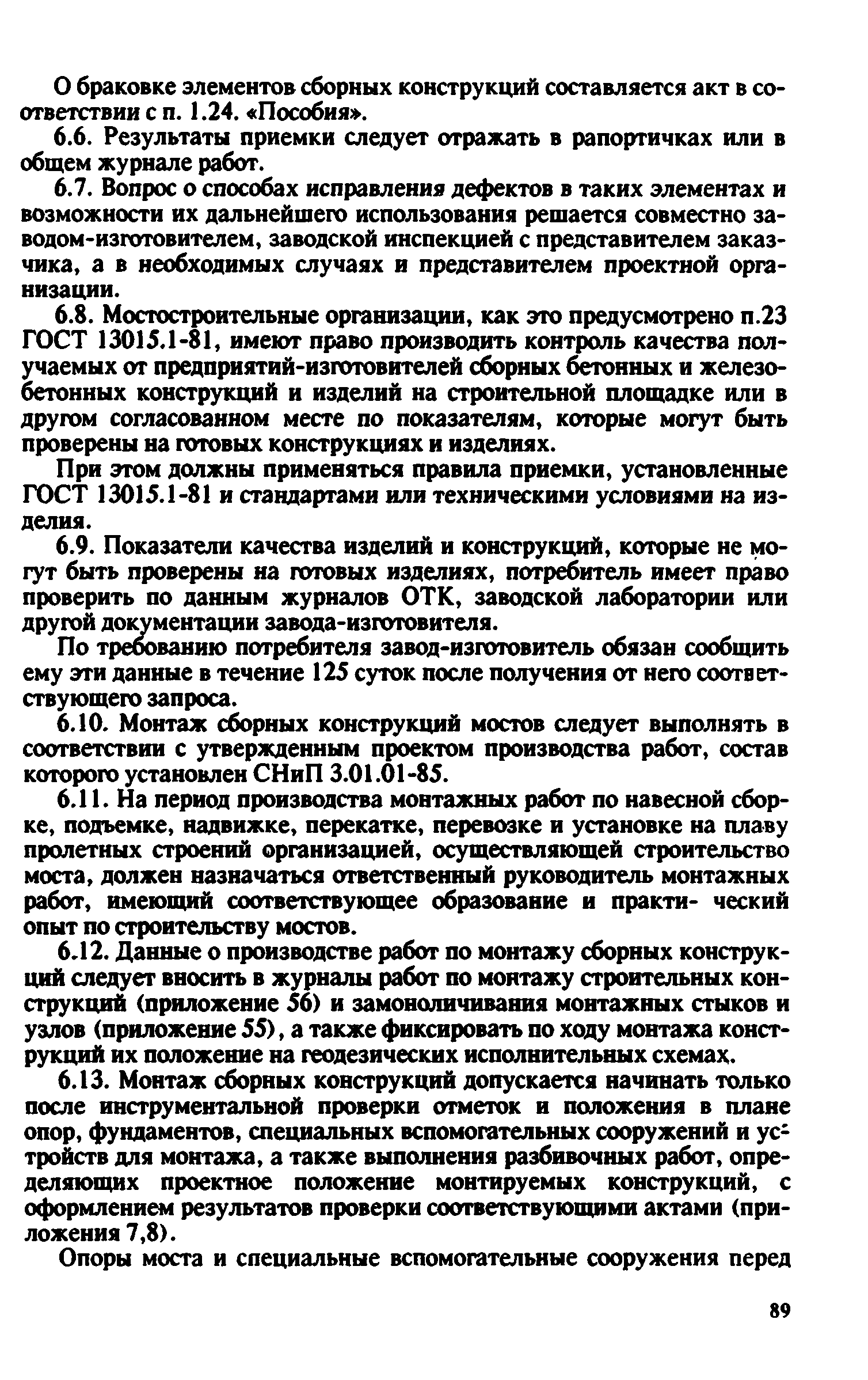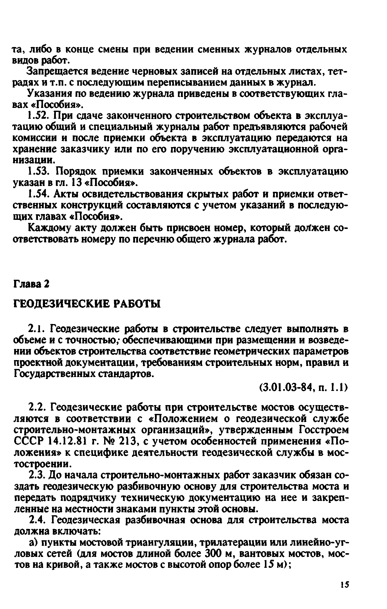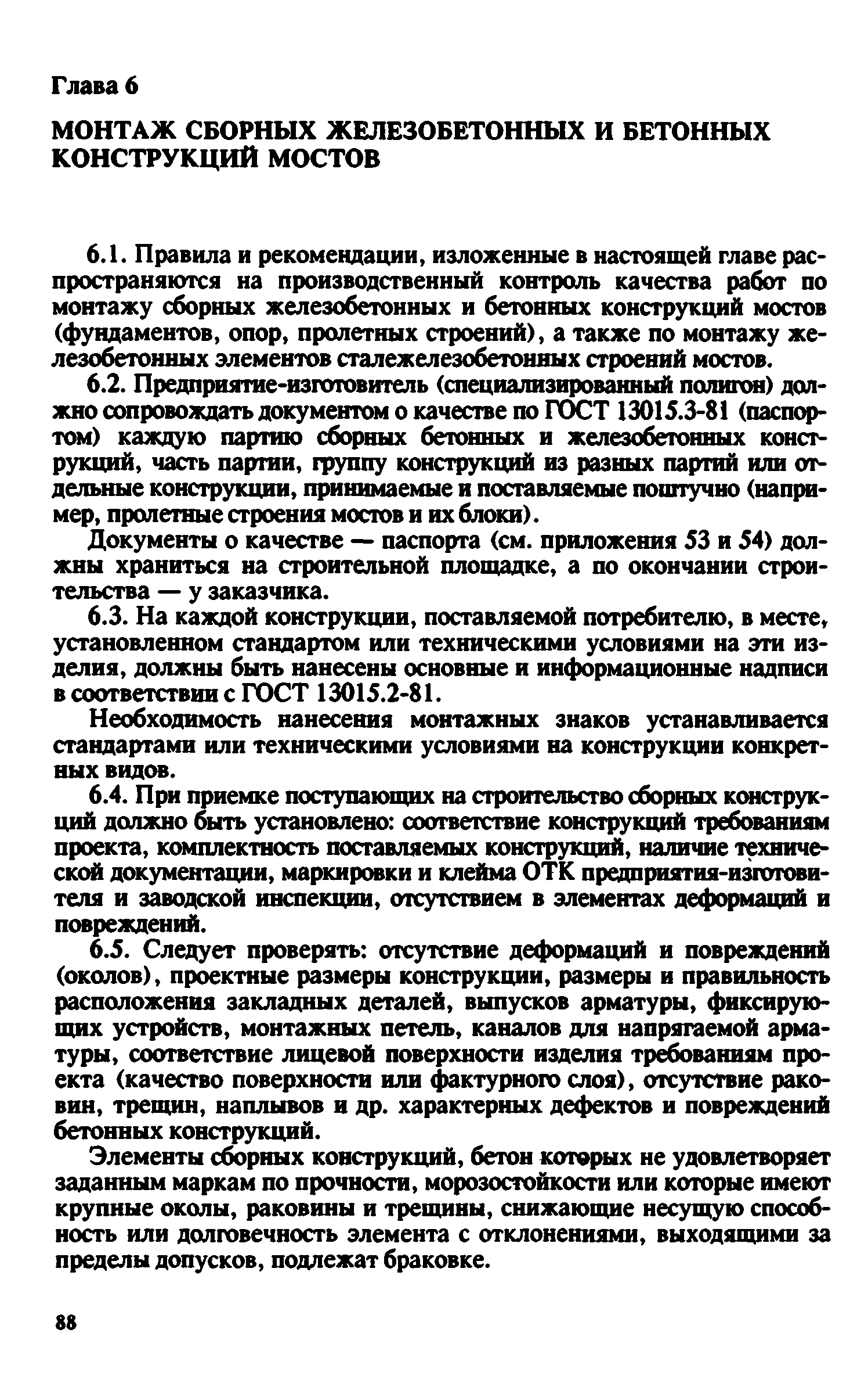 Контроль качества на строительстве мостов. Пособие для инженерно-технических работников мостостроительных организаций| Статус: | не действует | | Название рус.: | Контроль качества на строительстве мостов. Пособие для инженерно-технических работников мостостроительных организаций | | Дата добавления в базу: | 01.09.2013 | | Дата актуализации: | 01.01.2021 | | Оглавление: | Предисловие Глава 1. Общие указания Глава 2. Геодезические работы Глава 3. Специальные вспомогательные сооружения и устройства для строительства мостов Глава 4. Основания и фундаменты Глава 5. Устройство монолитных, сборно-монолитных, бетонных и железобетонных конструкций Глава 6. Монтаж сборных железобетонных и бетонных конструкций мостов Глава 7. Монтаж стальных и сталежелезобетонных пролетных строений мостов Глава 8. Сварные монтажные соединения Глава 9. Сооружение деревянных мостов Глава 10. Засыпка устоев мостов. Укрепительные работы Глава 11. Гидроизоляция и водоотвод Глава 12. Устройство мостового полотна Глава 13. Приемка законченных сооружений в эксплуатацию Приложения | | Разработан: | Гипростроймост