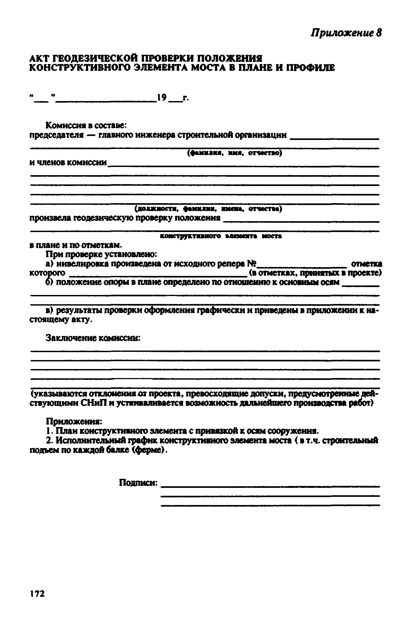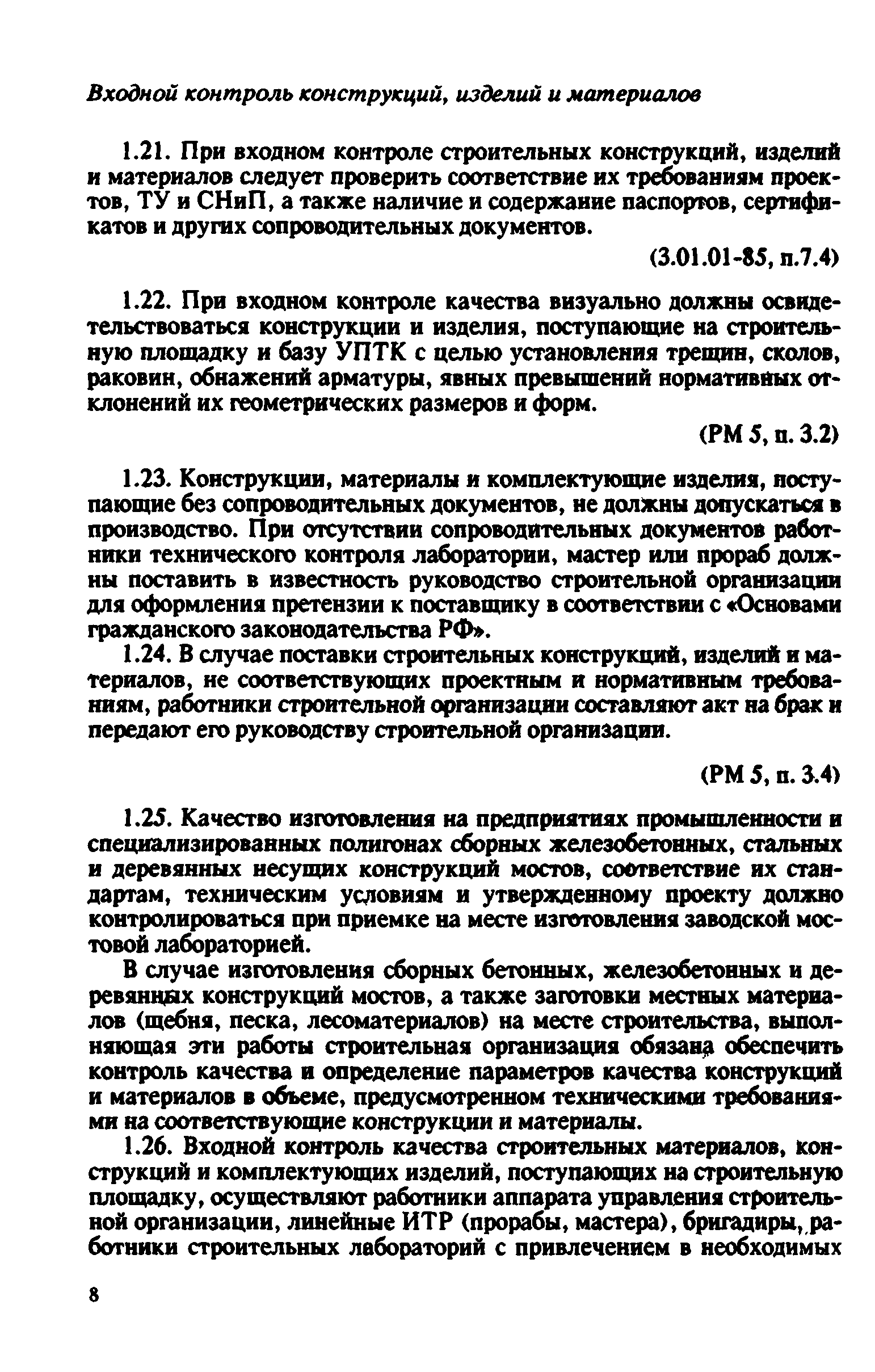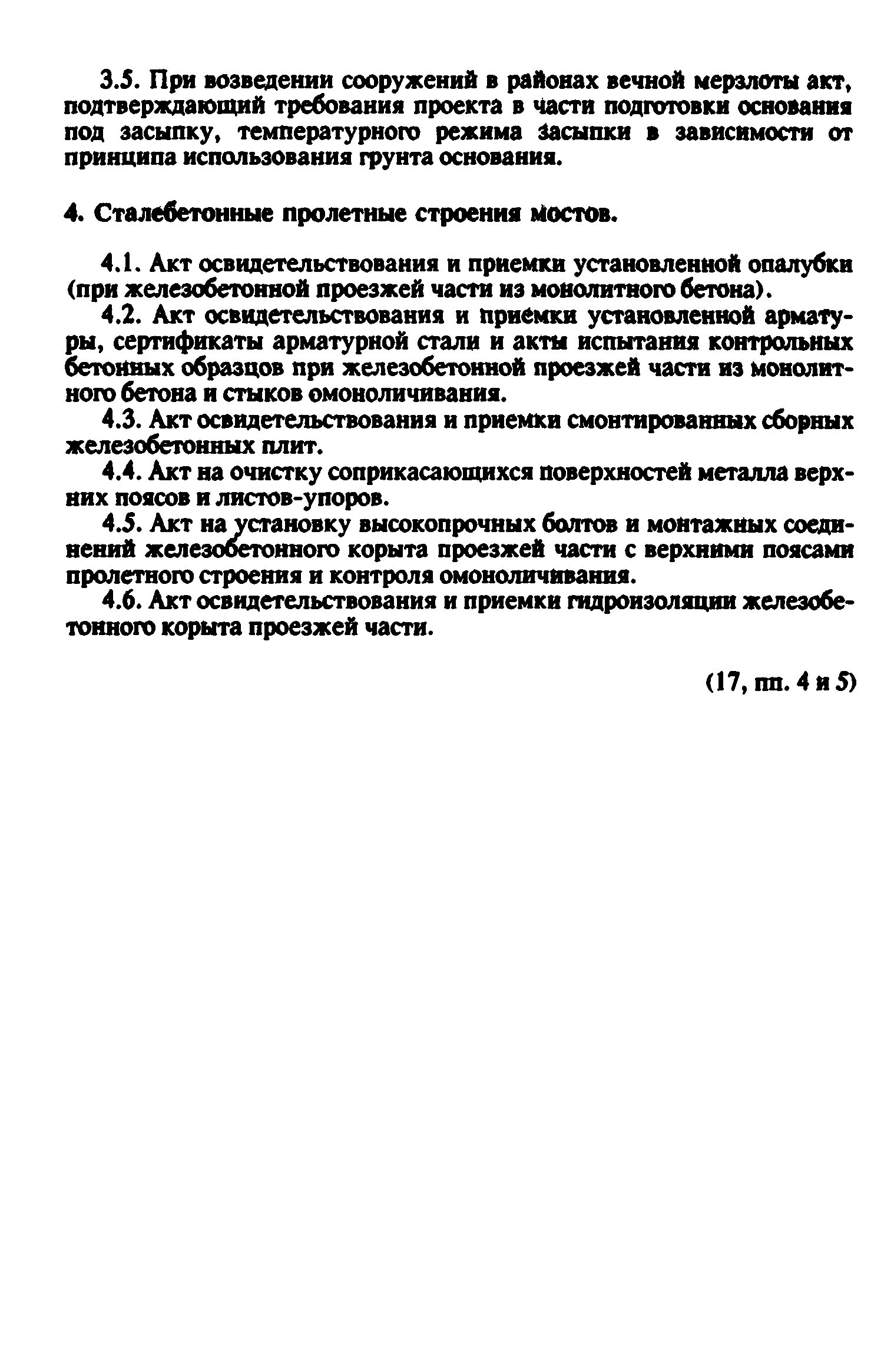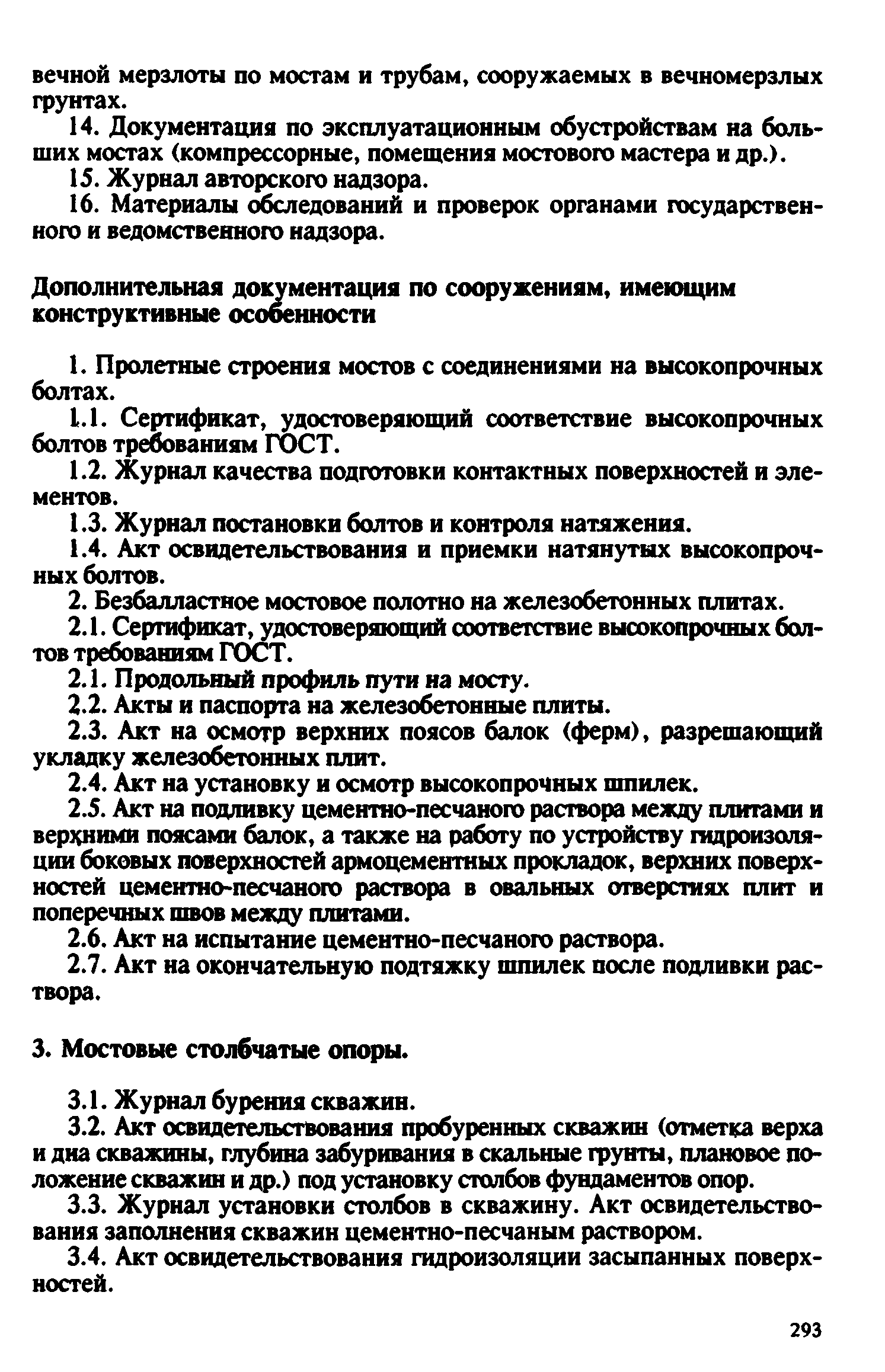 Контроль качества на строительстве мостов. Пособие для инженерно-технических работников мостостроительных организаций| Статус: | не действует | | Название рус.: | Контроль качества на строительстве мостов. Пособие для инженерно-технических работников мостостроительных организаций | | Дата добавления в базу: | 01.09.2013 | | Дата актуализации: | 01.01.2021 | | Оглавление: | Предисловие Глава 1. Общие указания Глава 2. Геодезические работы Глава 3. Специальные вспомогательные сооружения и устройства для строительства мостов Глава 4. Основания и фундаменты Глава 5. Устройство монолитных, сборно-монолитных, бетонных и железобетонных конструкций Глава 6. Монтаж сборных железобетонных и бетонных конструкций мостов Глава 7. Монтаж стальных и сталежелезобетонных пролетных строений мостов Глава 8. Сварные монтажные соединения Глава 9. Сооружение деревянных мостов Глава 10. Засыпка устоев мостов. Укрепительные работы Глава 11. Гидроизоляция и водоотвод Глава 12. Устройство мостового полотна Глава 13. Приемка законченных сооружений в эксплуатацию Приложения | | Разработан: | Гипростроймост