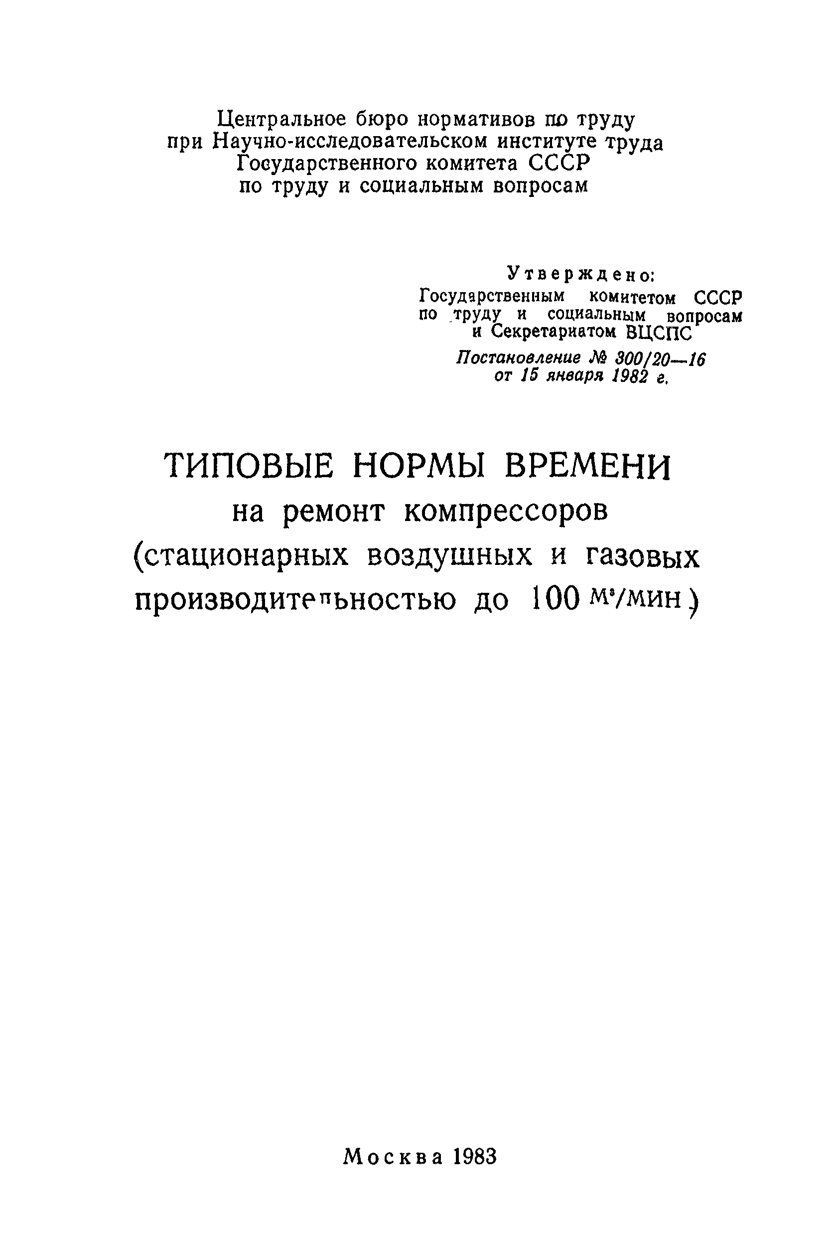 | | Утверждён: | 15.01.1982 Государственный комитет СССР по труду и социальным вопросам (300/20-16)