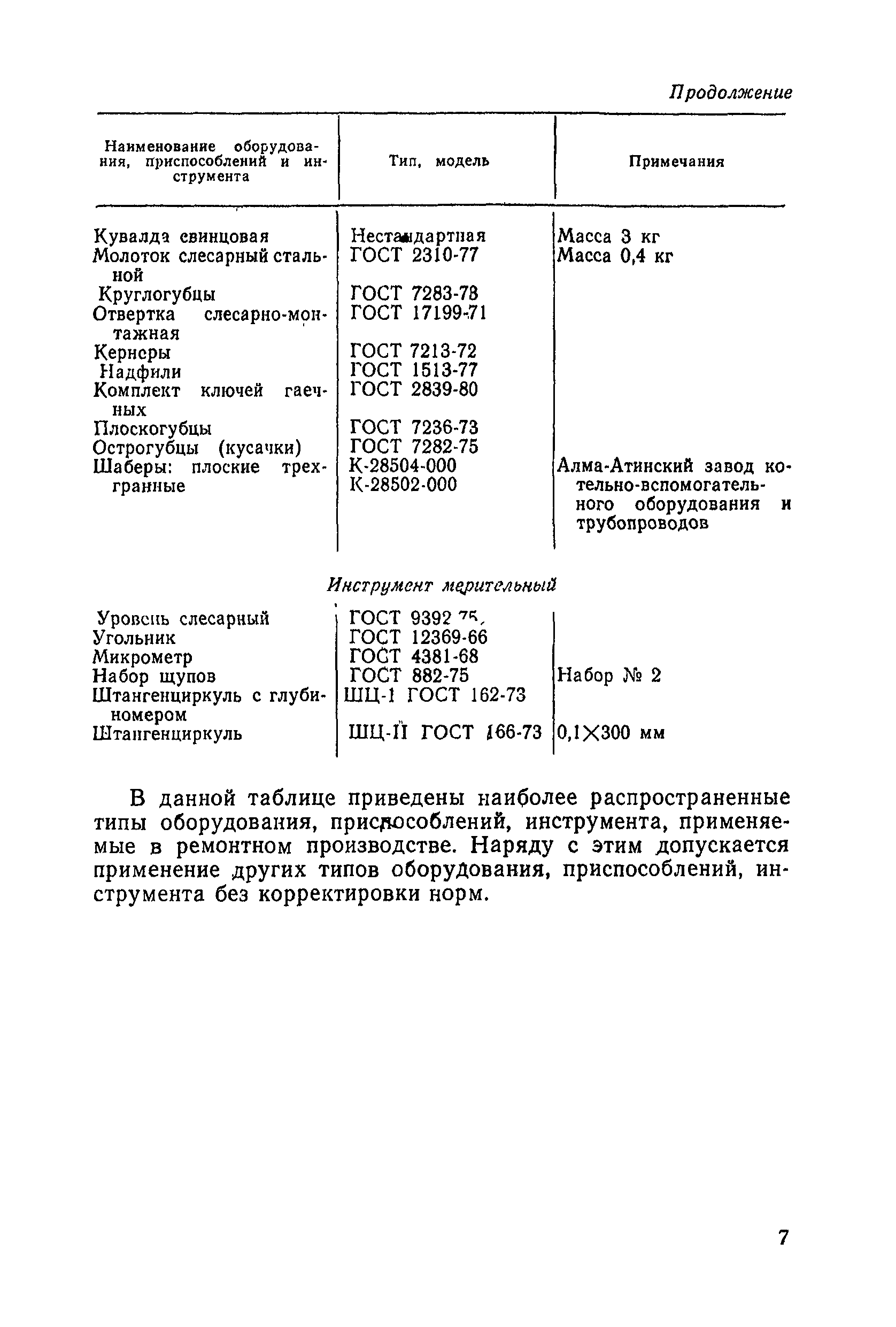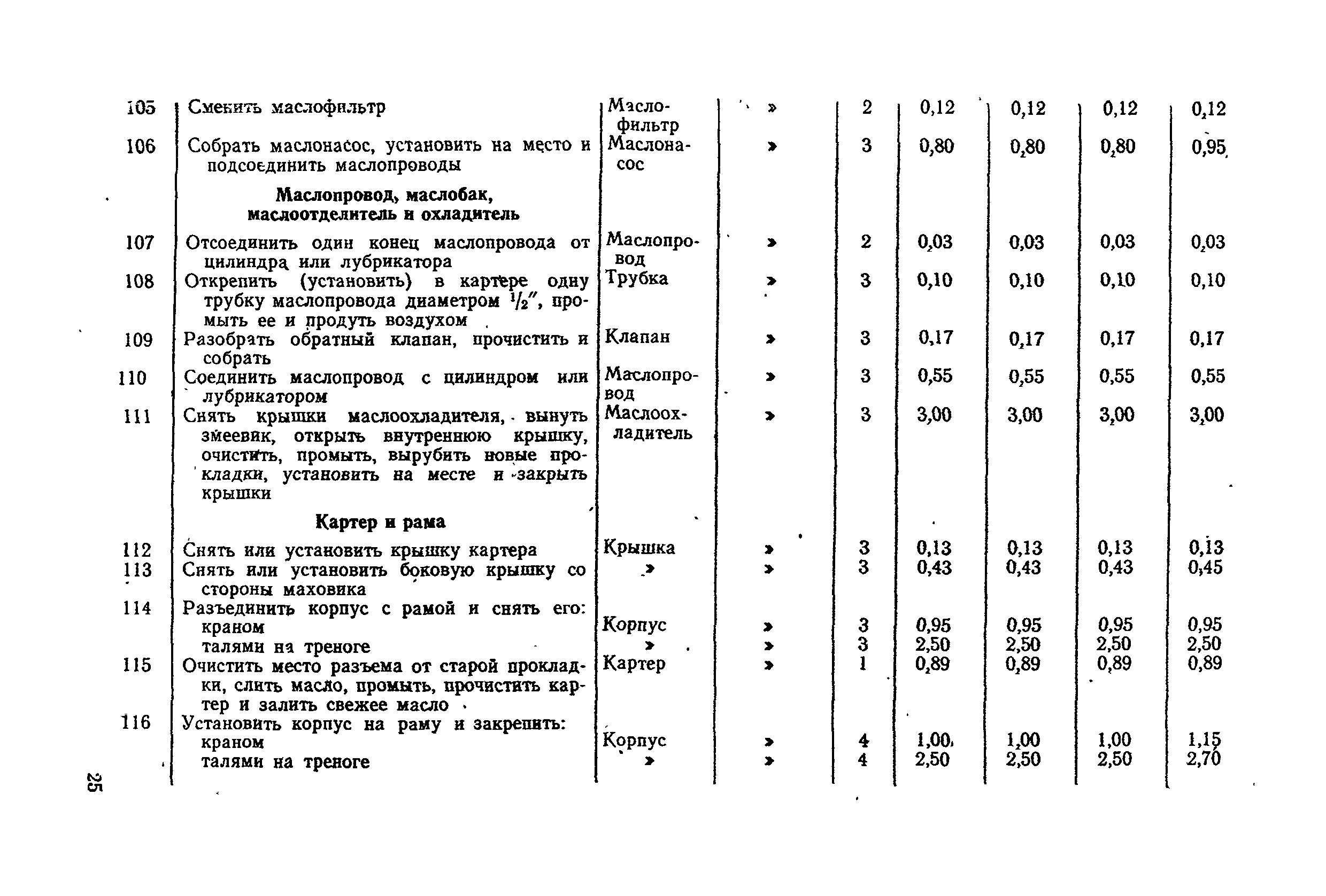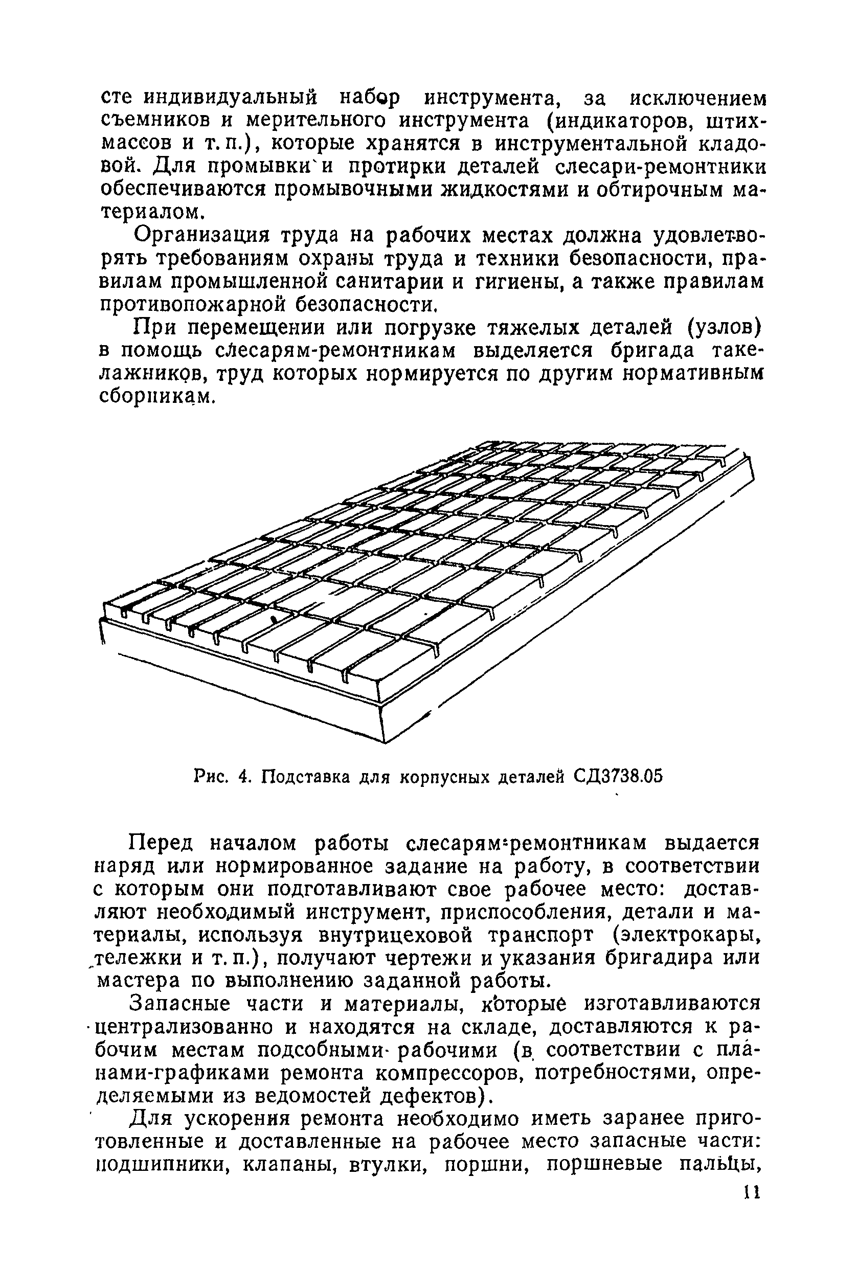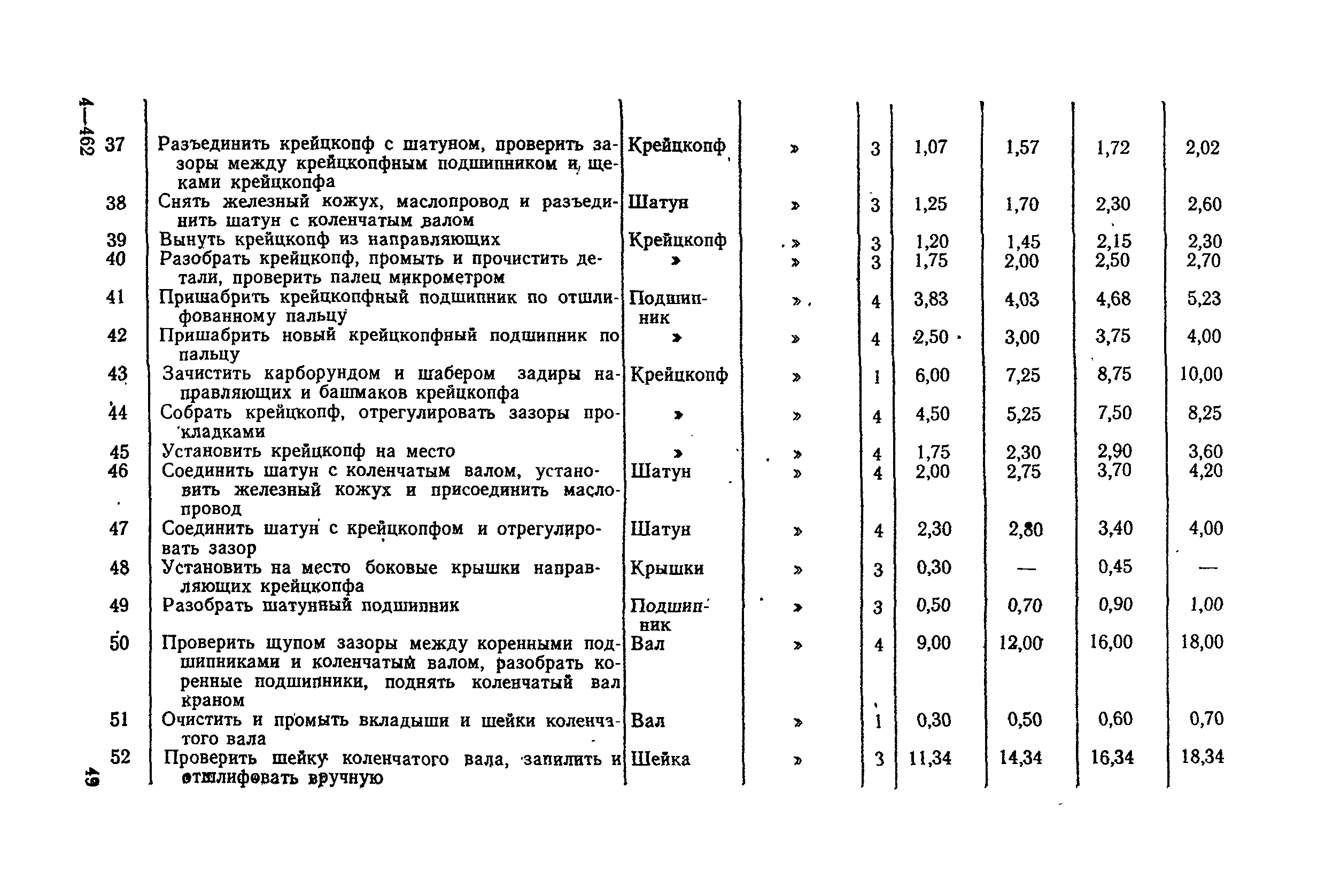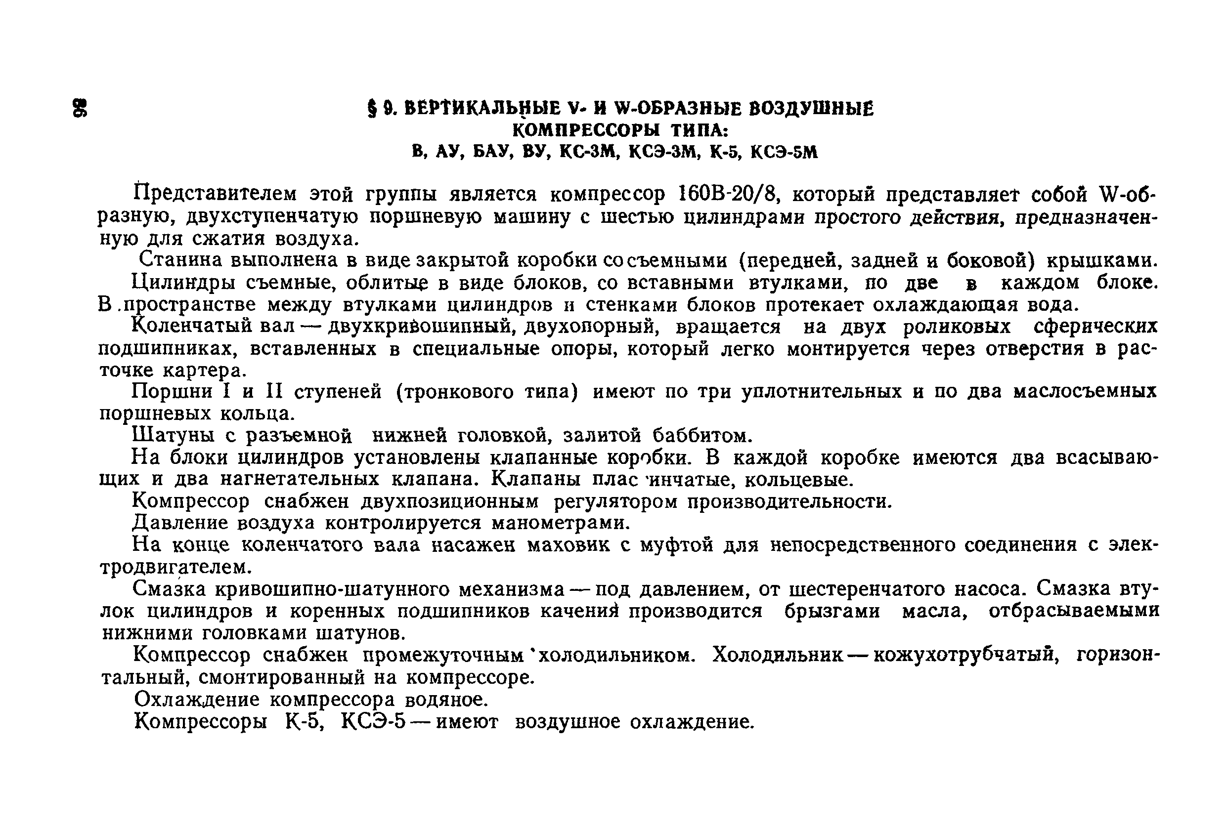 Типовые нормы времени на ремонт компрессоров (стационарных воздушных и газовых производительностью до 100 м3/мин)| Статус: | отменен в рф | | Название рус.: | Типовые нормы времени на ремонт компрессоров (стационарных воздушных и газовых производительностью до 100 м3/мин) | | Дата добавления в базу: | 01.09.2013 | | Дата актуализации: | 01.01.2021 | | Дата введения: | 25.06.2020 | | Область применения: | Сборник содержит нормы времени на разборку, сборку и ремонт компрессоров стационарных воздушных и газовых: крейцкопфных, бескрейцкопфных, ротационных и турбокомпрессоров. | | Оглавление: | Общая часть Организация труда Нормативная часть Раздел 1. Крейцкопфные компрессоры 1. Вертикальные двухрядные воздушные компрессоры типа ВГ, СГ, СА, В, ВБ, КГ 2. Угловые (прямоугольные) воздушные и газовые компрессоры типа: ВП и ГП 3. Вертикальные двухрядные воздушные компрессоры высокого давления типа Р. РК, РО, РВ, ЭК 4. Горизонтальные одно- и двухрядные воздушные компрессоры низкого давления типа В, ВГ, АГ, ГМ, АГК, АДК, ЗУГМ, 4УГ, 5УГ 5. Горизонтальные двухрядные газовые компрессоры типа 5Г, ДSV 6. Горизонтальные воздушные компрессоры низкого давления типа 300-2К, 400-2К, 500-2К, 600-2К Раздел II. Бескрейцкопфные компрессоры 7. Вертикальные, одно0 и двухрядные воздушные компрессоры типа В, ЦВ, ВК, КВ, ВКС, ВВК, C 8. Вертикальные одно- и двухрядные, одно- и двухцилиндровые компрессоры типа АВ, ФВ, Г 9. Вертикальные V- и W-образные воздушные компрессоры типа В, АУ, БАУ, ВУ, КС-3М, КСЭ-3М, К-5, КСЭ-5М 10. Вертикальные аммиачные компрессоры типа АВ-100, АУ-200, АУ-300, АУ-400, ДАУ-80, ДАУ-100 Раздел III. Ротационные компрессоры и турбокомпрессоры 11. Ротационные компрессоры типа "Демаг", "Клейн-Шандлер-Беккер" 12. Турбокомпрессоры типа ТГ-700/7, "ККК", ТР-7/3. "ЕГЕР", ТГ-4 | | Разработан: | НИИ труда Госкомтруда СССР ЦБНТ