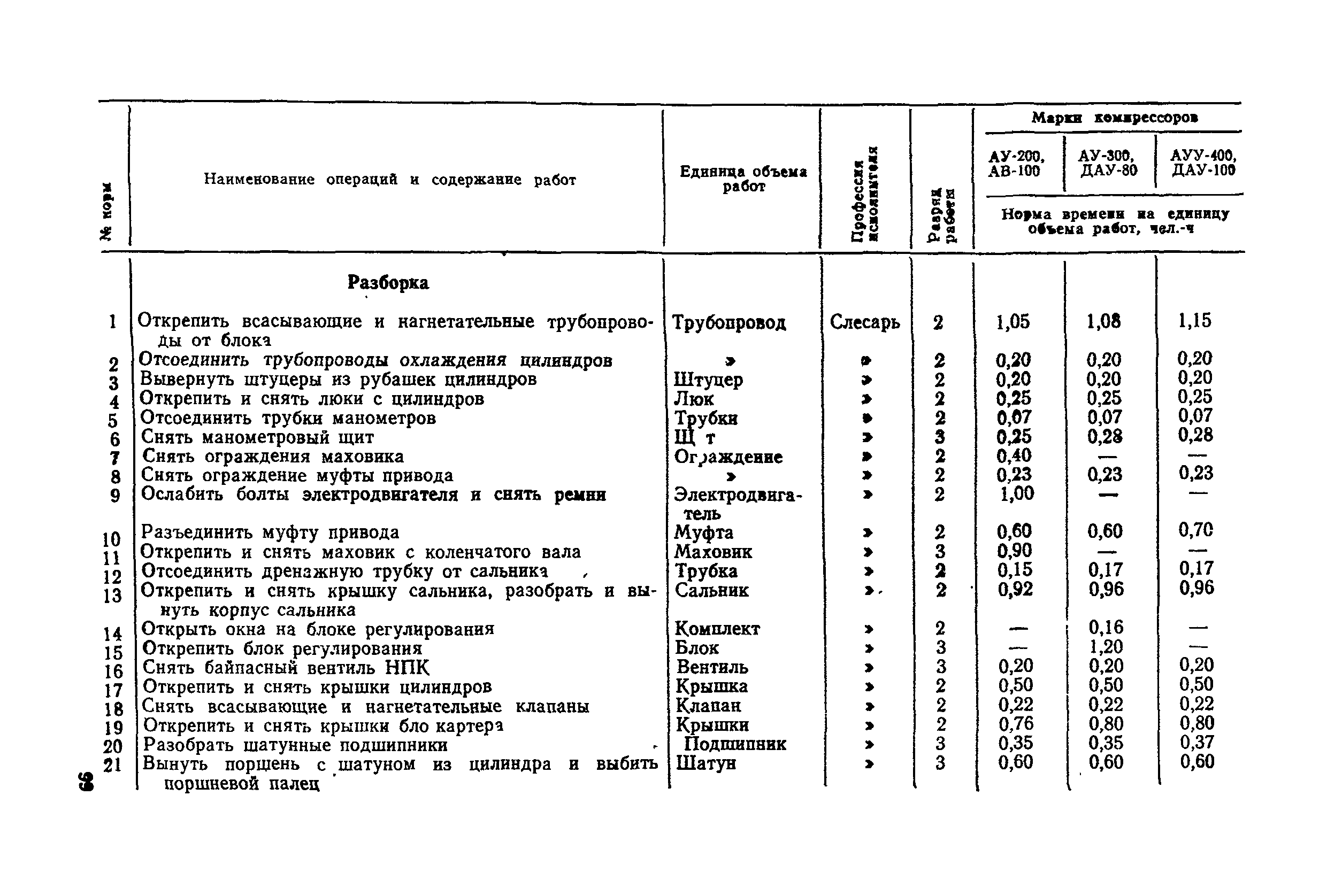 Скачать Типовые нормы времени на ремонт компрессоров (стационарных воздушных и газовых производительностью до 100 м3/мин)Дата актуализации: 01.01.2021