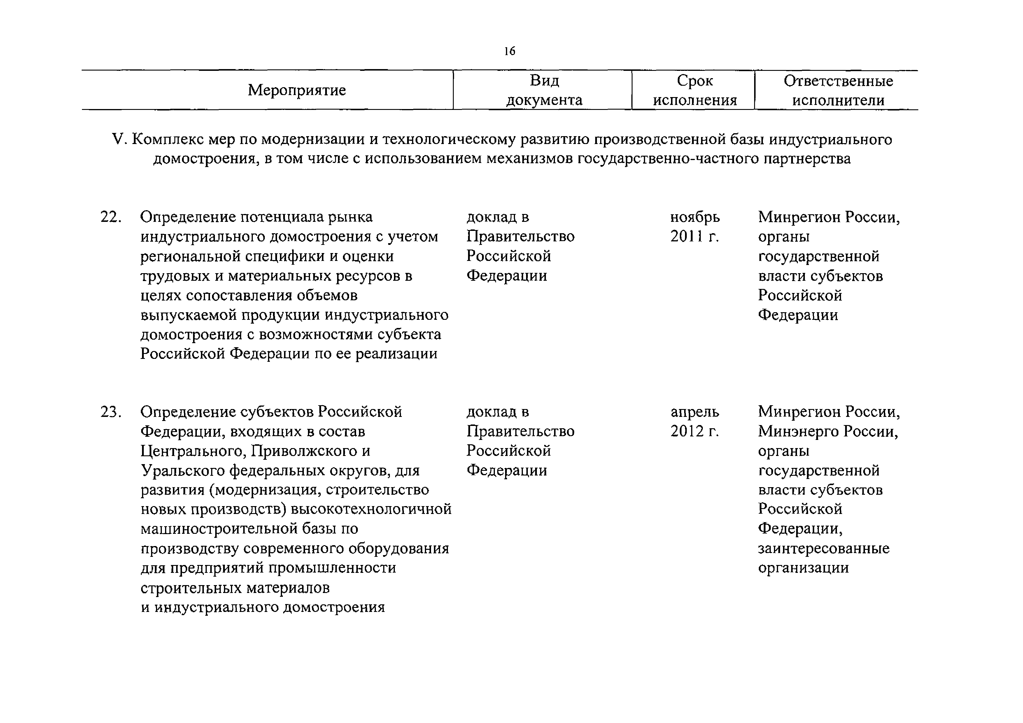 модернизации и технологическому развитию производственной базы индустриального домостроения;