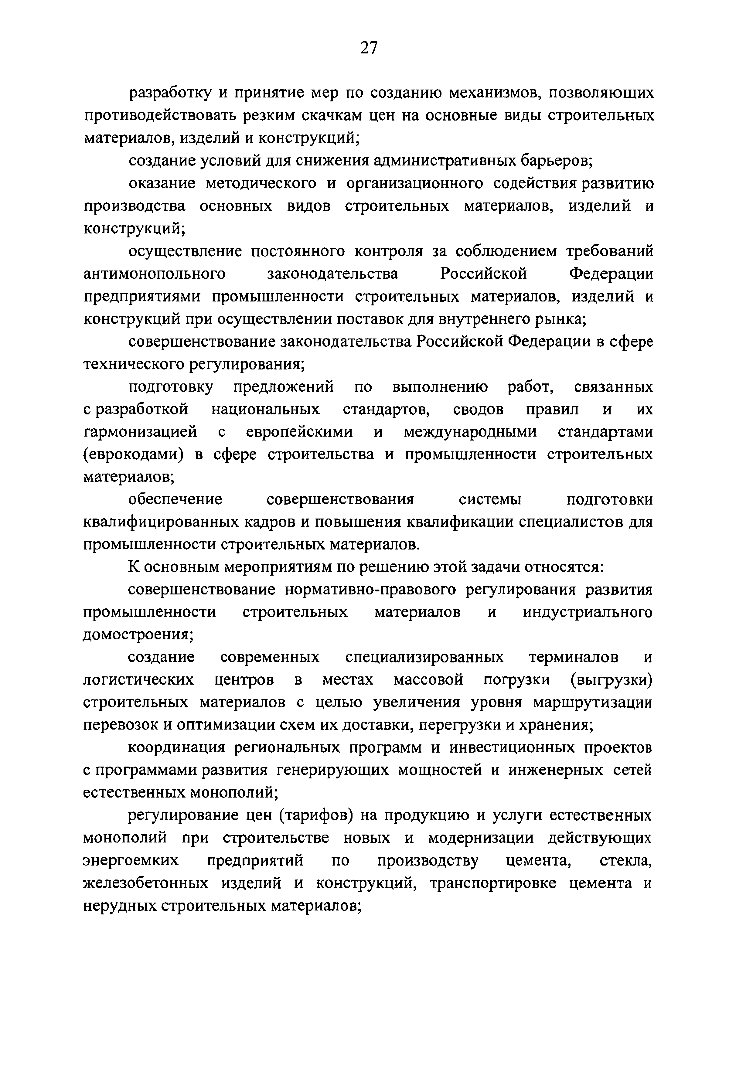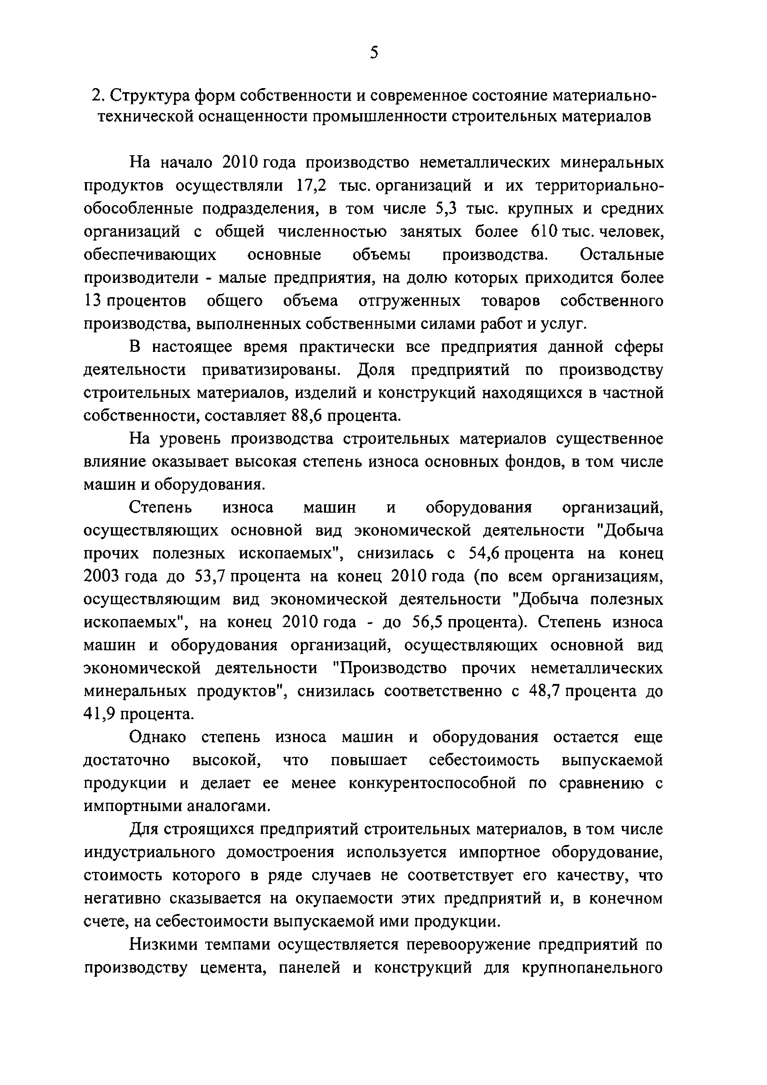 созданию долгосрочных условий для устойчивого развития предприятий строительных материалов и повышению их конкурентоспособности;