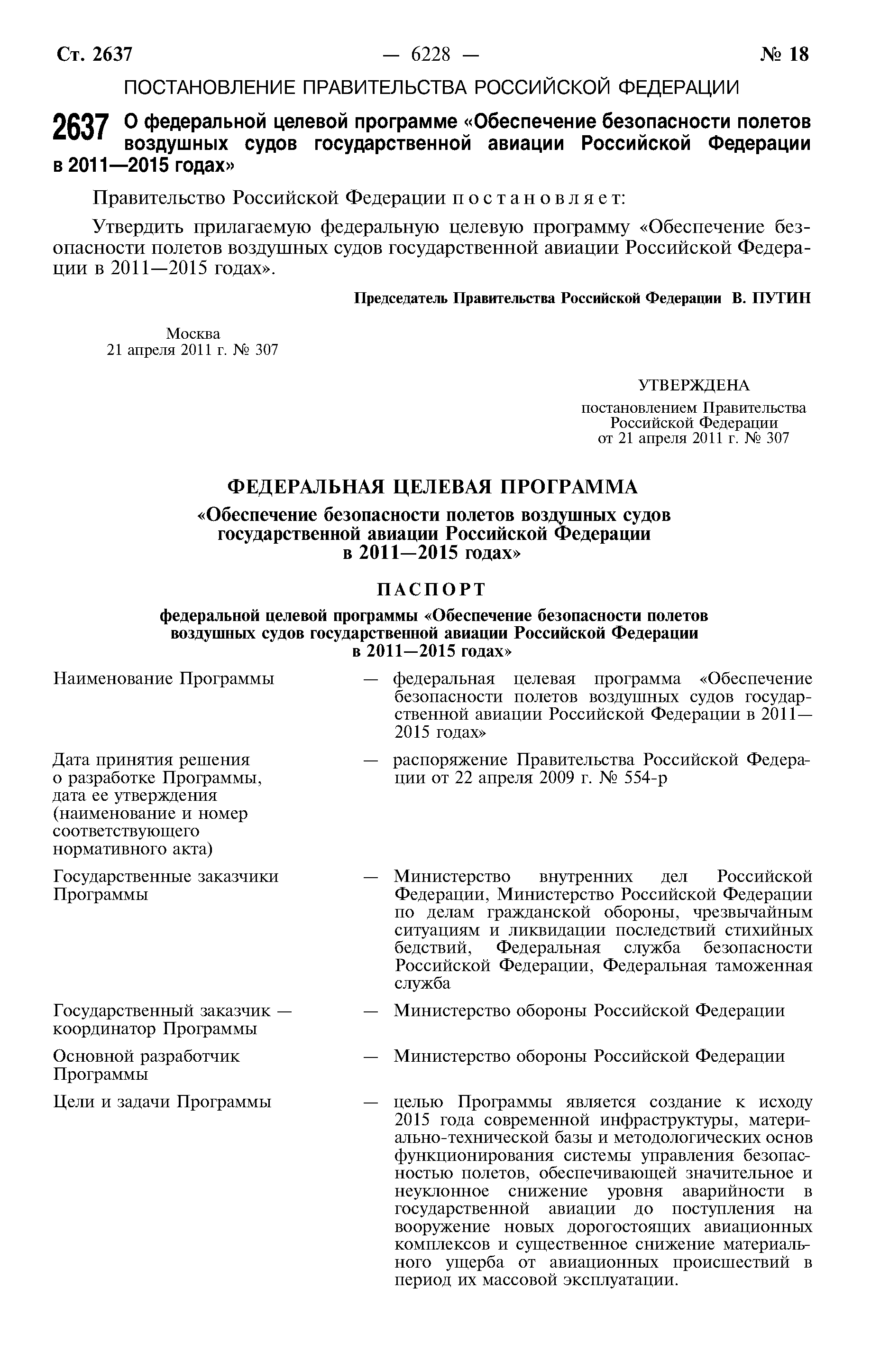 | Название рус.: | Федеральная целевая программа "Обеспечение безопасности полетов воздушных судов государственной авиации Российской Федерации в 2011 - 2015 годах" |