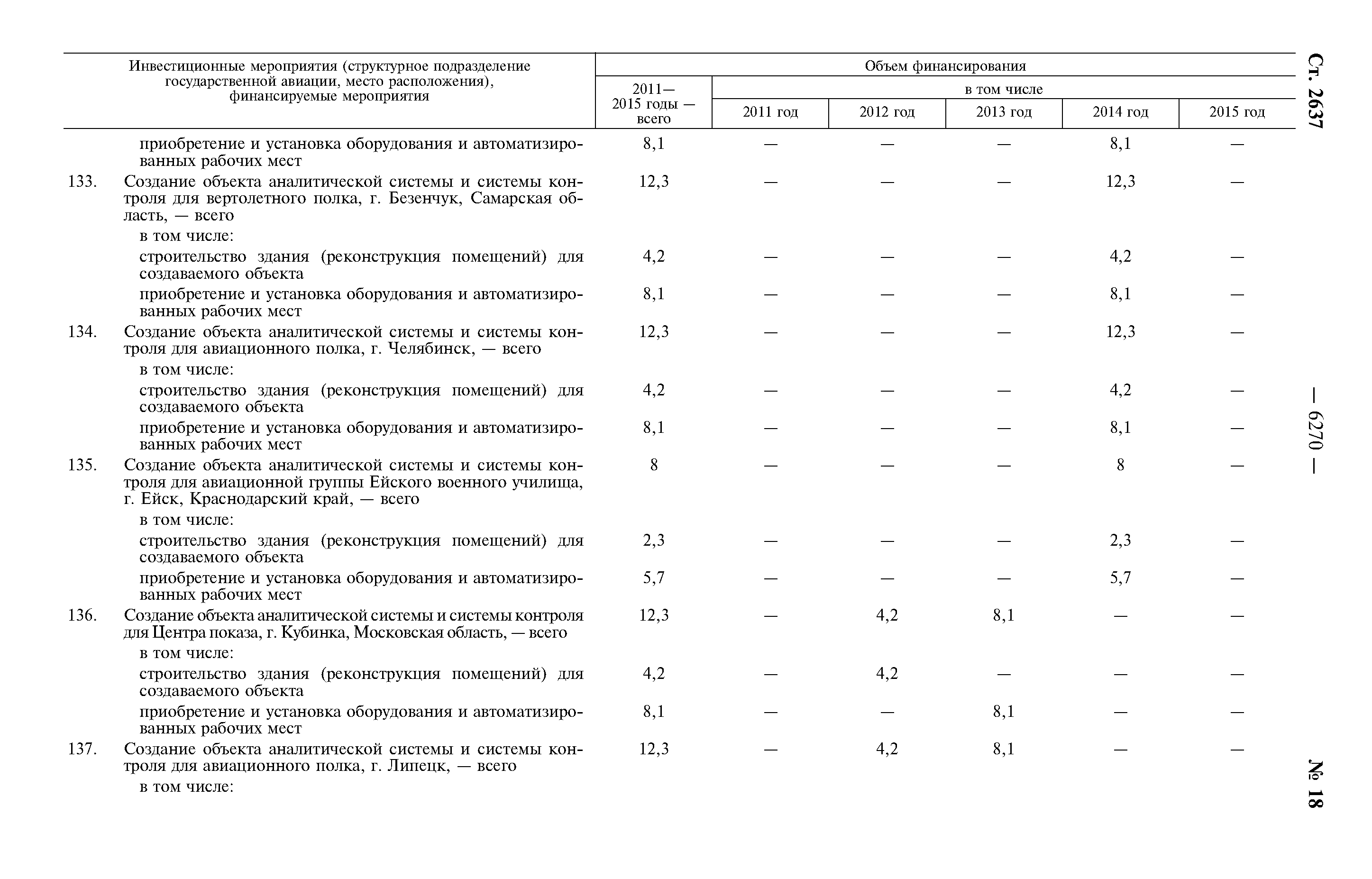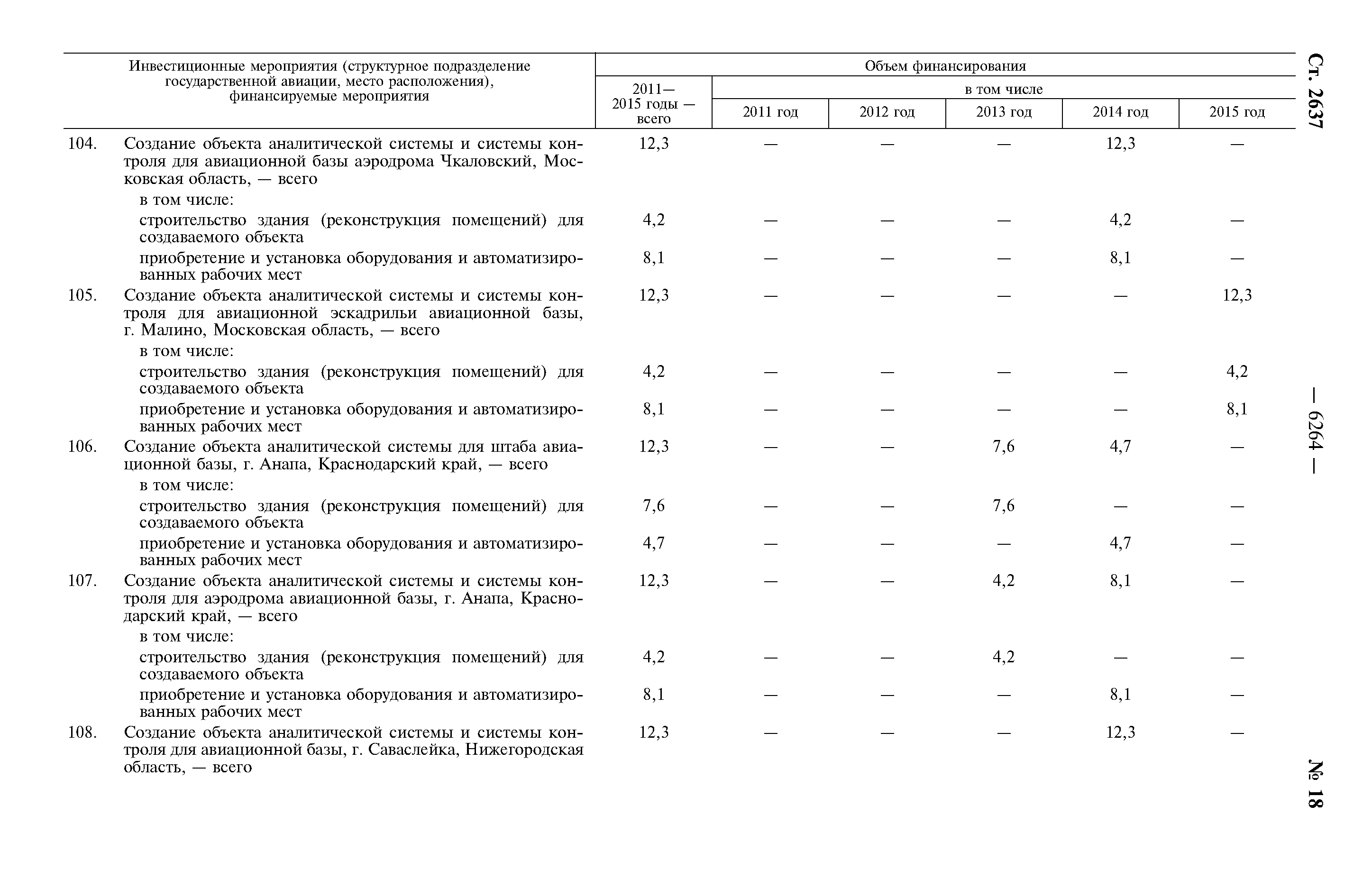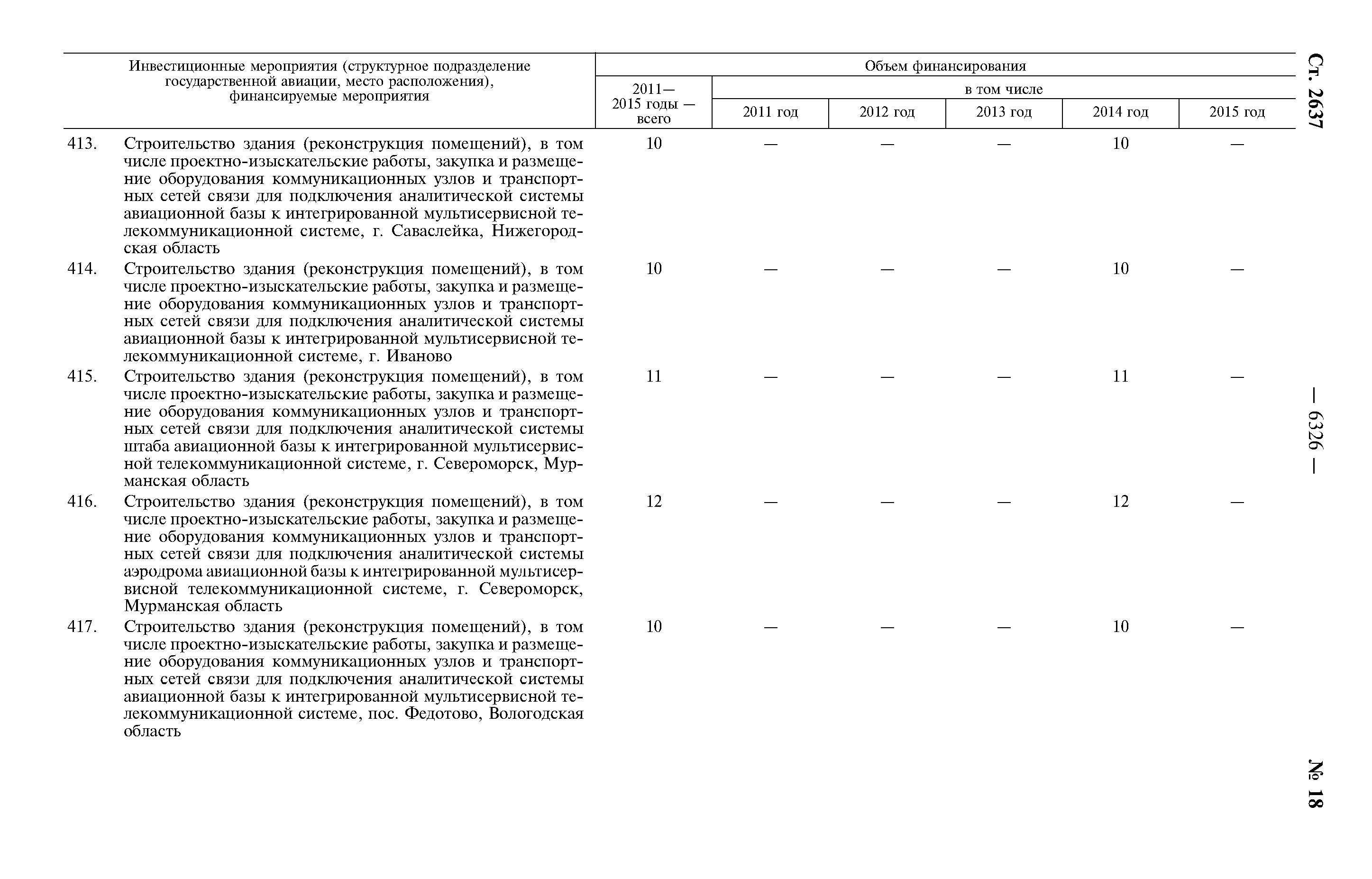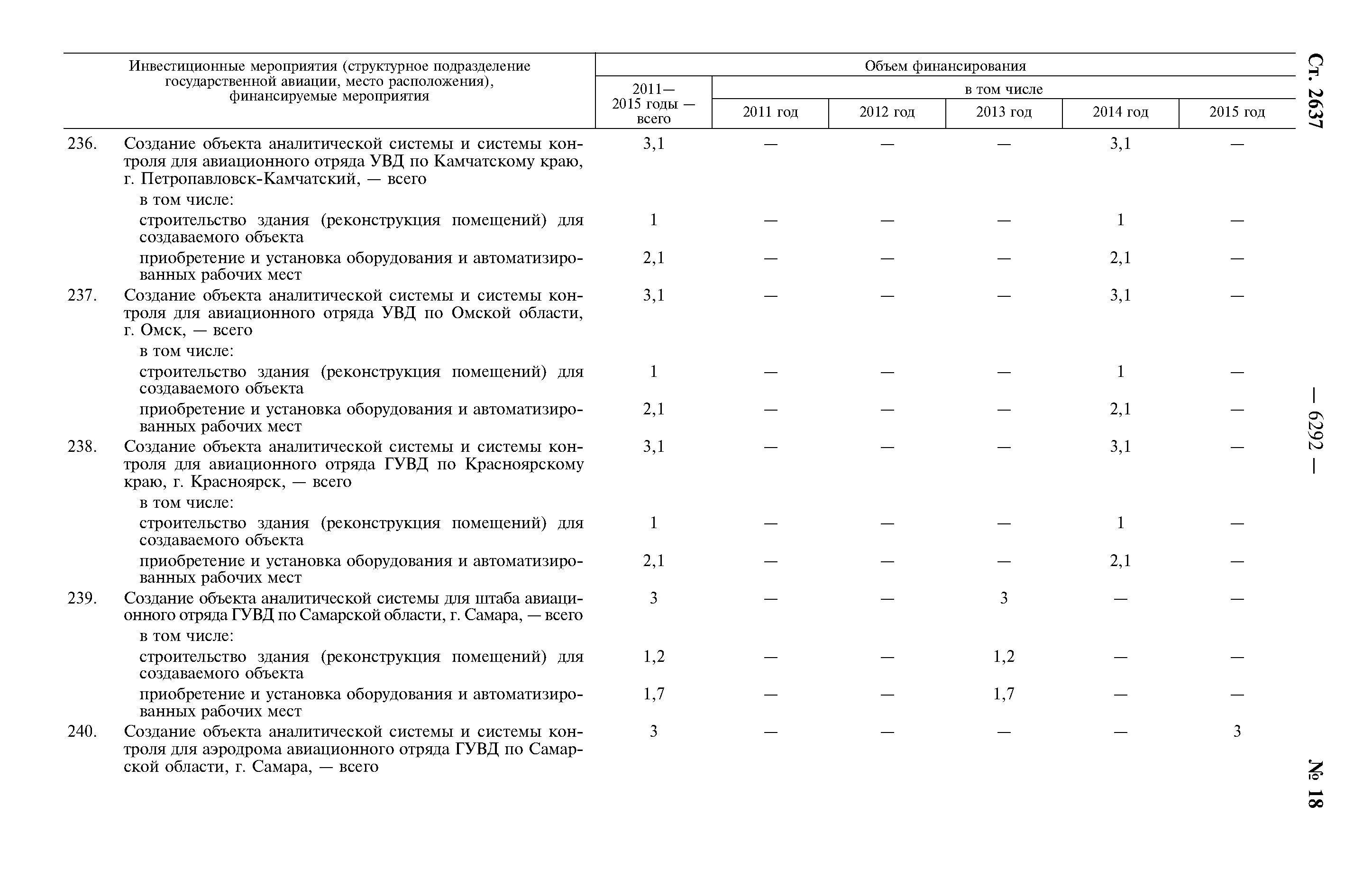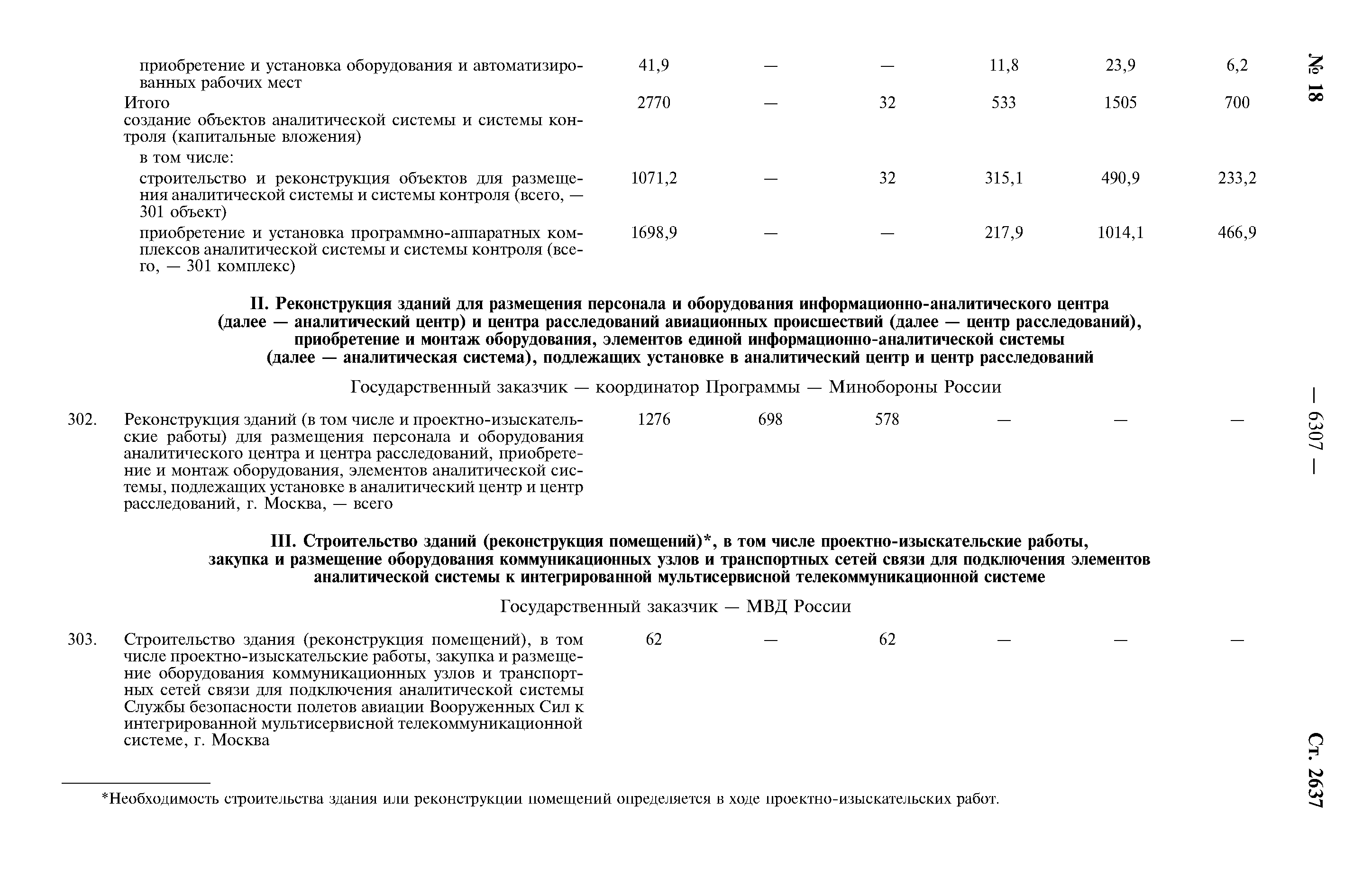 | Оглавление: | Паспорт федеральной целевой программы "Обеспечение безопасности полетов воздушных судов государственной авиации Российской Федерации в 2011- 2015 годах" I. Характеристика проблемы, на решение которой направлена Программа II. Основные цели и задачи Программы с указанием сроков и этапов ее реализации, а также целевых индикаторов и показателей III. Мероприятия Программы IV. Обоснование ресурсного обеспечения Программы V. Механизм реализации Программы, включающий в себя механизм управления Программой и механизм взаимодействия государственных заказчиков Программы VI. Оценка социально-экономической и экологической эффективности Программы Приложение N 1 Перечень инвестиционных мероприятий федеральной целевой программы "Обеспечение безопасности полетов воздушных судов государственной авиации Российской Федерации в 2011 - 2015 годах" Приложение N 2 Объемы финансирования научно-исследовательских и опытно-конструкторских работ федеральной целевой программы "Обеспечение безопасности полетов воздушных судов государственной авиации Российской Федерации в 2011 - 2015 годах" Приложение N 3 Перечень мероприятий, связанных с внедрением на объектах и в подразделениях государственной авиации инновационных технологий и комплексов системы управления безопасностью полетов Приложение N 4 Количественные значения целевых индикаторов и показателей хода реализации федеральной целевой программы "Обеспечение безопасности полетов воздушных судов государственной авиации Российской Федерации в 2011 - 2015 годах" Приложение N 5 Объемы финансирования федеральной целевой программы "Обеспечение безопасности полетов воздушных судов государственной авиации Российской Федерации в 2011 - 2015 годах" по основным направлениям расходования средств и государственным заказчикам |