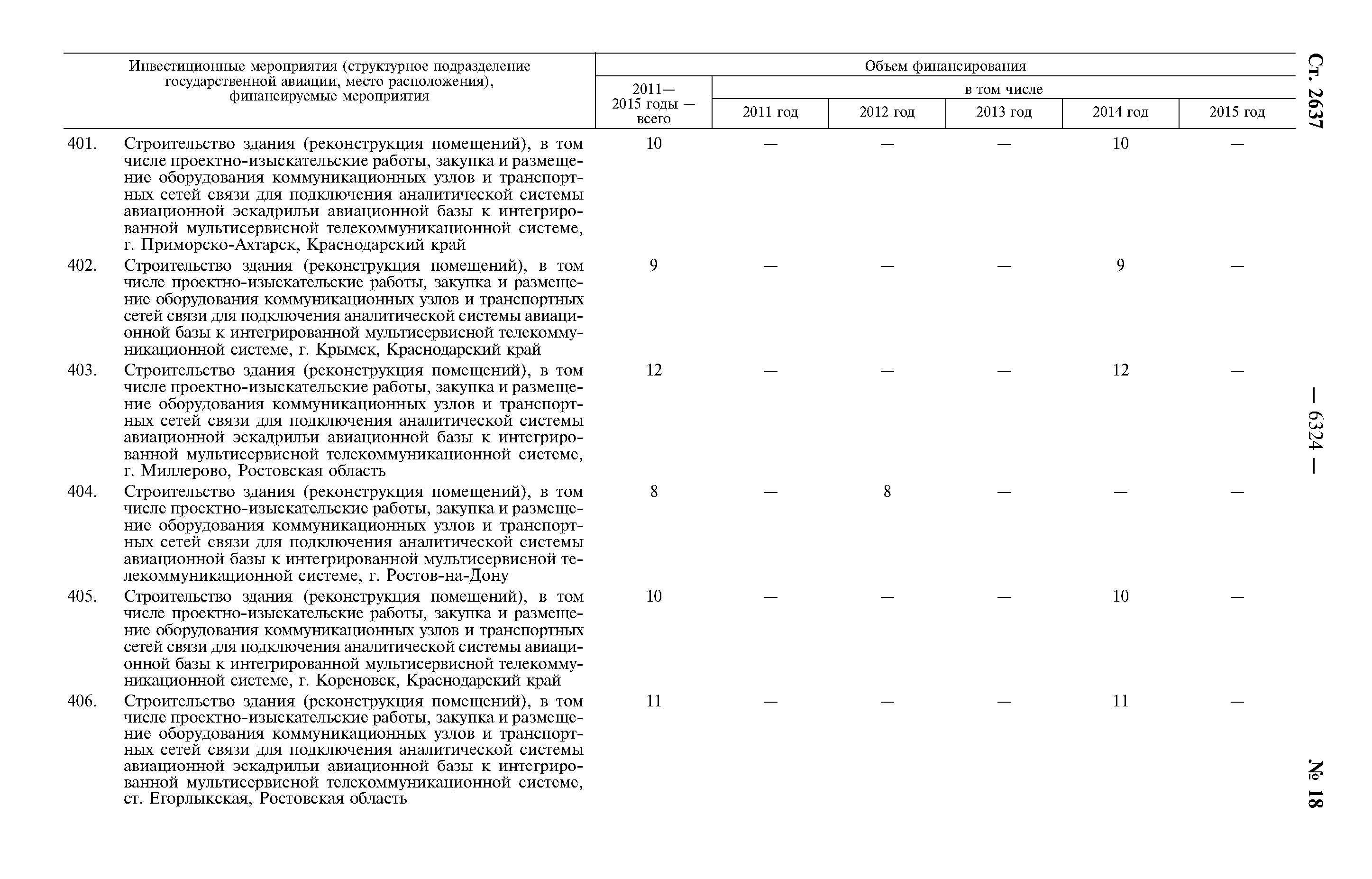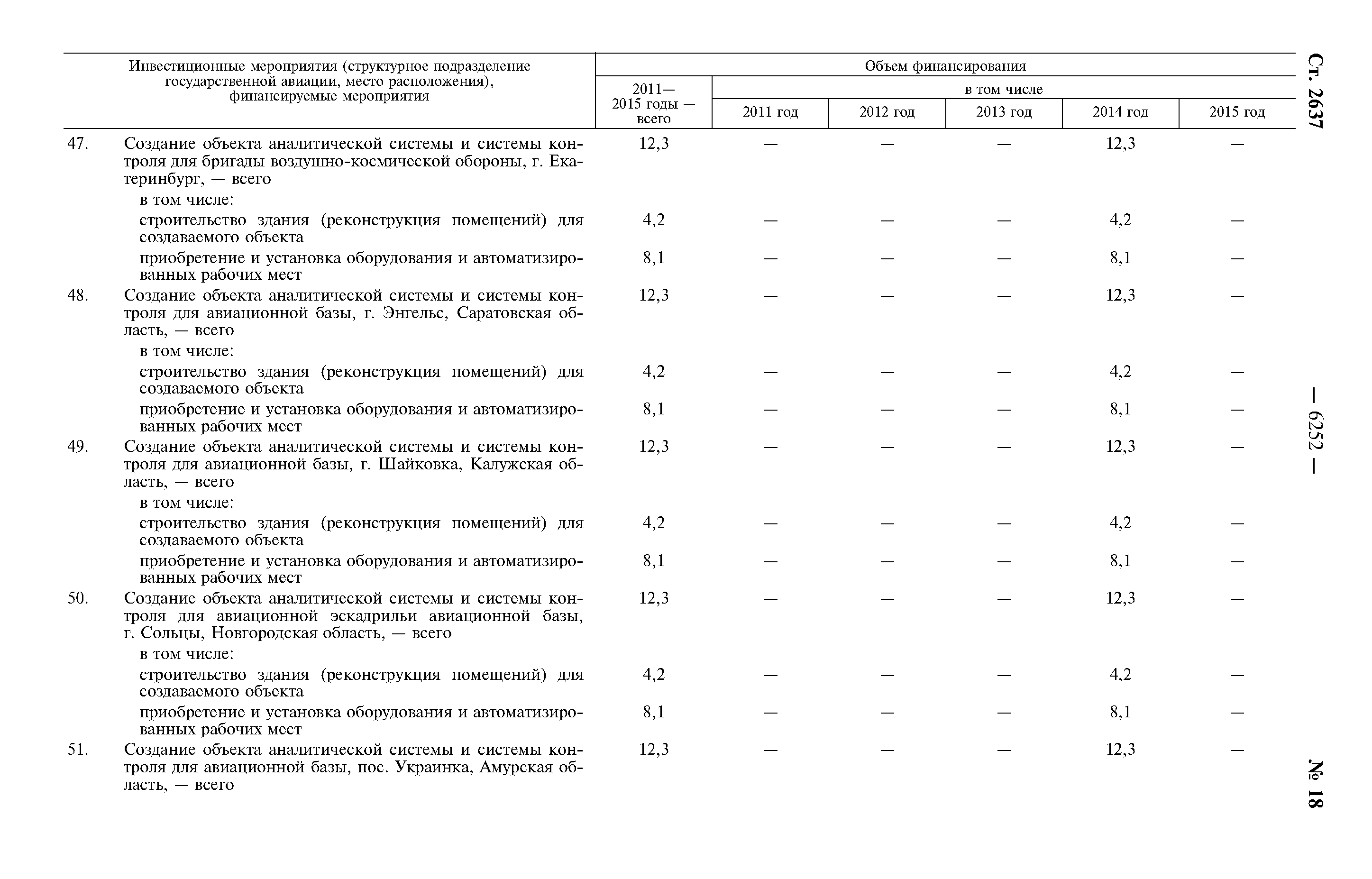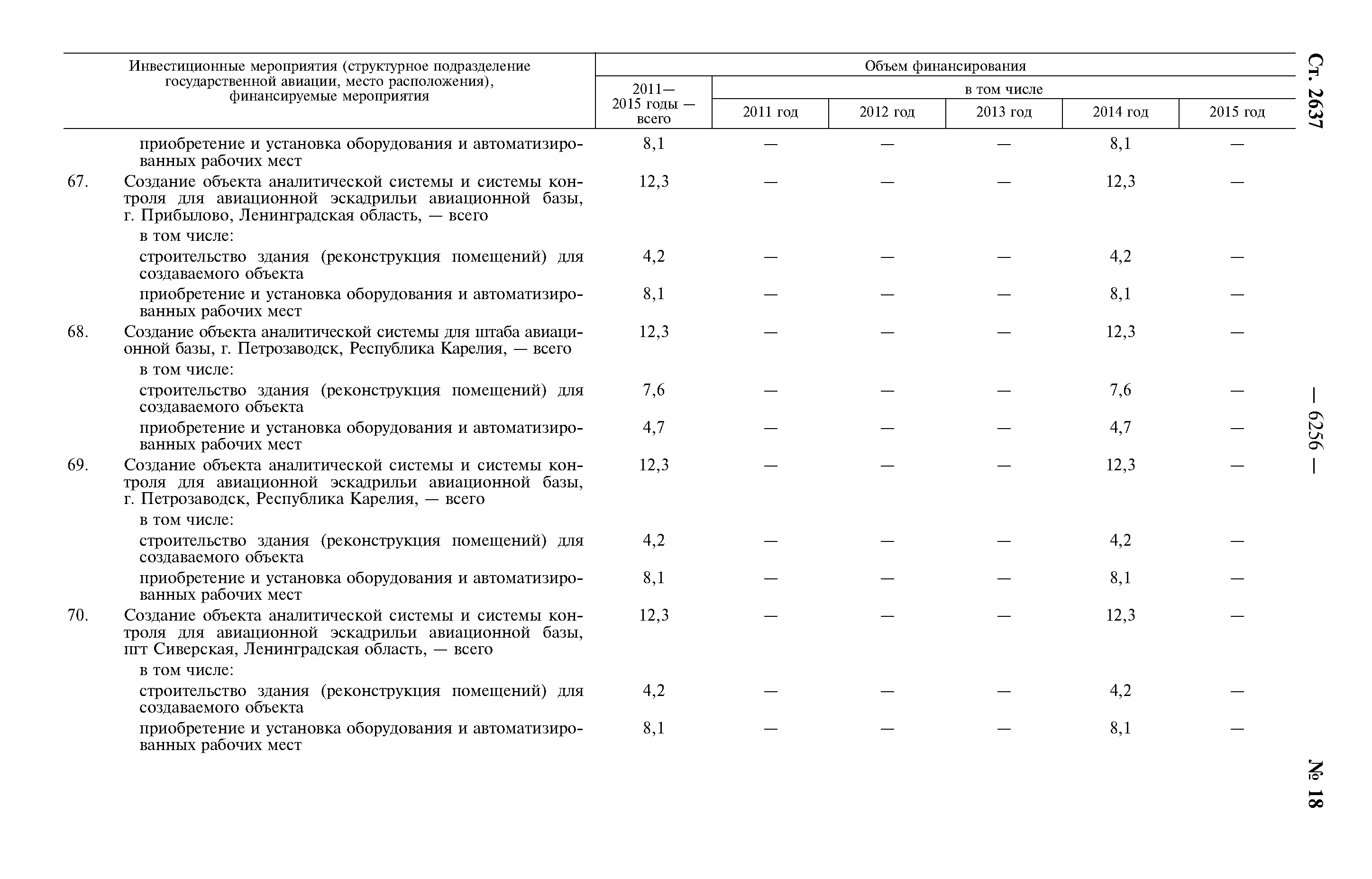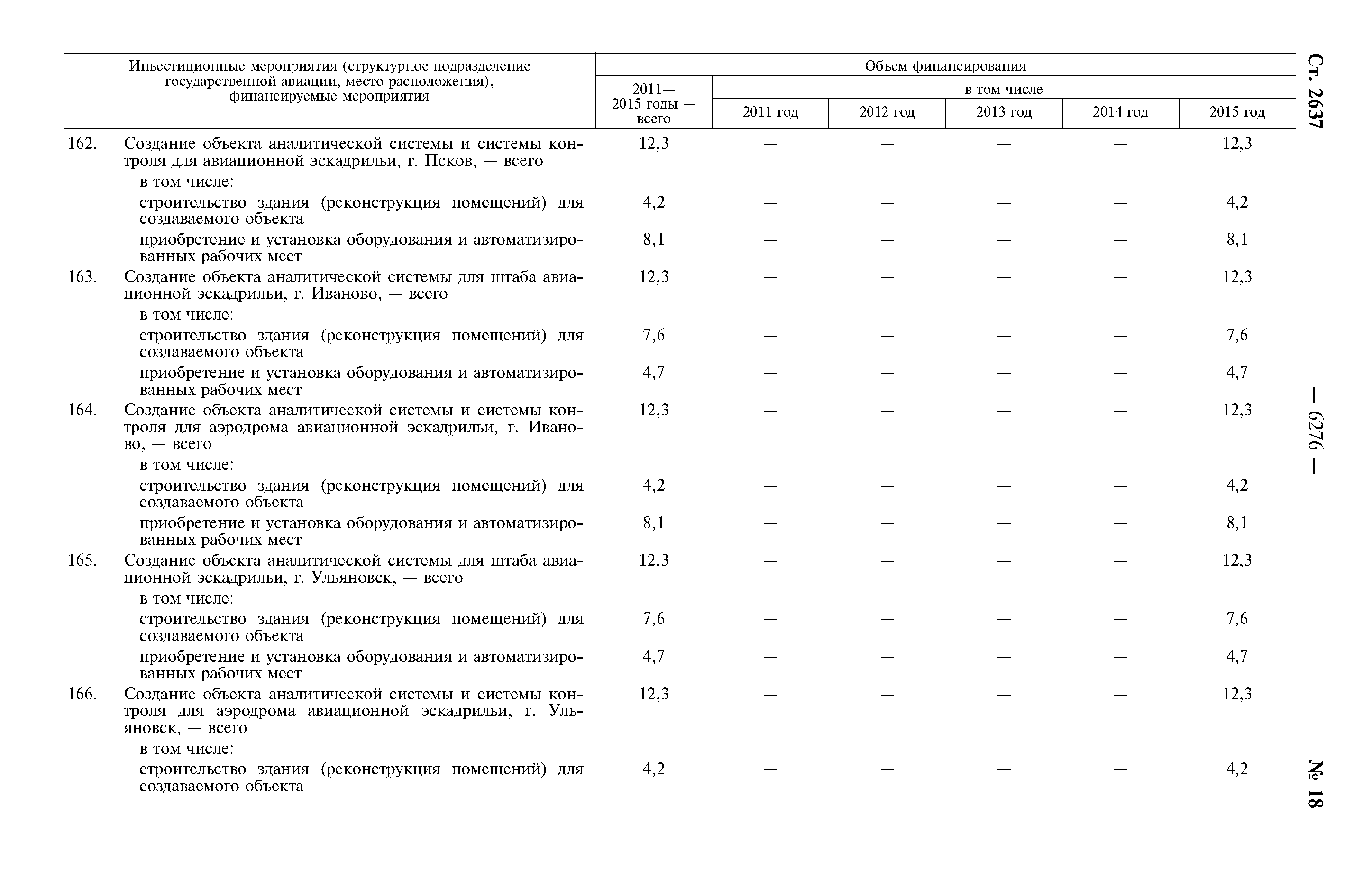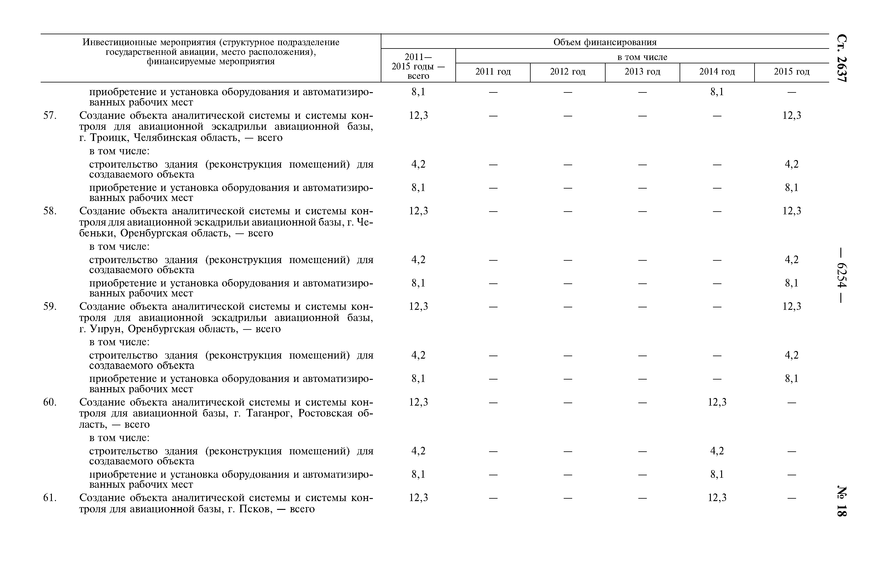| Оглавление: | Паспорт федеральной целевой программы "Обеспечение безопасности полетов воздушных судов государственной авиации Российской Федерации в 2011- 2015 годах" I. Характеристика проблемы, на решение которой направлена Программа II. Основные цели и задачи Программы с указанием сроков и этапов ее реализации, а также целевых индикаторов и показателей III. Мероприятия Программы IV. Обоснование ресурсного обеспечения Программы V. Механизм реализации Программы, включающий в себя механизм управления Программой и механизм взаимодействия государственных заказчиков Программы VI. Оценка социально-экономической и экологической эффективности Программы Приложение N 1 Перечень инвестиционных мероприятий федеральной целевой программы "Обеспечение безопасности полетов воздушных судов государственной авиации Российской Федерации в 2011 - 2015 годах" Приложение N 2 Объемы финансирования научно-исследовательских и опытно-конструкторских работ федеральной целевой программы "Обеспечение безопасности полетов воздушных судов государственной авиации Российской Федерации в 2011 - 2015 годах" Приложение N 3 Перечень мероприятий, связанных с внедрением на объектах и в подразделениях государственной авиации инновационных технологий и комплексов системы управления безопасностью полетов Приложение N 4 Количественные значения целевых индикаторов и показателей хода реализации федеральной целевой программы "Обеспечение безопасности полетов воздушных судов государственной авиации Российской Федерации в 2011 - 2015 годах" Приложение N 5 Объемы финансирования федеральной целевой программы "Обеспечение безопасности полетов воздушных судов государственной авиации Российской Федерации в 2011 - 2015 годах" по основным направлениям расходования средств и государственным заказчикам |