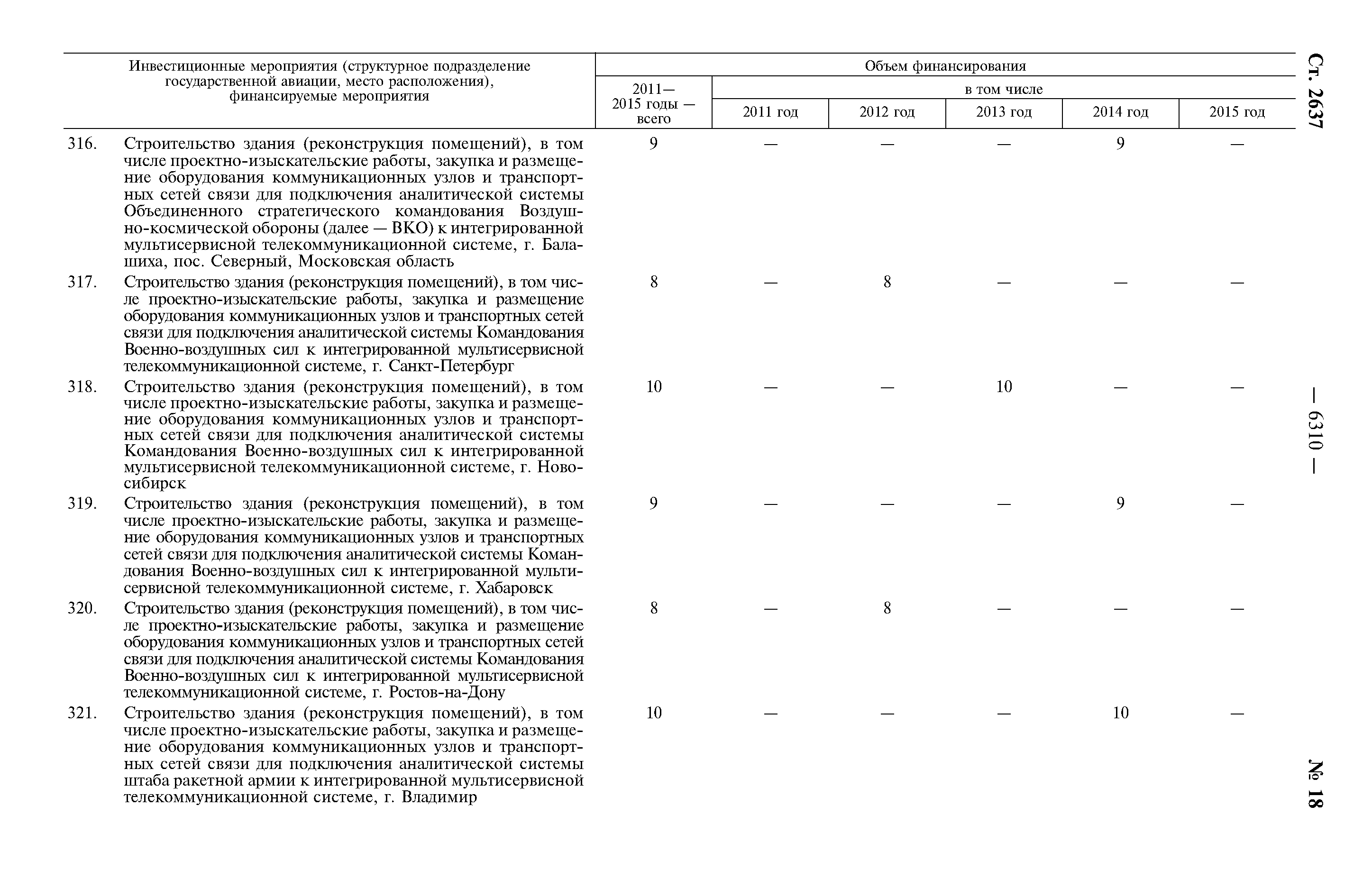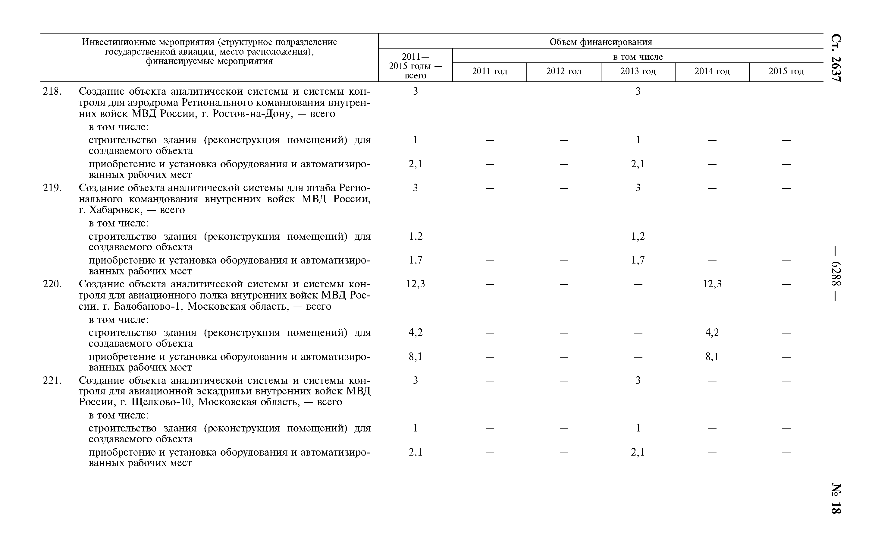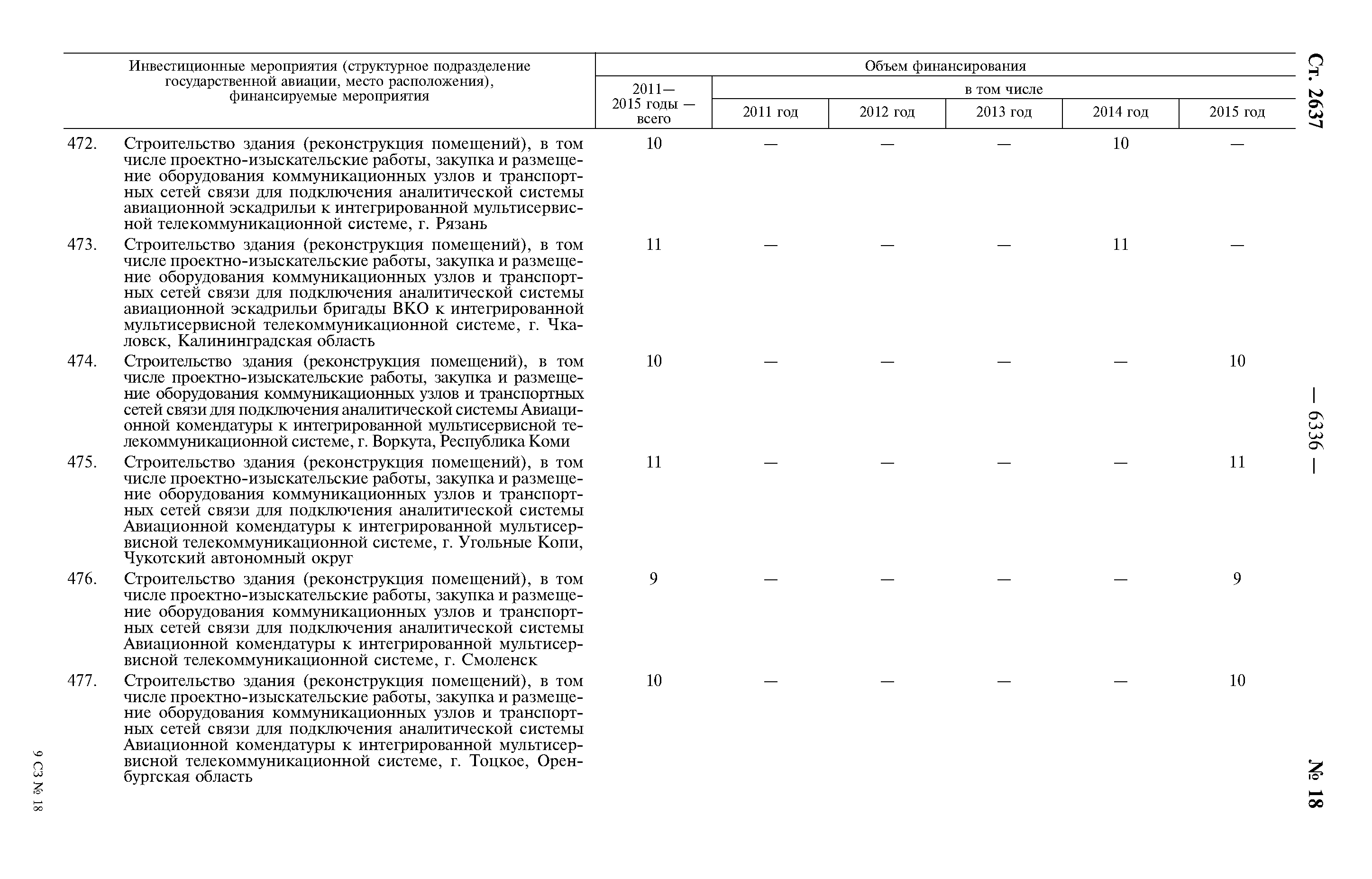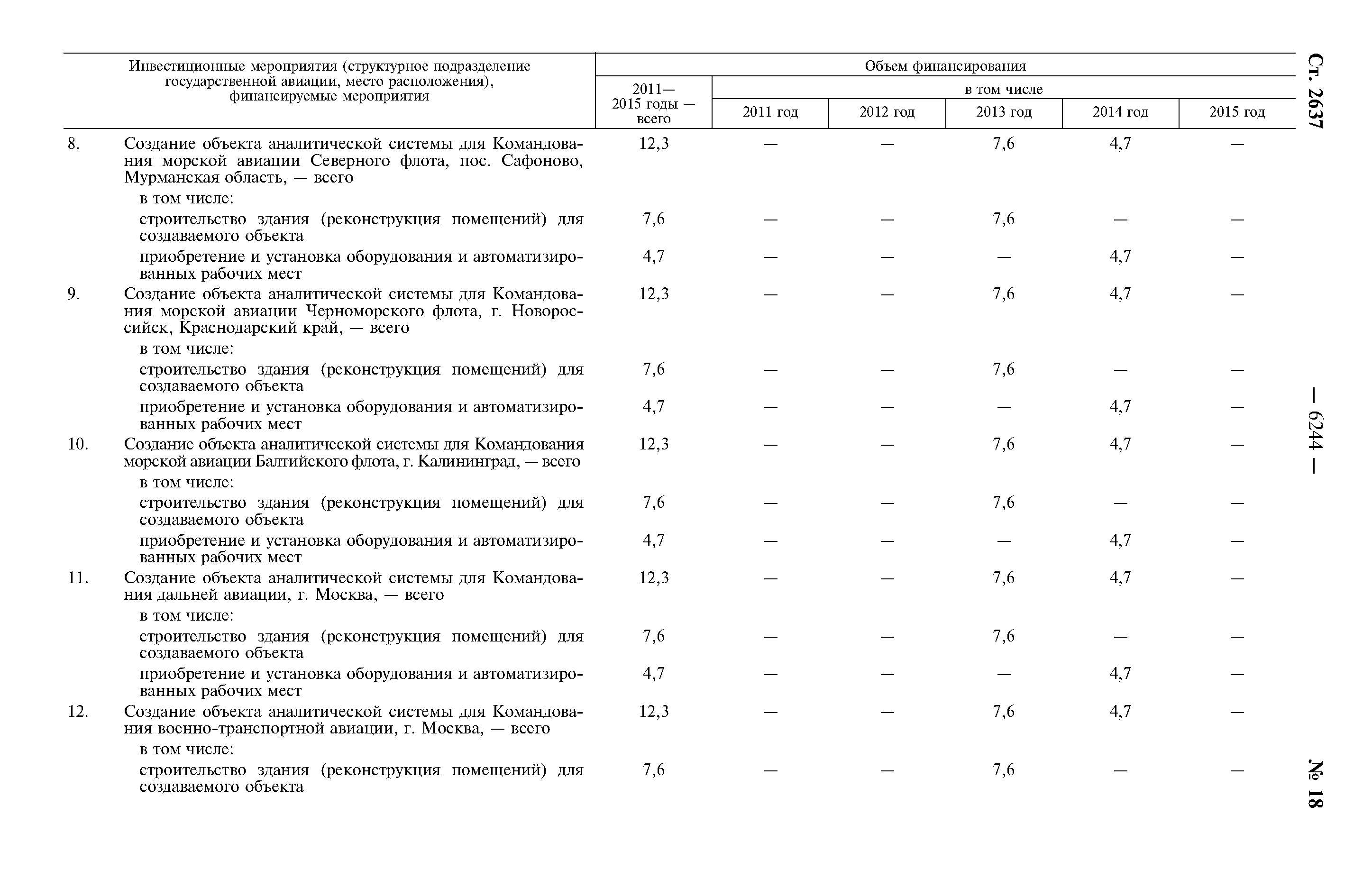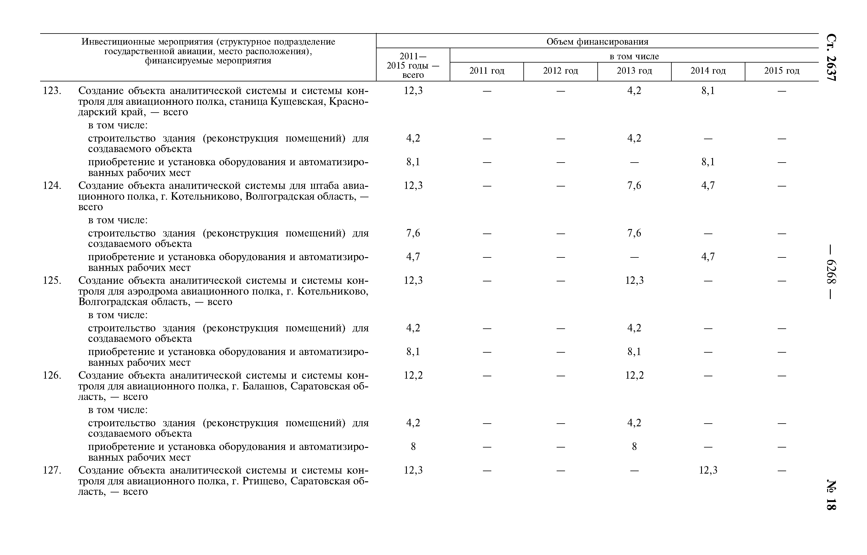 | Оглавление: | Паспорт федеральной целевой программы "Обеспечение безопасности полетов воздушных судов государственной авиации Российской Федерации в 2011- 2015 годах" I. Характеристика проблемы, на решение которой направлена Программа II. Основные цели и задачи Программы с указанием сроков и этапов ее реализации, а также целевых индикаторов и показателей III. Мероприятия Программы IV. Обоснование ресурсного обеспечения Программы V. Механизм реализации Программы, включающий в себя механизм управления Программой и механизм взаимодействия государственных заказчиков Программы VI. Оценка социально-экономической и экологической эффективности Программы Приложение N 1 Перечень инвестиционных мероприятий федеральной целевой программы "Обеспечение безопасности полетов воздушных судов государственной авиации Российской Федерации в 2011 - 2015 годах" Приложение N 2 Объемы финансирования научно-исследовательских и опытно-конструкторских работ федеральной целевой программы "Обеспечение безопасности полетов воздушных судов государственной авиации Российской Федерации в 2011 - 2015 годах" Приложение N 3 Перечень мероприятий, связанных с внедрением на объектах и в подразделениях государственной авиации инновационных технологий и комплексов системы управления безопасностью полетов Приложение N 4 Количественные значения целевых индикаторов и показателей хода реализации федеральной целевой программы "Обеспечение безопасности полетов воздушных судов государственной авиации Российской Федерации в 2011 - 2015 годах" Приложение N 5 Объемы финансирования федеральной целевой программы "Обеспечение безопасности полетов воздушных судов государственной авиации Российской Федерации в 2011 - 2015 годах" по основным направлениям расходования средств и государственным заказчикам |
