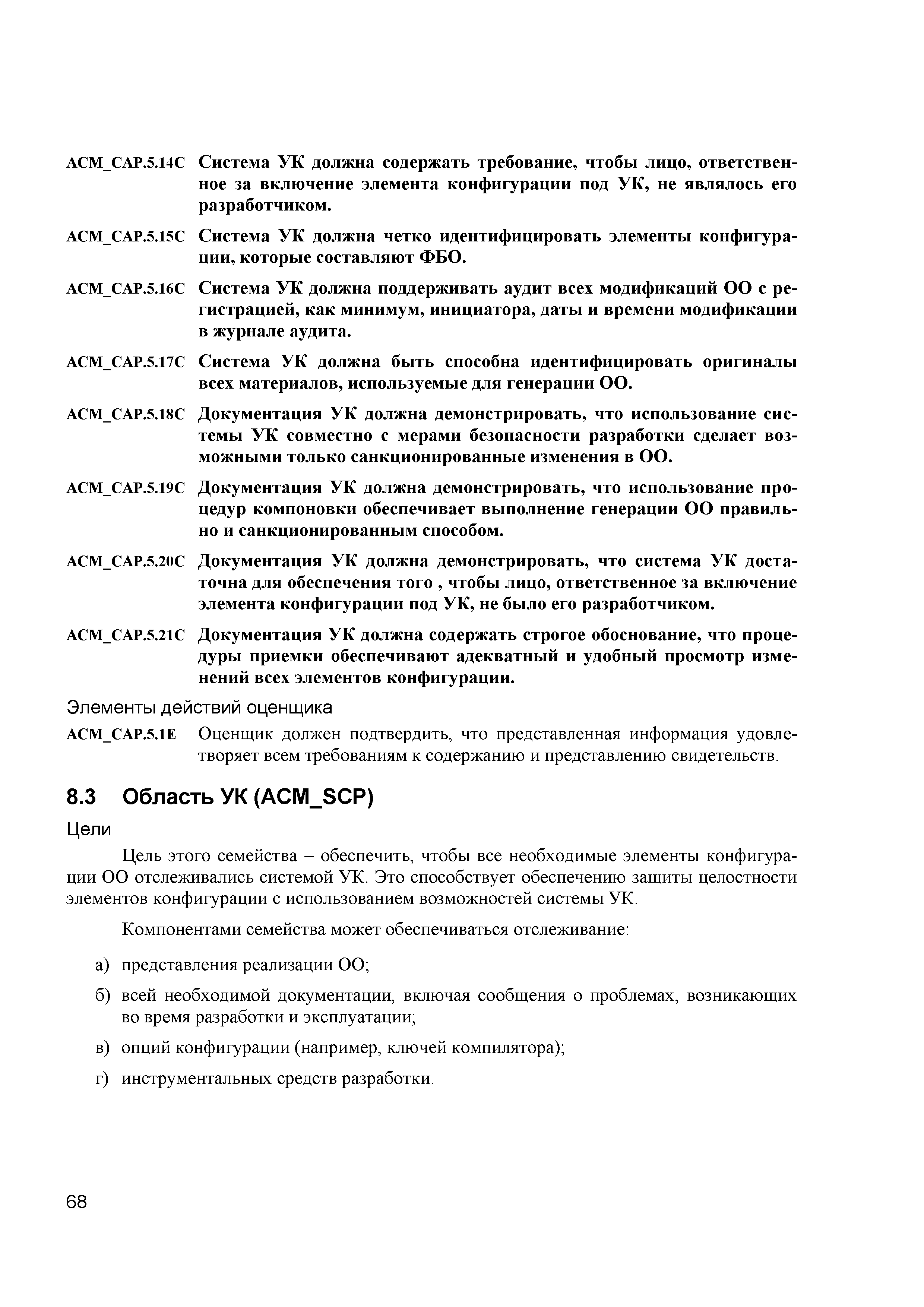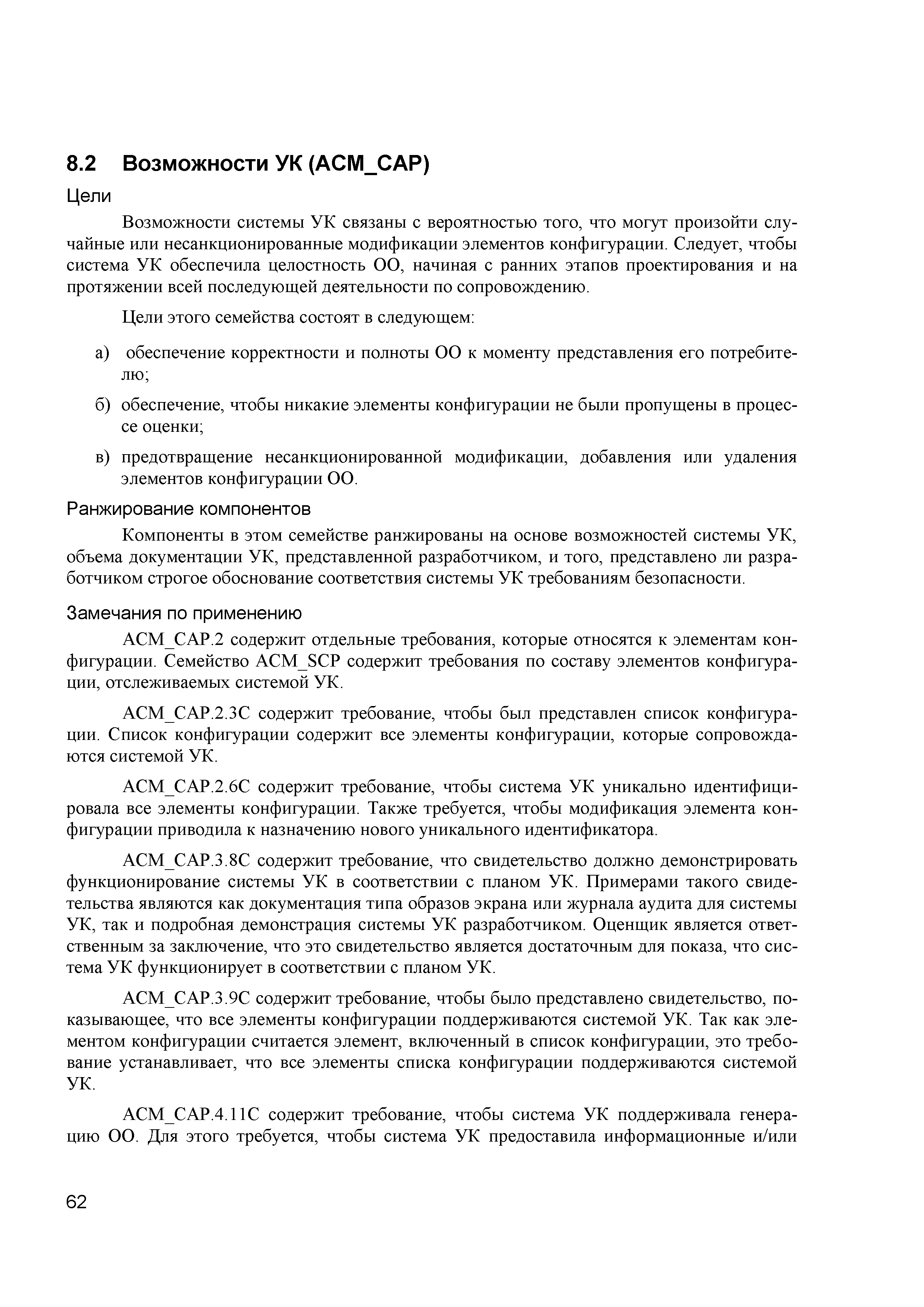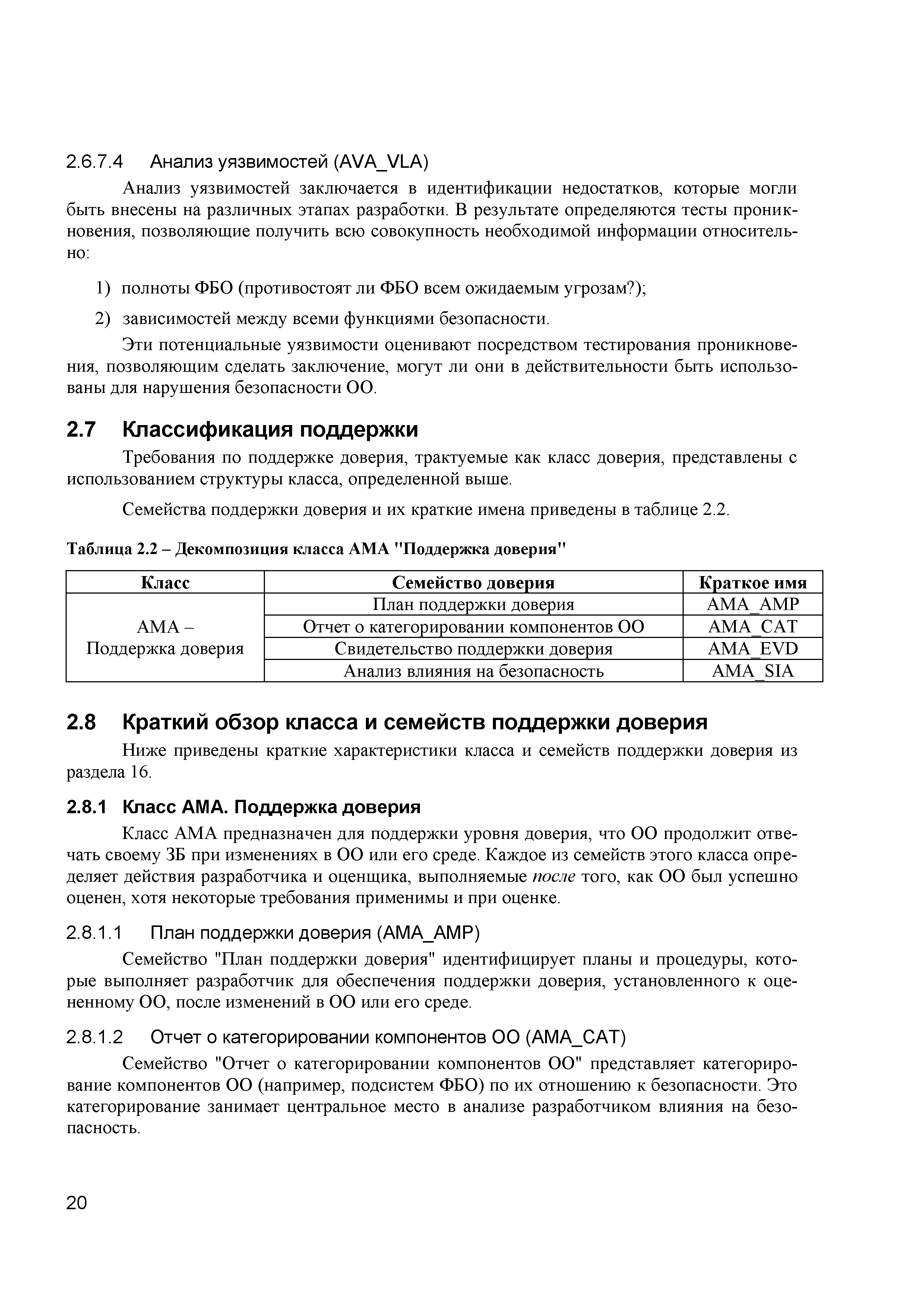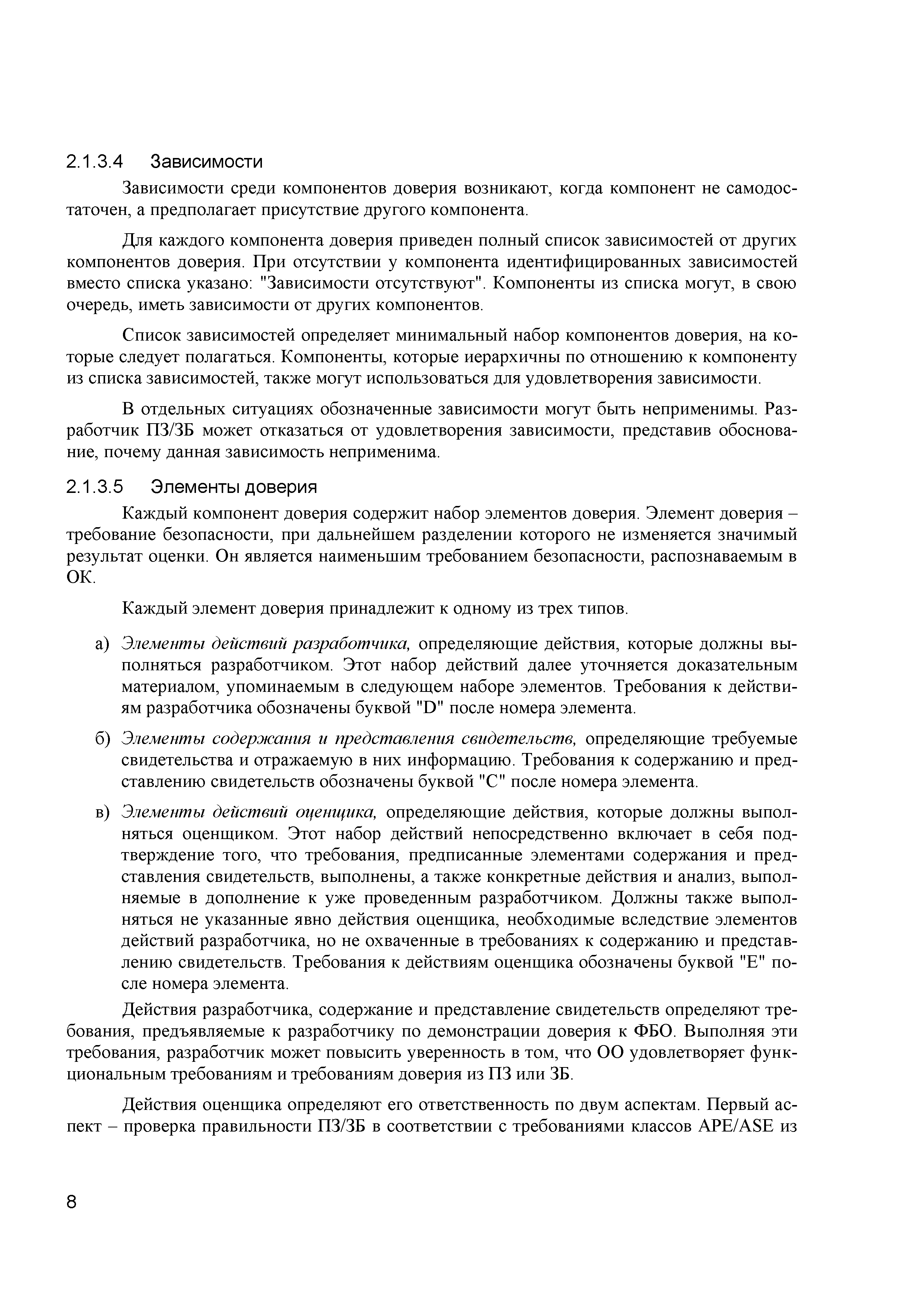 | Оглавление: | 1 Область применения 2 Требования доверия к безопасности 3 Критерии оценки профиля защиты и задания по безопасности 4 Класс АРЕ. Оценка профиля защиты 5 Класс ASE. Оценка задания по безопасности 6 Оценочные уровни доверия 7 Классы, семейства и компоненты доверия 8 Класс АСМ. Управление конфигурацией 9 Класс ADO. Поставка и эксплуатация 10 Класс ADV. Разработка 11 Класс AGD. Руководства 12 Класс ALC. Поддержка жизненного цикла 13 Класс ATE. Тестирование 14 Класс AVA. Оценка уязвимостей 15 Парадигма поддержки доверия 16 Класс AMA. Поддержка доверия Приложение А. Перекрестные ссылки между компонентами доверия Приложение Б. Перекрестные ссылки ОУД и компонентов доверия |