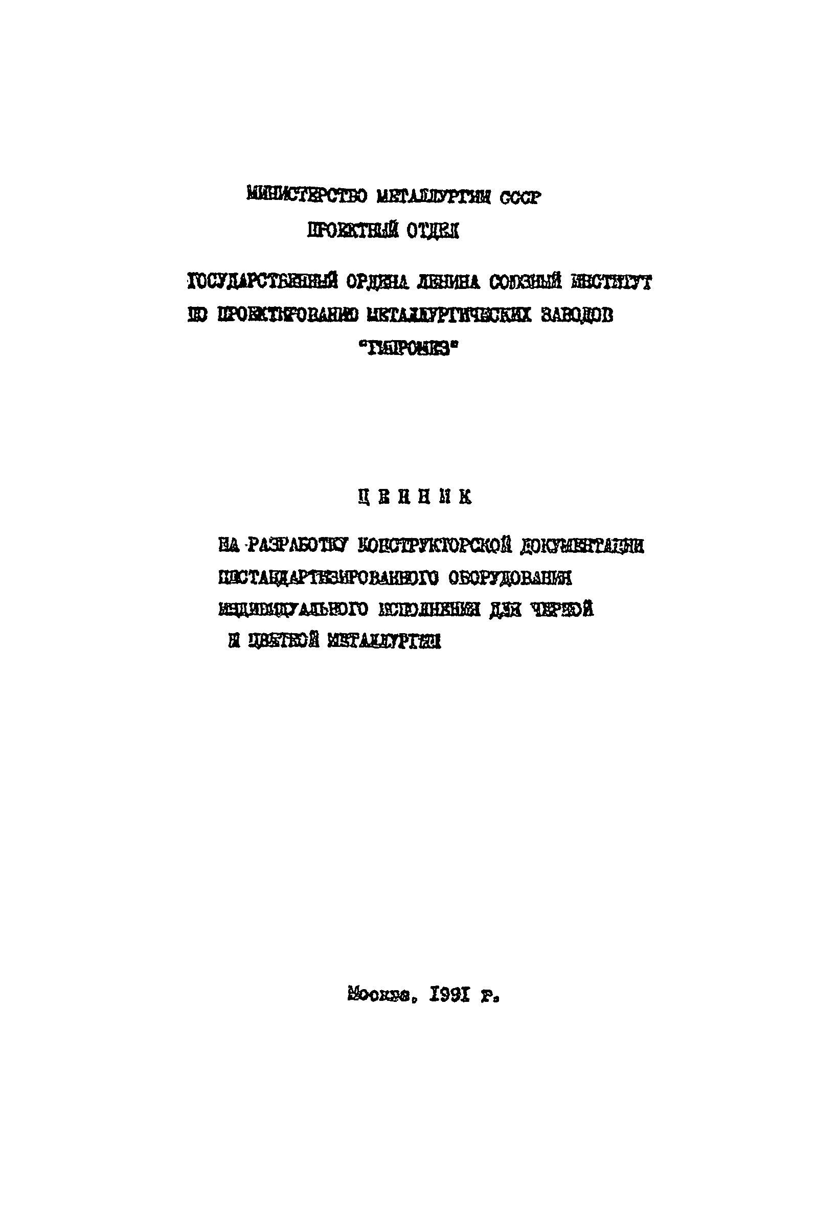 | Название рус.: | Ценник на разработку конструкторской документации нестандартизированного оборудования индивидуального исполнения для черной и цветной металлургии |