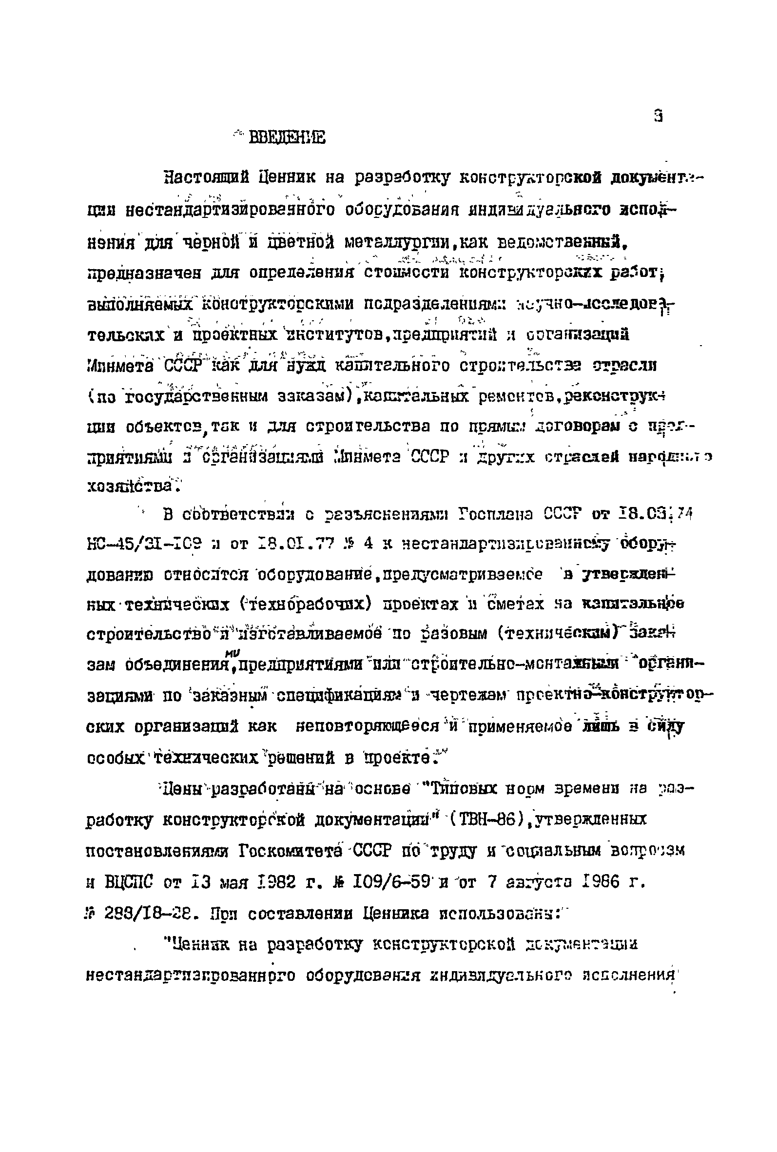 | Область применения: | Документ предназначен для определения стоимости конструкторских работ, выполняемых конструкторскими подразделениями научно-исследовательских и проектных институтов, предприятий и организаций Минмета СССР как для нужд капитального строительства отрасли (по государственным заказам), капитальных ремонтов, реконструкции объектов, так и для строительства по прямым договорам с предприятиями и организациями Минмета СССР и других отраслей народного хозяйства. |