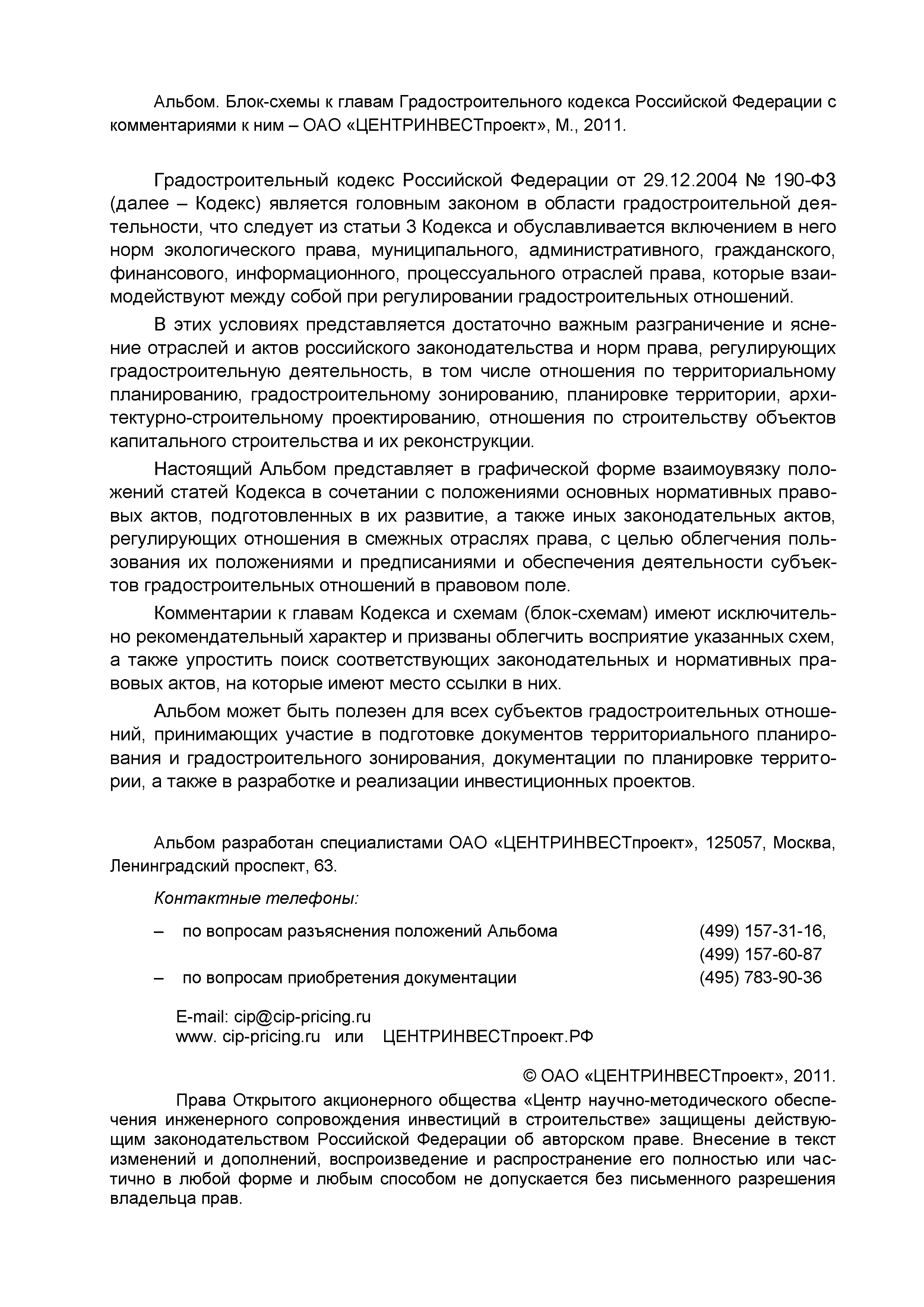 | Название рус.: | Альбом. Блок-схемы к главам Градостроительного кодекса Российской Федерации с комментариями к ним |