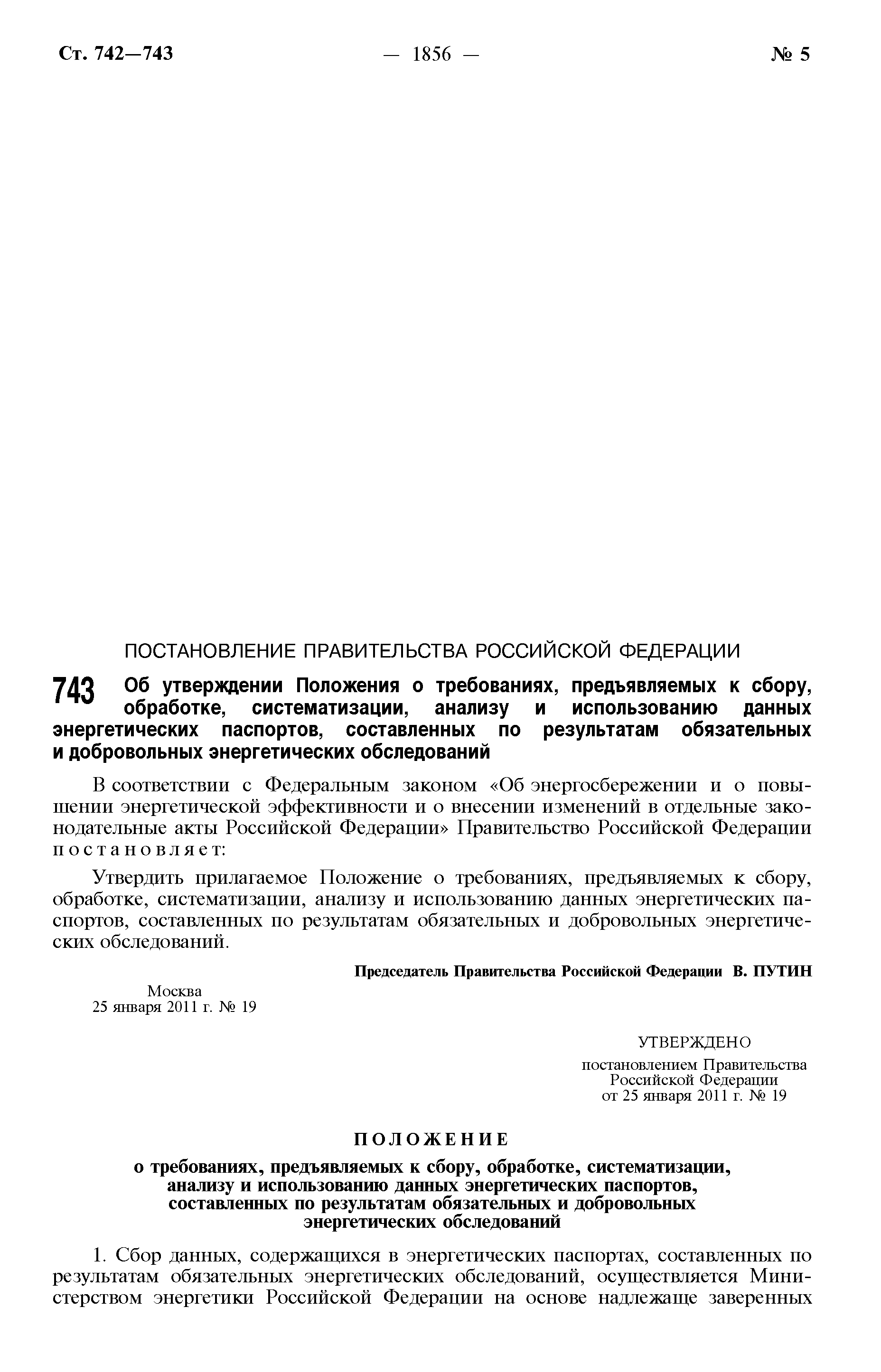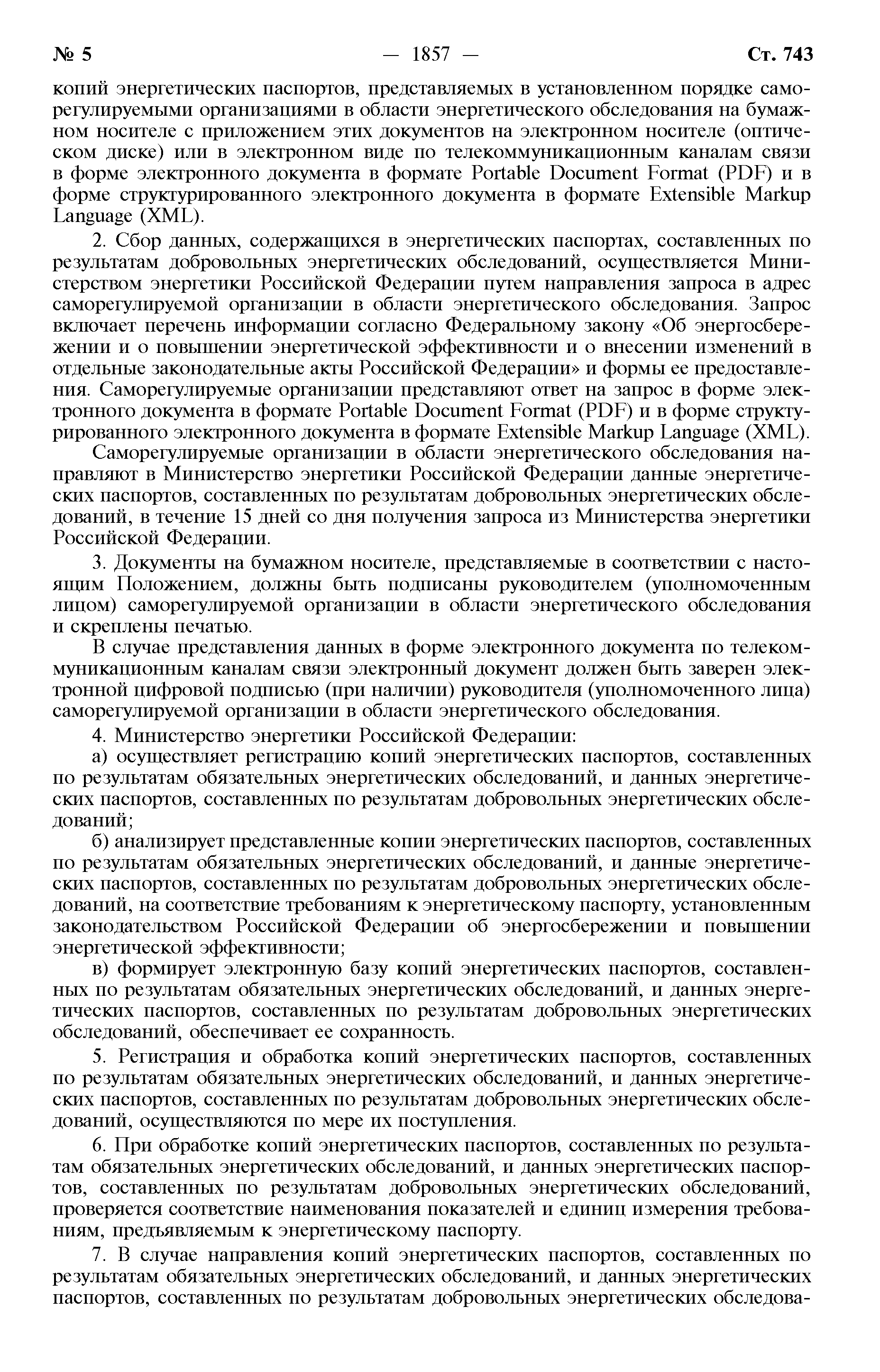 | | Издан: | Собрание законодательства Российской Федерации (от 31.01.2011 г. № 5 ст. 743)