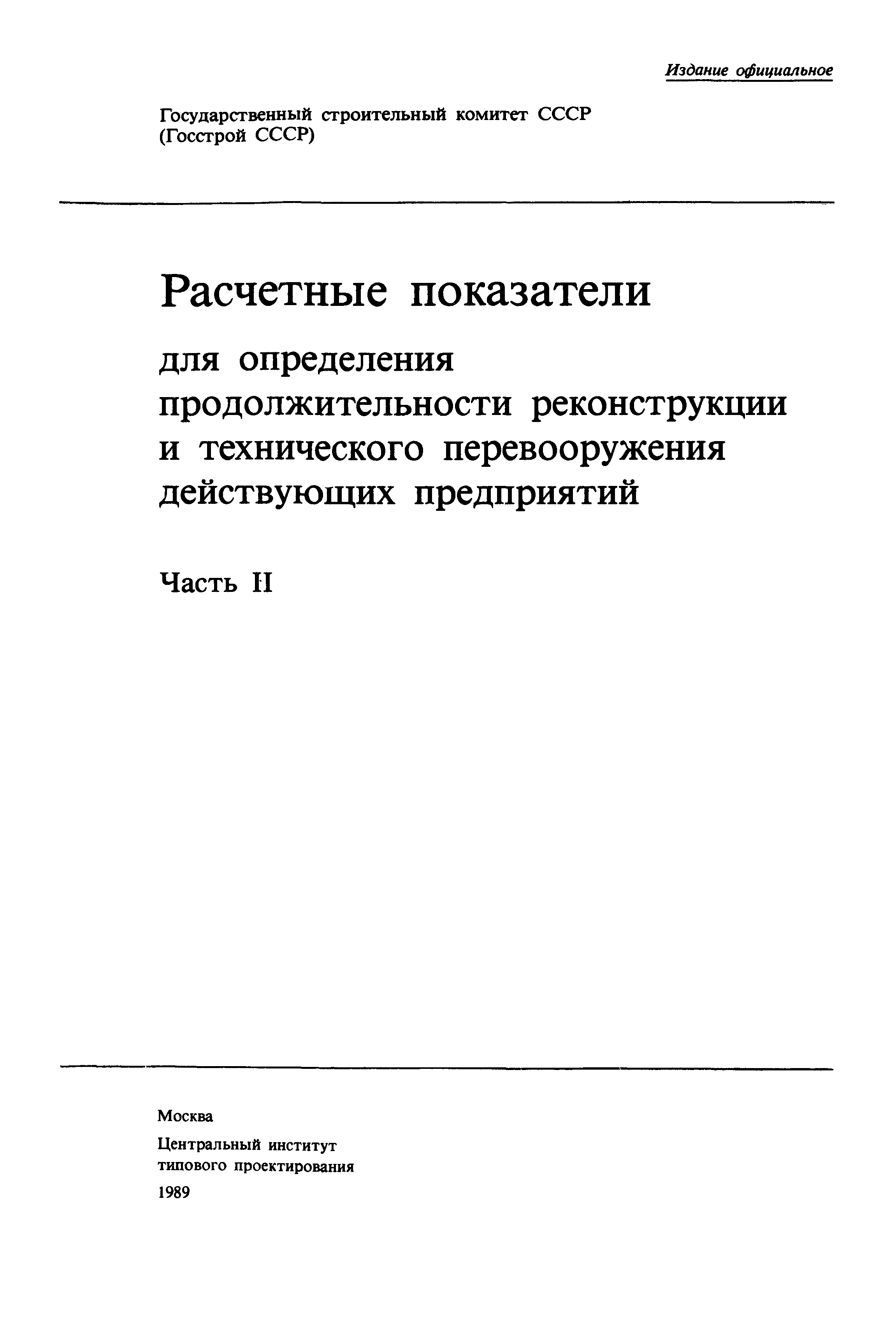 | Название рус.: | Расчетные показатели для определения продолжительности реконструкции и технического перевооружения действующих предприятий. Часть II |