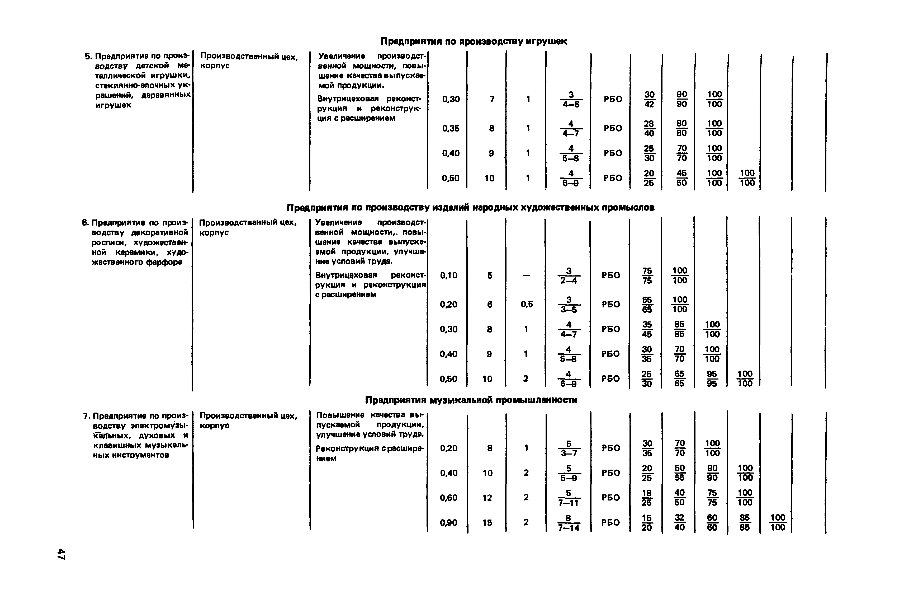 | Оглавление: | Строительство и промышленность строительных конструкций и деталей Промышленность строительных материалов Легкая промышленность Пищевая промышленность Мясная и молочная промышленность Рыбная промышленность Медицинская и микробиологическая промышленность Мукомольно-крупяная, комбикормовая промышленность и заготовки Полиграфическая промышленность Местная промышленность Сельскохозяйственное строительство Предприятия сельхозтехники Заготовка и переработка сельскохозяйственной продукции Железнодорожный транспорт Морской транспорт Судоремонтные предприятия Автомобильный транспорт Воздушный транспорт Предприятия связи Бытовое обслуживание населения |