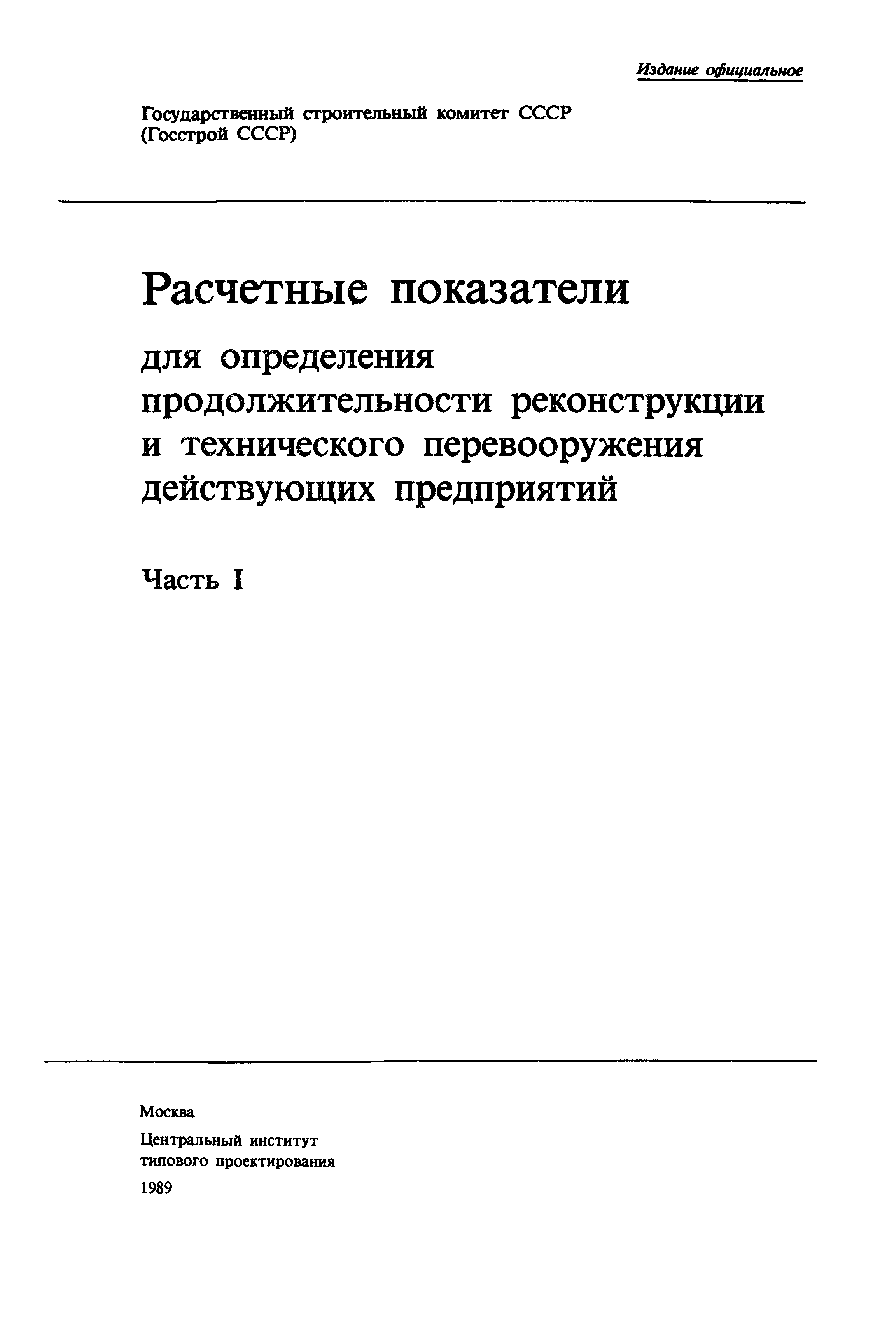 | Название рус.: | Расчетные показатели для определения продолжительности реконструкции и технического перевооружения действующих предприятий. Часть I |
