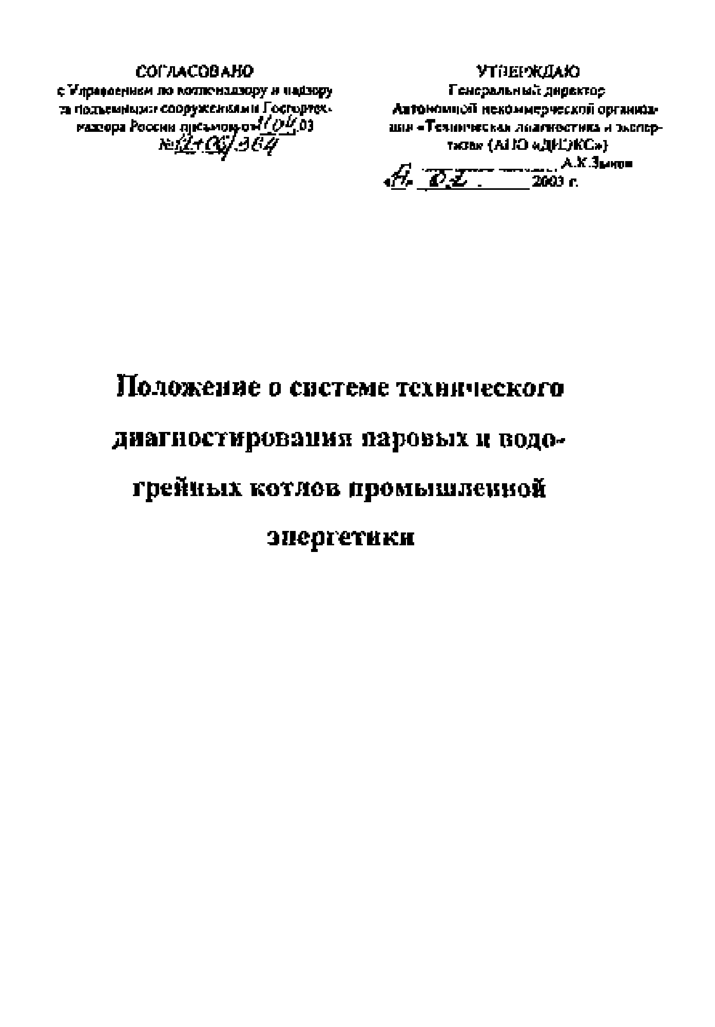 | Название рус.: | Положение о системе технического диагностирования паровых и водогрейных котлов промышленной энергетики |