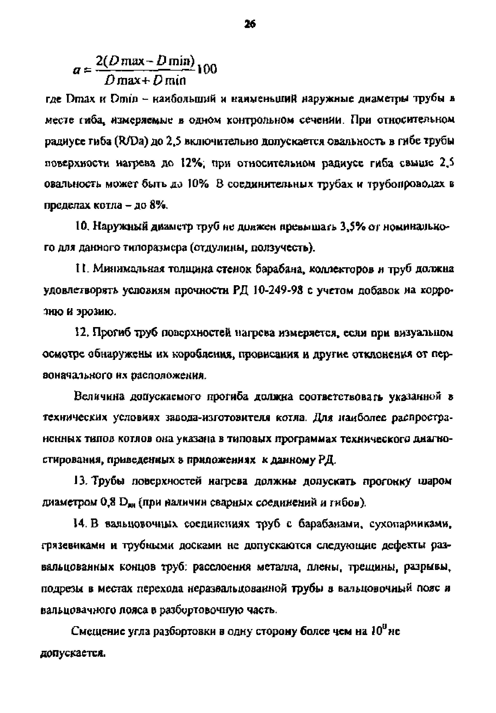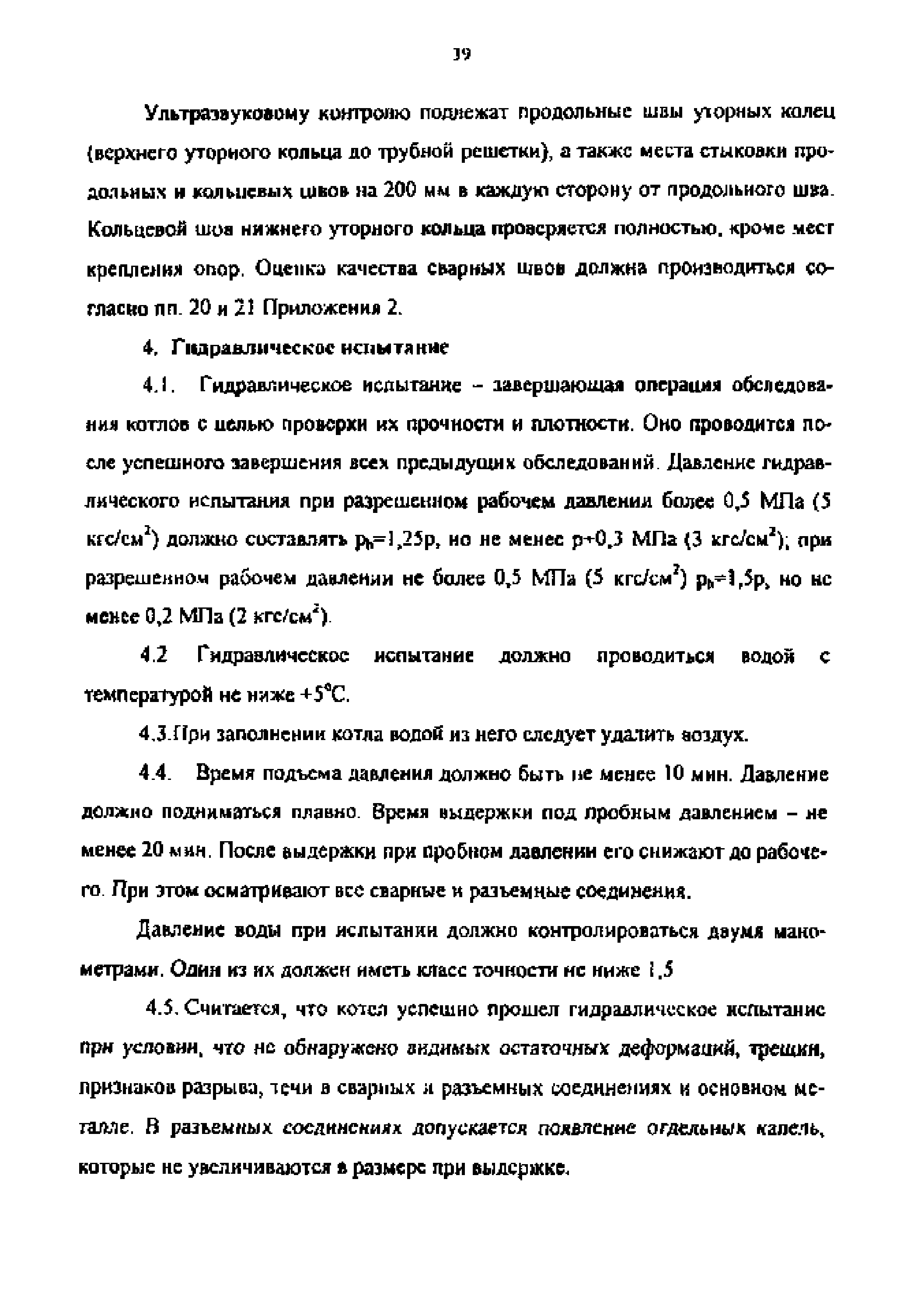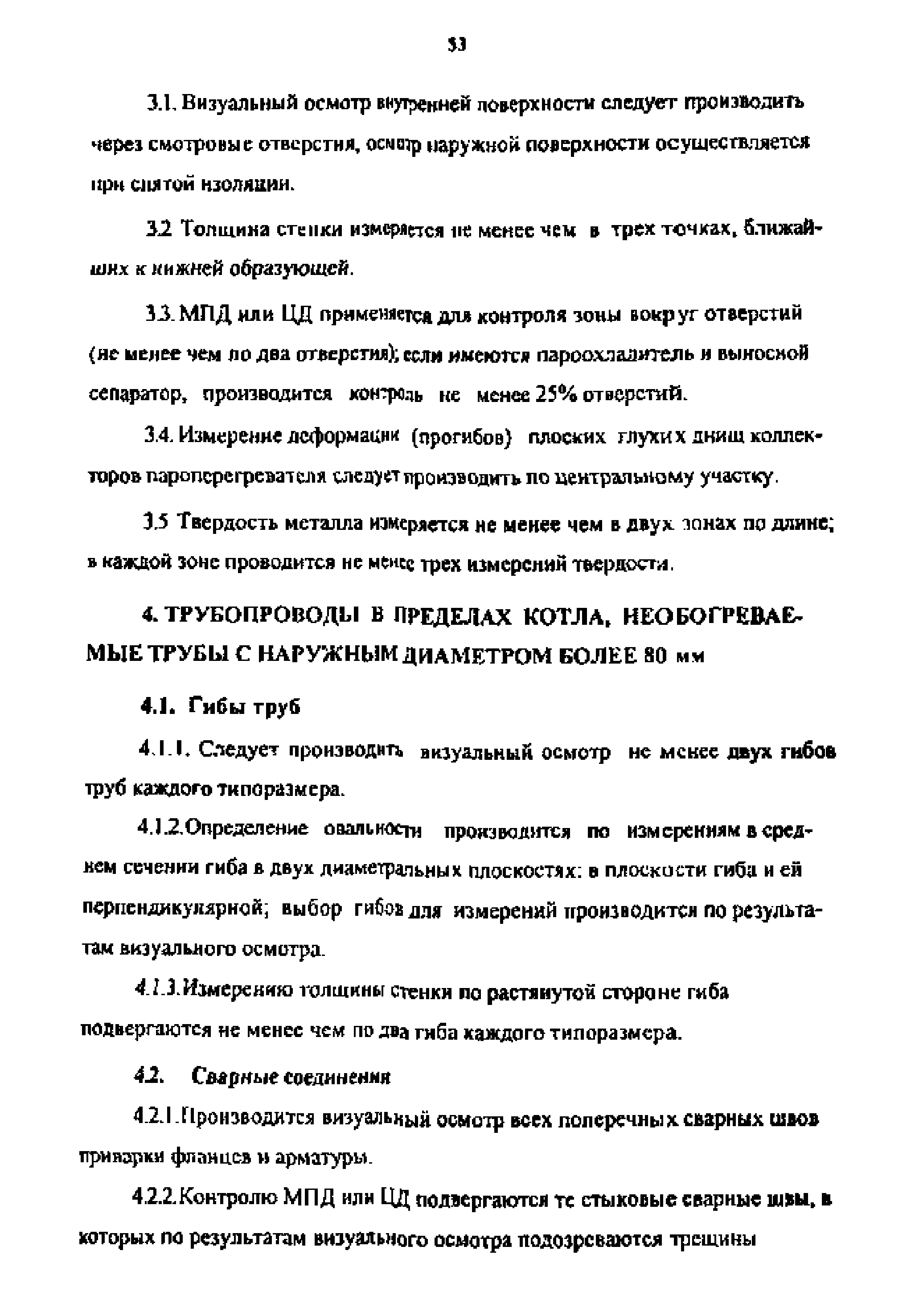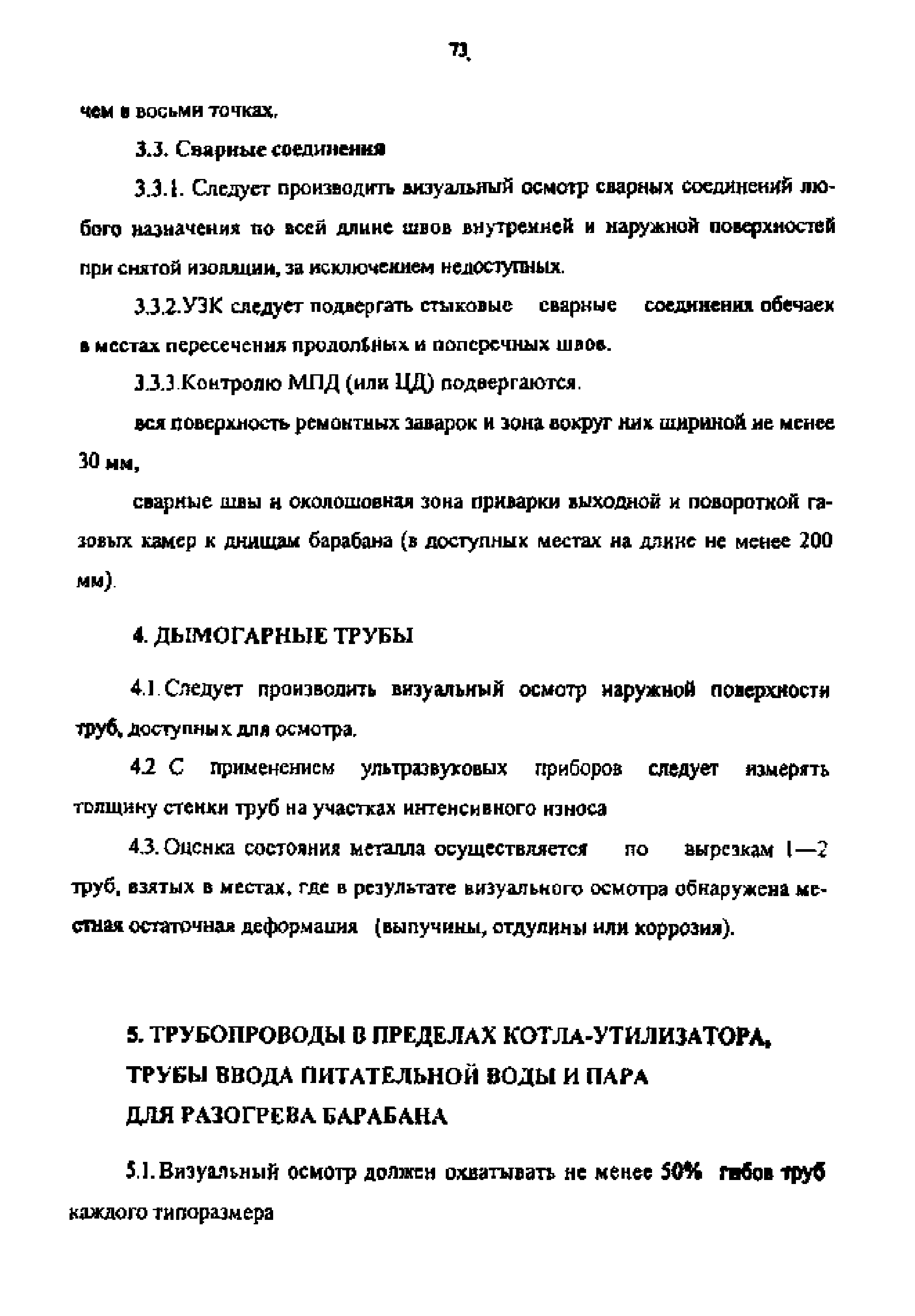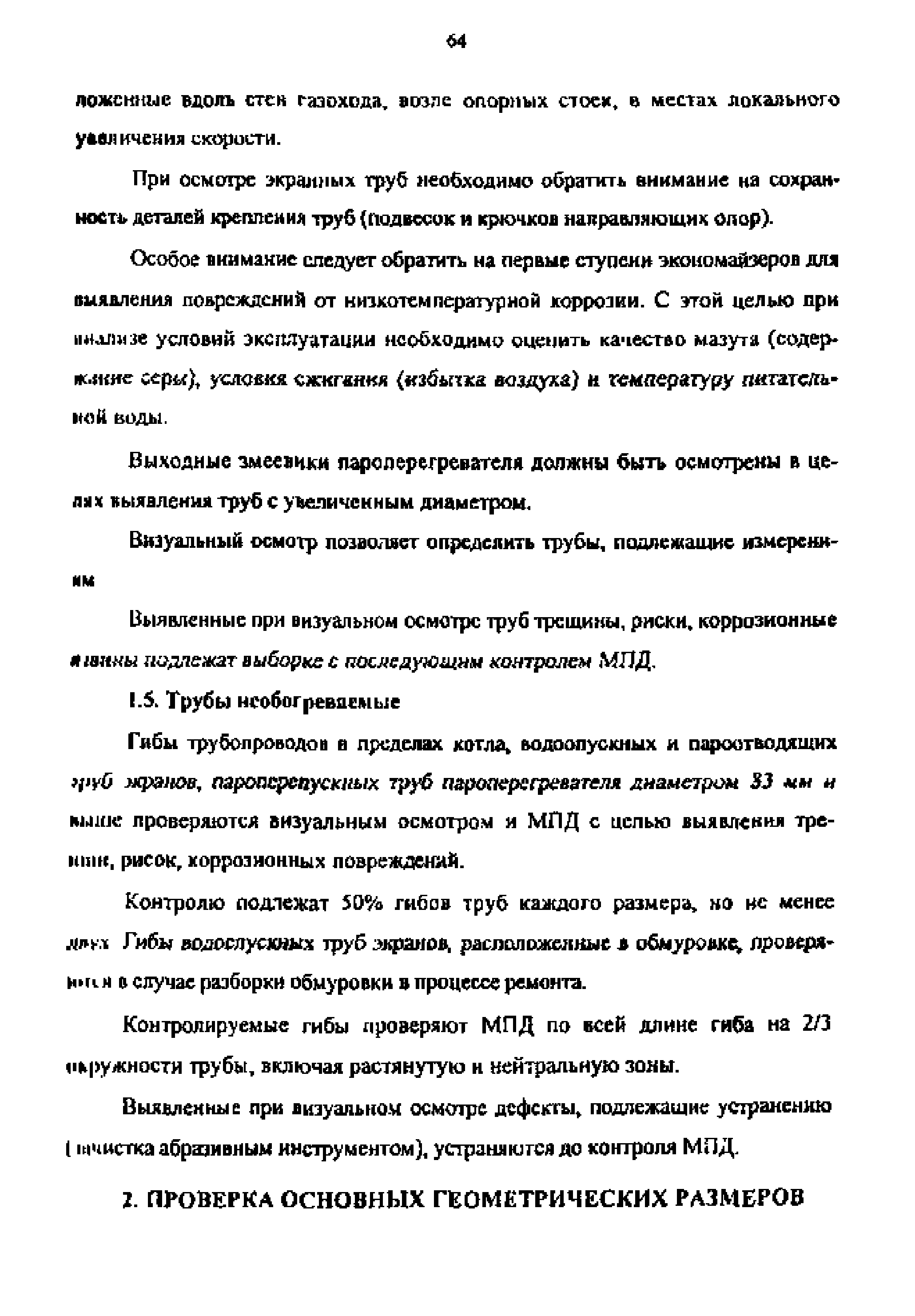 | Оглавление: | 1. Общие положения 2. Требования к организации работ, исполнителям, средствам и объекту экспертизы 3. Экспертиза котла Приложение 1 (обязательное). Техническое освидетельствование паровых и водогрейных котлов с давлением до 4 МПа Приложение 2 (обязательное). Нормы оценки технического состояния котлов по результатам экспертизы Приложение 3 (рекомендуемое). Типовая программа экспертизы промышленной безопасности чугунных экономайзеров паровых котлов Приложение 4 (рекомендуемое). Типовая программа технического диагностирования котлов МЗК-7 и МЗК-8 Приложение 5 (рекомендуемое). Типовая программа технического диагностирования котлов типа Е-1,0-0,9 и ПКИ Приложение 6 (рекомендуемое). Программа технического диагностирования котлов типа КЕ, ДЕ, ДКВр и ДКВ Приложение 7 (рекомендуемое). Программа технического диагностирования котлов типа ПТВМ,КВ-ГМ, КВ-Р Приложение 8 (рекомендуемое). Программа технического диагностирования котлов типа ЦКТИ 75-39Ф, ЦКТИ 50-39ФМ Приложение 9 (рекомендуемое). Программа технического диагностирования котлов-утилизаторов типа КУН-24/16-М, Г-420 ВПЭ Приложение 10. Термины и определения Приложение 11. Ссылочные нормативные документы |