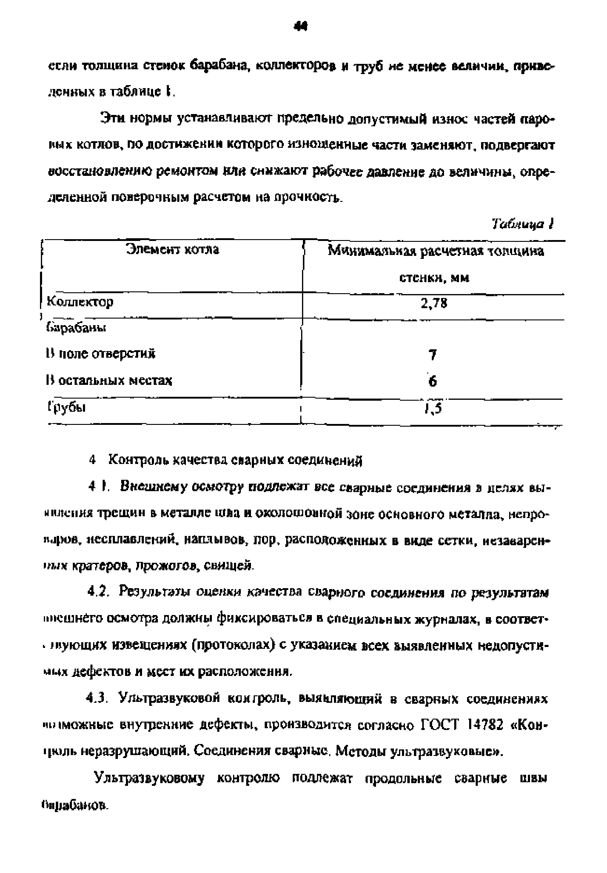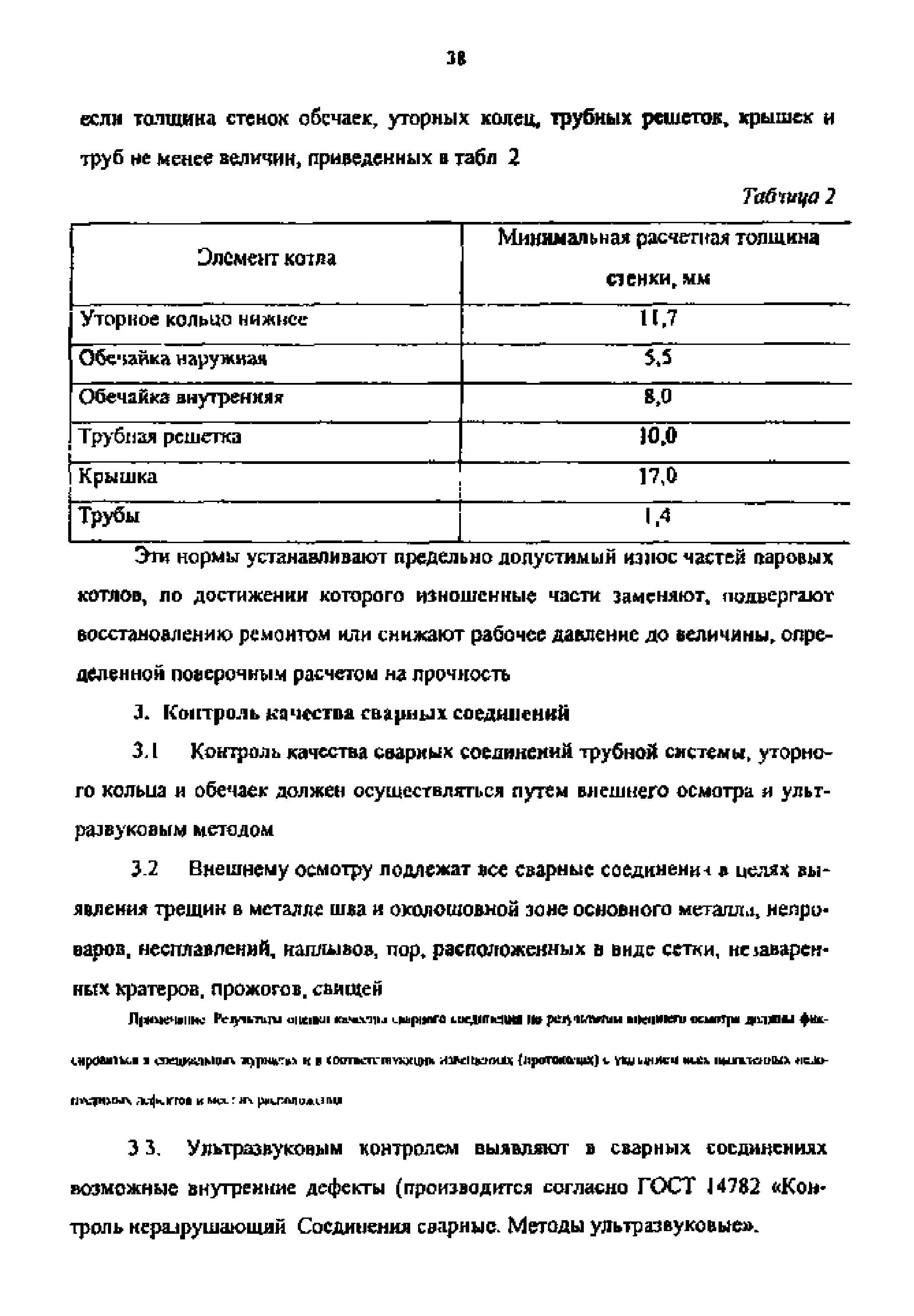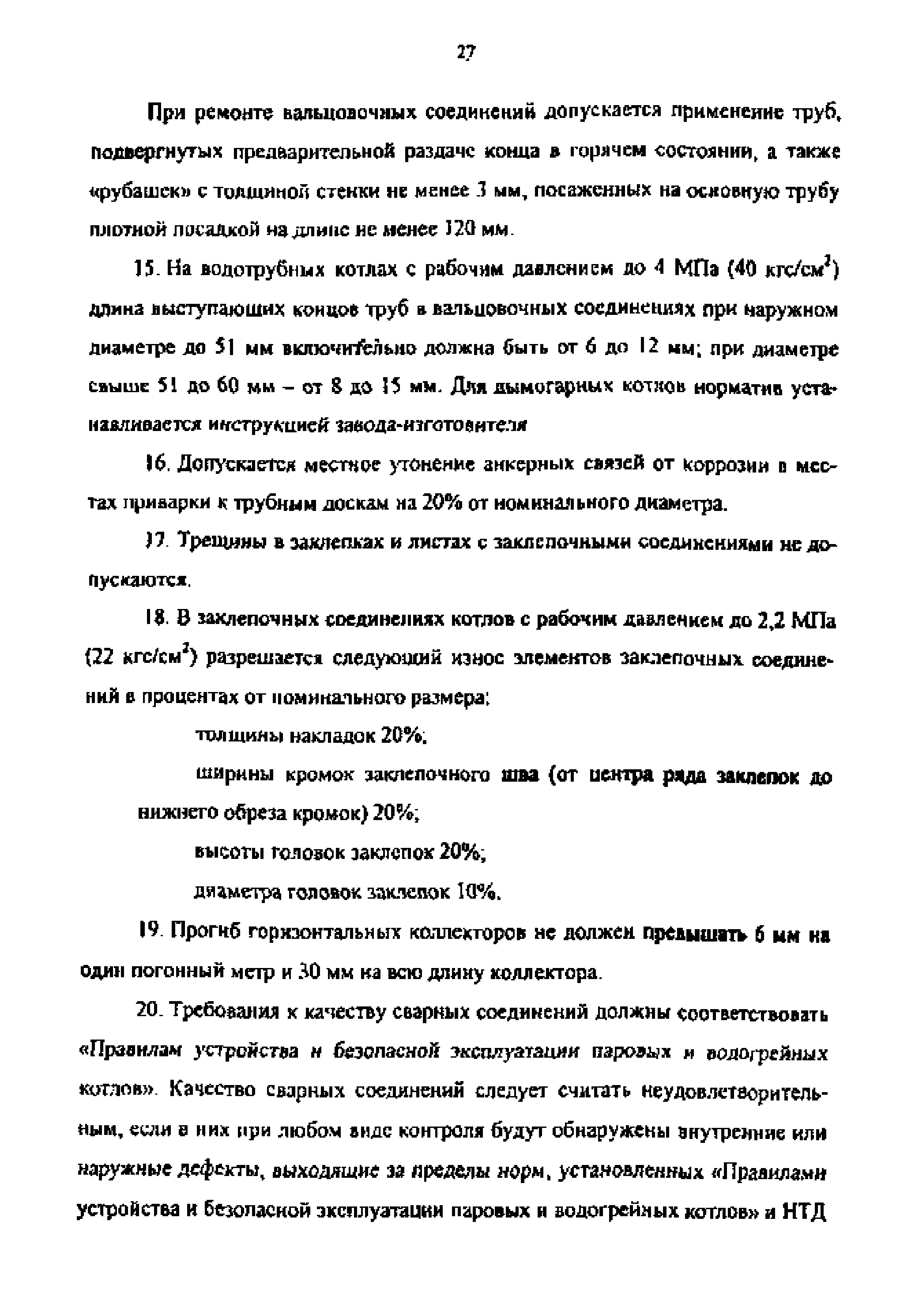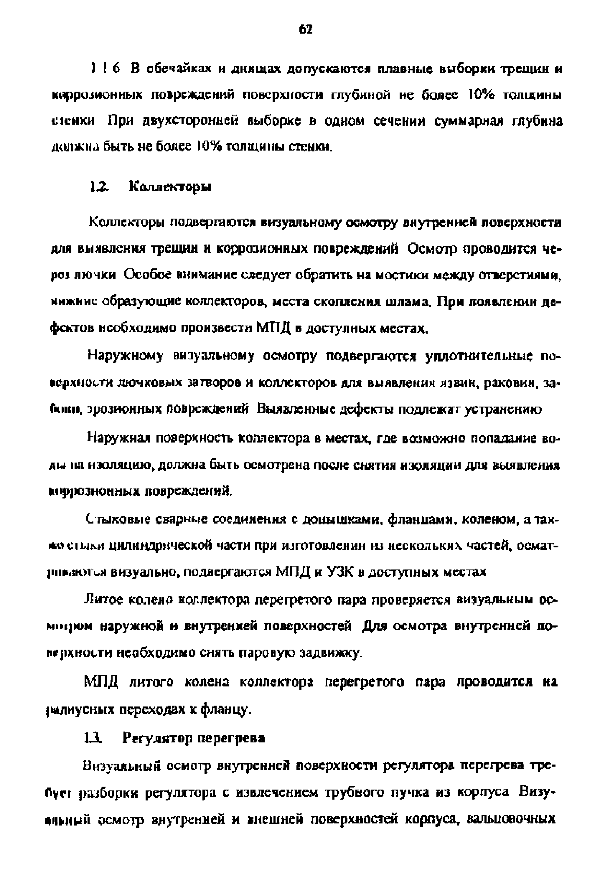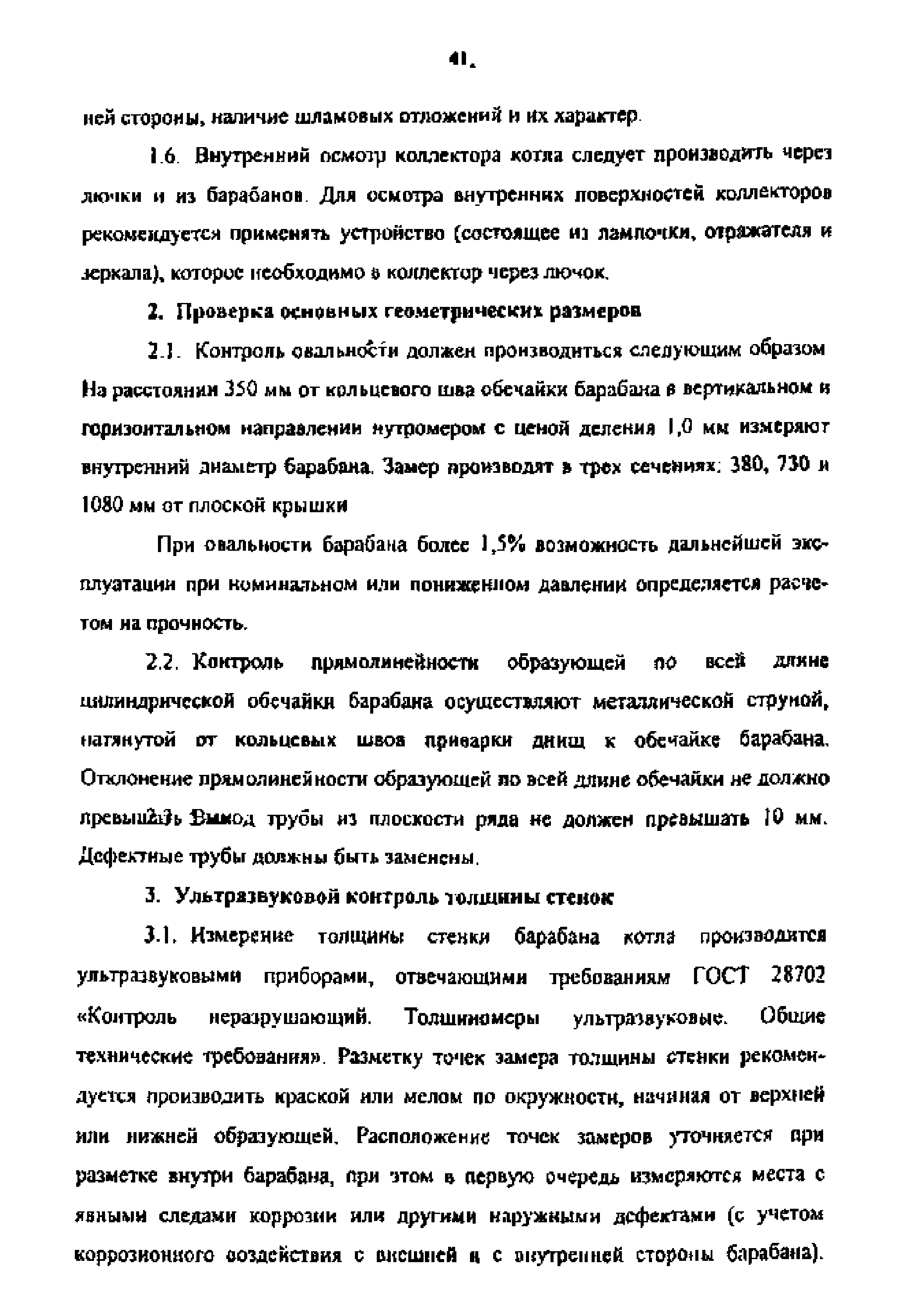 | Область применения: | Документ устанавливает периодичность, методы и объем контроля технического состояния котлов и их элементов, нормы оценки технического состояния котлов и их элементов, нормы оценки технического состояния по различным диагностическим параметрам в период расчетного срока службы и за его пределами, а также после аварии, и распространяется на паровые котлы, котлы-утилизаторы, энерготехнологические агрегаты, котлы с высокотемпературными органическими теплоносителями (ВОТ) и экономайзеры с давлением выше 0,07 МПа и до 4,0 МПа и их металлоконструкции (каркасы и опорные элементы). |