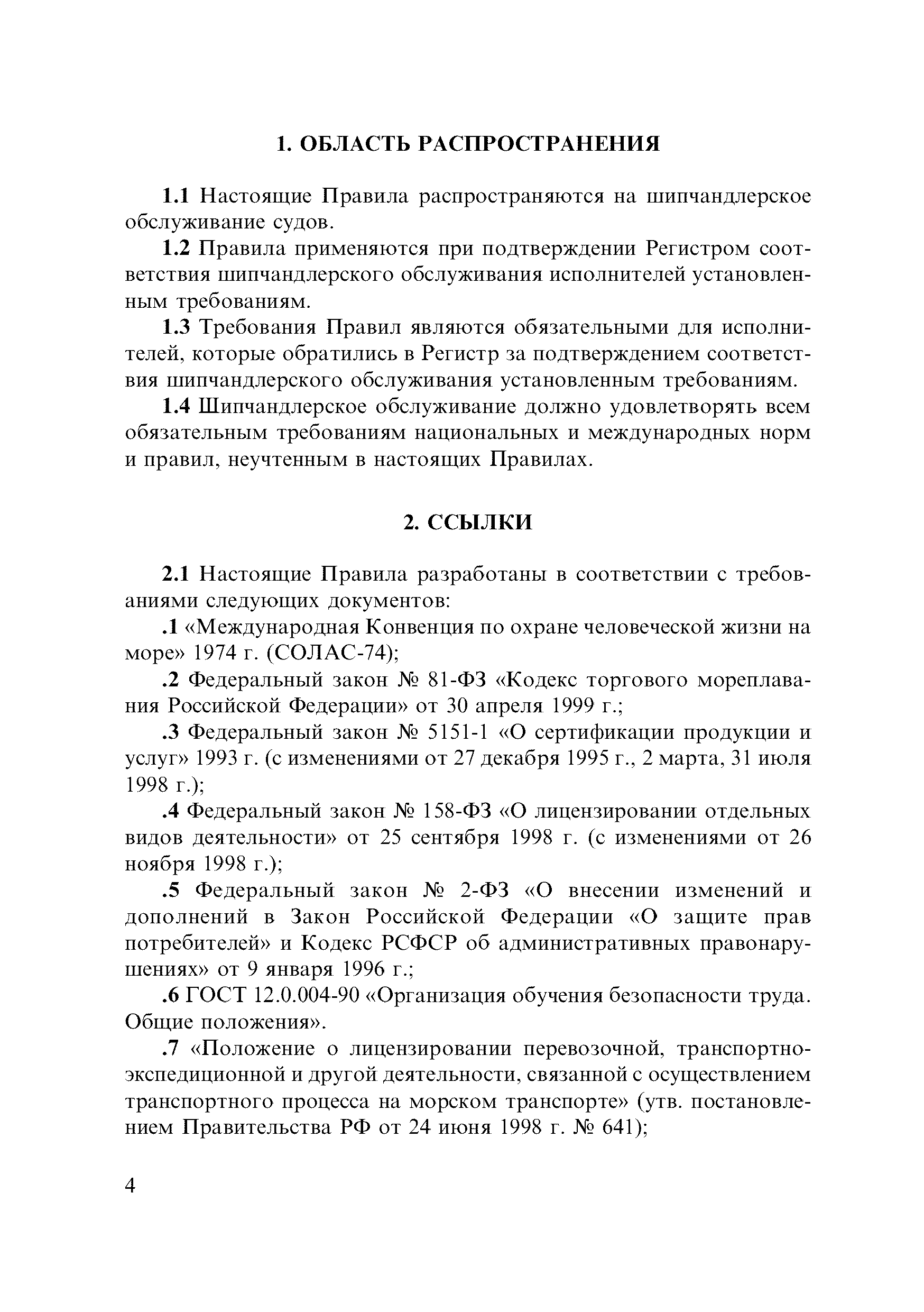 | Область применения: | Правила распространяются на шипчандлерское обслуживание судов. |