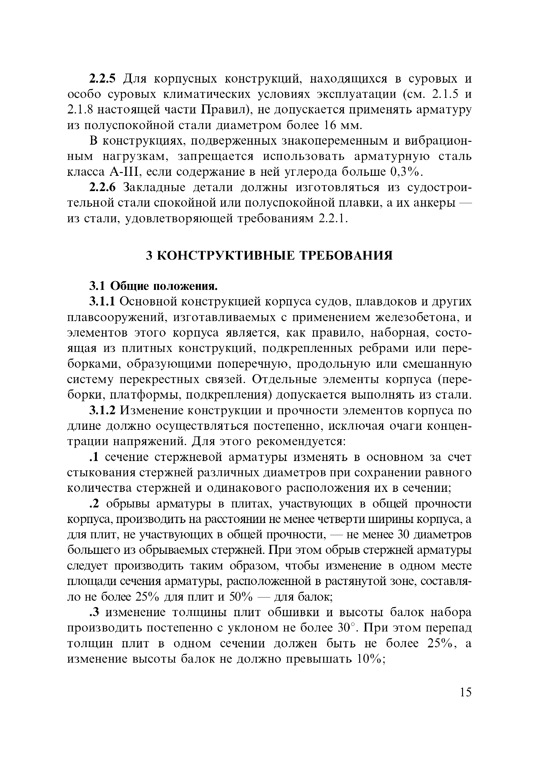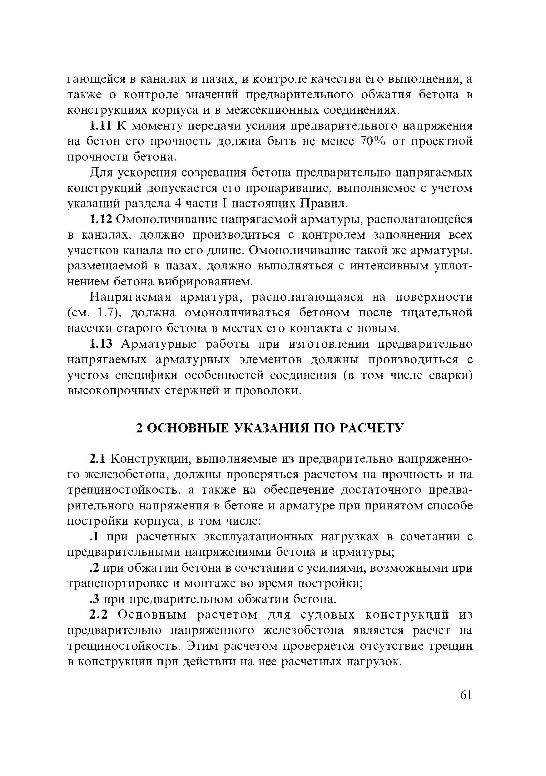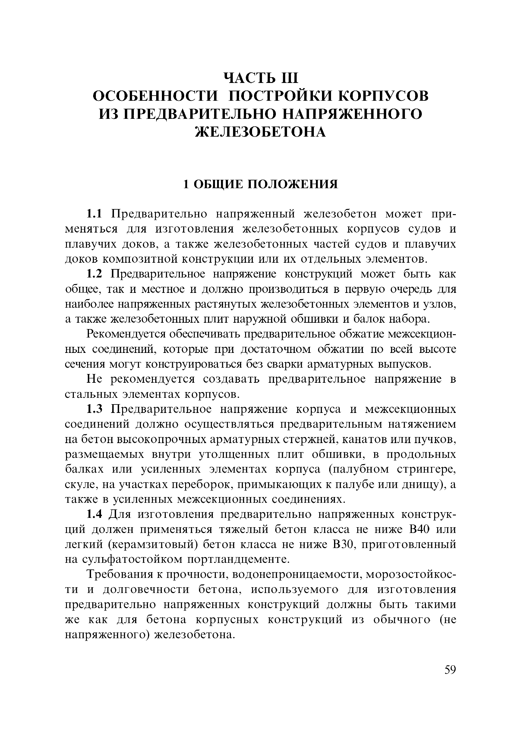 | Оглавление: | Часть I. Общие требования постройки 1 Общие положения 2 Материалы 3 Конструктивные требования 4 Технологические указания Часть II. Выполнение расчетов и нормы прочности 1 Общие положения 2 Проверка прочности Часть III. Особенности постройки корпусов из предварительно напряженного железобетона 1 Общие положения 2 Основные указания по расчету Приложения |