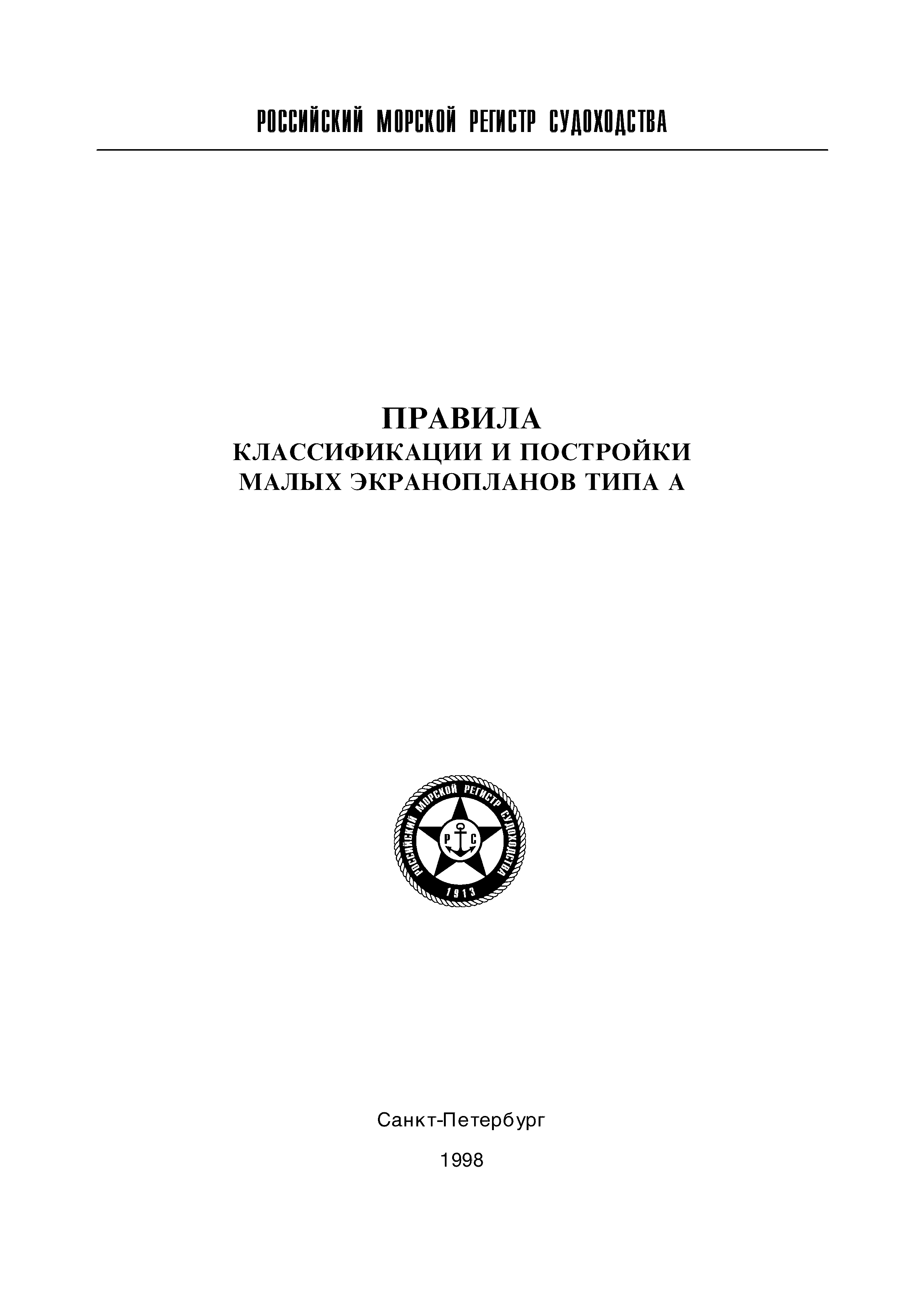 | Название рус.: | Правила классификации и постройки малых экранопланов типа А |