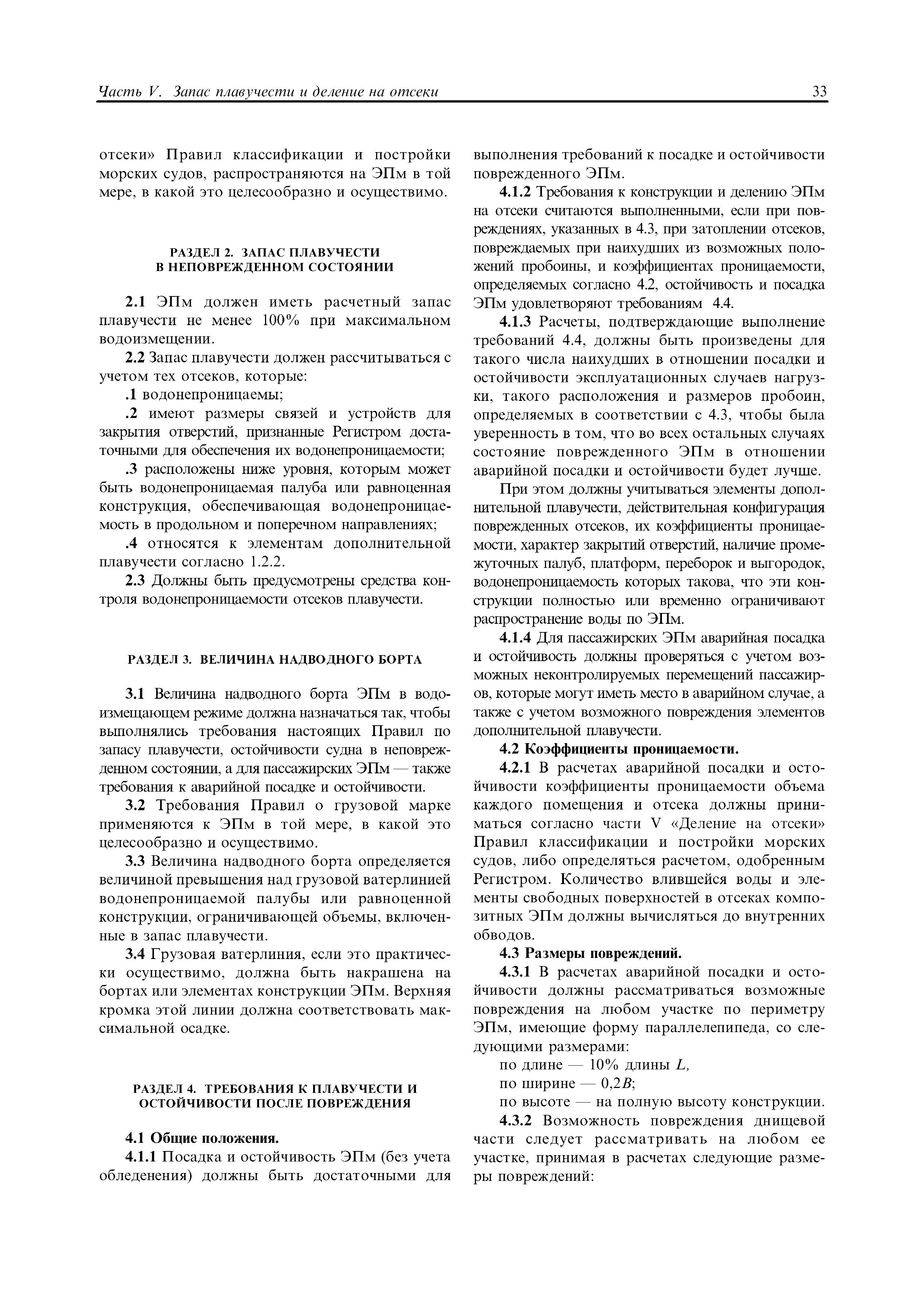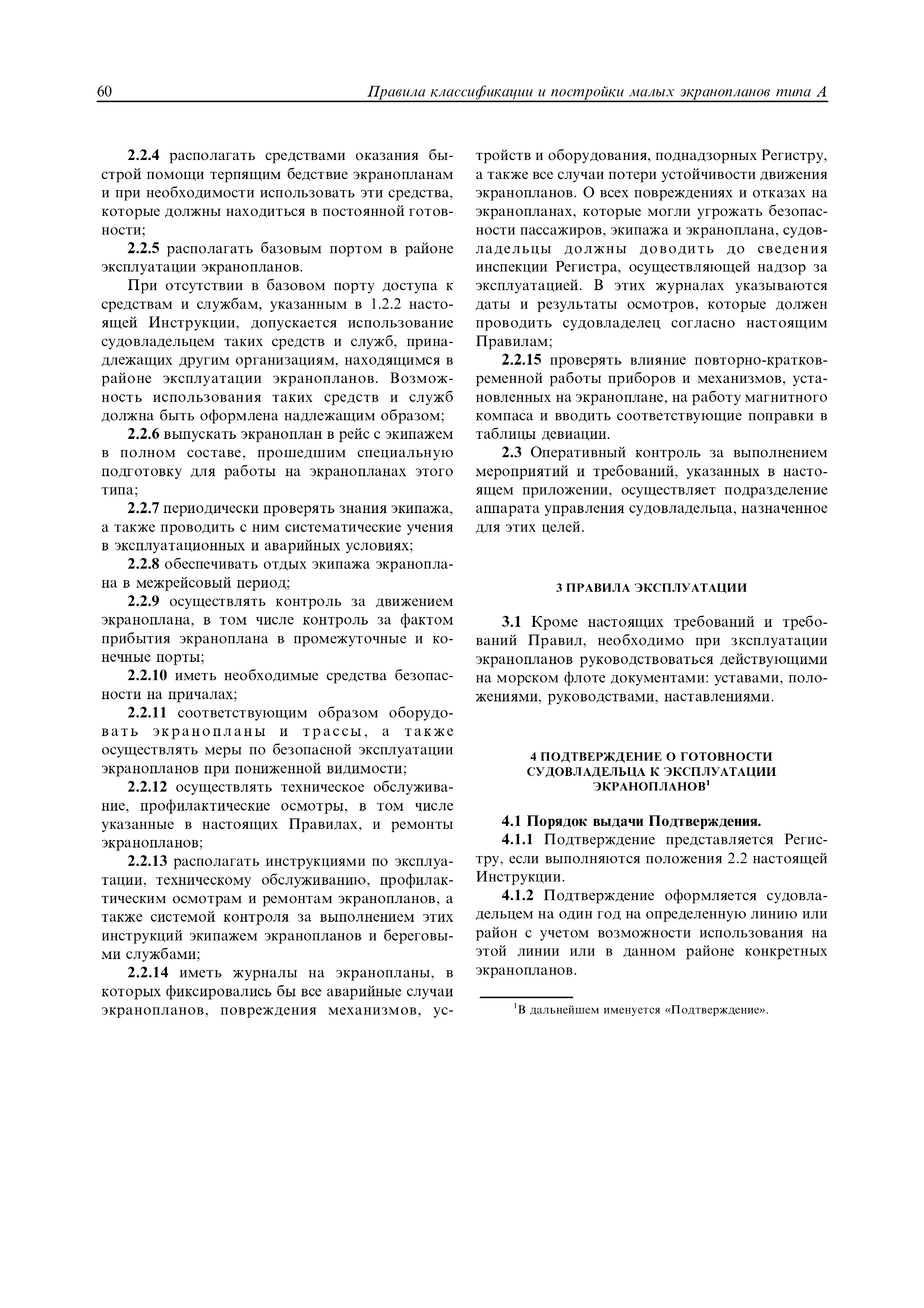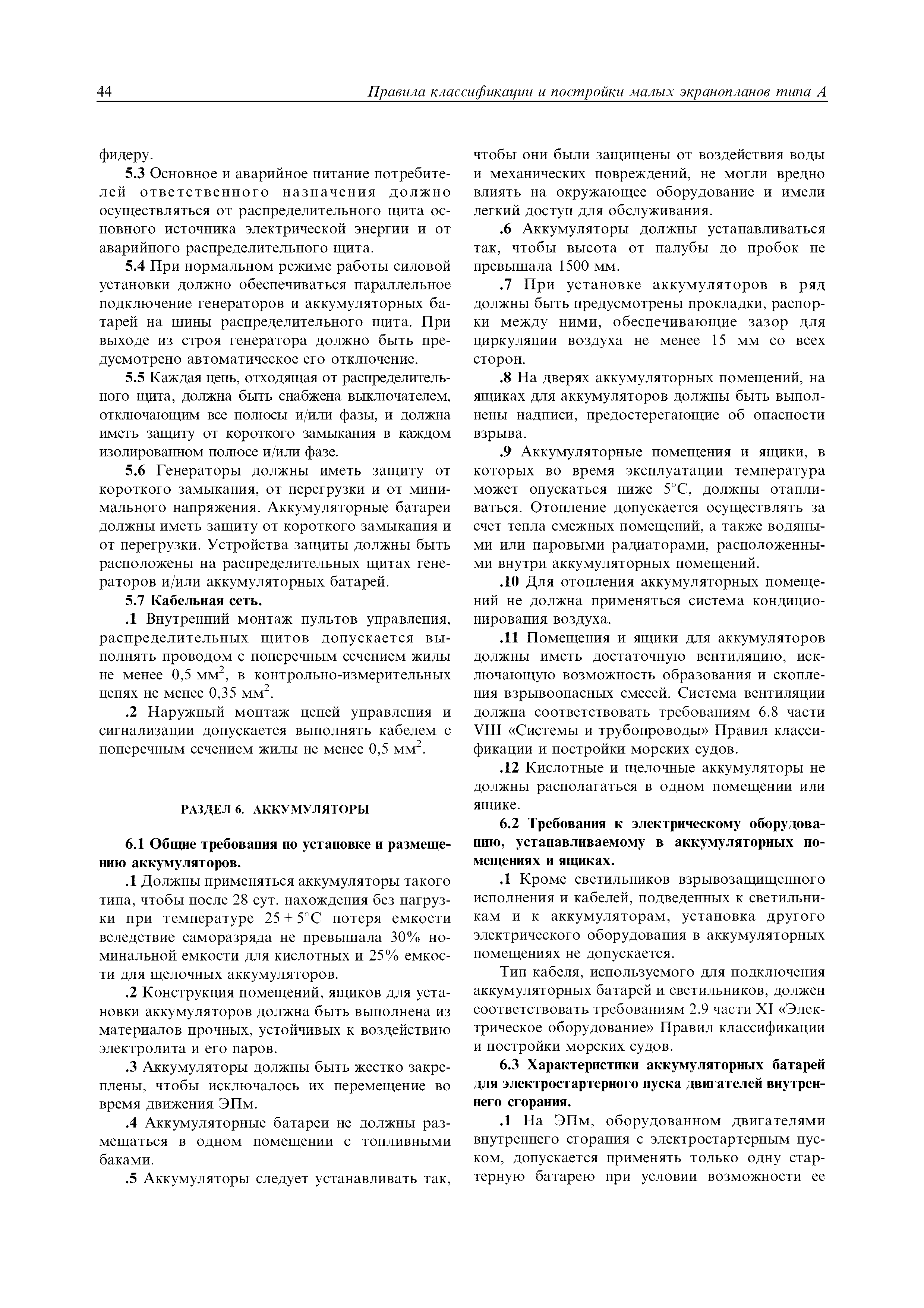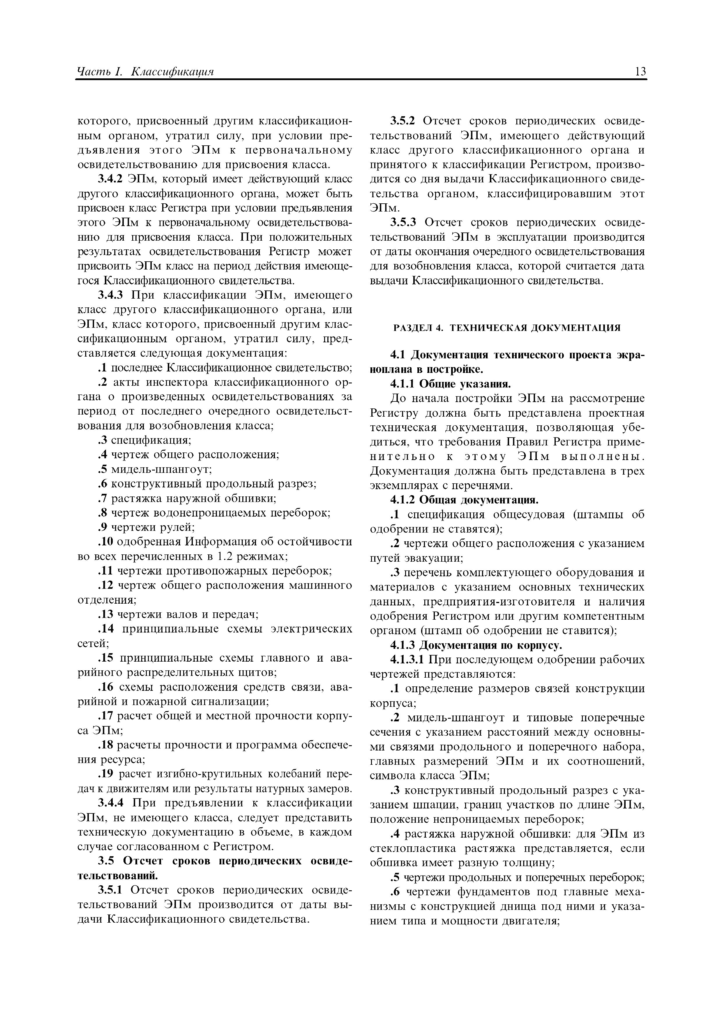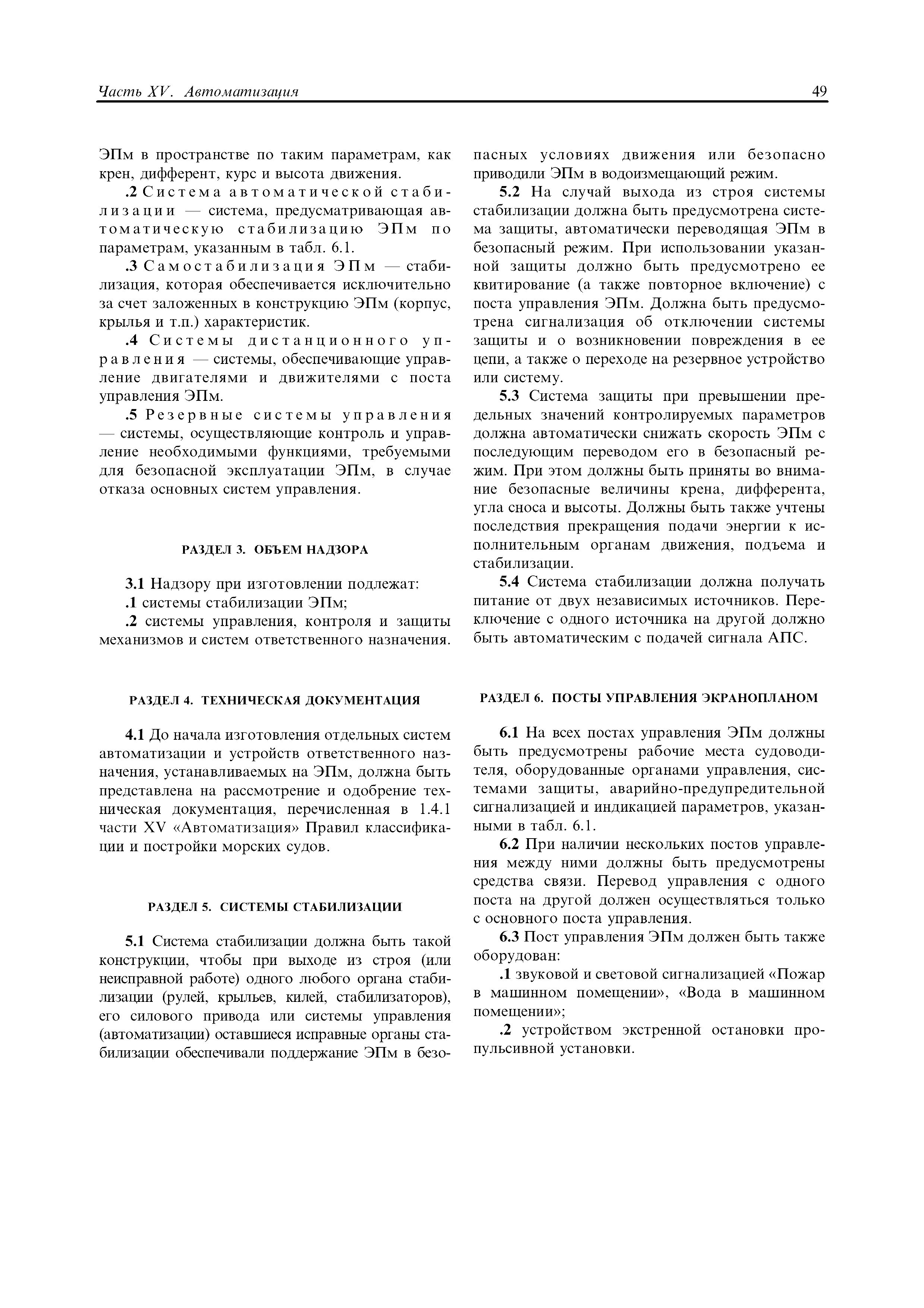 | Область применения: | Правила распространяются на Эпм типа А с мощностью двигателей более 55 кВт, которые перевозят не более 12 пассажиров при условии, что все пассажиры обеспечены местами только для сидения; во время рейса удаляются от берега не более чем на 20 миль и от места убежища не более чем на 100 миль; эксплуатируются только в светлое время суток; имеют максимальную эксплуатационную массу не более 10 т. |