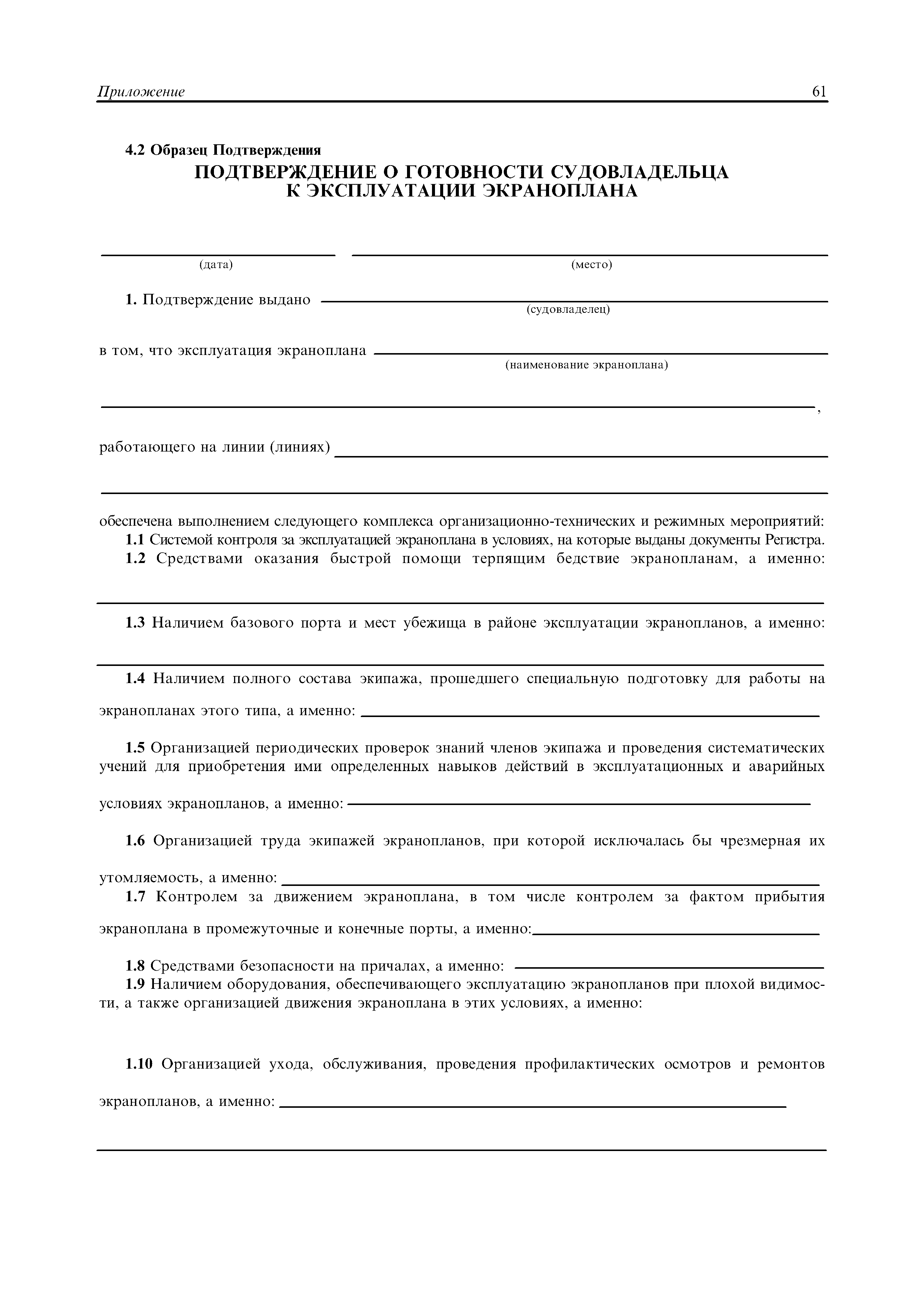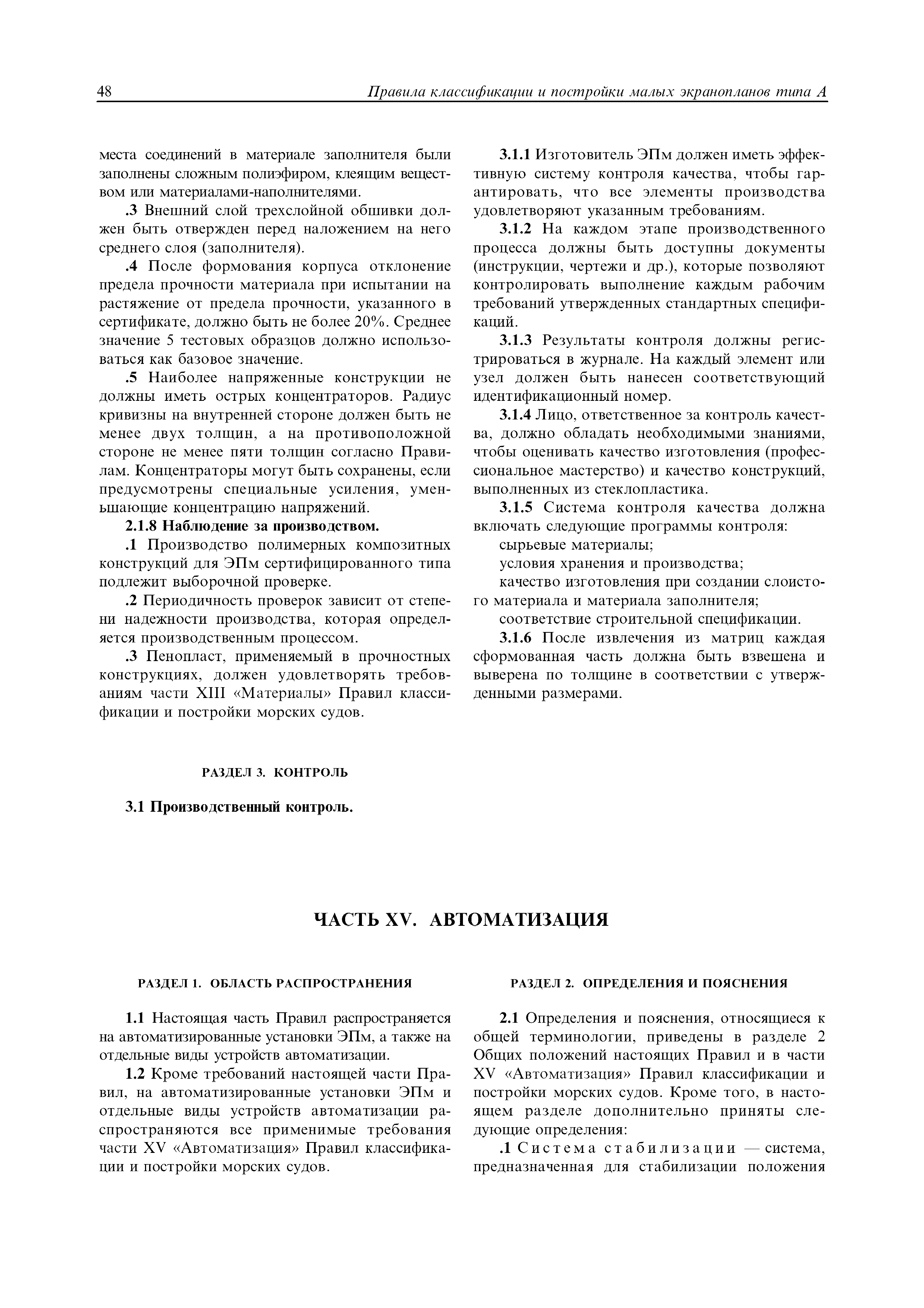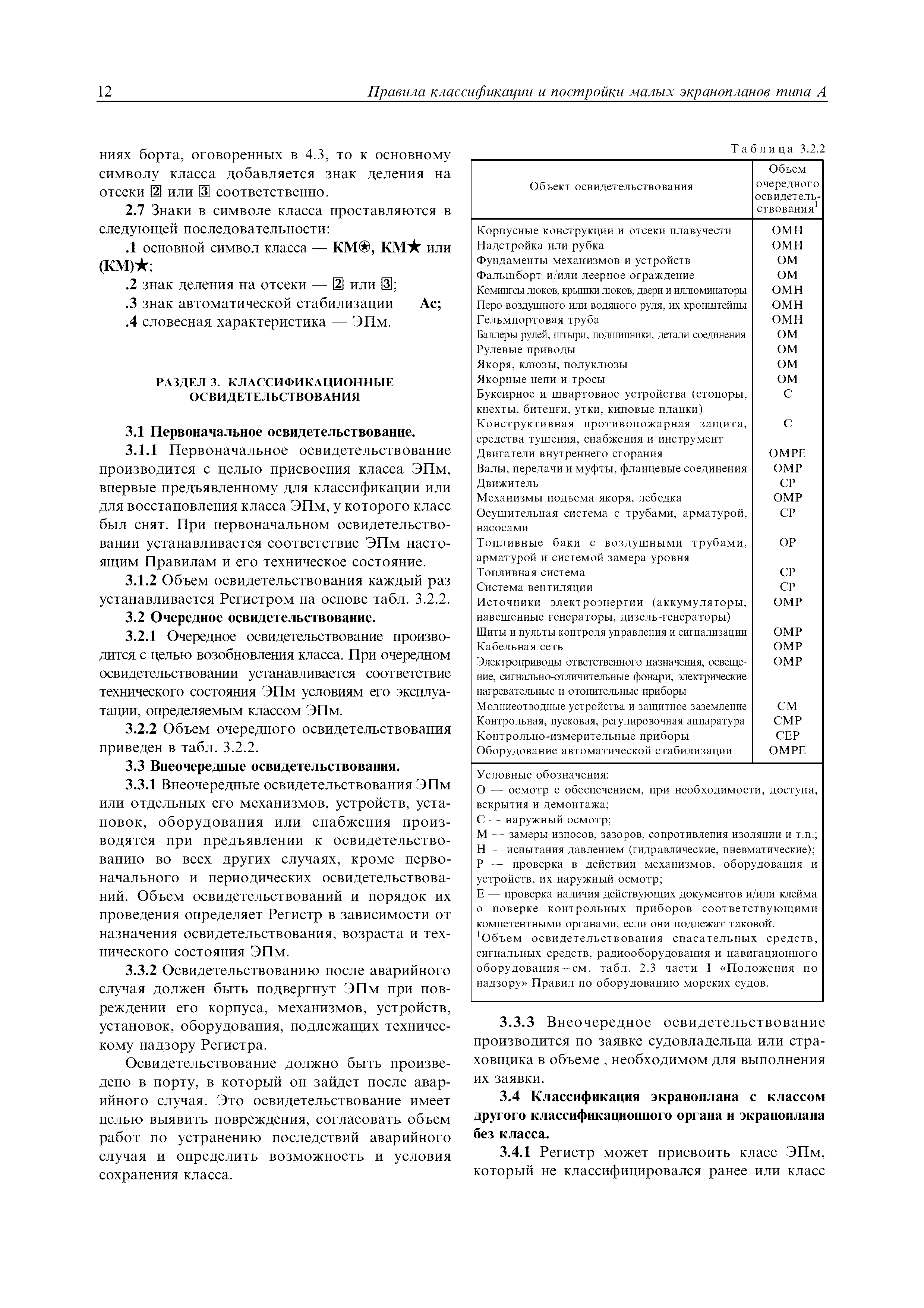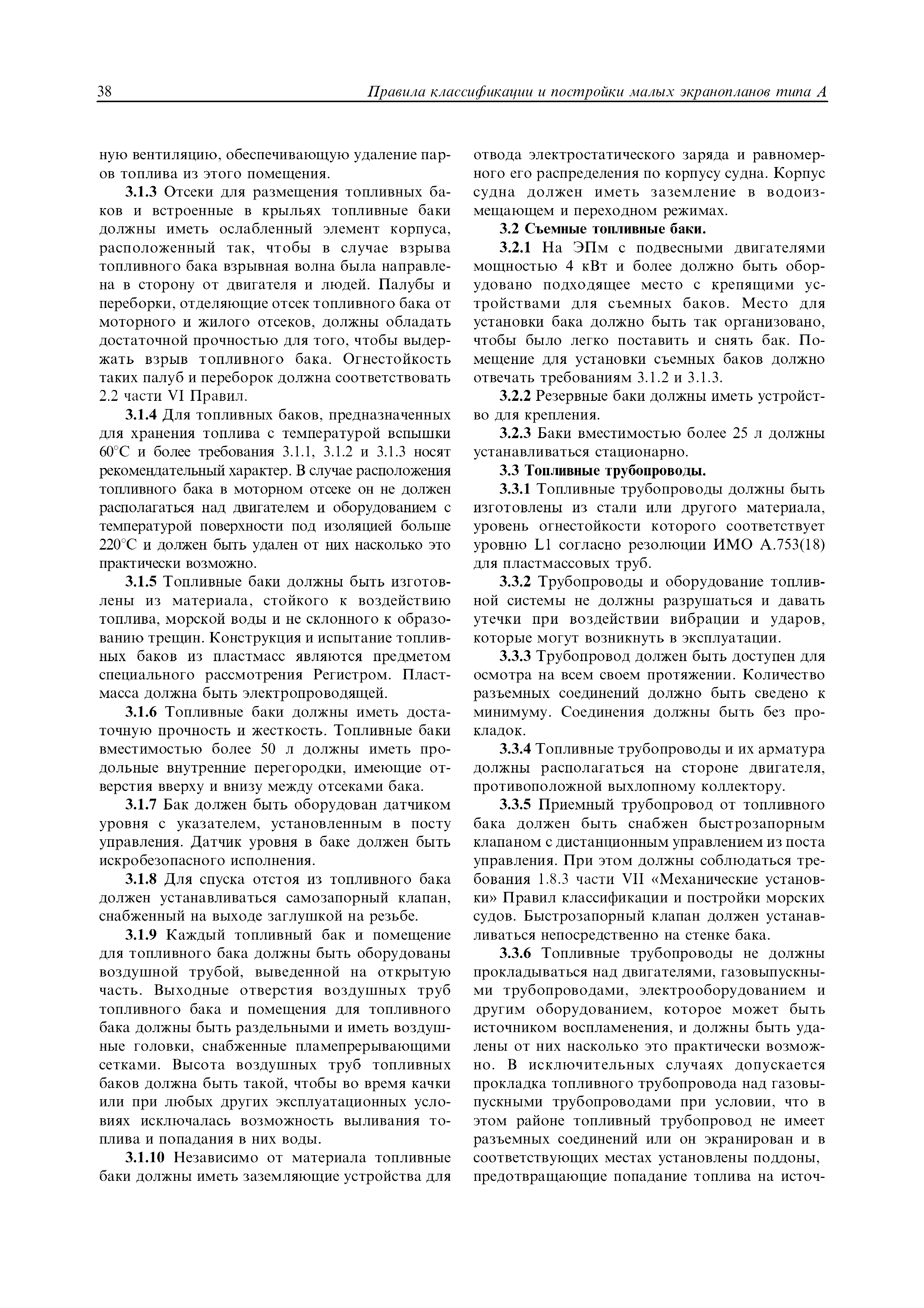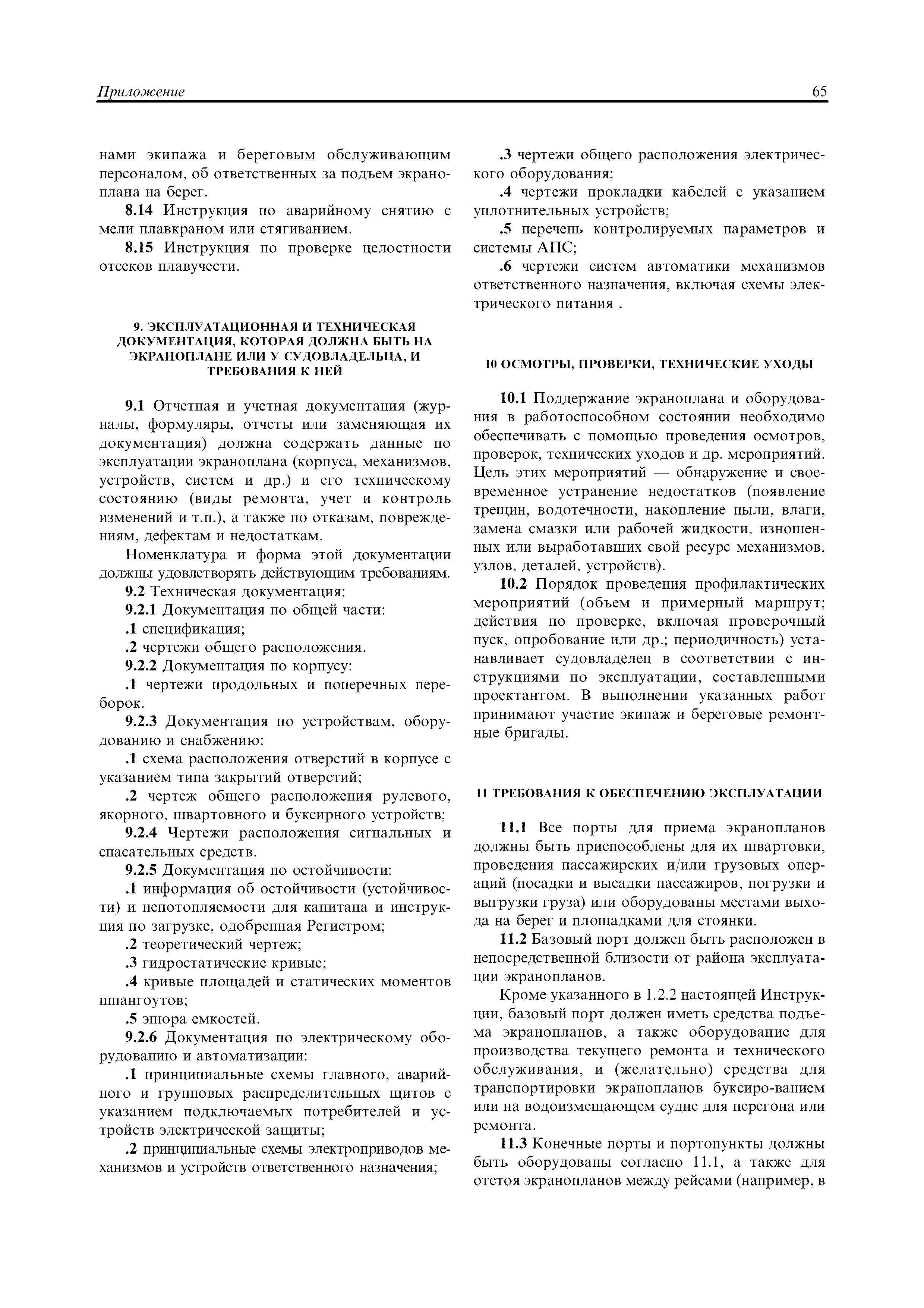 | Область применения: | Правила распространяются на Эпм типа А с мощностью двигателей более 55 кВт, которые перевозят не более 12 пассажиров при условии, что все пассажиры обеспечены местами только для сидения; во время рейса удаляются от берега не более чем на 20 миль и от места убежища не более чем на 100 миль; эксплуатируются только в светлое время суток; имеют максимальную эксплуатационную массу не более 10 т. |