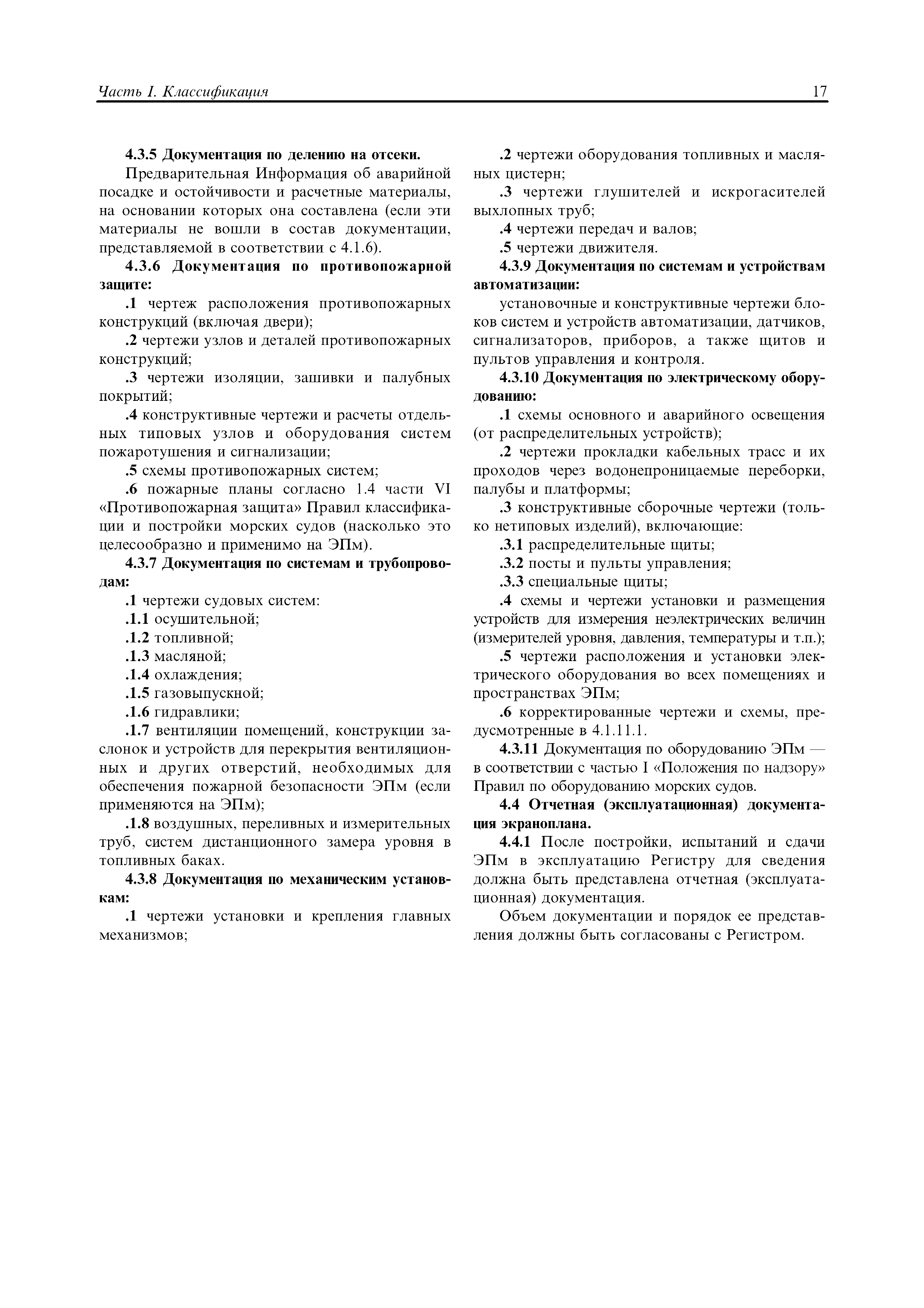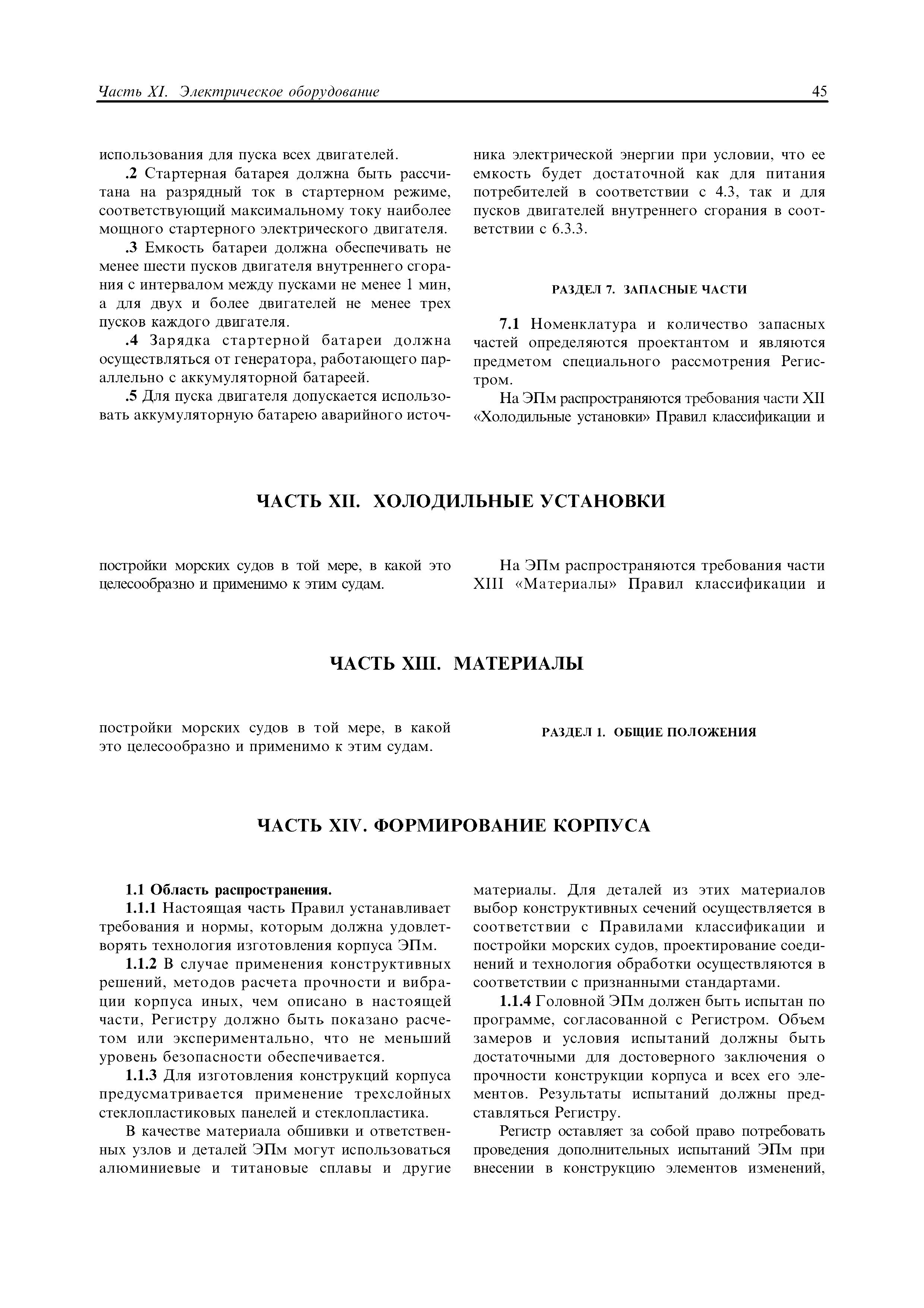 | Оглавление: | Введение Общие положения Часть I. Классификация Часть II. Корпус Часть III. Устройства, оборудование и снабжение Часть IV. Остойчивость (устойчивость) Часть V. Запас плавучести и деление на отсеки Часть VI. Противопожарная защита Часть VII. Механические установки Часть VIII. Системы и трубопроводы Часть IX. Механизмы Часть X. Теплообменные аппараты и сосуды под давлением Часть XI. Электрическое оборудование Часть XII. Холодильные установки Часть XIII. Материалы Часть XIV. Формирование корпуса Часть XV. Автоматизация Часть XVI. Спасательные средства, сигнальные средства, радиооборудование и навигационное оборудование Приложение |