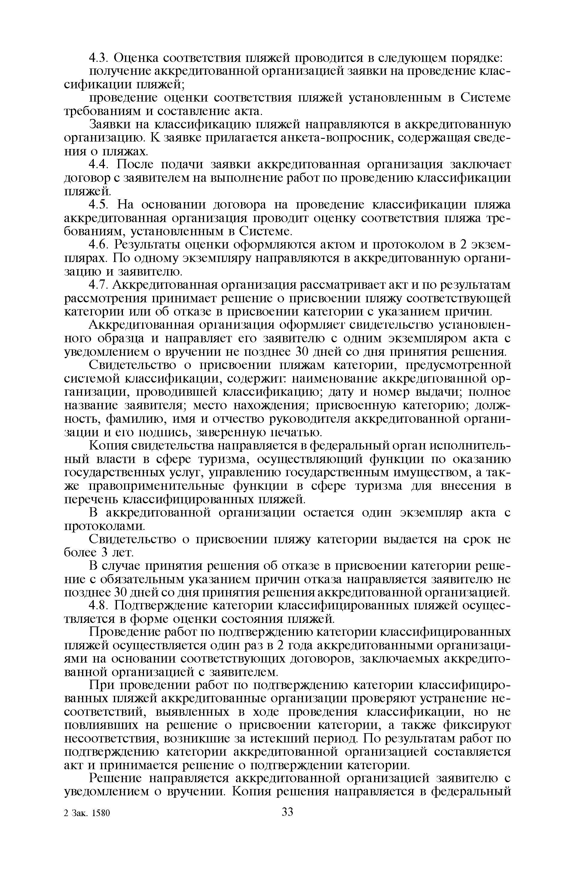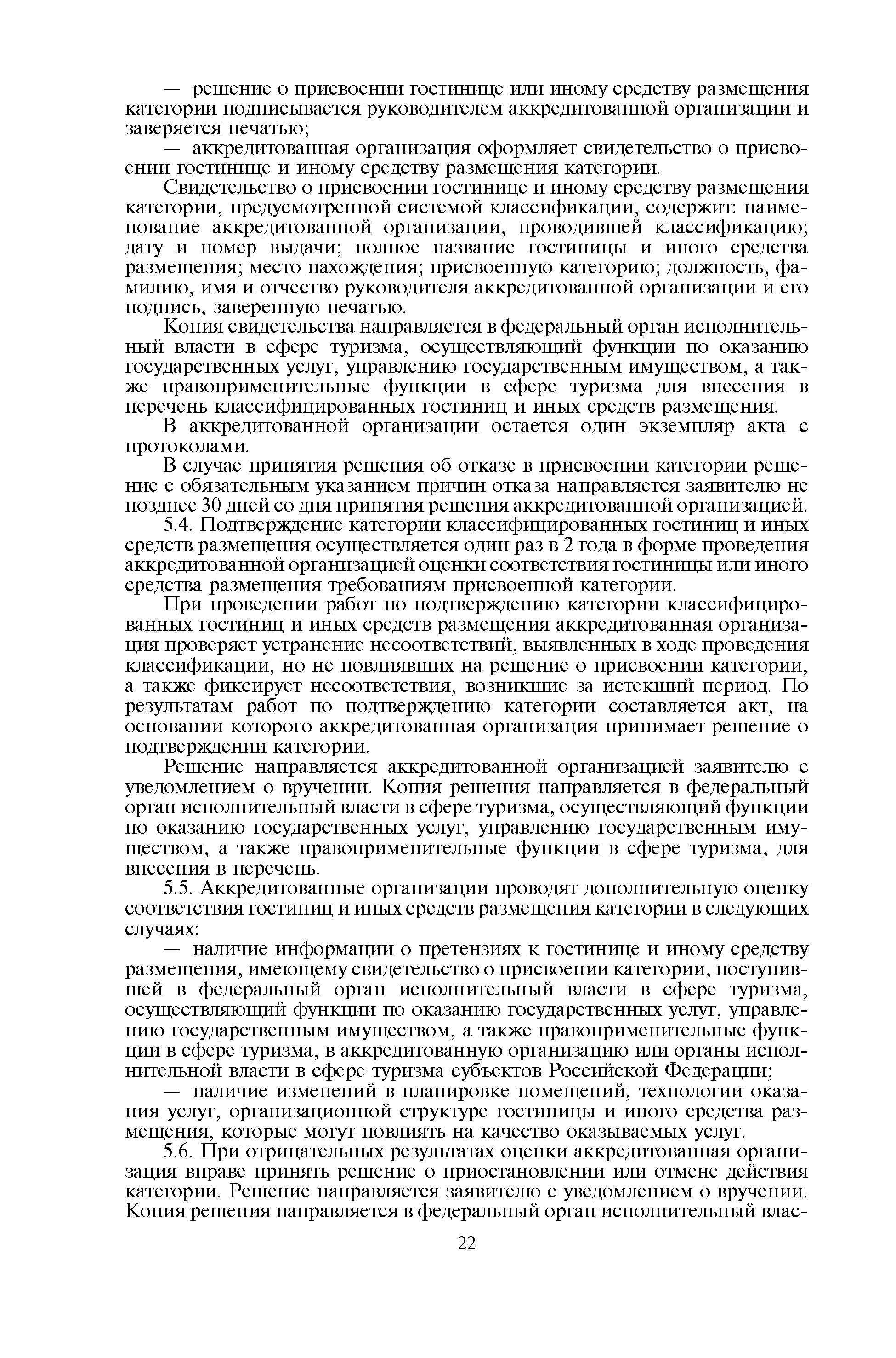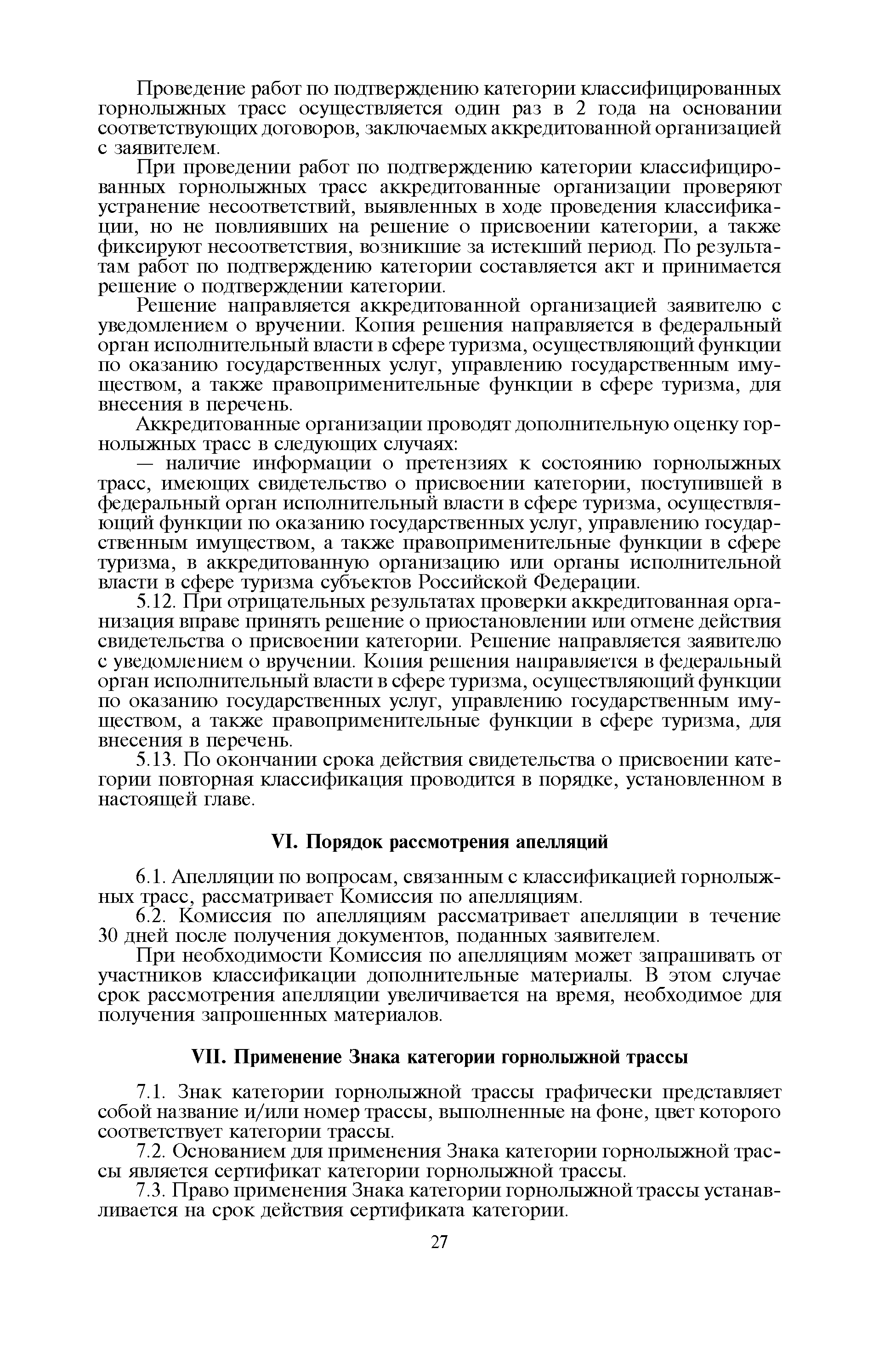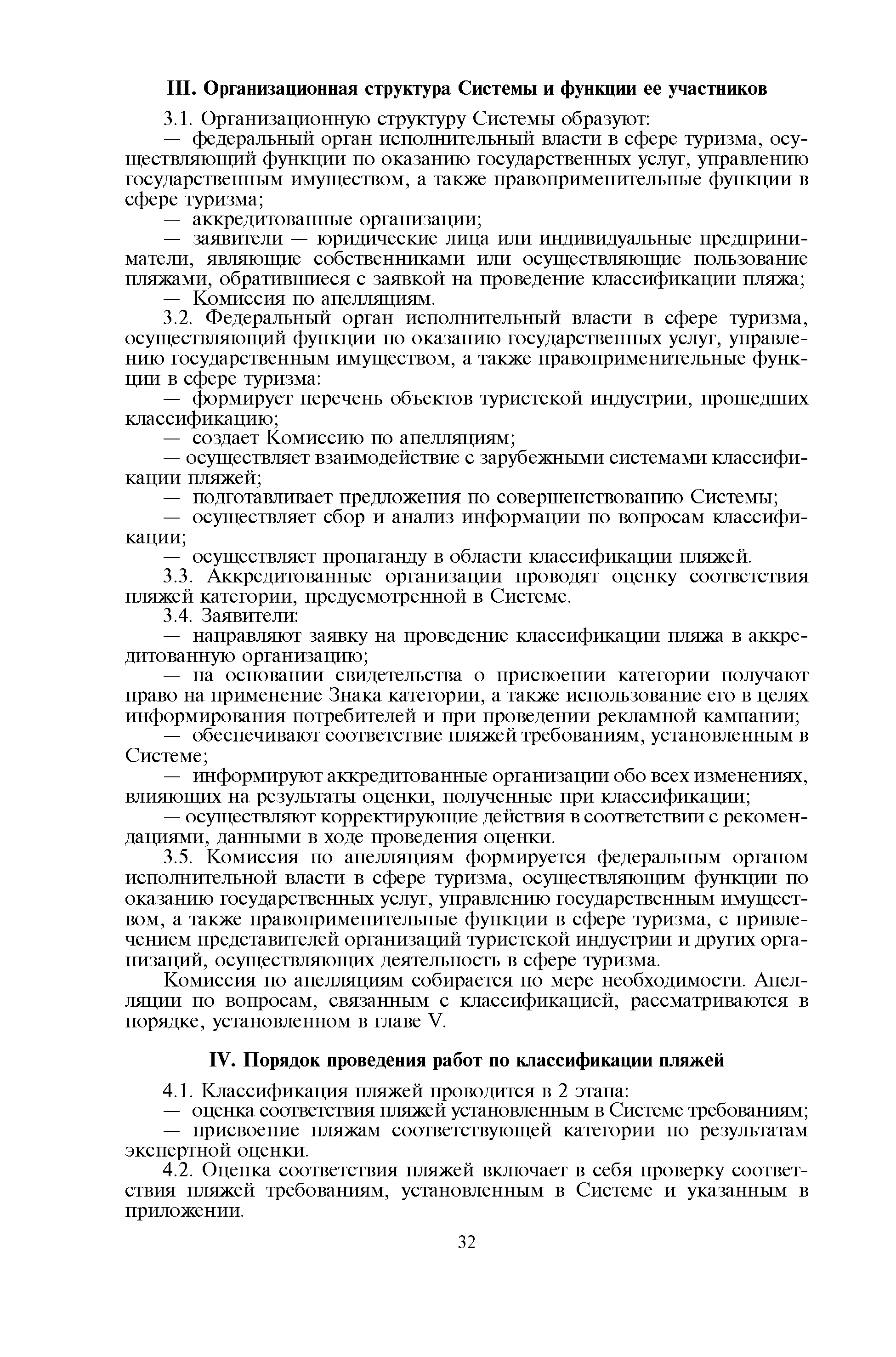 Порядок классификации объектов туристской индустрии, включающих гостиницы и иные средства размещения, горнолыжные трассы и пляжи| Статус: | не действует | | Название рус.: | Порядок классификации объектов туристской индустрии, включающих гостиницы и иные средства размещения, горнолыжные трассы и пляжи | | Дата добавления в базу: | 01.09.2013 | | Дата актуализации: | 01.01.2021 | | Дата введения: | 18.06.2010 | | Дата окончания срока действия: | 14.04.2011 | | Область применения: | Порядок определяет условия и порядок проведения аккредитованными организациями классификации объектов туристской индустрии, включающих гостиницы и иные средства размещения, горнолыжные трассы, пляжи | | Оглавление: | I. Общие положения II. Рассмотрение заявления объекта туристской индустрии и представленных документов и принятие решения о проведении классификации III. Экспертная оценка соответствия объекта туристской индустрии требованиям категории, установленным в соответствующей системе классификации IV. Принятие решения о присвоении объекту туристской индустрии категории, предусмотренной соответствующей системой классификации V. Заключительные положения Приложение 1. Система классификации гостиниц и иных средств размещения Приложение 2. Система классификации горнолыжных трасс Приложение 3. Система классификации пляжей | | Утверждён: | 07.05.2010 Министерство спорта, туризма и молодежной политики РФ (461)