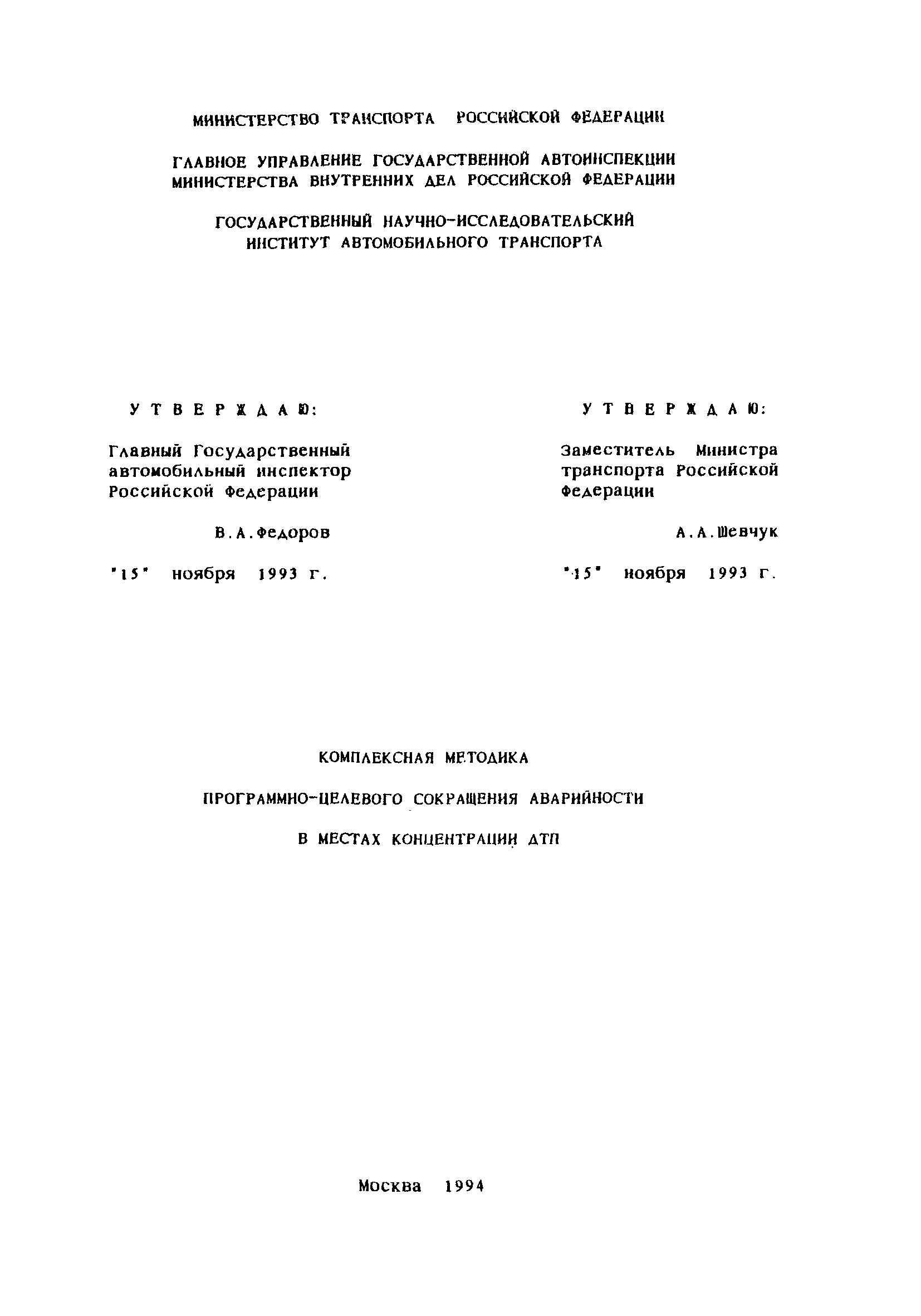 | Разработан: | НИИАТ Министерство транспорта РФ ГУ ГАИ МВД РФ ГУВД г. Москвы