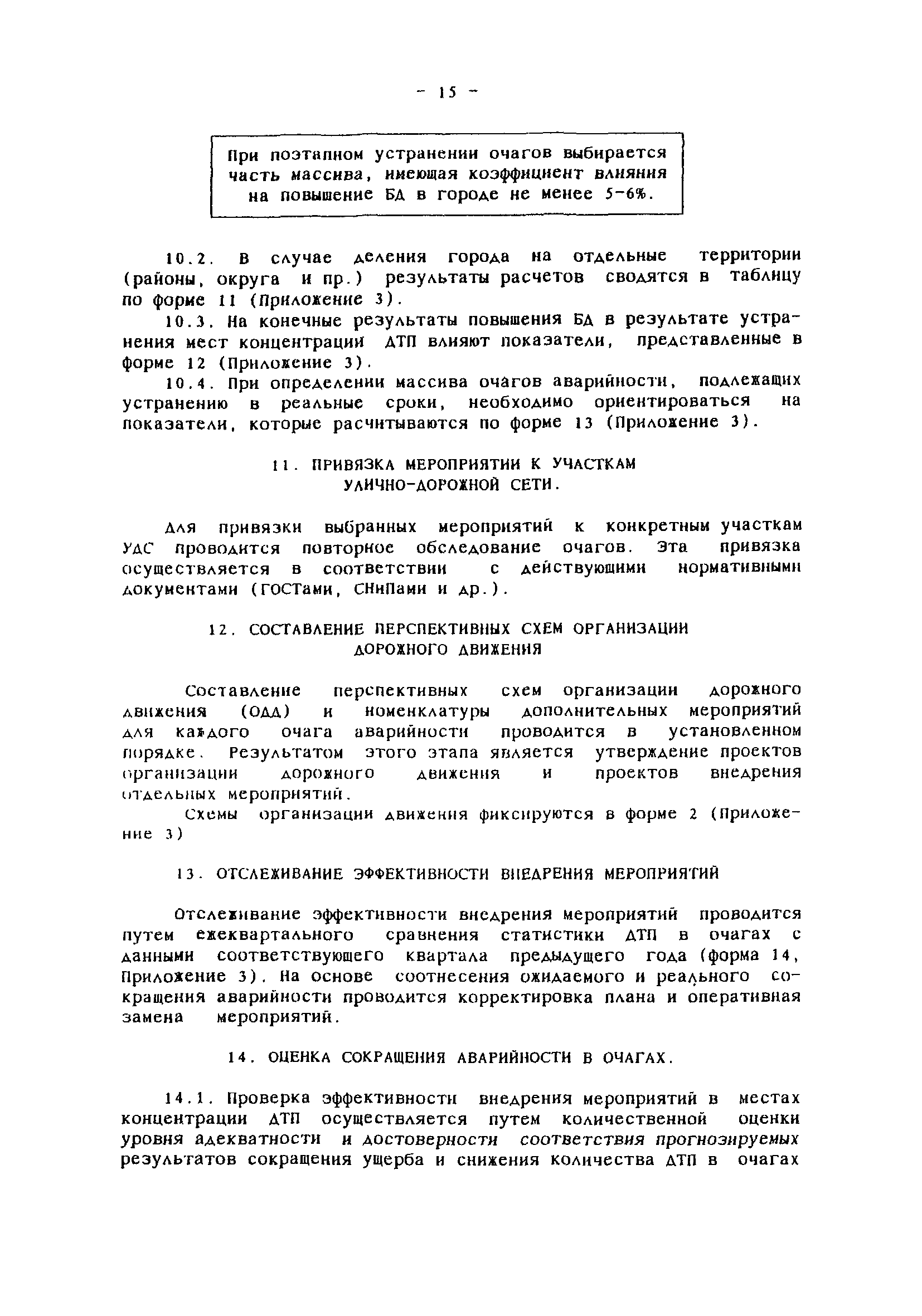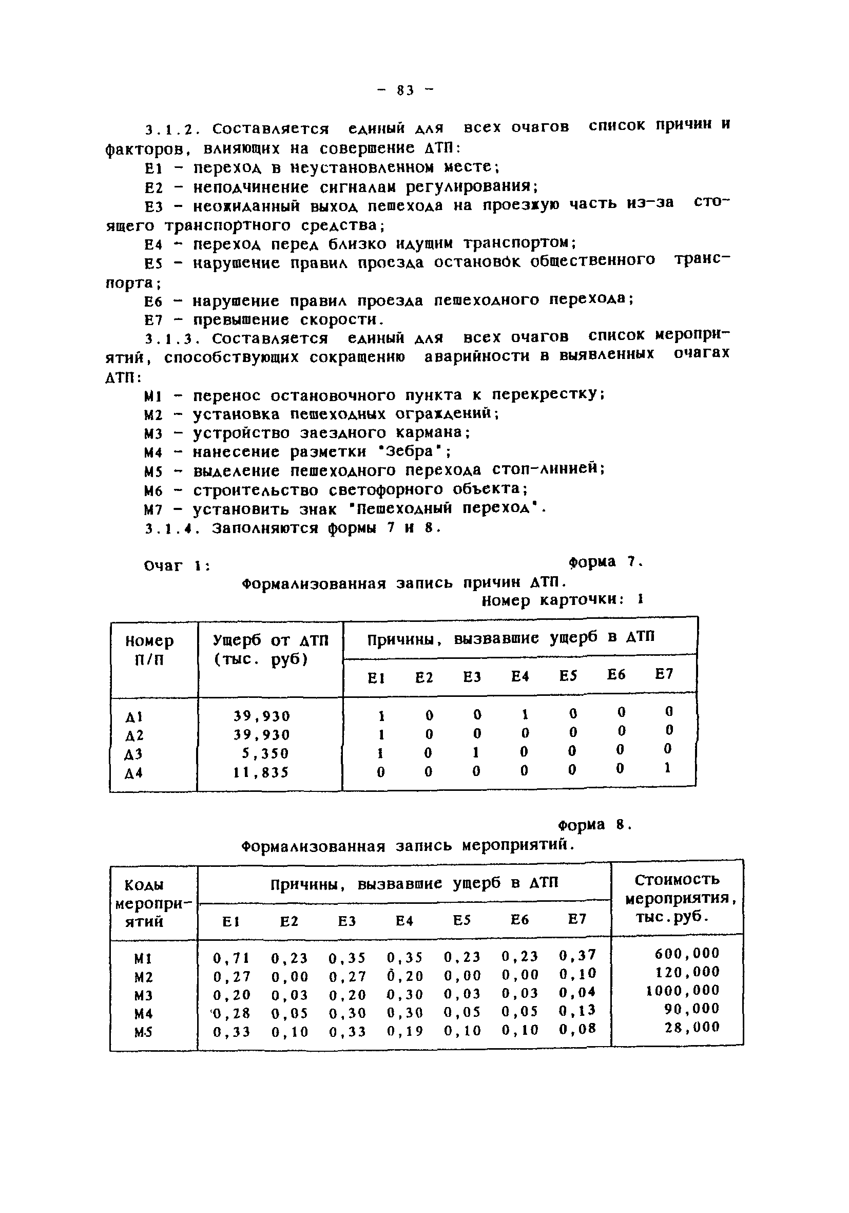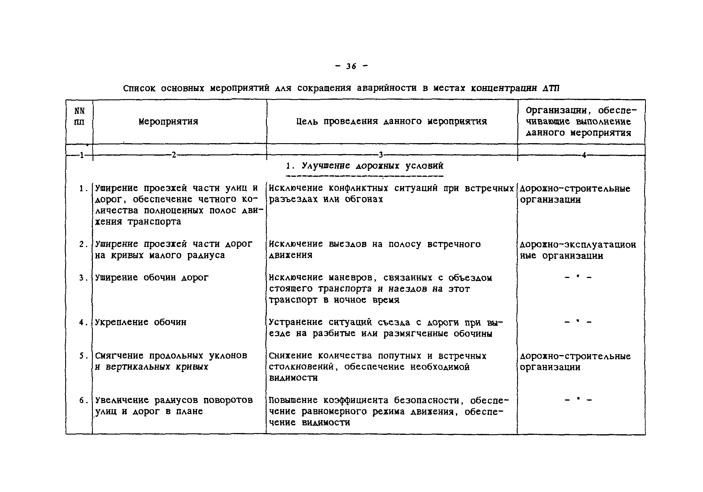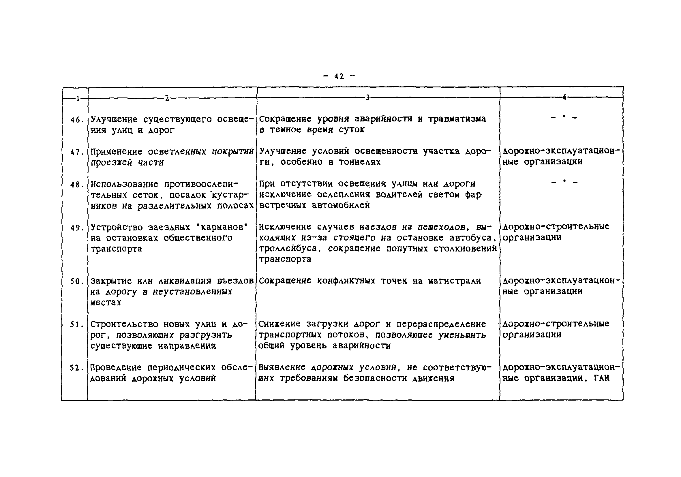 | Область применения: | Комплексная методика программно-целевого сокращения аварийности в местах концентрации ДТП представляет взаимосвязанный набор методов, направленных на повышение безопасности дорожного движения в городах и населенных пунктах за счет сокращения аварийности на опасных участках улично-дорожной сети. Методика позволяет оценить ожидаемые результаты сокращения аварийности и определить эффективные комплексы мероприятий. На основе применения ЭВМ разрабатывается план внедрения мероприятий на массиве очагов аварийности, в который входят последовательность устранения очагов, последовательность внедрения мероприятий и ожидаемое сокращение ДТП. Основой информационного обеспечения является действующая система учета и анализа ДТП. Методика предназначена для использования городскими службами, ответственными за организацию и безопасность дорожного движения. В некоторых случаях может быть использована на внегородских дорогах. |