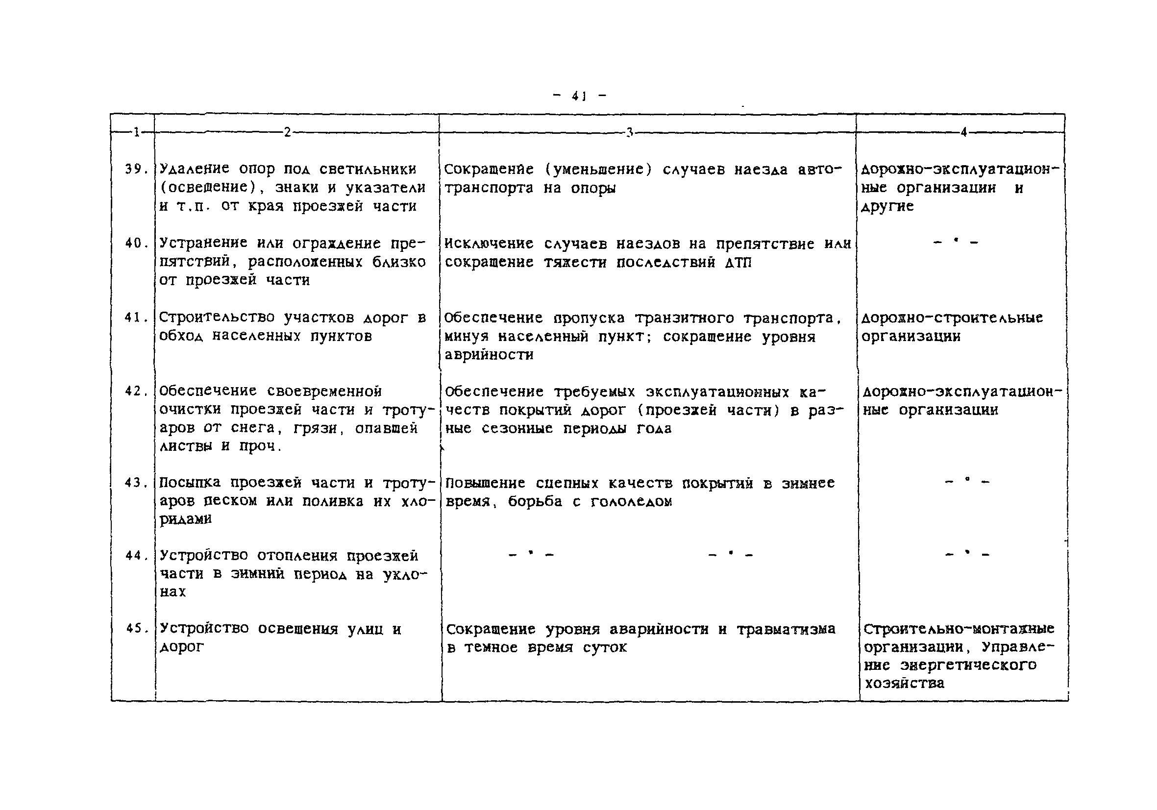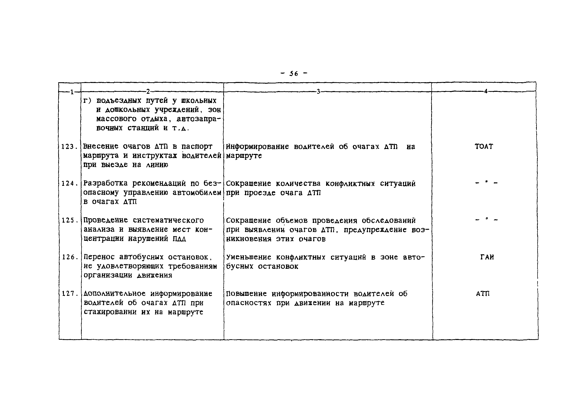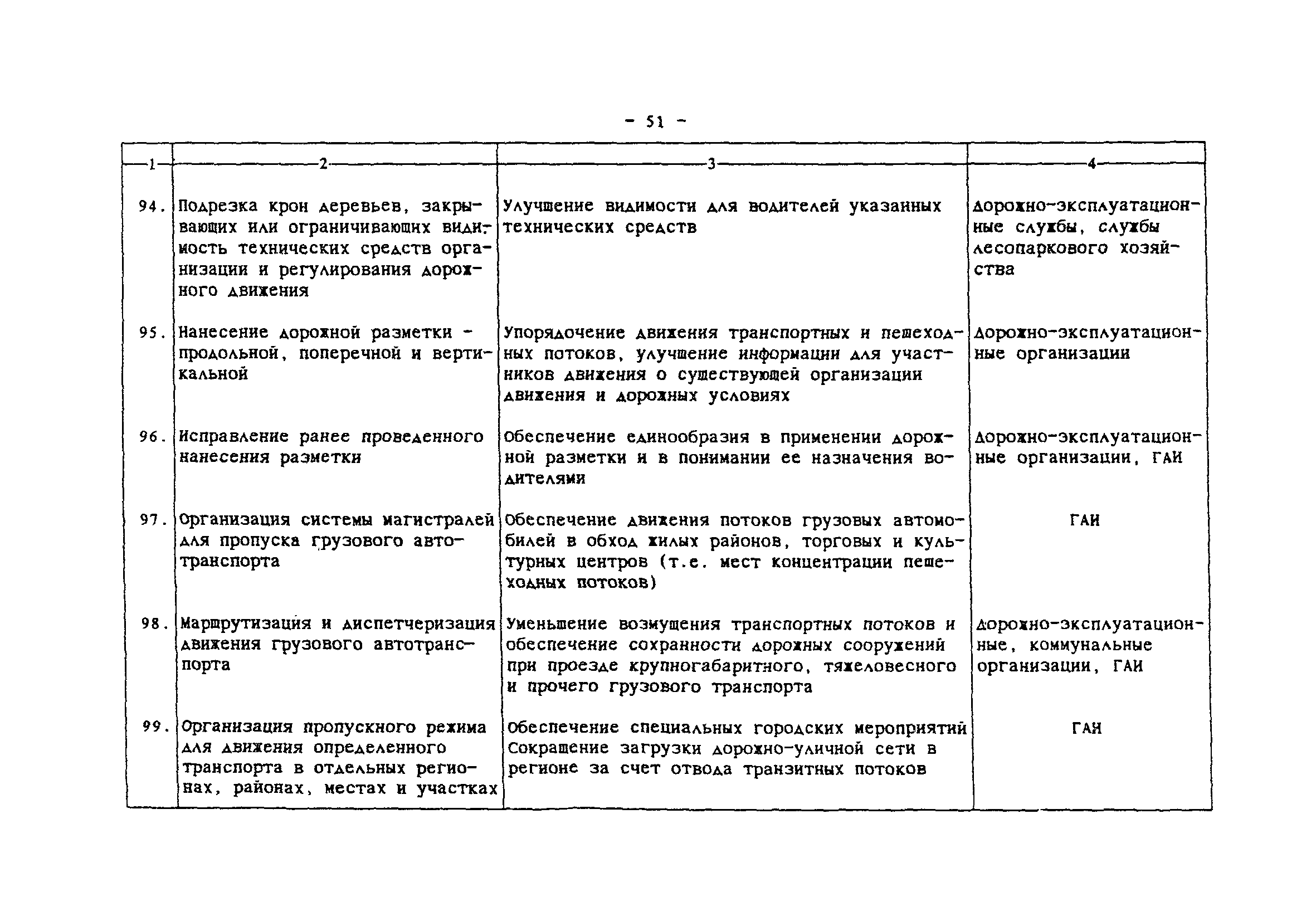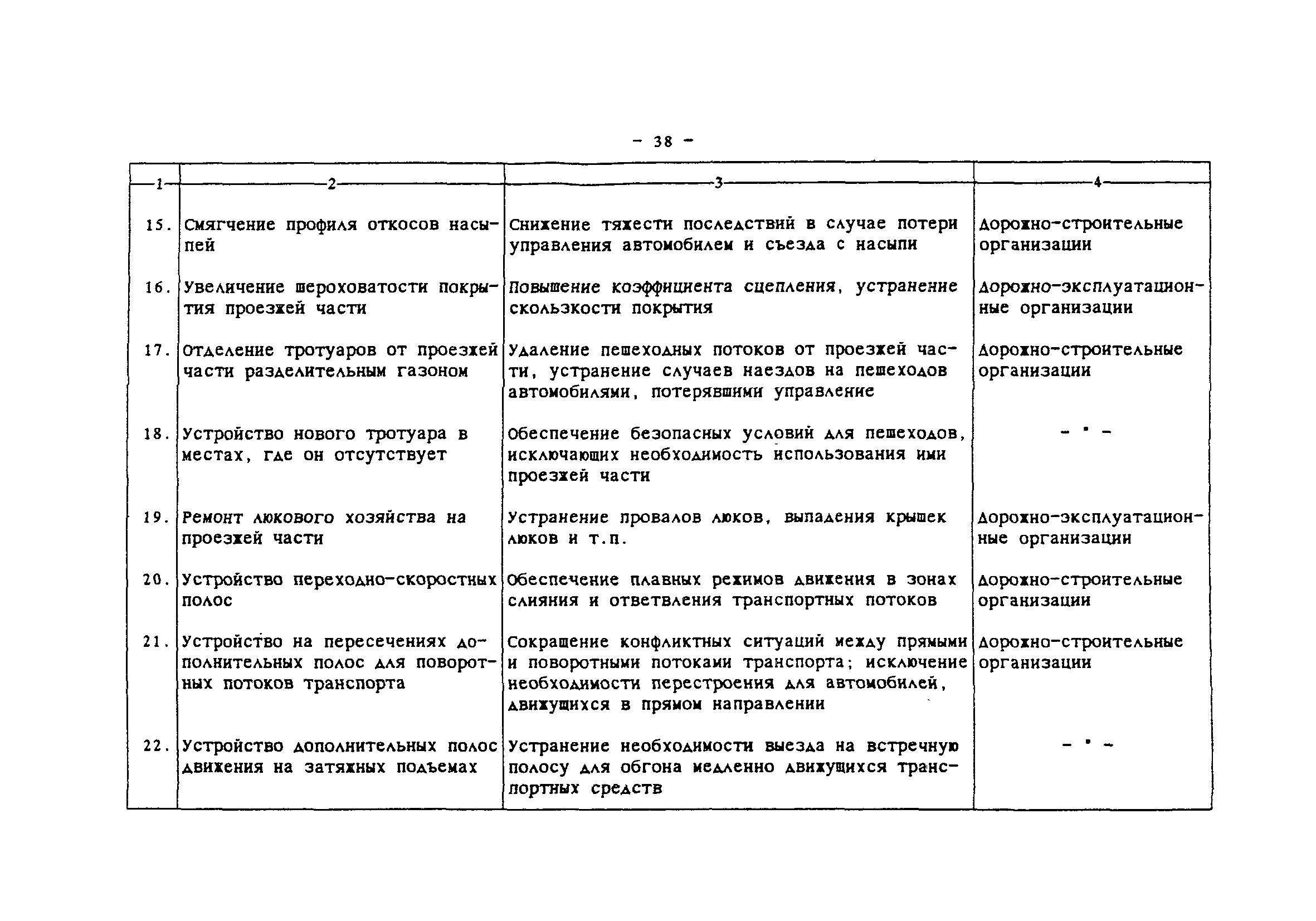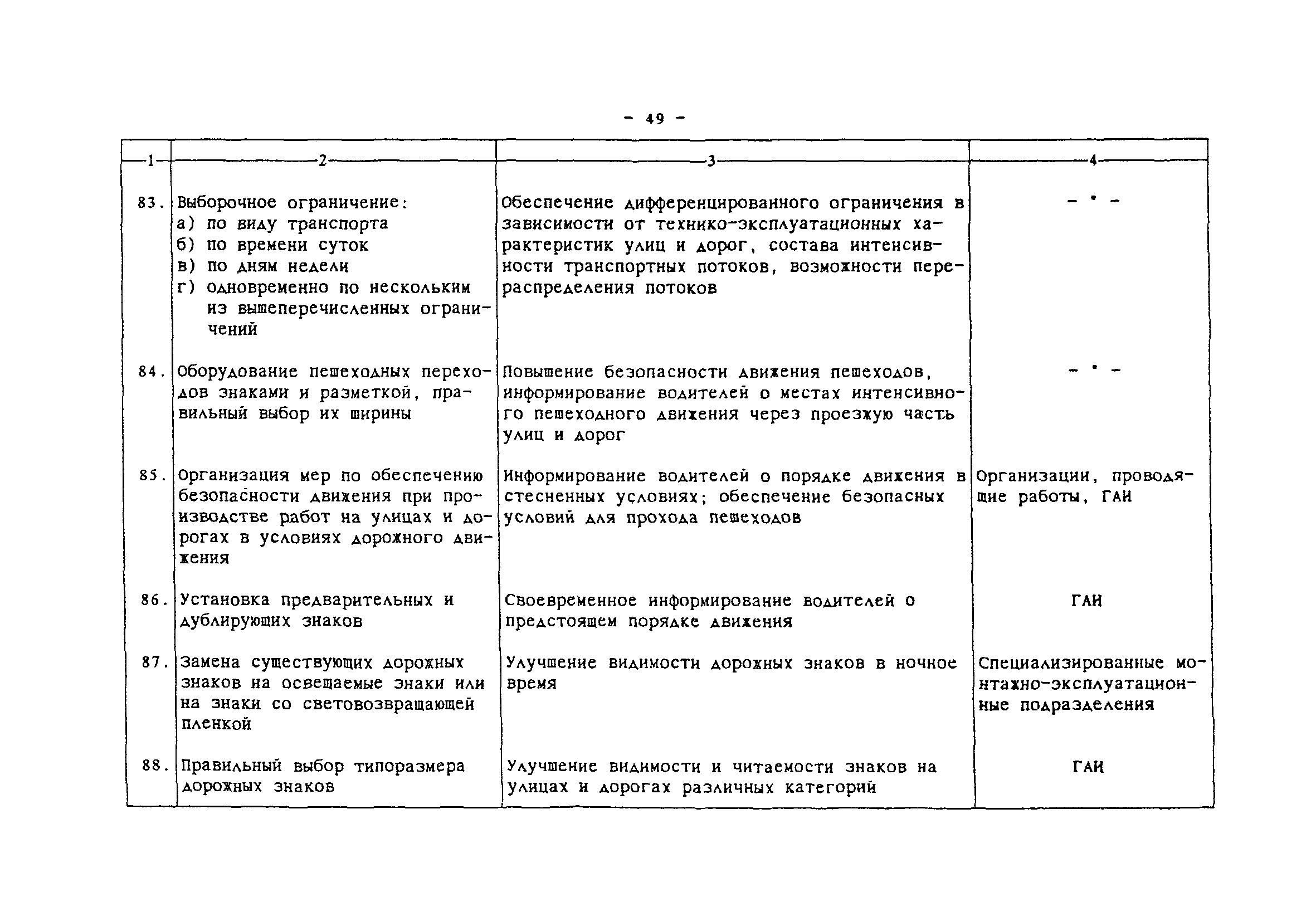 | Область применения: | Комплексная методика программно-целевого сокращения аварийности в местах концентрации ДТП представляет взаимосвязанный набор методов, направленных на повышение безопасности дорожного движения в городах и населенных пунктах за счет сокращения аварийности на опасных участках улично-дорожной сети. Методика позволяет оценить ожидаемые результаты сокращения аварийности и определить эффективные комплексы мероприятий. На основе применения ЭВМ разрабатывается план внедрения мероприятий на массиве очагов аварийности, в который входят последовательность устранения очагов, последовательность внедрения мероприятий и ожидаемое сокращение ДТП. Основой информационного обеспечения является действующая система учета и анализа ДТП. Методика предназначена для использования городскими службами, ответственными за организацию и безопасность дорожного движения. В некоторых случаях может быть использована на внегородских дорогах. |