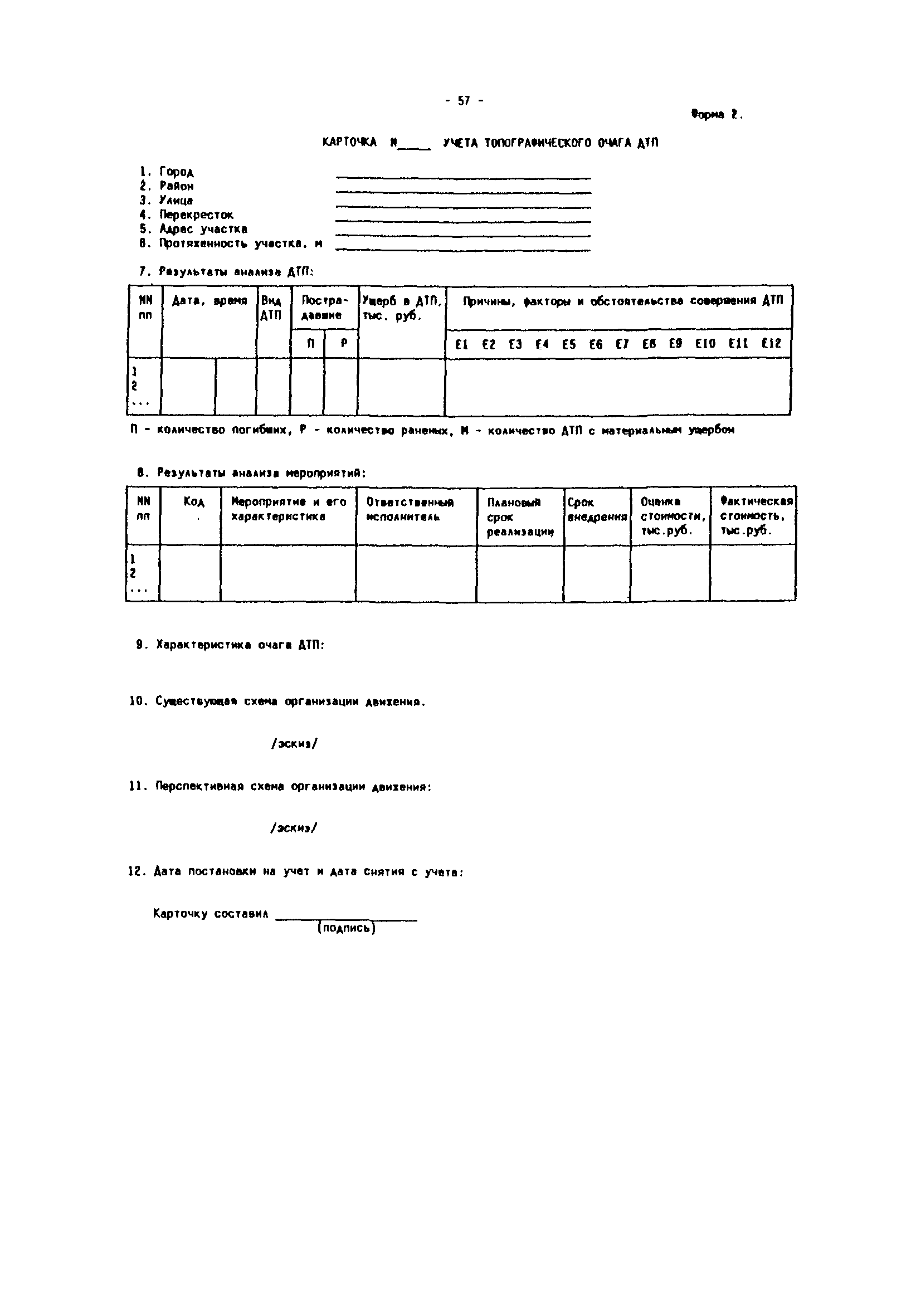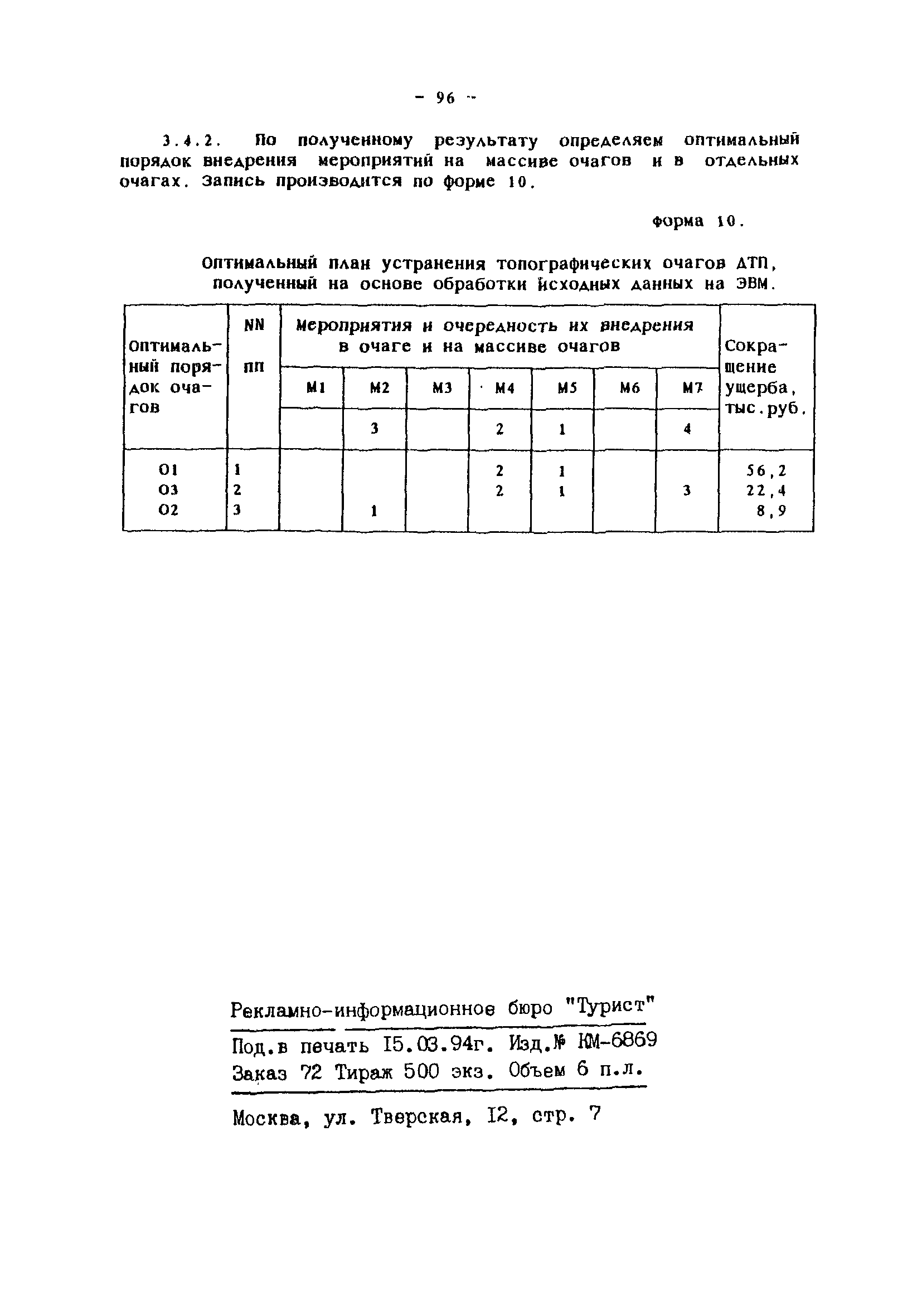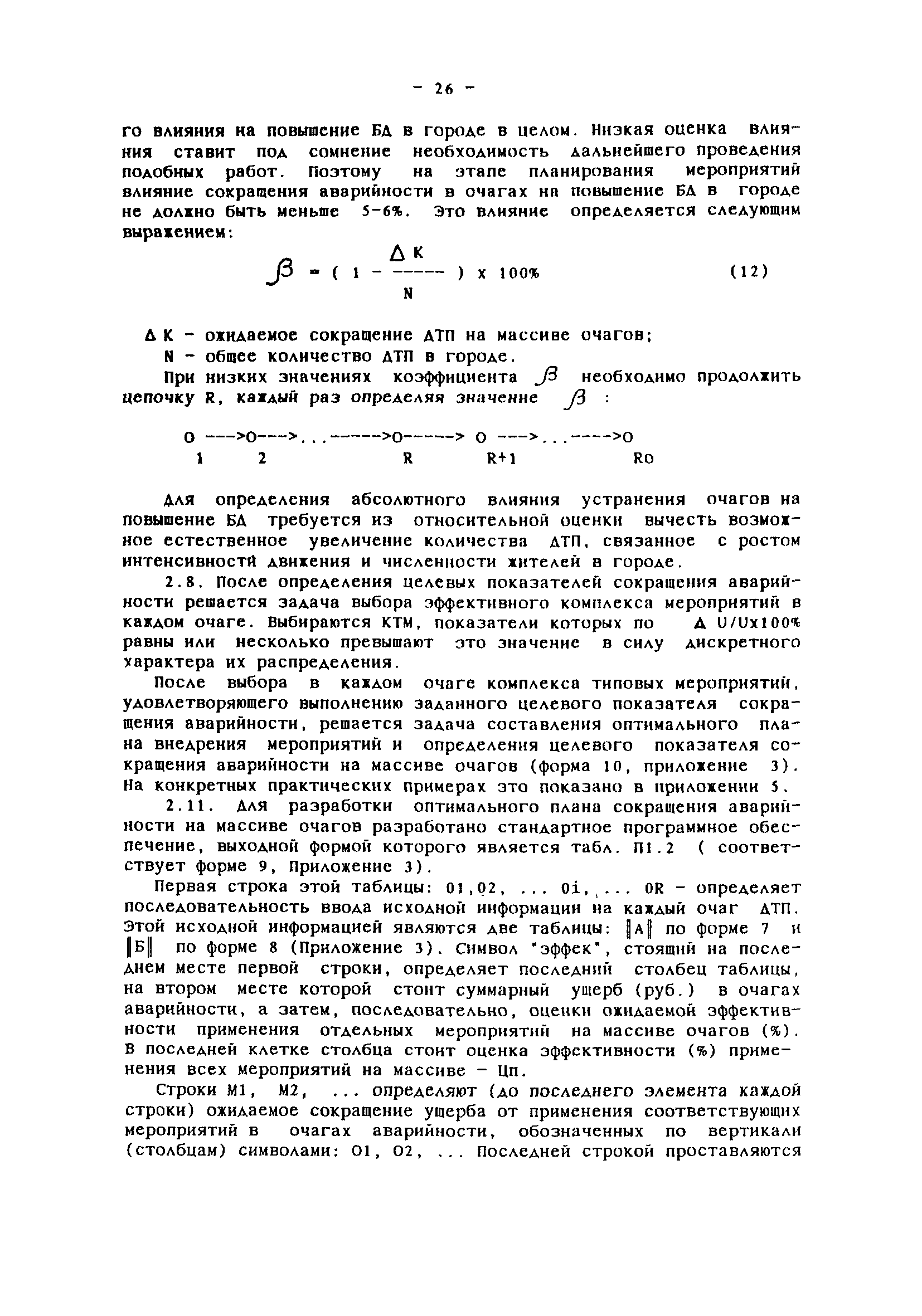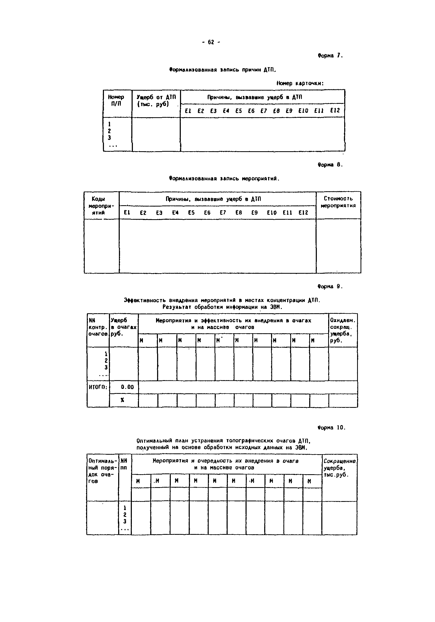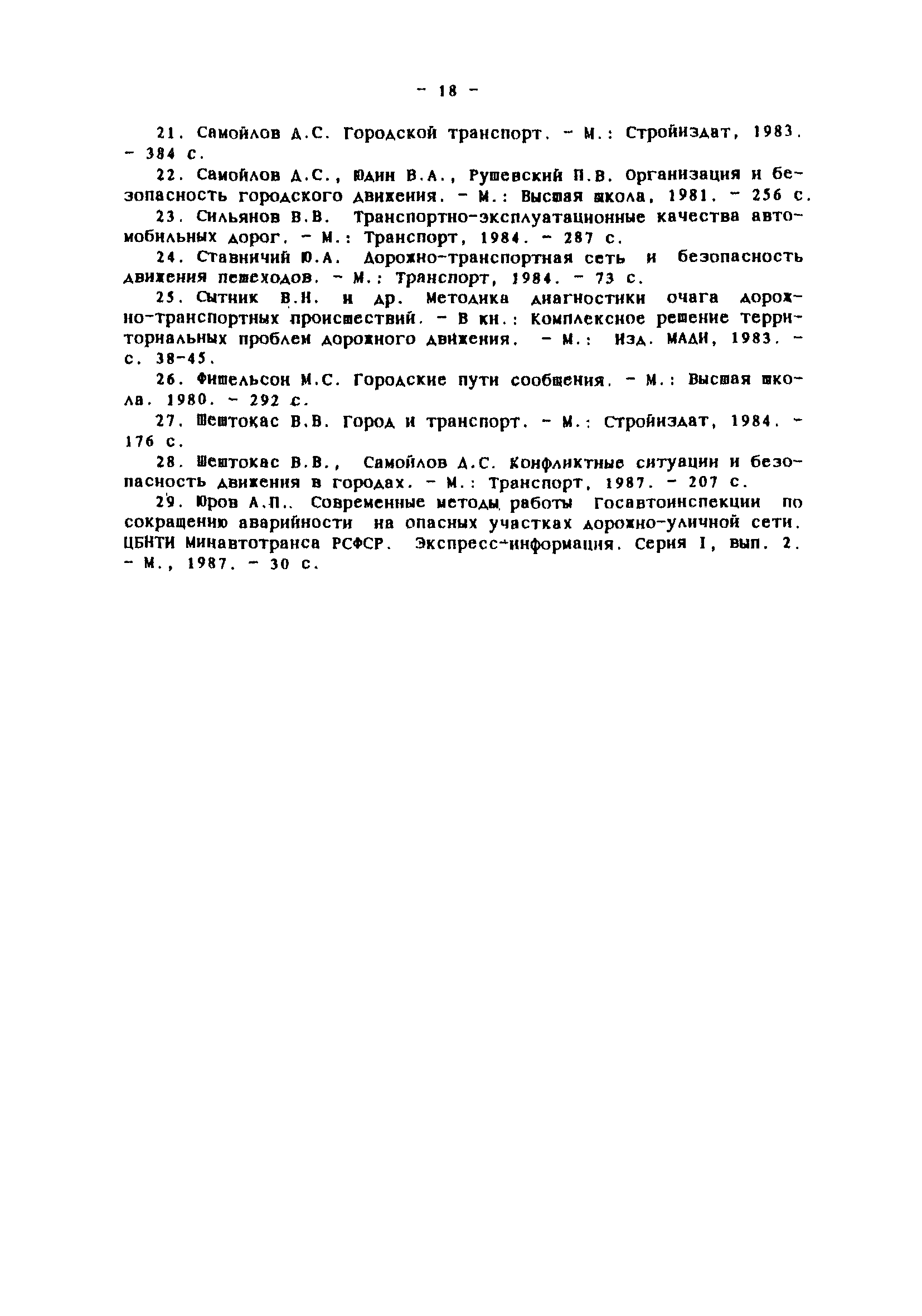 | Оглавление: | Введение Общие положения Сортировка исходной информации об аварийности по улицам и отдельным участкам дорог Выявление, классификация мест концентрации ДТП и определение их границ Обследование очагов ДТП Составление списка причин и списка мероприятий Оценки эффективности влияния мероприятий на устранение причин ДТП Запись очагов ДТП в формализованном виде Определение целевого показателя сокращения аварийности в отдельном очаге Определение целевого показателя сокращения аварийности на массиве очагов и составление оптимального плана внедрения мероприятий Оценка влияния ожидаемого сокращения аварийности в очагах на повышение БД в городе Привязка мероприятий к участкам улично-дорожной сети Составление перспективных схем организации дорожного движения Отслеживание эффективности внедрения мероприятий Оценка сокращения аварийности в очагах Список использованной литературы Приложения Приложение 1. Теоретические основы определения целевых показателей сокращения аварийности Приложение 2. План реализации программно- целевых методов сокращения аварийности Приложение 3. Формы для реализации программно-целевых методов сокращения аварийности в местах концентрации дорожно-транспортных происшествий Приложение 4. Ввод исходных данных в компьютерные программы расчета ожидаемого сокращения аварийности Приложение 5. Примеры расчета целевых показателей сокращения аварийности в местах концентраций ДТП |