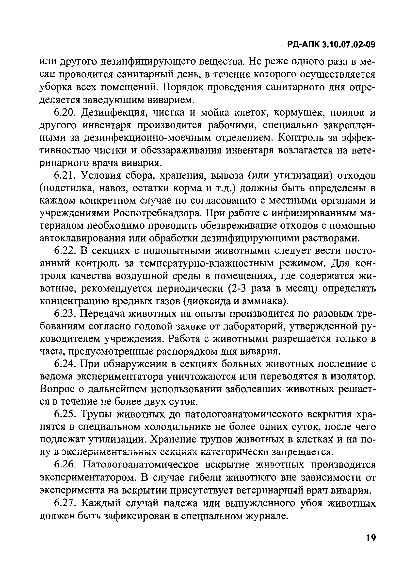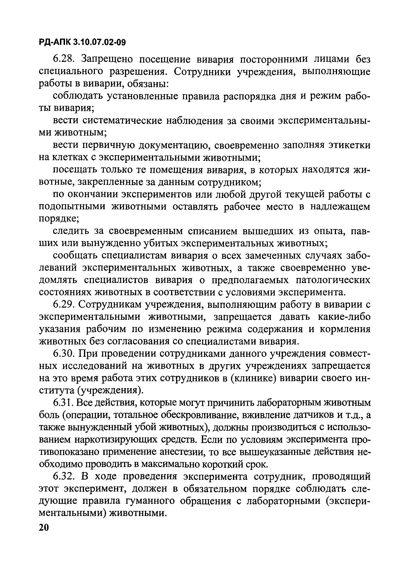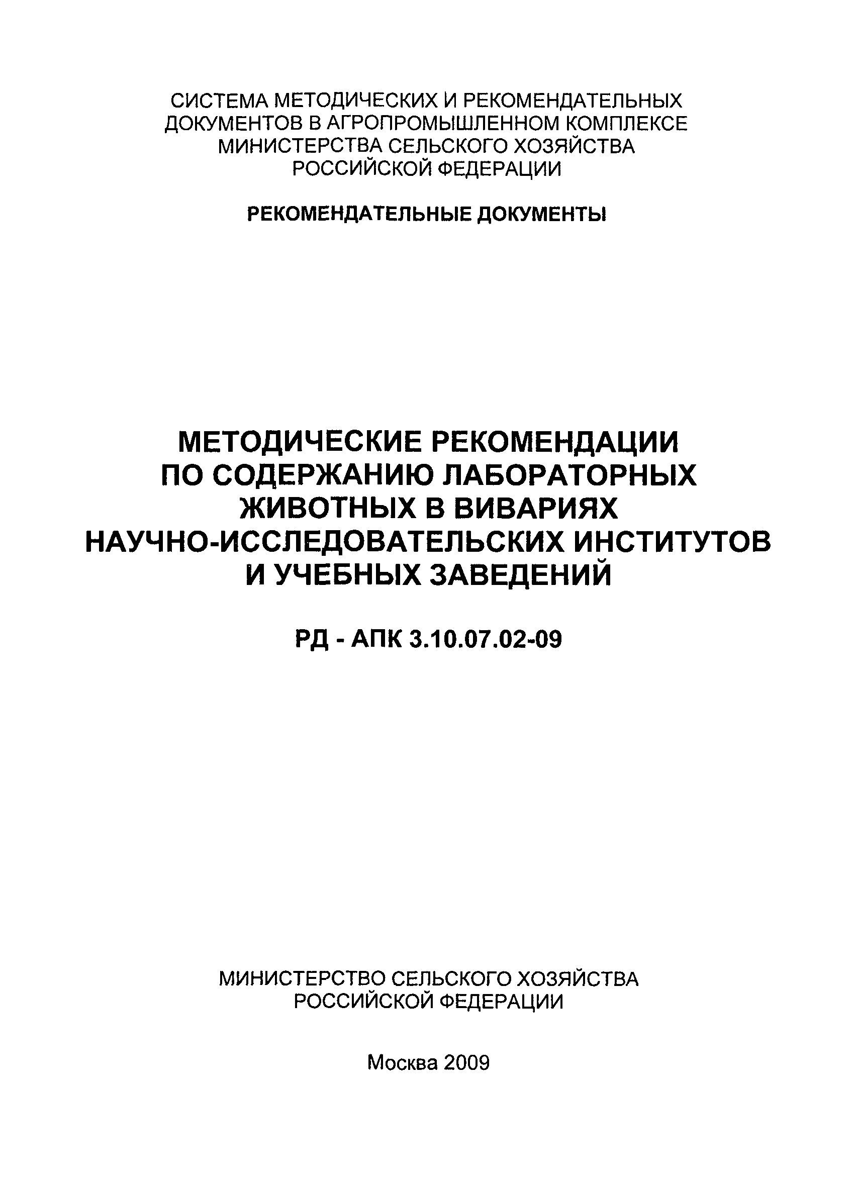 | Область применения: | Документ распространяется на все научно-исследовательские организации и учебные заведения АПК России независимо от их организационно-правовой формы, использующие в своей работе лабораторных (экспериментальных, подопытных) животных. |