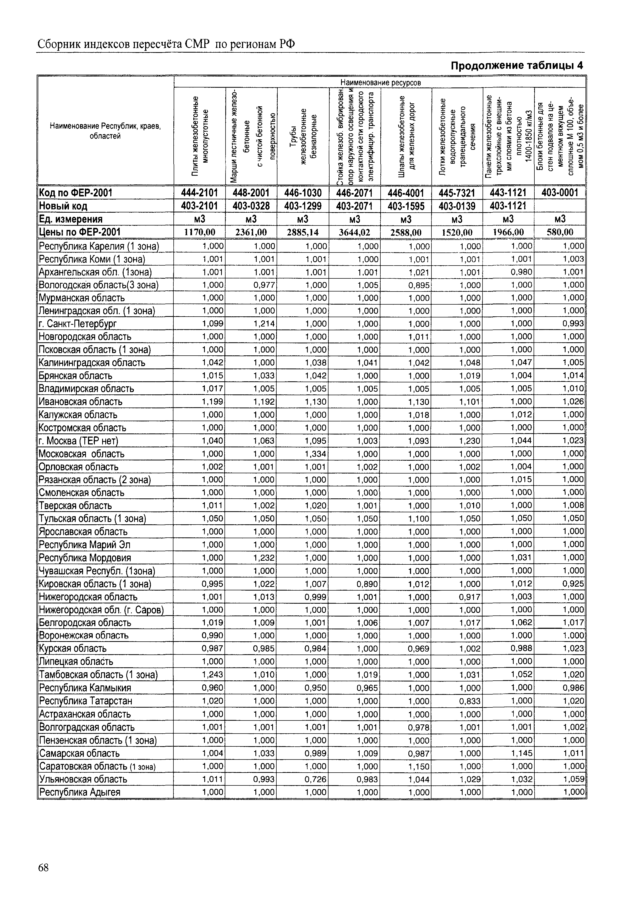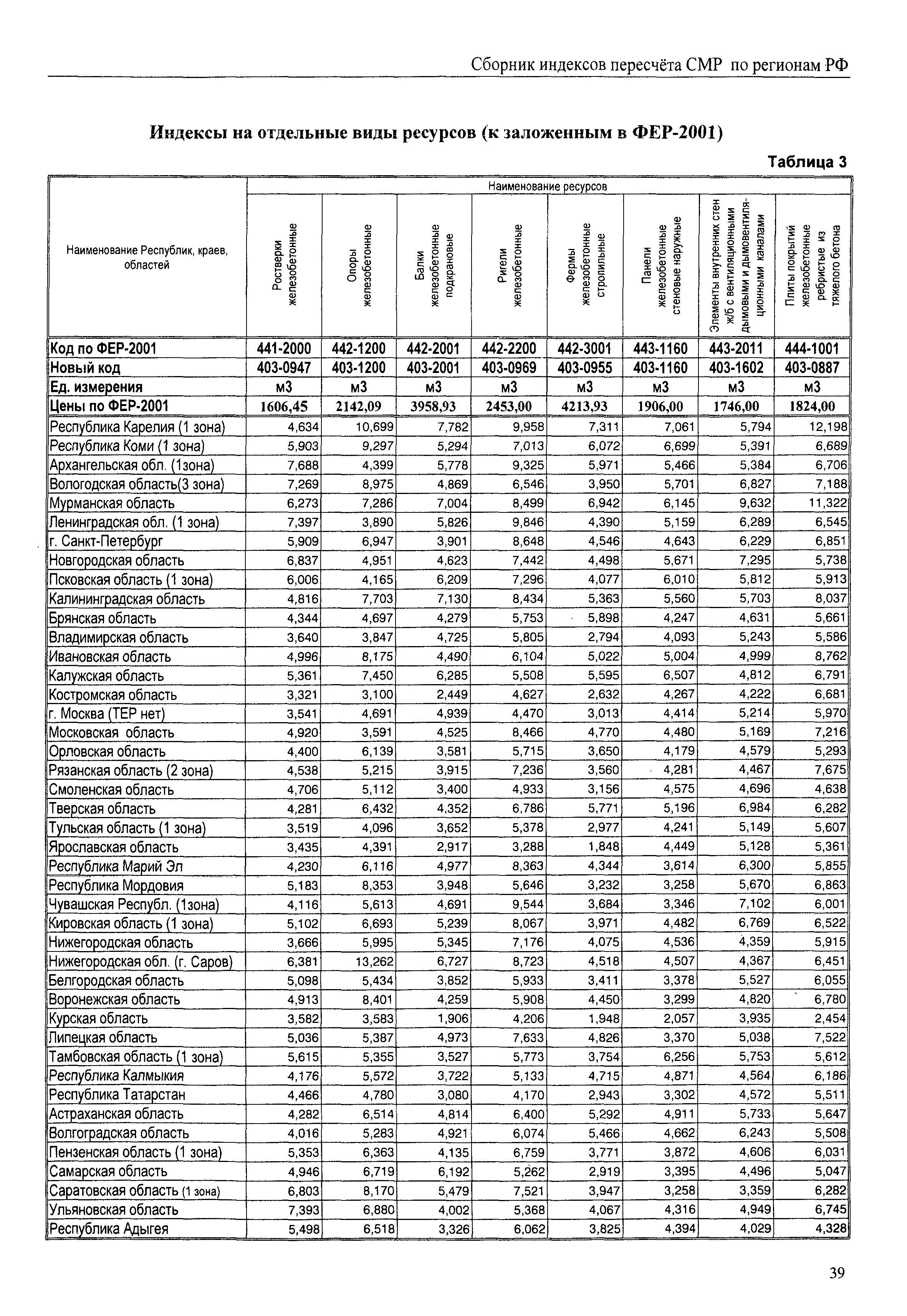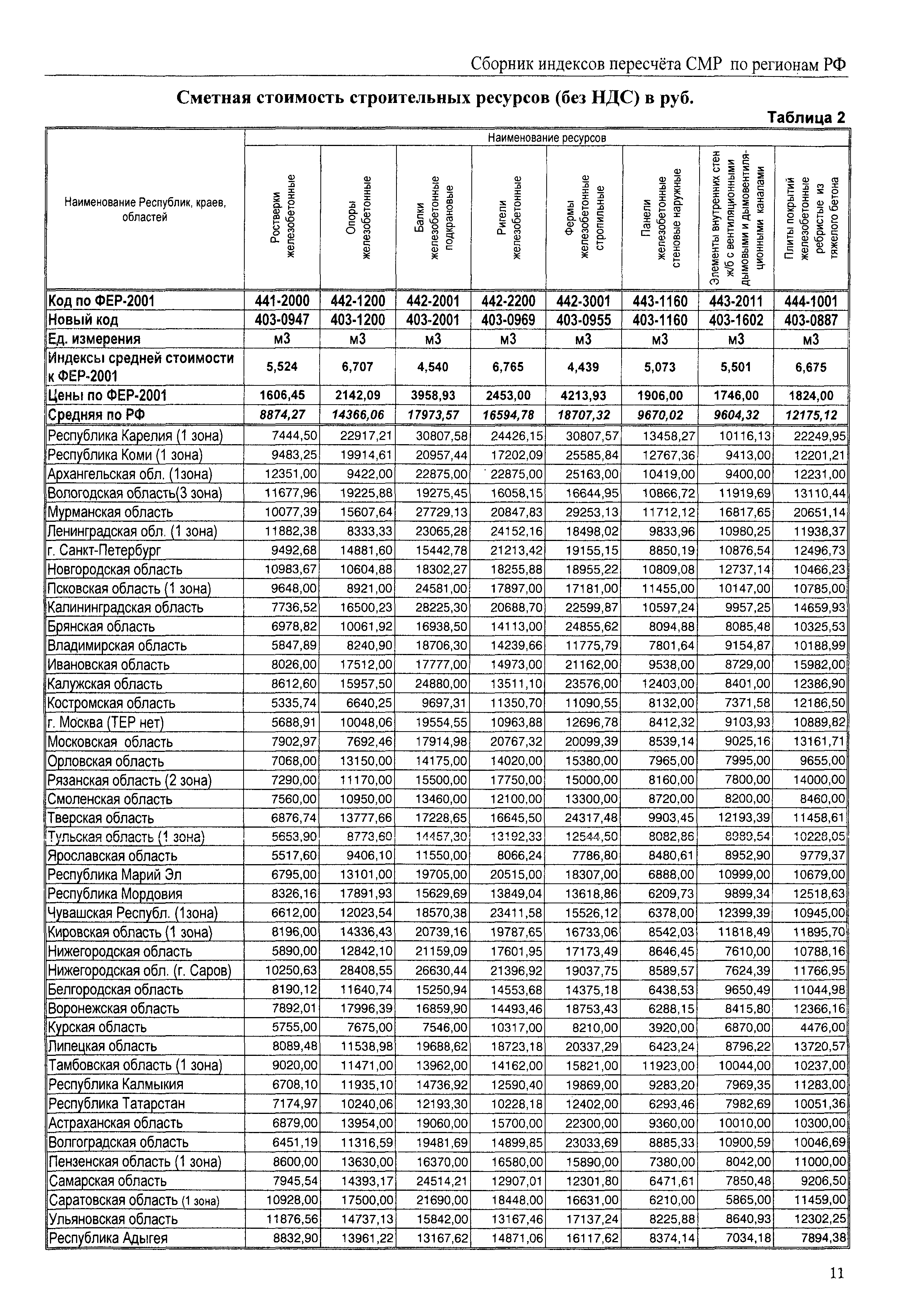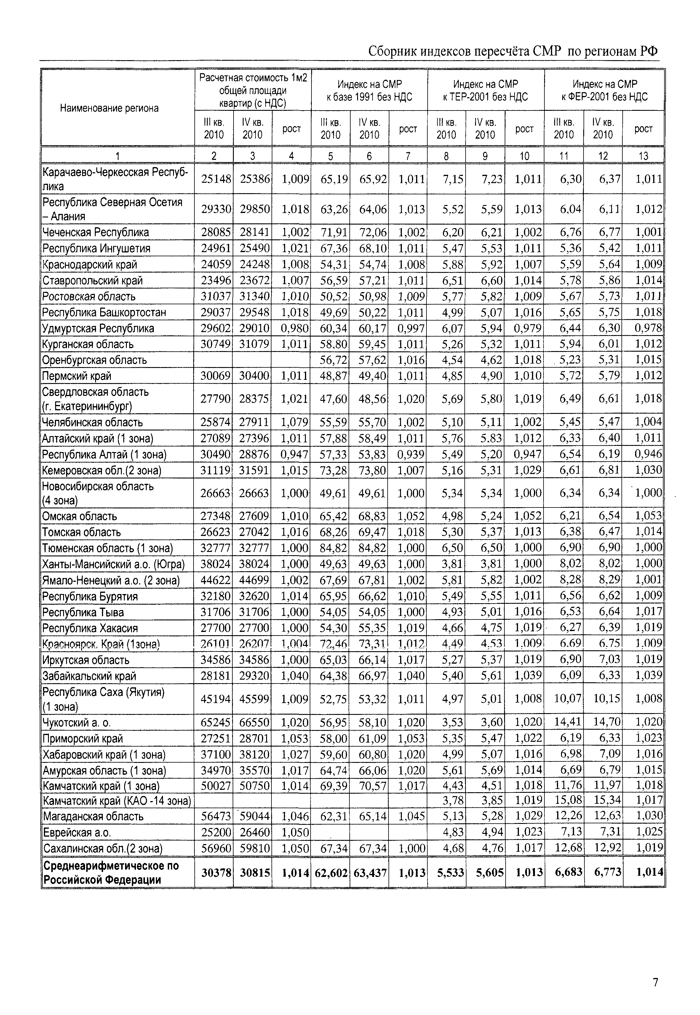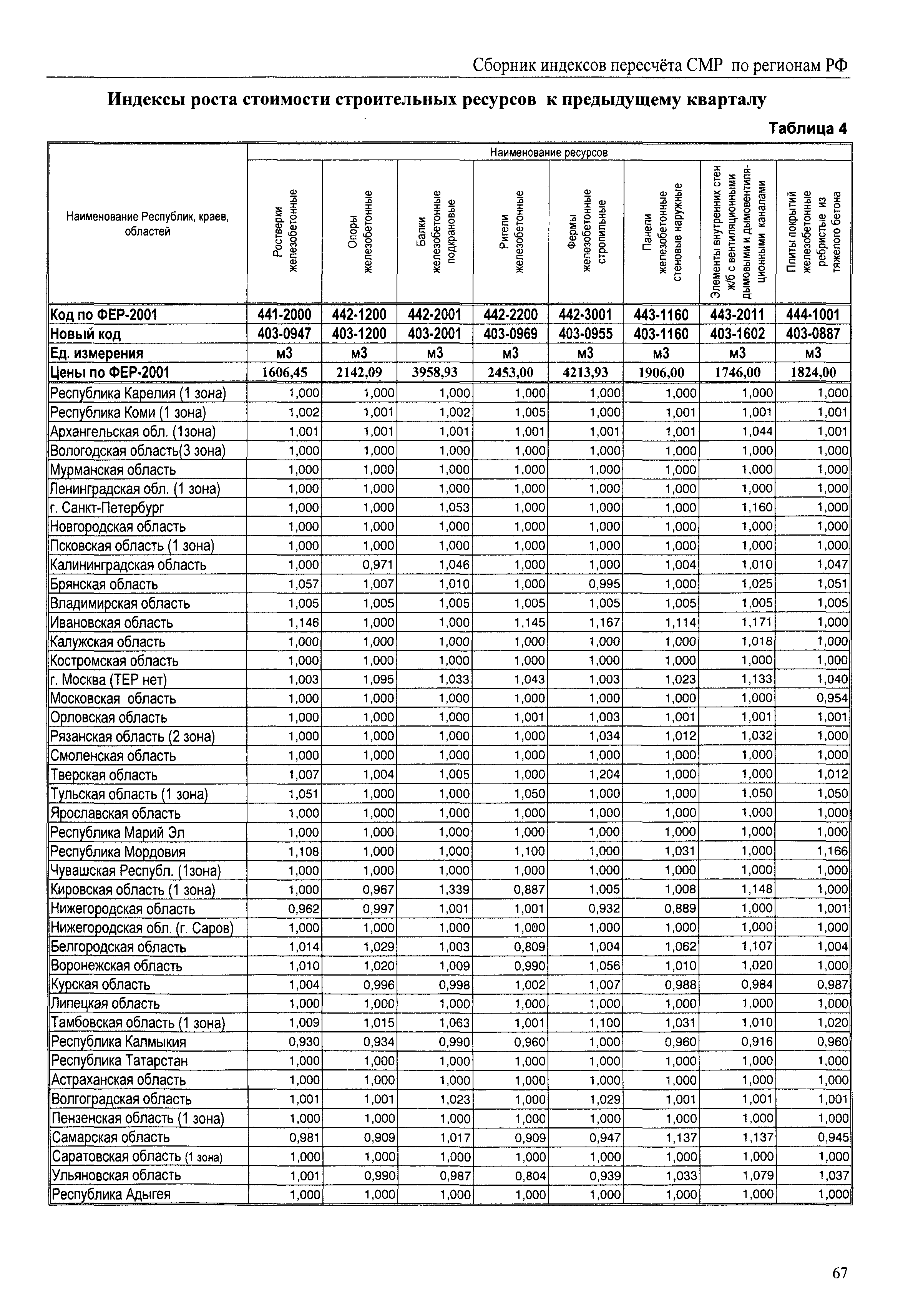 Межрегиональный сборник индексов пересчета сметной стоимости строительно-монтажных работ по субъектам Российской Федерации на IV квартал 2010 г.| Статус: | не действует | | Название рус.: | Межрегиональный сборник индексов пересчета сметной стоимости строительно-монтажных работ по субъектам Российской Федерации на IV квартал 2010 г. | | Дата добавления в базу: | 01.09.2013 | | Дата актуализации: | 01.09.2013 | | Область применения: | В сборнике приведены сводные таблицы текущих (IV квартал 2010 г.) региональных цен на основные ресурсы, применяемые в строительстве, региональные индексы пересчета базисной стоимости строительно-монтажных работ, определяемой с использованием сборников сметно-нормативной базы (ФЕР-2001, ТЕР-2001 в редакции 2003 г. с учетом дополнений и изменений 1 - 4), в территориальный текущий уровень цен. Индексы разработаны по единой методике, на основании отчетных данных региональных органов по ценообразованию в строительстве о стоимости строительных ресурсов в регионе. | | Оглавление: | Общая часть Техническая часть (к таблицам 1, 2, 3, 4) Цены на строительную продукцию в IV квартале 2010 г. Анализ роста индексов и стоимости 1м2 по субъектам Российской Федерации в IV кв. 2010 года. - таблица А Расчетная стоимость 1 м2 общей площади квартир и индексы изменения стоимости строительства по субъектам Российской Федерации за IV квартал 2010 г. -Таблица 1 Сметная стоимость строительных ресурсов (без НДС) в руб. -Таблица 2 Индексы на отдельные виды ресурсов (к заложенным в ФЕР-2001) -Таблица 3 Индексы роста стоимости строительных ресурсов к предыдущему кварталу -Таблица 4 Региональные индексы к ФЕР-2001 по основным видам объектов строительства - Таблица 5 Индексы на оборудование за IV квартал 2010 г Индексы на прочие работы и затраты за IV квартал 2010 г |