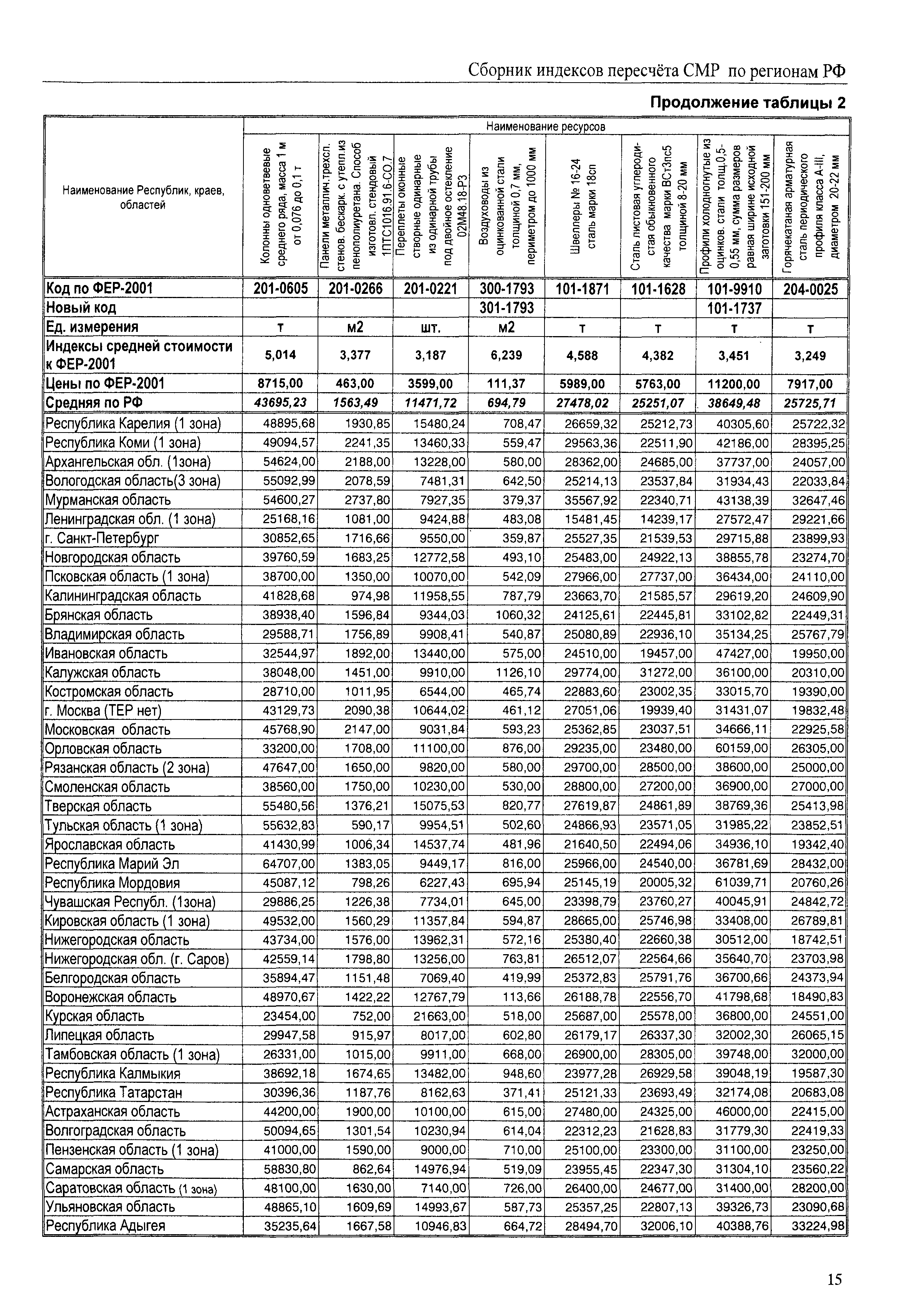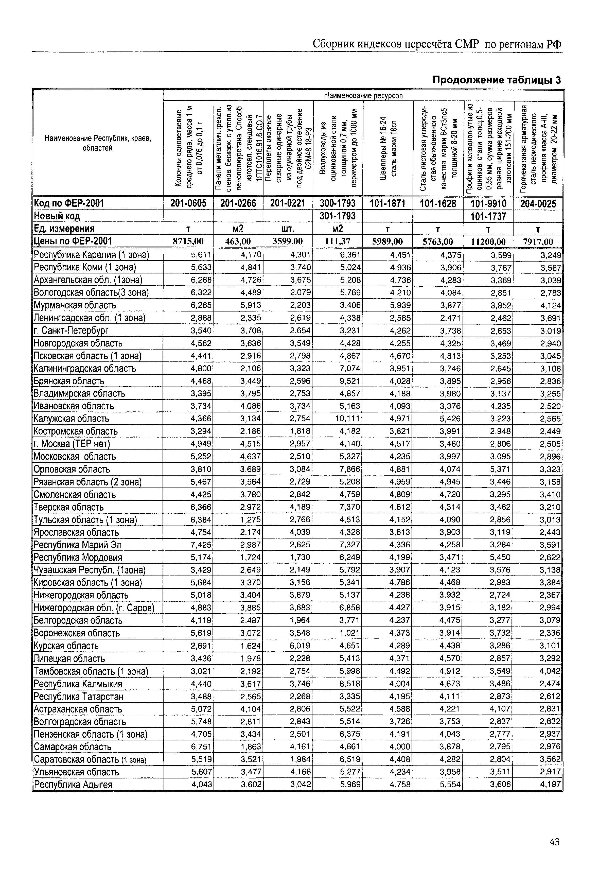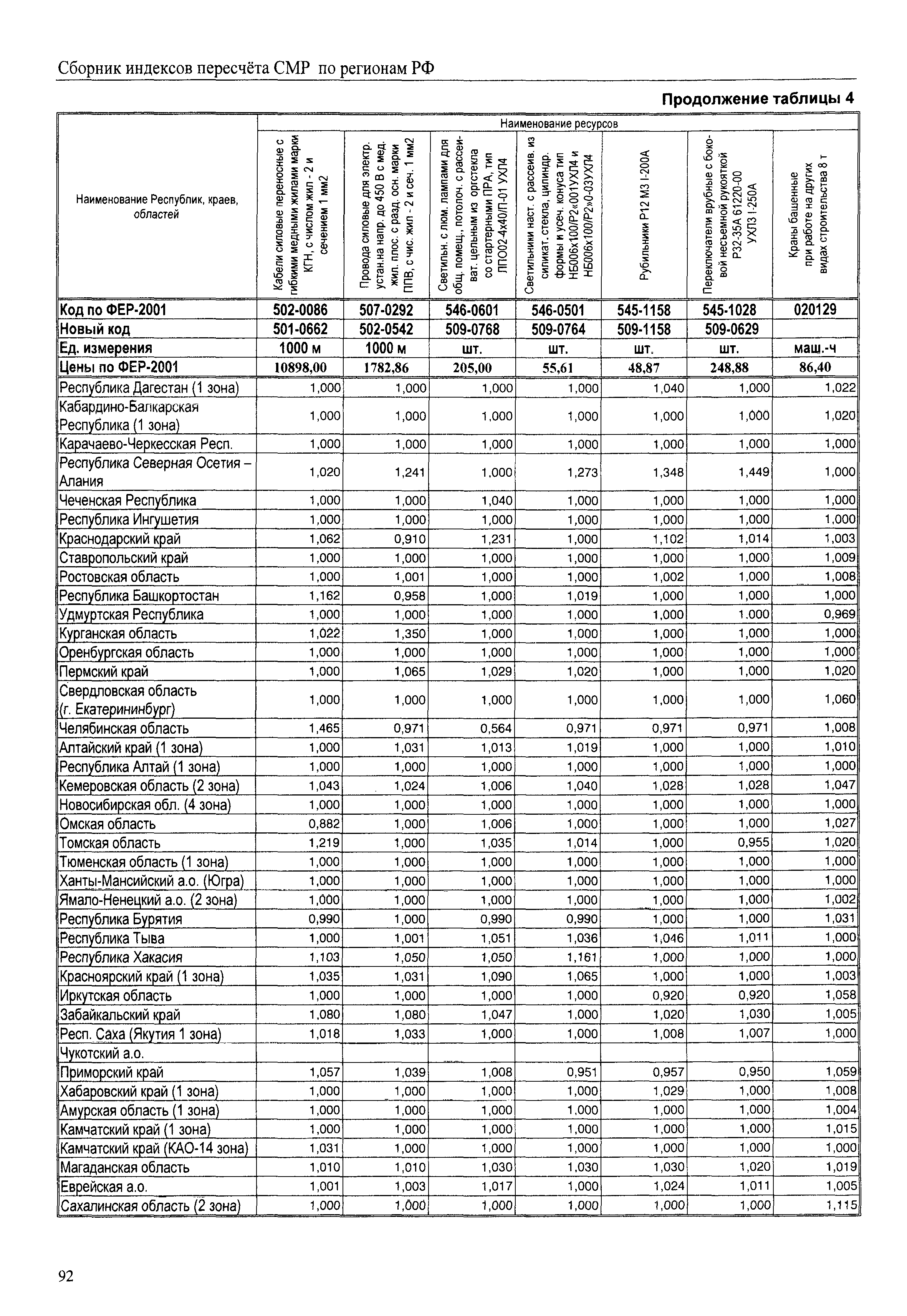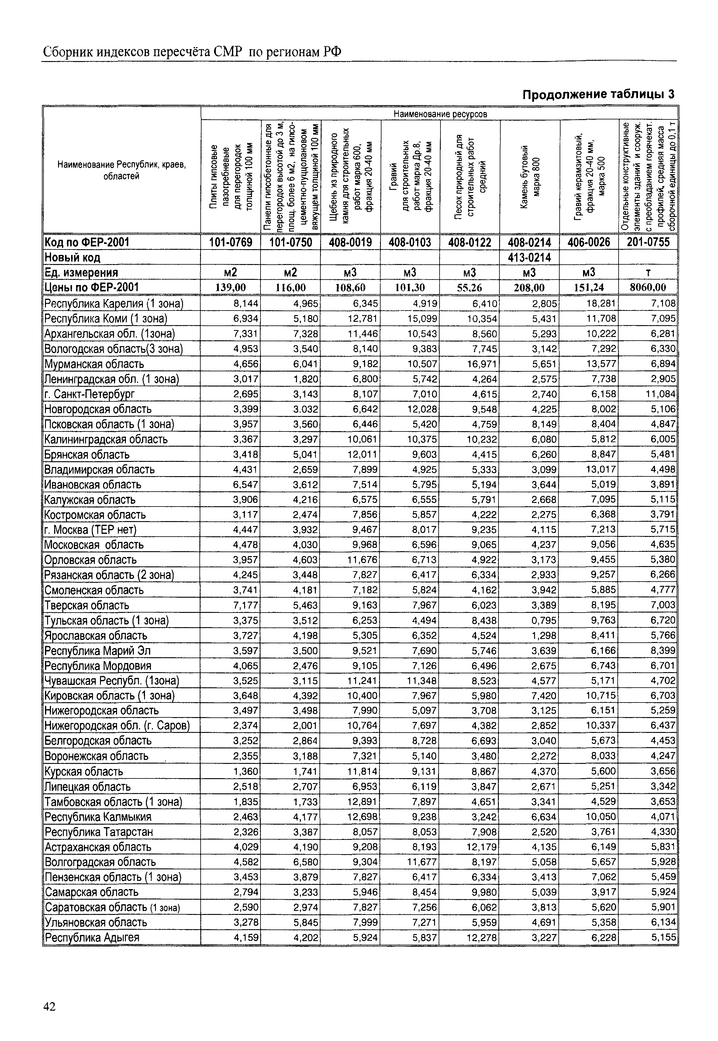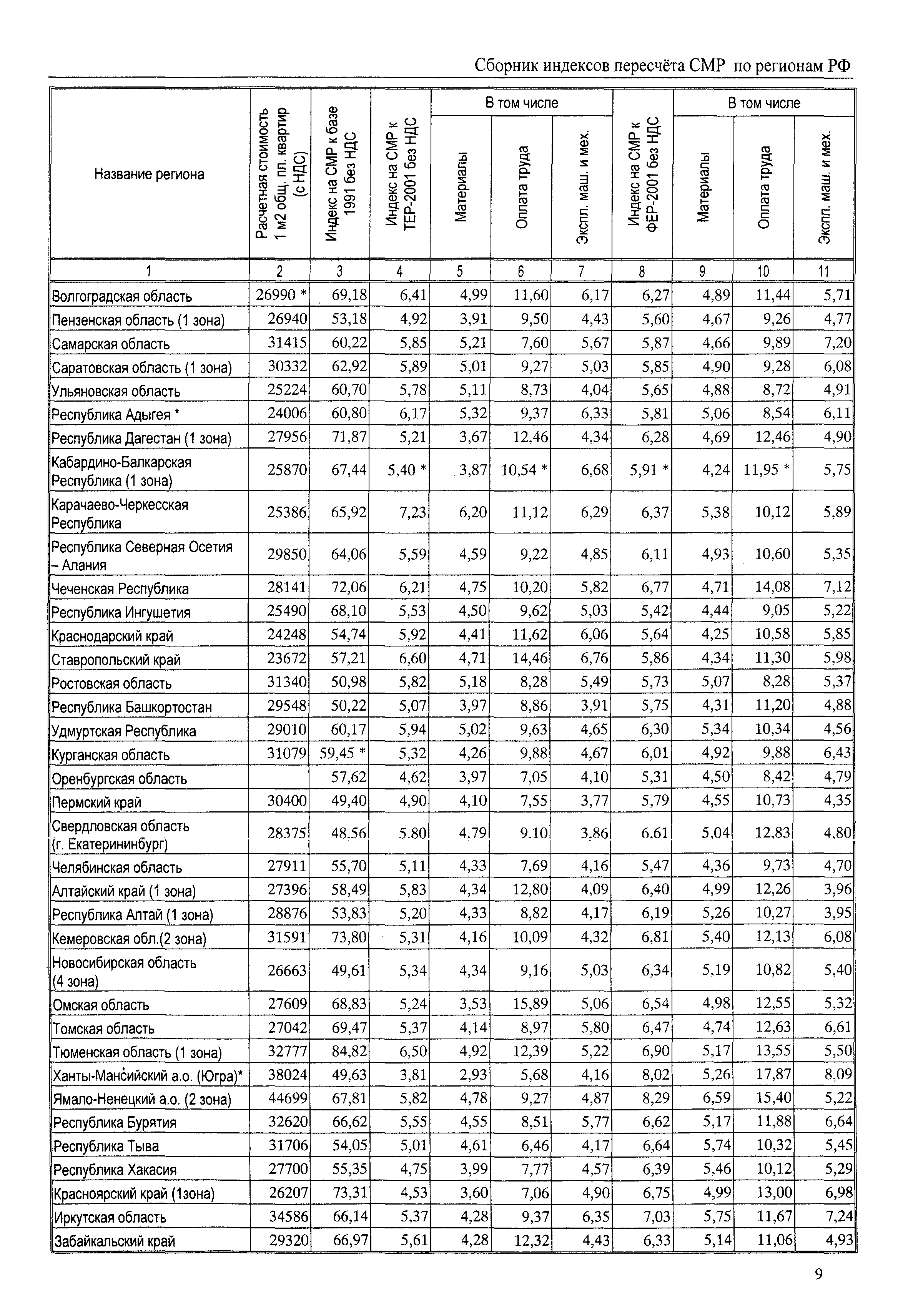 Межрегиональный сборник индексов пересчета сметной стоимости строительно-монтажных работ по субъектам Российской Федерации на IV квартал 2010 г.| Статус: | не действует | | Название рус.: | Межрегиональный сборник индексов пересчета сметной стоимости строительно-монтажных работ по субъектам Российской Федерации на IV квартал 2010 г. | | Дата добавления в базу: | 01.09.2013 | | Дата актуализации: | 01.09.2013 | | Область применения: | В сборнике приведены сводные таблицы текущих (IV квартал 2010 г.) региональных цен на основные ресурсы, применяемые в строительстве, региональные индексы пересчета базисной стоимости строительно-монтажных работ, определяемой с использованием сборников сметно-нормативной базы (ФЕР-2001, ТЕР-2001 в редакции 2003 г. с учетом дополнений и изменений 1 - 4), в территориальный текущий уровень цен. Индексы разработаны по единой методике, на основании отчетных данных региональных органов по ценообразованию в строительстве о стоимости строительных ресурсов в регионе. | | Оглавление: | Общая часть Техническая часть (к таблицам 1, 2, 3, 4) Цены на строительную продукцию в IV квартале 2010 г. Анализ роста индексов и стоимости 1м2 по субъектам Российской Федерации в IV кв. 2010 года. - таблица А Расчетная стоимость 1 м2 общей площади квартир и индексы изменения стоимости строительства по субъектам Российской Федерации за IV квартал 2010 г. -Таблица 1 Сметная стоимость строительных ресурсов (без НДС) в руб. -Таблица 2 Индексы на отдельные виды ресурсов (к заложенным в ФЕР-2001) -Таблица 3 Индексы роста стоимости строительных ресурсов к предыдущему кварталу -Таблица 4 Региональные индексы к ФЕР-2001 по основным видам объектов строительства - Таблица 5 Индексы на оборудование за IV квартал 2010 г Индексы на прочие работы и затраты за IV квартал 2010 г |