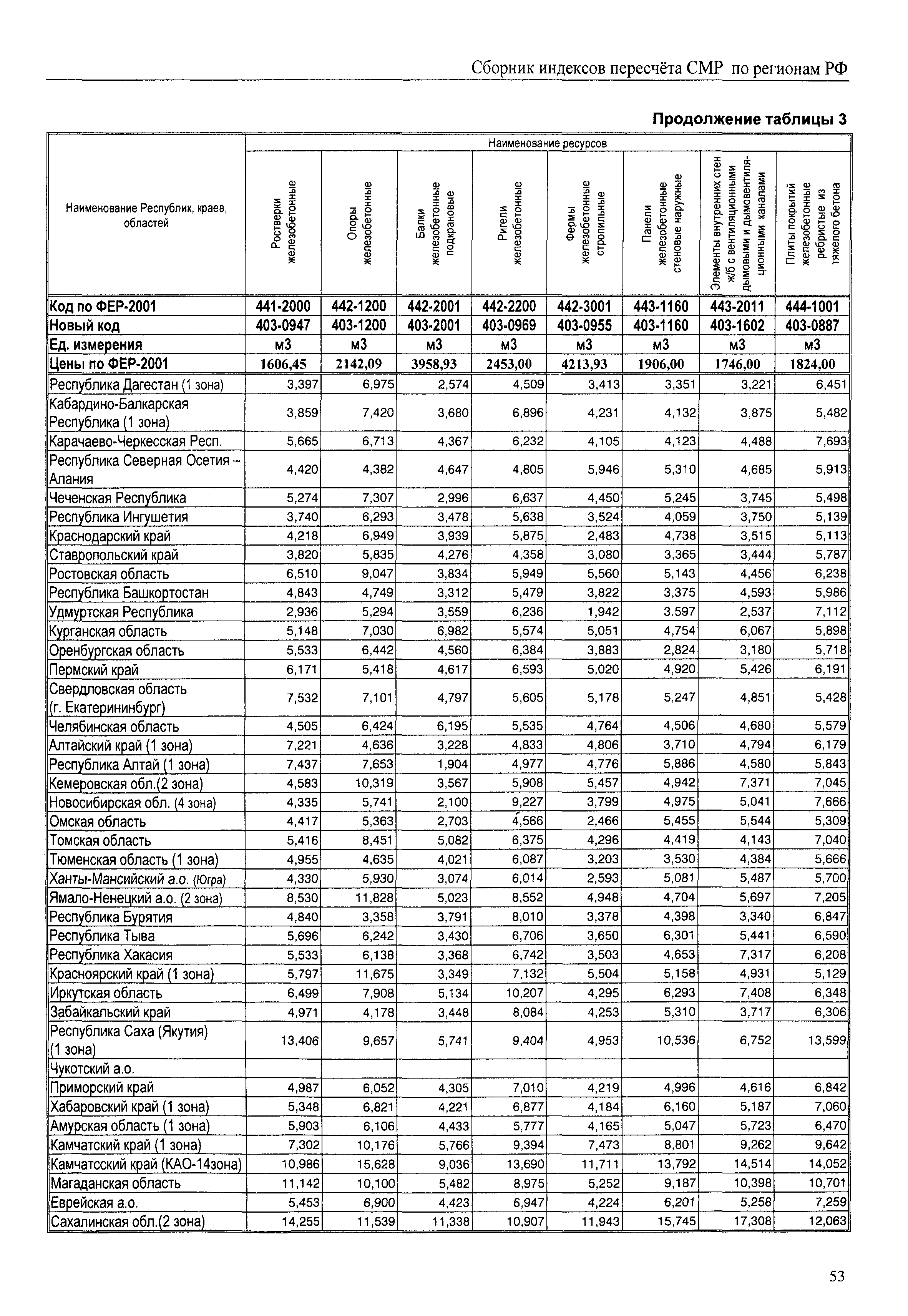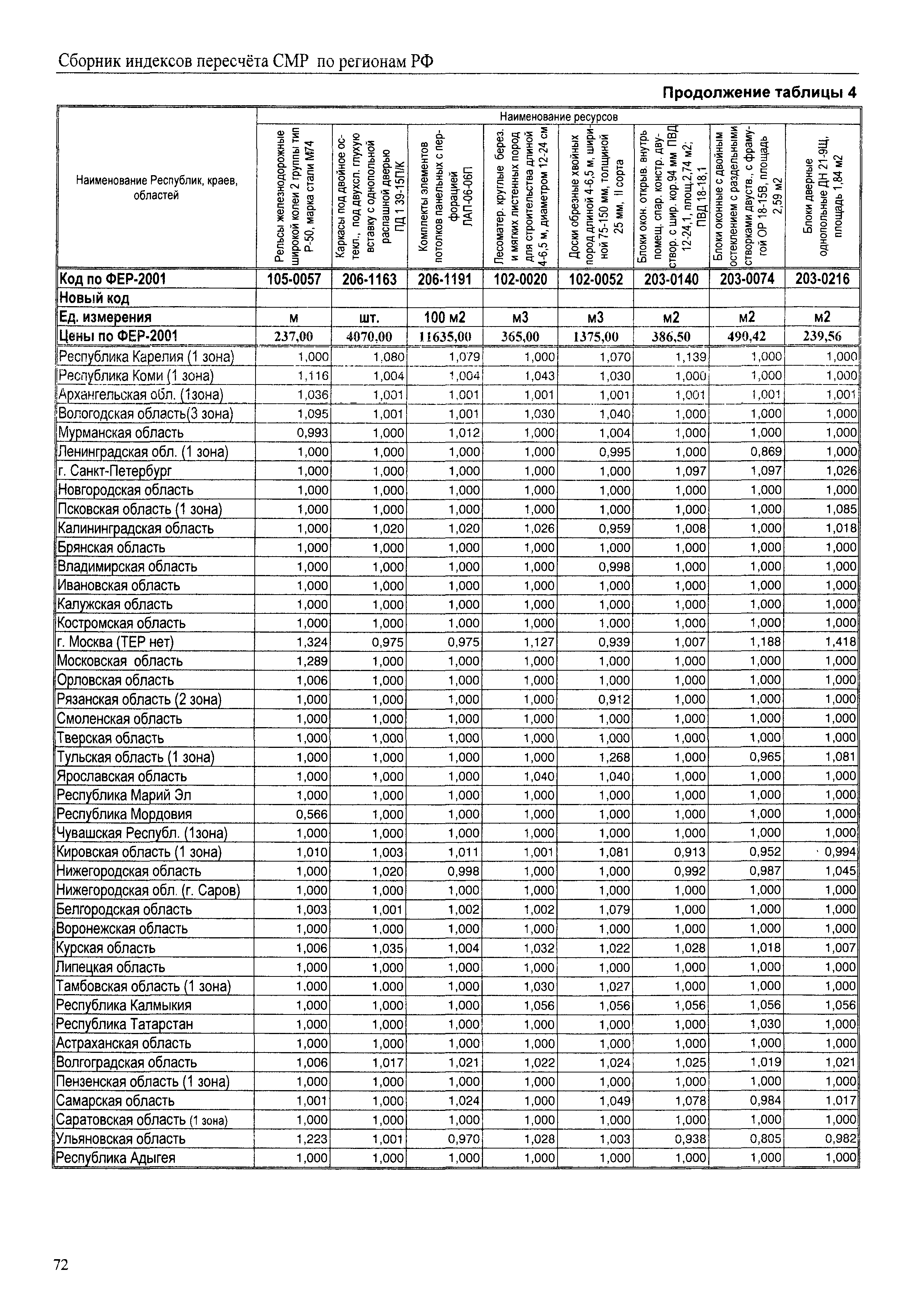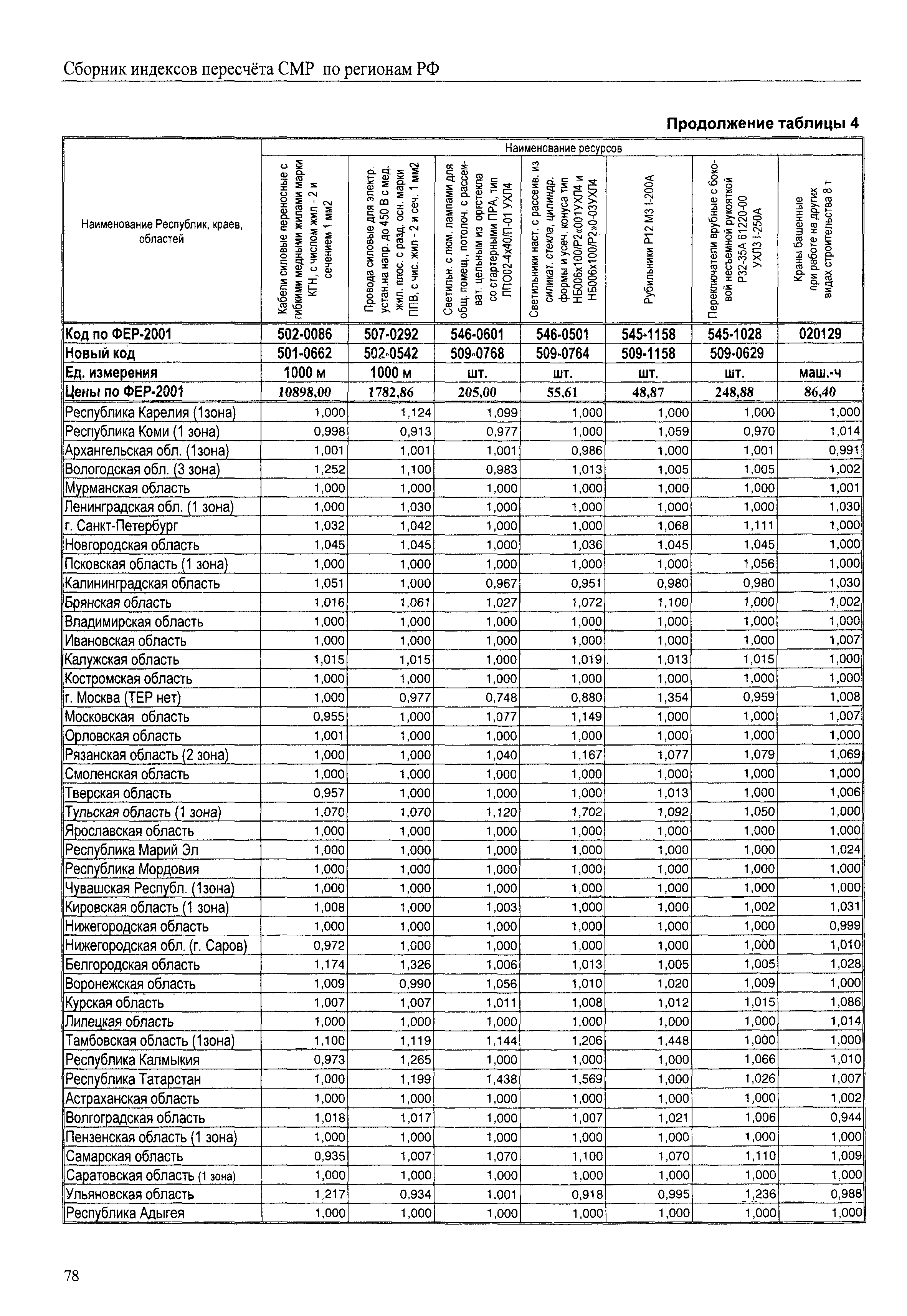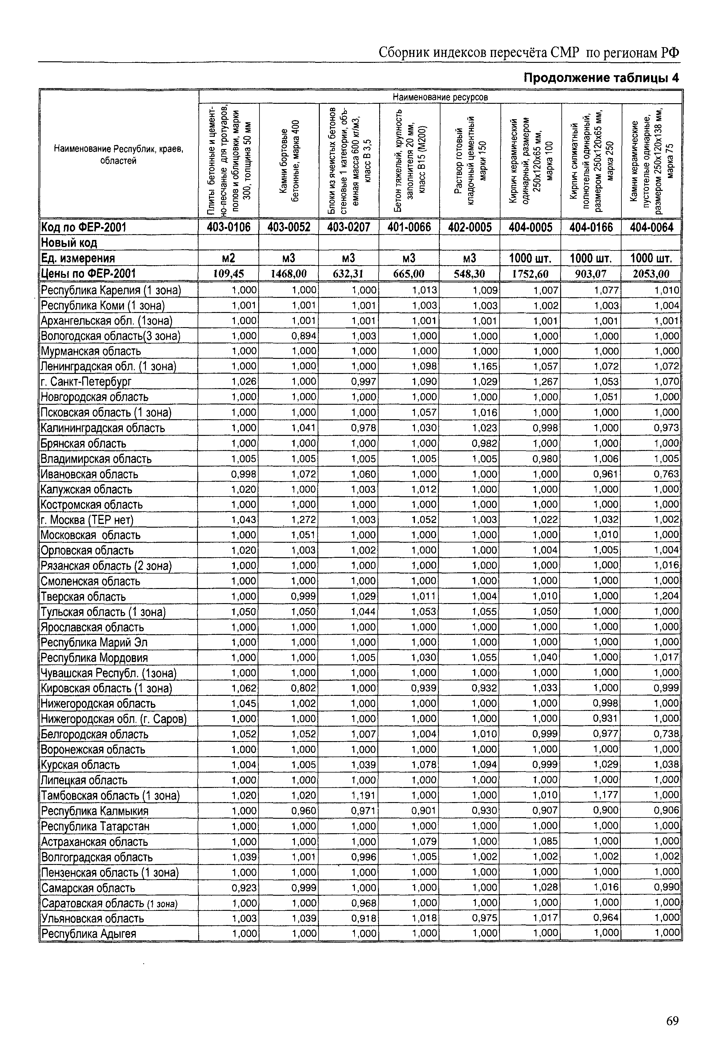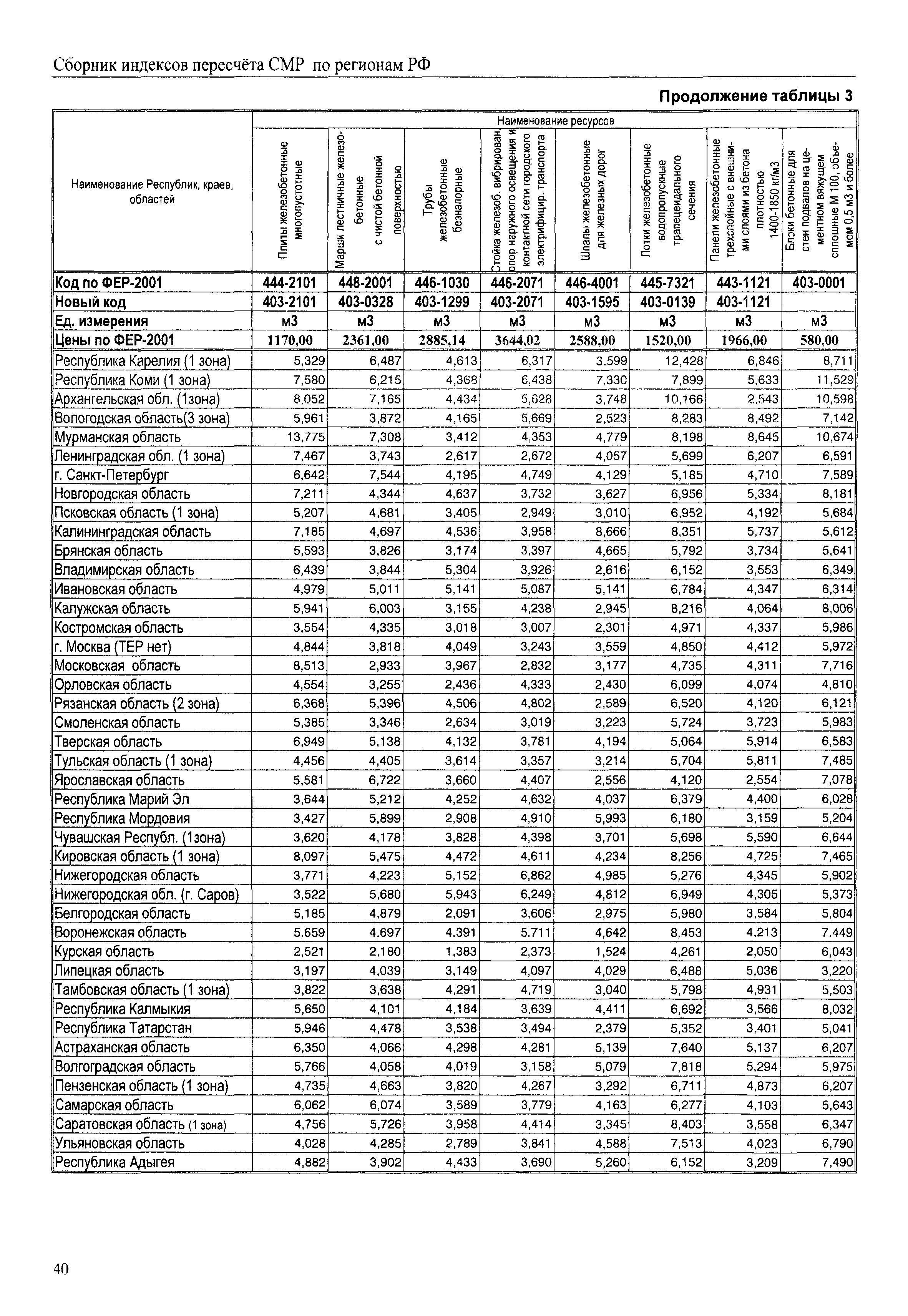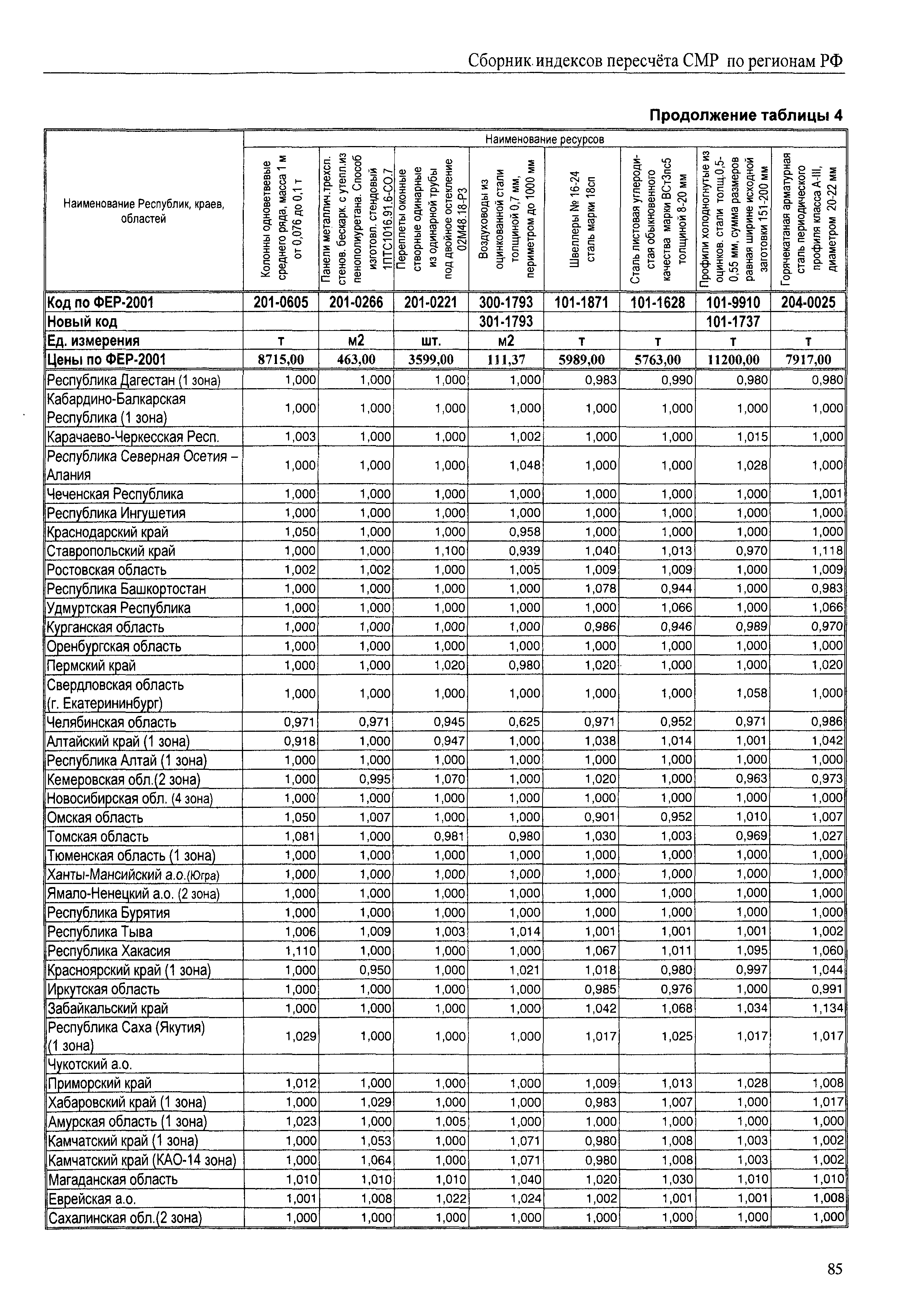 Межрегиональный сборник индексов пересчета сметной стоимости строительно-монтажных работ по субъектам Российской Федерации на IV квартал 2010 г.| Статус: | не действует | | Название рус.: | Межрегиональный сборник индексов пересчета сметной стоимости строительно-монтажных работ по субъектам Российской Федерации на IV квартал 2010 г. | | Дата добавления в базу: | 01.09.2013 | | Дата актуализации: | 01.09.2013 | | Область применения: | В сборнике приведены сводные таблицы текущих (IV квартал 2010 г.) региональных цен на основные ресурсы, применяемые в строительстве, региональные индексы пересчета базисной стоимости строительно-монтажных работ, определяемой с использованием сборников сметно-нормативной базы (ФЕР-2001, ТЕР-2001 в редакции 2003 г. с учетом дополнений и изменений 1 - 4), в территориальный текущий уровень цен. Индексы разработаны по единой методике, на основании отчетных данных региональных органов по ценообразованию в строительстве о стоимости строительных ресурсов в регионе. | | Оглавление: | Общая часть Техническая часть (к таблицам 1, 2, 3, 4) Цены на строительную продукцию в IV квартале 2010 г. Анализ роста индексов и стоимости 1м2 по субъектам Российской Федерации в IV кв. 2010 года. - таблица А Расчетная стоимость 1 м2 общей площади квартир и индексы изменения стоимости строительства по субъектам Российской Федерации за IV квартал 2010 г. -Таблица 1 Сметная стоимость строительных ресурсов (без НДС) в руб. -Таблица 2 Индексы на отдельные виды ресурсов (к заложенным в ФЕР-2001) -Таблица 3 Индексы роста стоимости строительных ресурсов к предыдущему кварталу -Таблица 4 Региональные индексы к ФЕР-2001 по основным видам объектов строительства - Таблица 5 Индексы на оборудование за IV квартал 2010 г Индексы на прочие работы и затраты за IV квартал 2010 г |