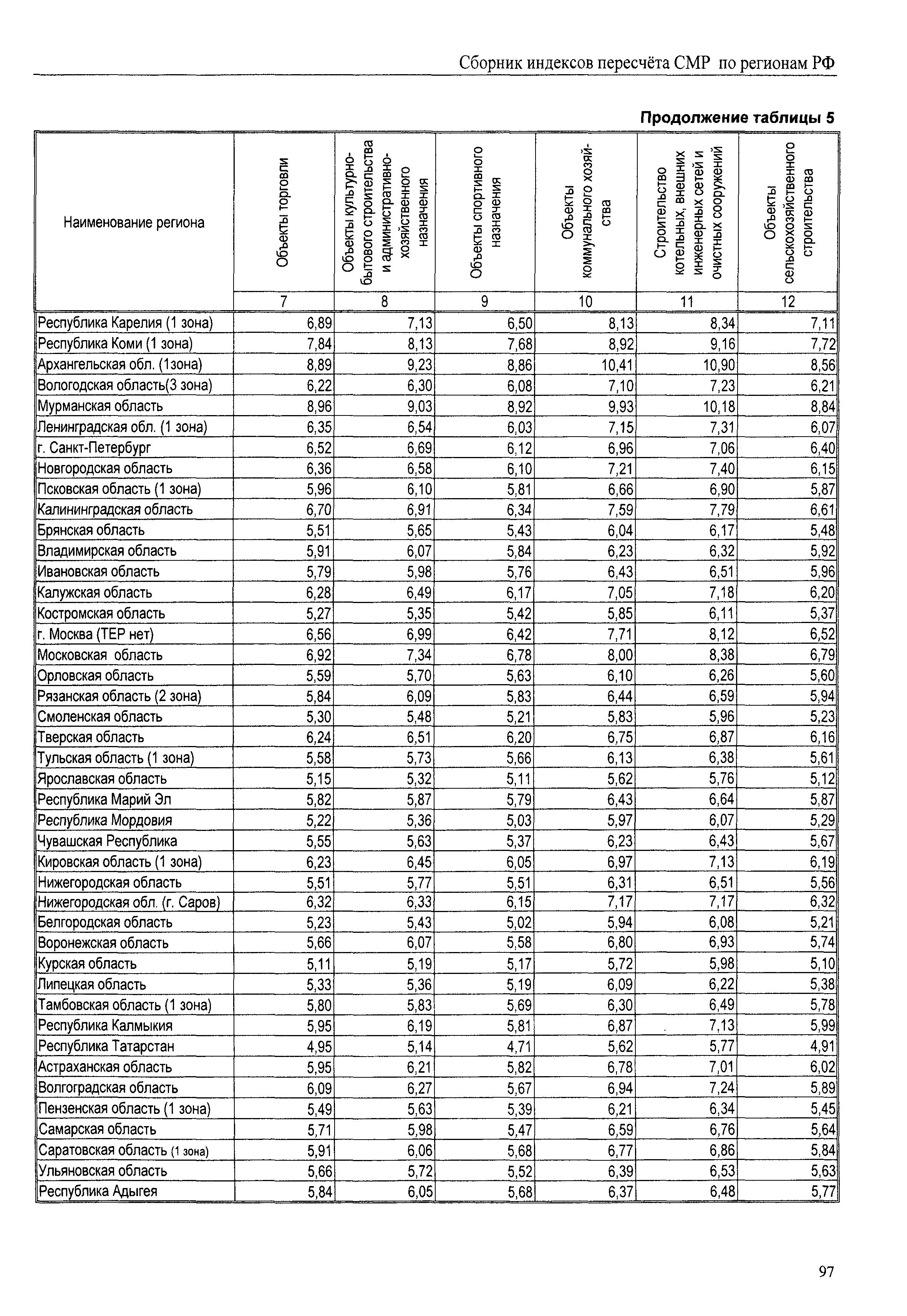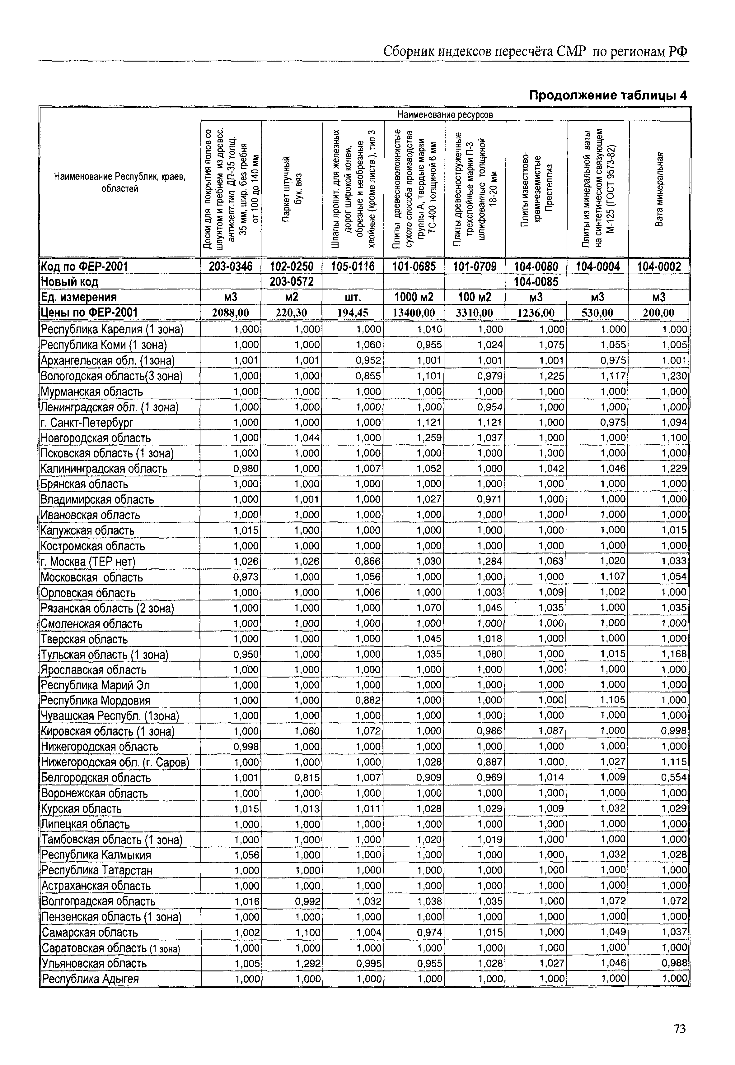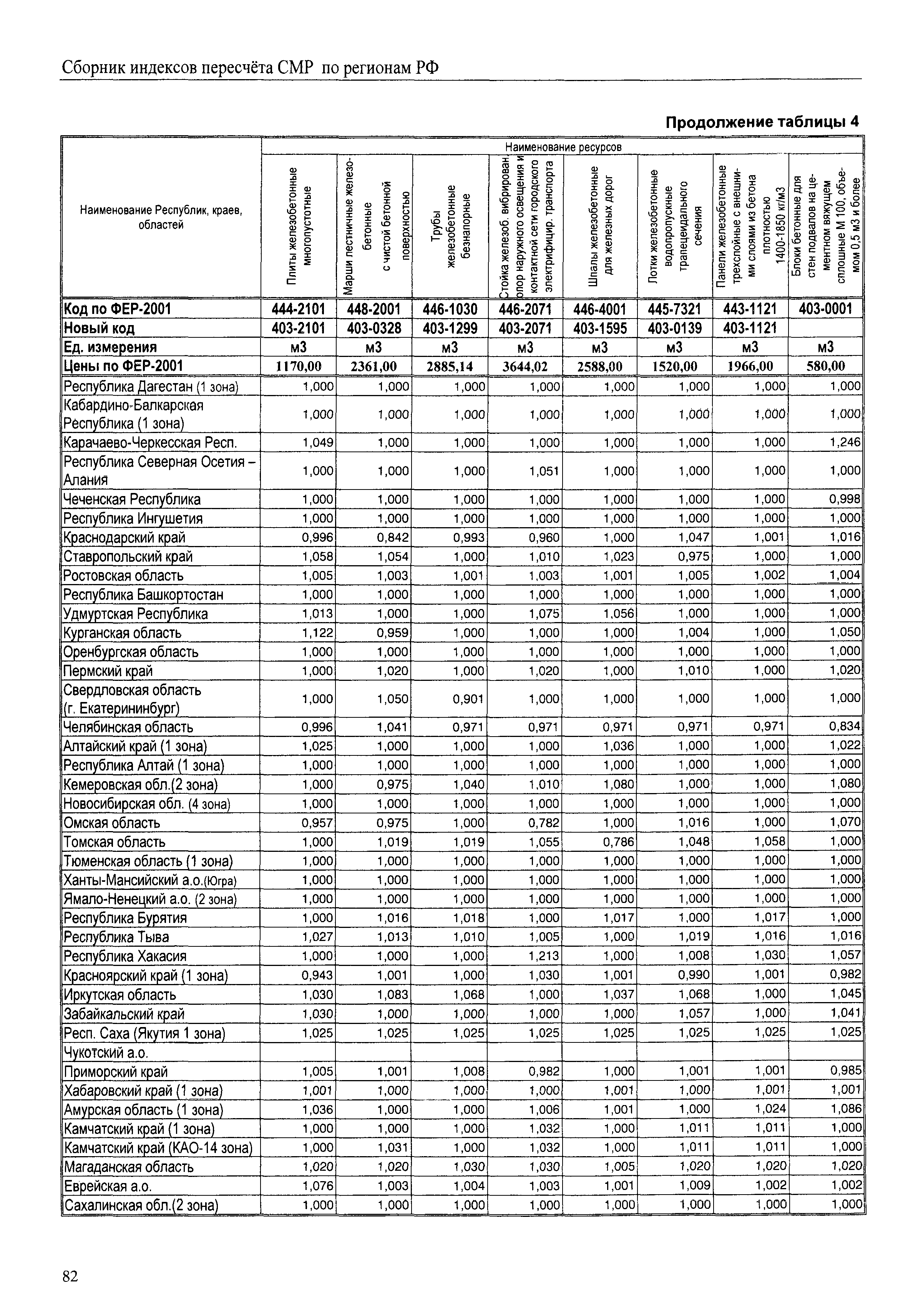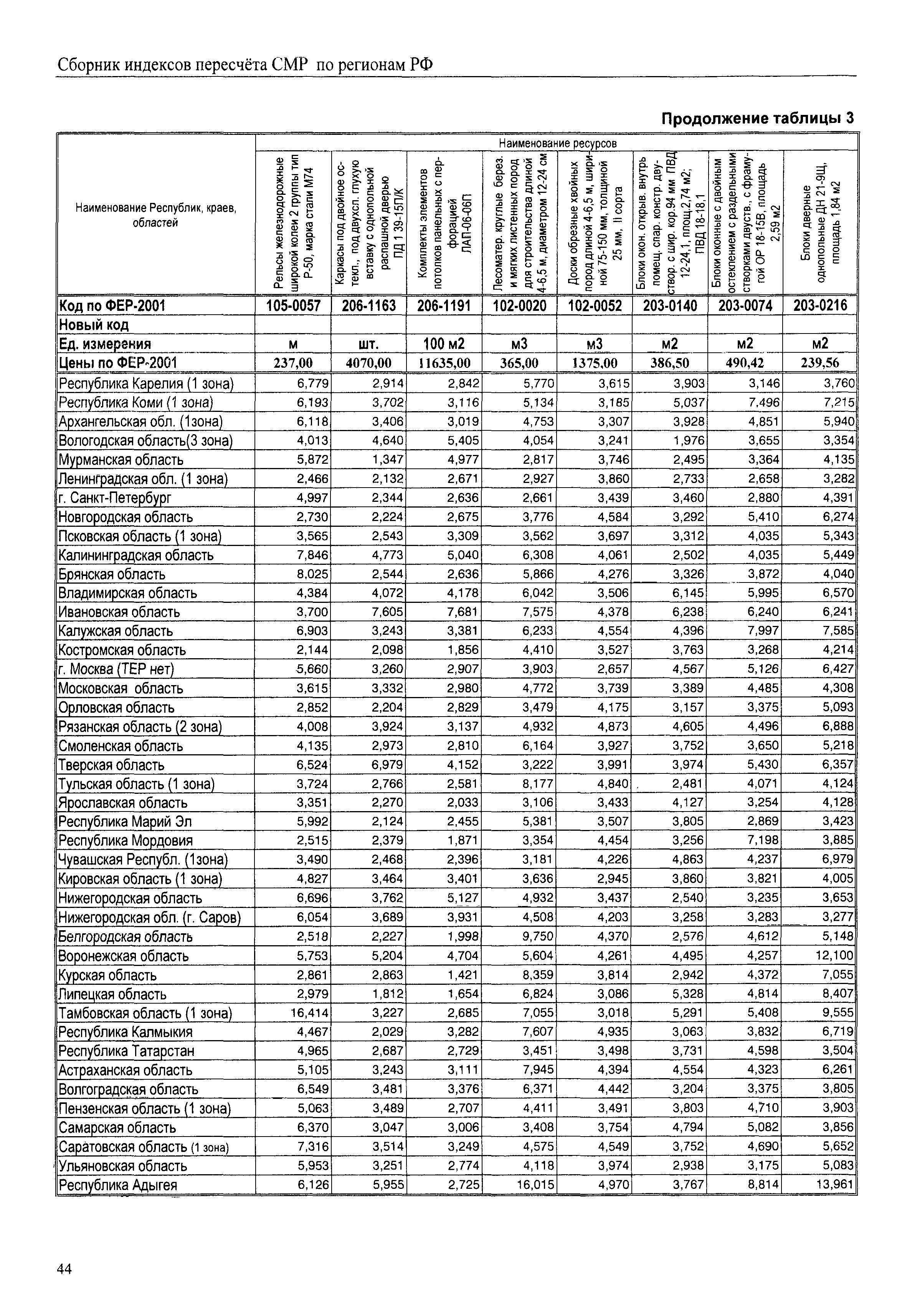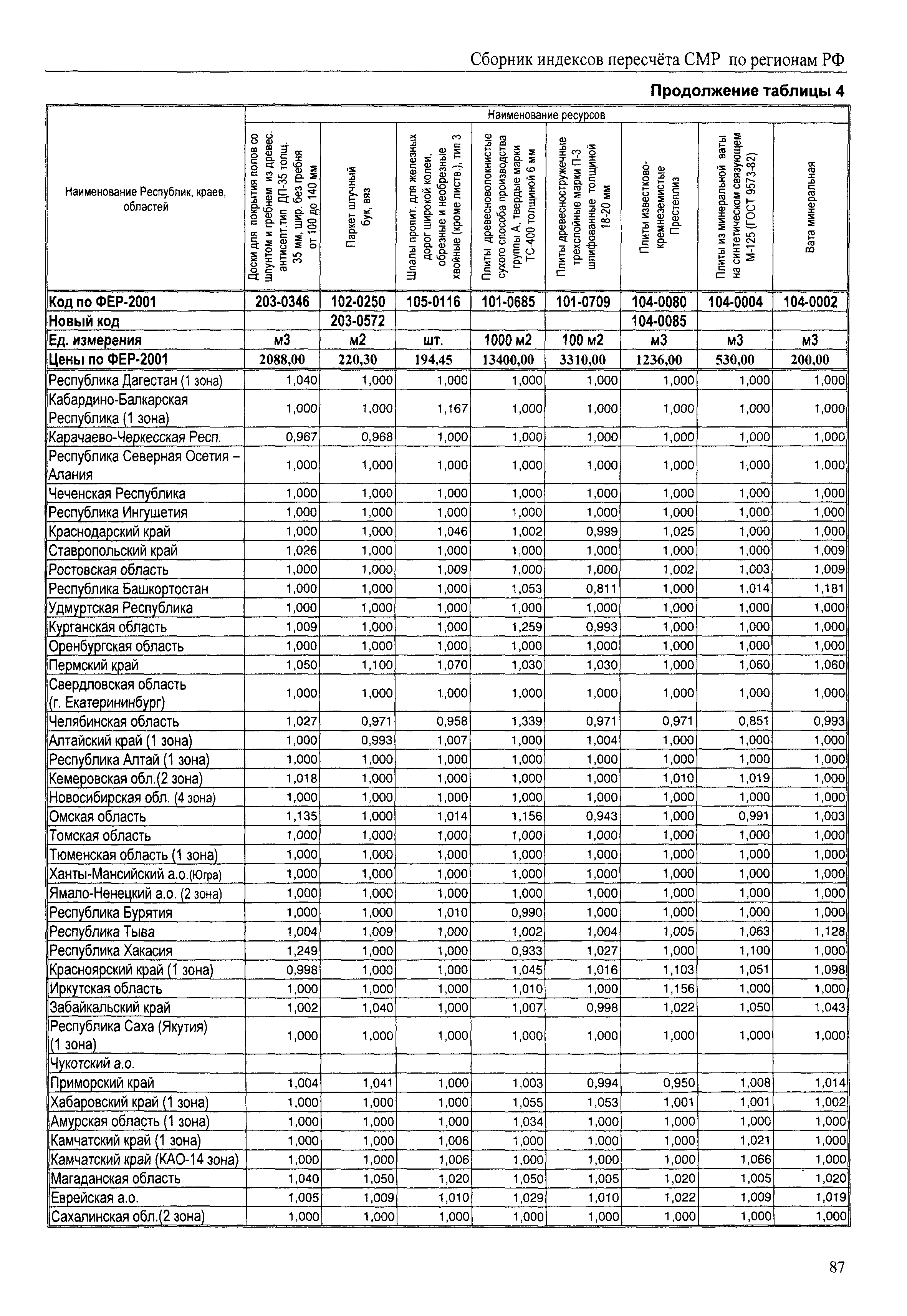 Межрегиональный сборник индексов пересчета сметной стоимости строительно-монтажных работ по субъектам Российской Федерации на IV квартал 2010 г.| Статус: | не действует | | Название рус.: | Межрегиональный сборник индексов пересчета сметной стоимости строительно-монтажных работ по субъектам Российской Федерации на IV квартал 2010 г. | | Дата добавления в базу: | 01.09.2013 | | Дата актуализации: | 01.09.2013 | | Область применения: | В сборнике приведены сводные таблицы текущих (IV квартал 2010 г.) региональных цен на основные ресурсы, применяемые в строительстве, региональные индексы пересчета базисной стоимости строительно-монтажных работ, определяемой с использованием сборников сметно-нормативной базы (ФЕР-2001, ТЕР-2001 в редакции 2003 г. с учетом дополнений и изменений 1 - 4), в территориальный текущий уровень цен. Индексы разработаны по единой методике, на основании отчетных данных региональных органов по ценообразованию в строительстве о стоимости строительных ресурсов в регионе. | | Оглавление: | Общая часть Техническая часть (к таблицам 1, 2, 3, 4) Цены на строительную продукцию в IV квартале 2010 г. Анализ роста индексов и стоимости 1м2 по субъектам Российской Федерации в IV кв. 2010 года. - таблица А Расчетная стоимость 1 м2 общей площади квартир и индексы изменения стоимости строительства по субъектам Российской Федерации за IV квартал 2010 г. -Таблица 1 Сметная стоимость строительных ресурсов (без НДС) в руб. -Таблица 2 Индексы на отдельные виды ресурсов (к заложенным в ФЕР-2001) -Таблица 3 Индексы роста стоимости строительных ресурсов к предыдущему кварталу -Таблица 4 Региональные индексы к ФЕР-2001 по основным видам объектов строительства - Таблица 5 Индексы на оборудование за IV квартал 2010 г Индексы на прочие работы и затраты за IV квартал 2010 г |